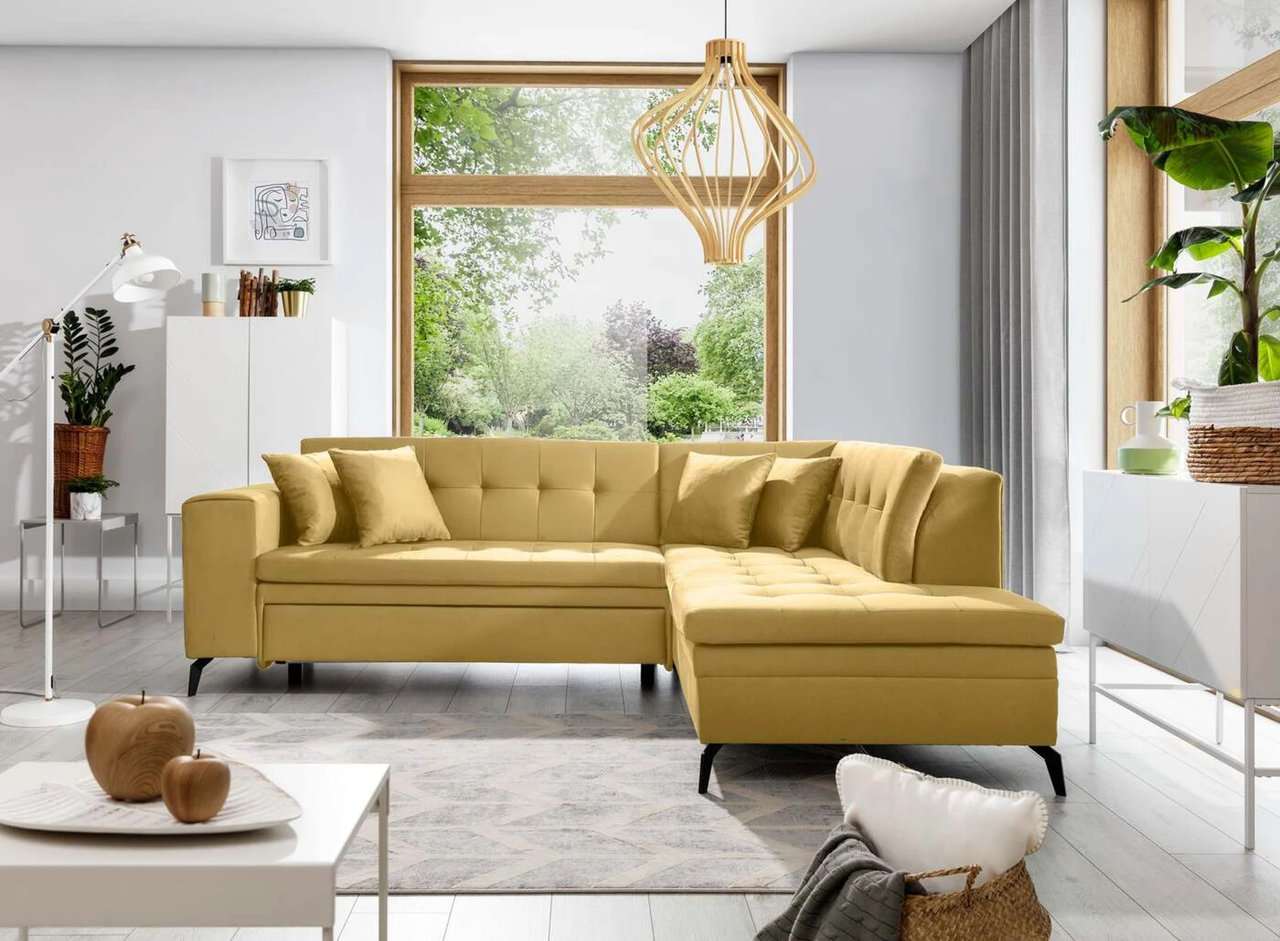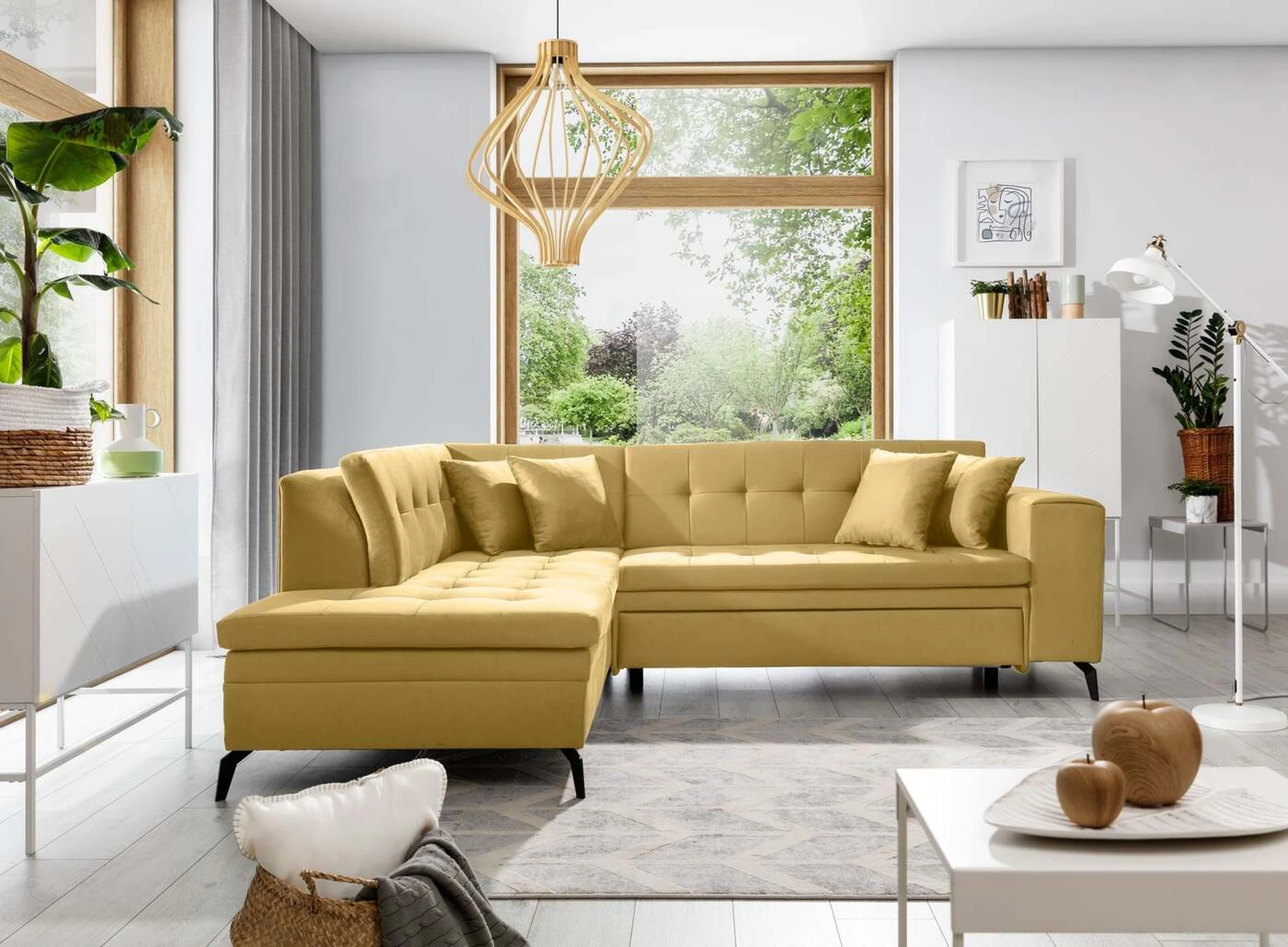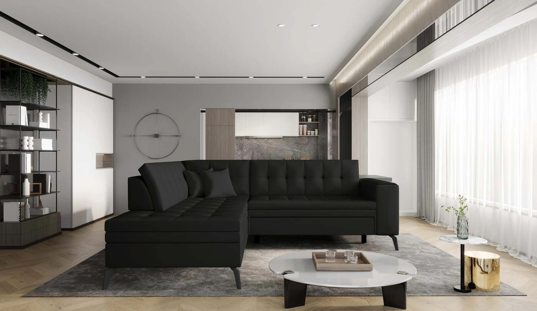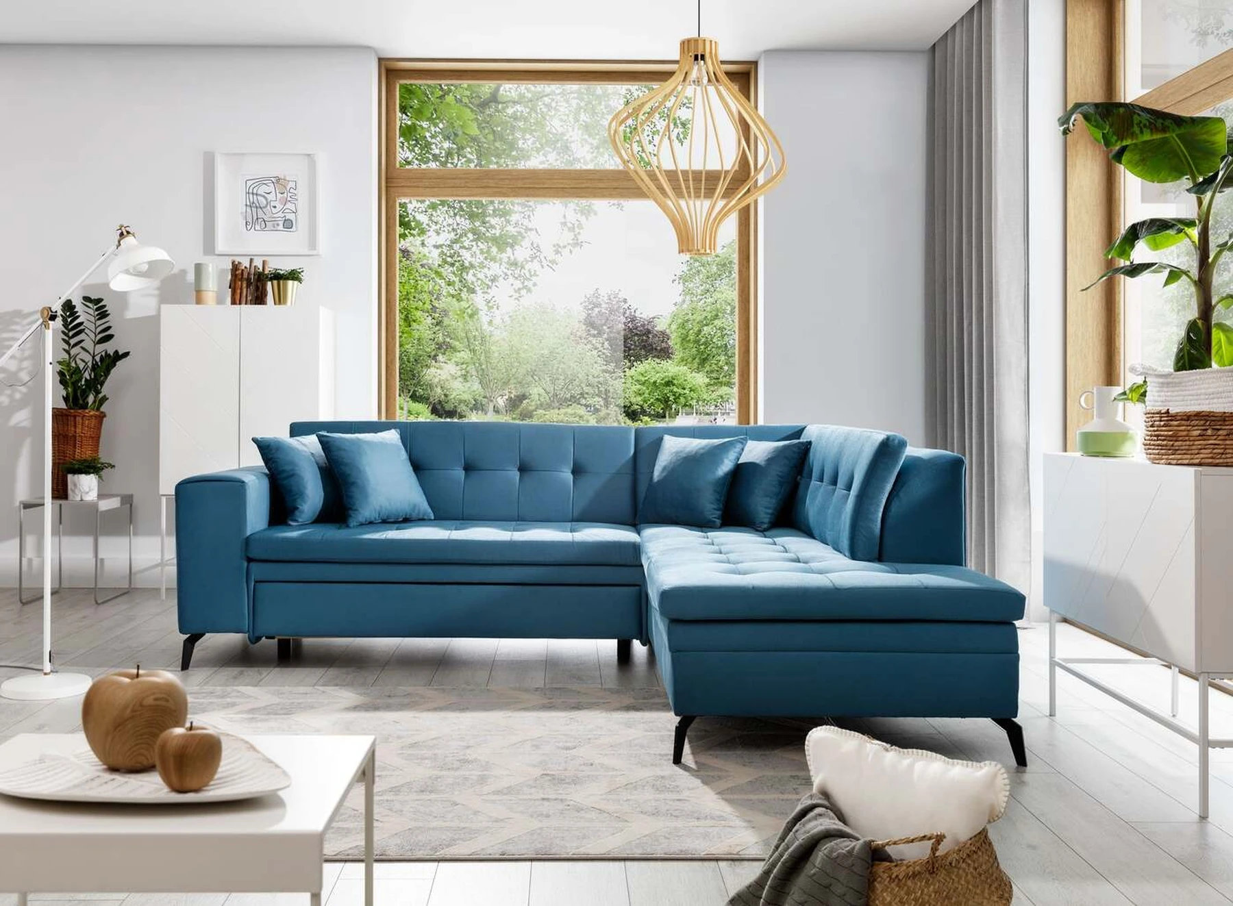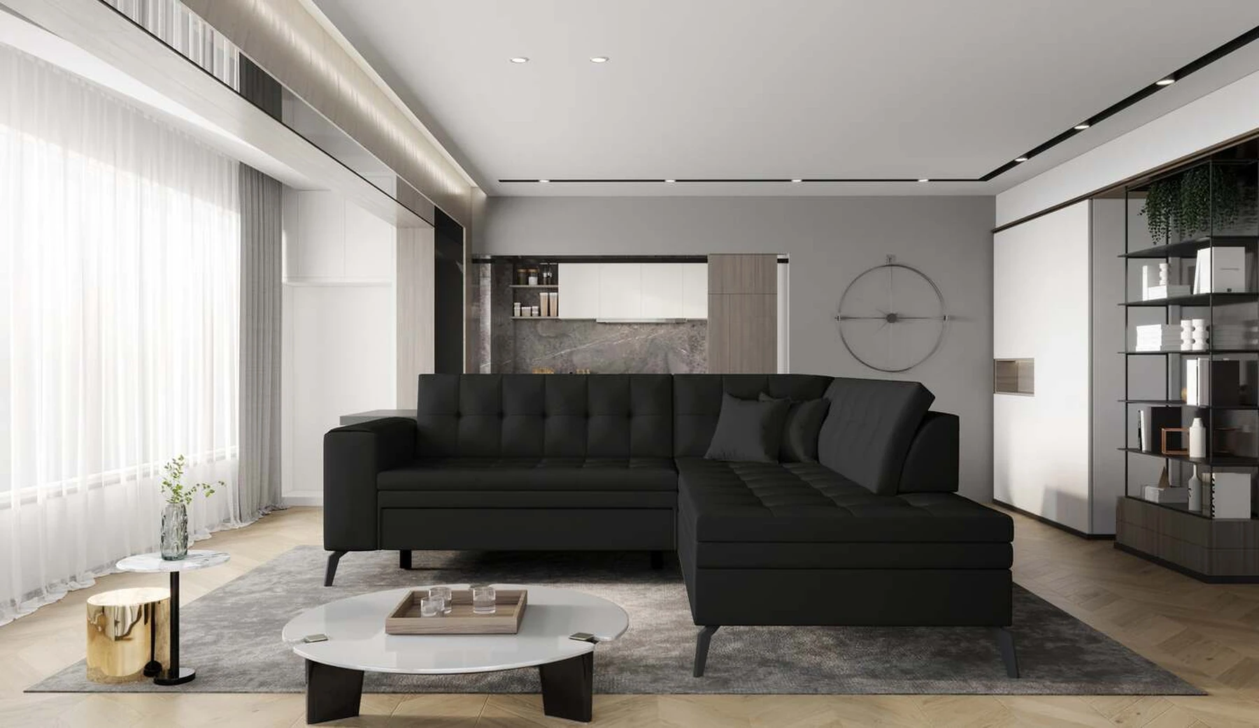 EL1053 yra funkcionali, stilinga ir, svarbiausia, elegantiška kampinė sofa, skirta išrankiems komforto žinovams. Šie baldai užtikrina aukštą poilsio komfortą tiek dieną, tiek naktį. Erdvios kampinės sofos, kurios matmenys 260 x 210 x 93 cm, sėdynė pagaminta iš T30 putplasčio, kuris yra atsakingas už maksimalų komfortą, elastingumą ir deformacijų nebuvimą. Patikimos Dolphin sistemos dėka – patogų kampą galima paversti erdvia lova, kurios miegamasis paviršius yra 195 x 125 centimetrai. Atskiro paminėjimo nusipelno ir elegantiška baldų išvaizda. Visa tai dėka sėdynės ir atlošo antklodės – viena vertus, jos padaro baldą unikalų, kita vertus – labai elegantiški ir skoningi. Gaminį galima įsigyti iš visų kolekcijos audinių. EL1053 yra dėmesio vertas baldas – erdvus, praktiškas, taip pat stilingas. Tikrai verta turėti tokią unikalią kampinę sofą savo bute.