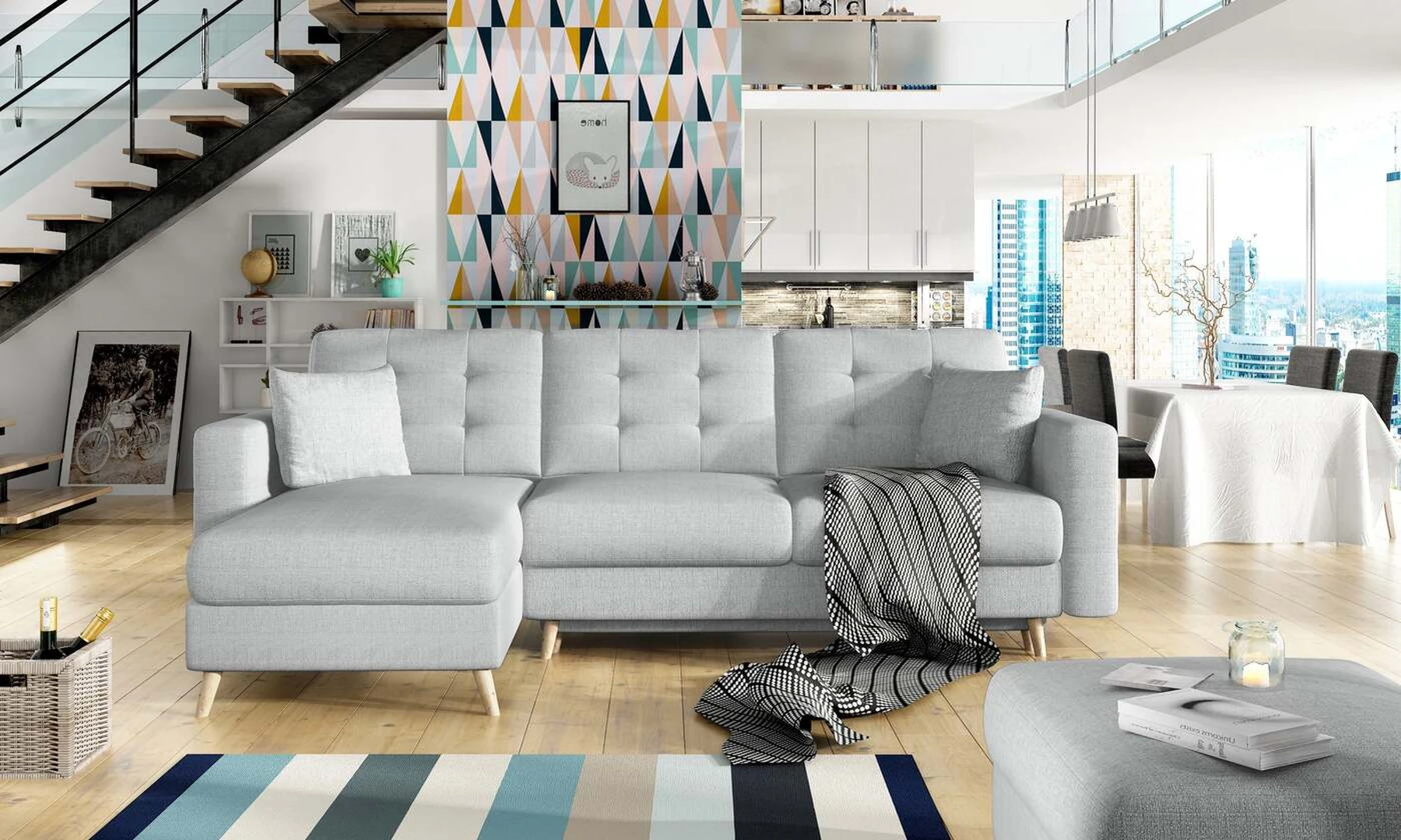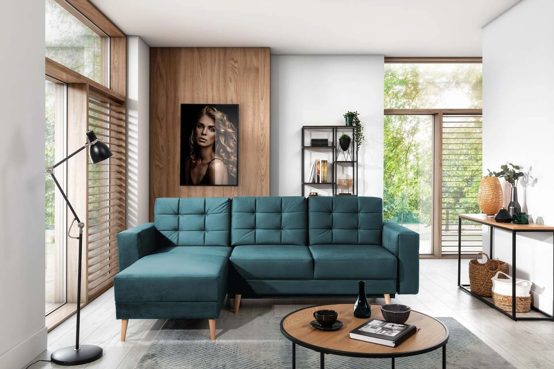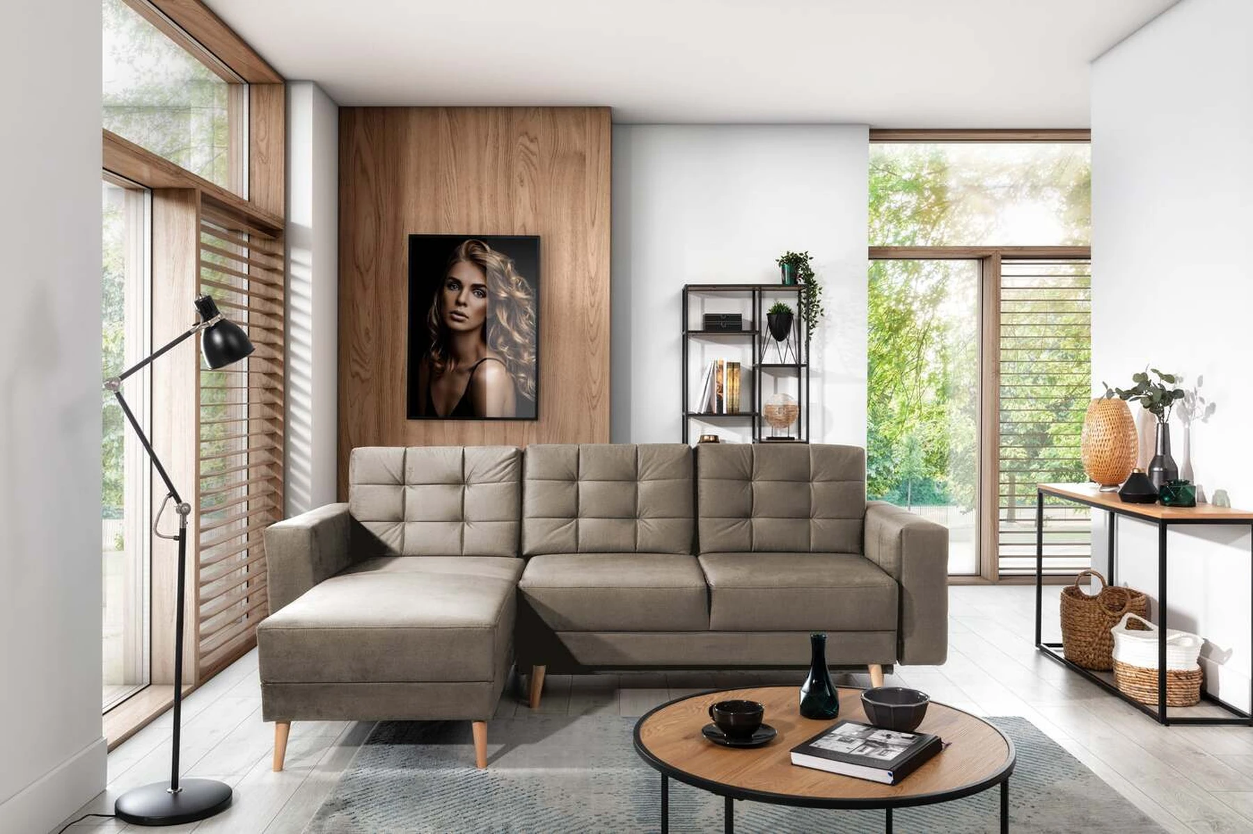 EL1062 yra skoningas, atmosferiškas ir erdvus retro stiliaus kampinis blokas, kurio matmenys 248 x 162 x 93 cm. Dėl minkštos ir patogios sėdynės, užpildytos bangų spyruokle ir T30 putomis, ji puikiai tinka atsipalaiduoti dieną, taip pat atsipalaiduoti naktį. 120 x 210 cm miegojimo funkciją palaiko DL automatinis išskleidimo mechanizmas. EL1062 modelyje taip pat yra erdvi patalynės dėtuvė. Jos pranašumai, kurie pagerina estetinius pojūčius, yra stilingas susiuvimas ir subtilus dygsniavimas šonuose, taip pat ant kampinio bloko atramos. Be to, taip pat yra aukštos, medinės, pasuktos kojos, apmušta nugara, taip pat tinkamos formos atlošas ir aukšti porankiai. Erdvus kampinis blokas EL1062 skirtas elegantiškam ir stilingam interjerui. Su tokiu baldu tikrai įgysite nemažą dozę prabangos pagyvinti savo namų interjerą.