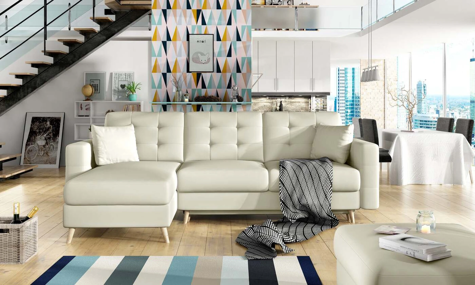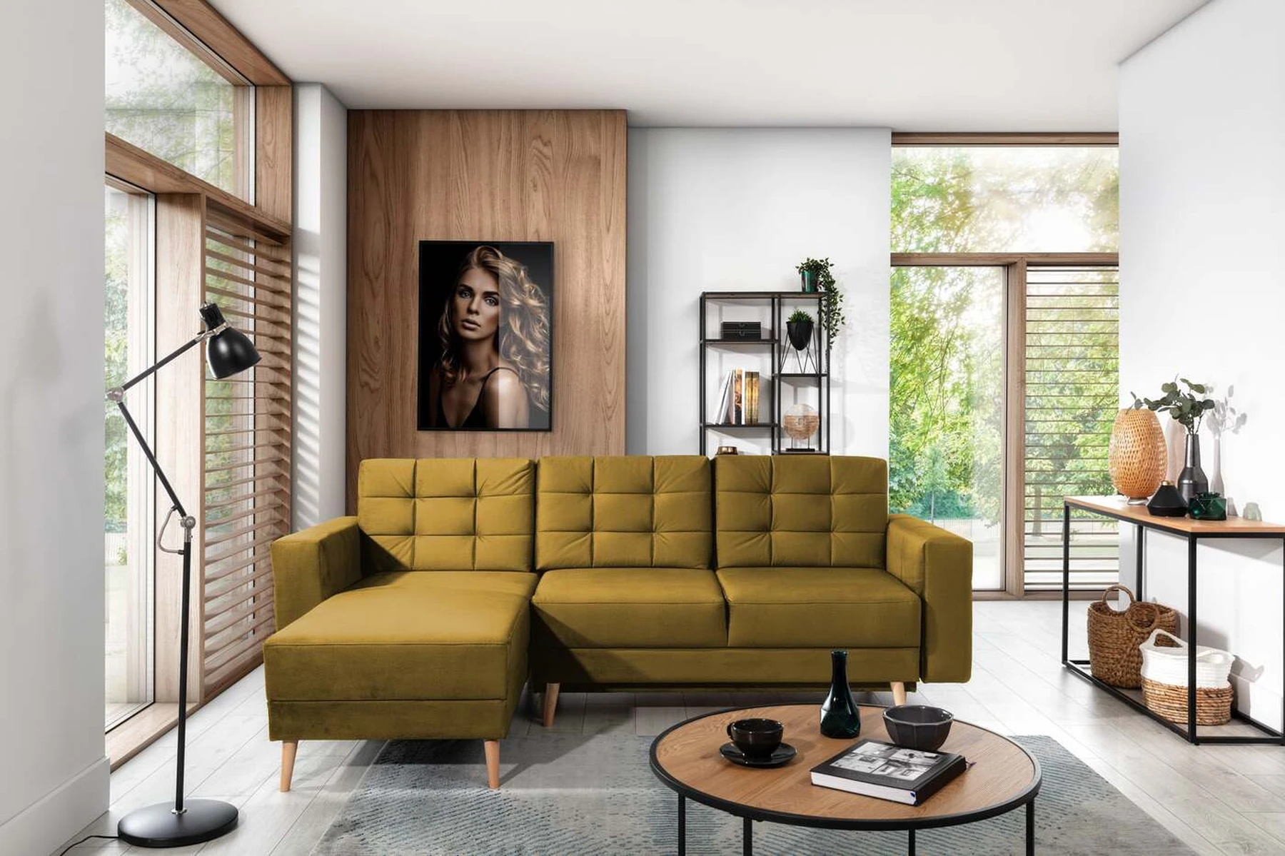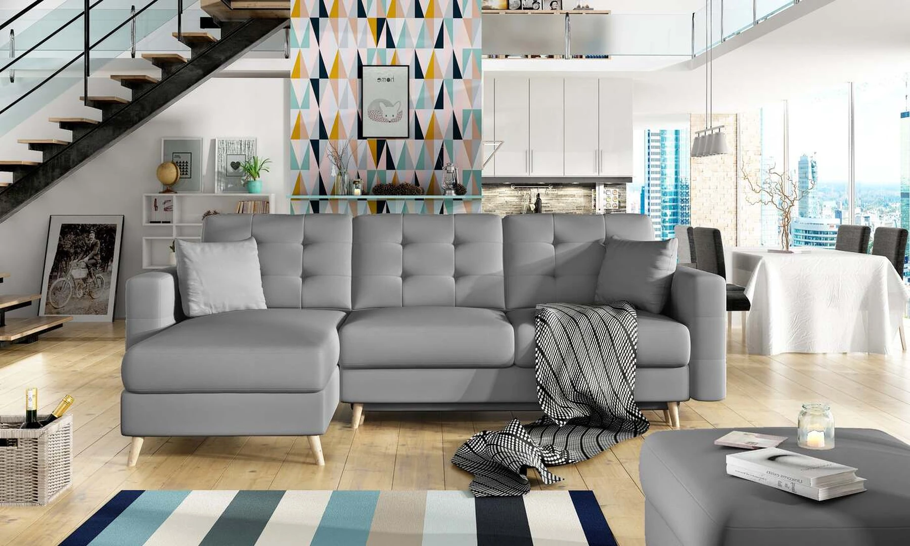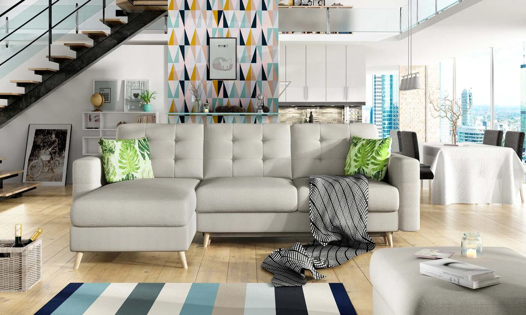 EL1062 yra skoningas, atmosferiškas ir erdvus retro stiliaus kampinis blokas, kurio matmenys 248 x 162 x 93 cm. Dėl minkštos ir patogios sėdynės, užpildytos bangų spyruokle ir T30 putomis, ji puikiai tinka atsipalaiduoti dieną, taip pat atsipalaiduoti naktį. 120 x 210 cm miegojimo funkciją palaiko DL automatinis išskleidimo mechanizmas. EL1062 modelyje taip pat yra erdvi patalynės dėtuvė. Jos pranašumai, kurie pagerina estetinius pojūčius, yra stilingas susiuvimas ir subtilus dygsniavimas šonuose, taip pat ant kampinio bloko atramos. Be to, taip pat yra aukštos, medinės, pasuktos kojos, apmušta nugara, taip pat tinkamos formos atlošas ir aukšti porankiai. Erdvus kampinis blokas EL1062 skirtas elegantiškam ir stilingam interjerui. Su tokiu baldu tikrai įgysite nemažą dozę prabangos pagyvinti savo namų interjerą.