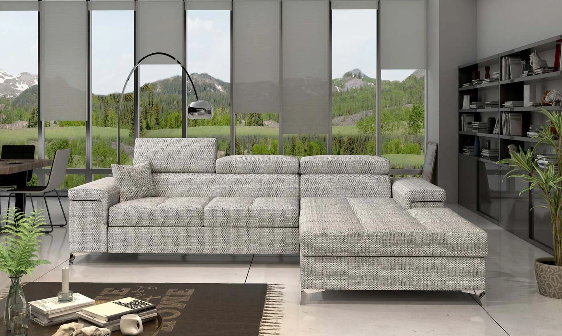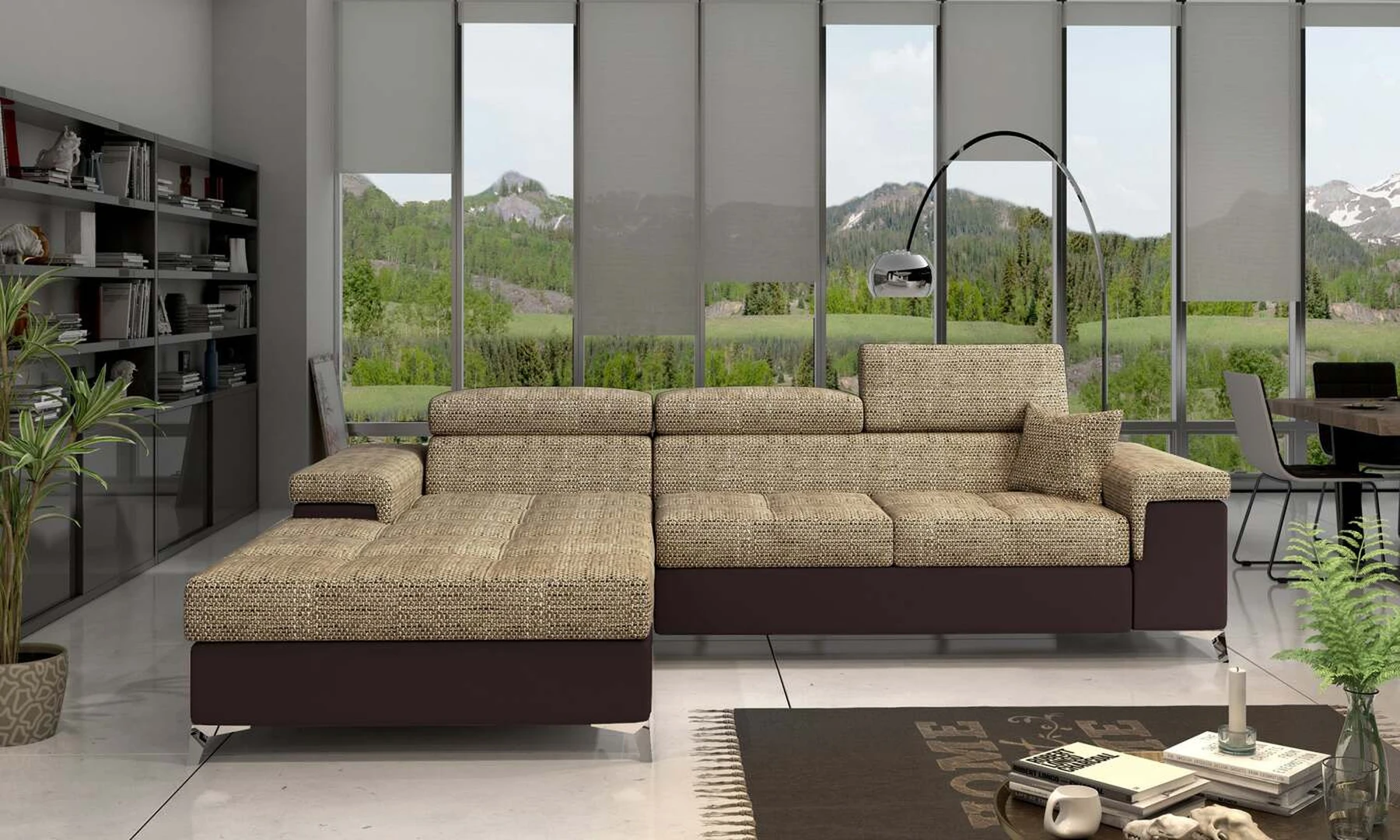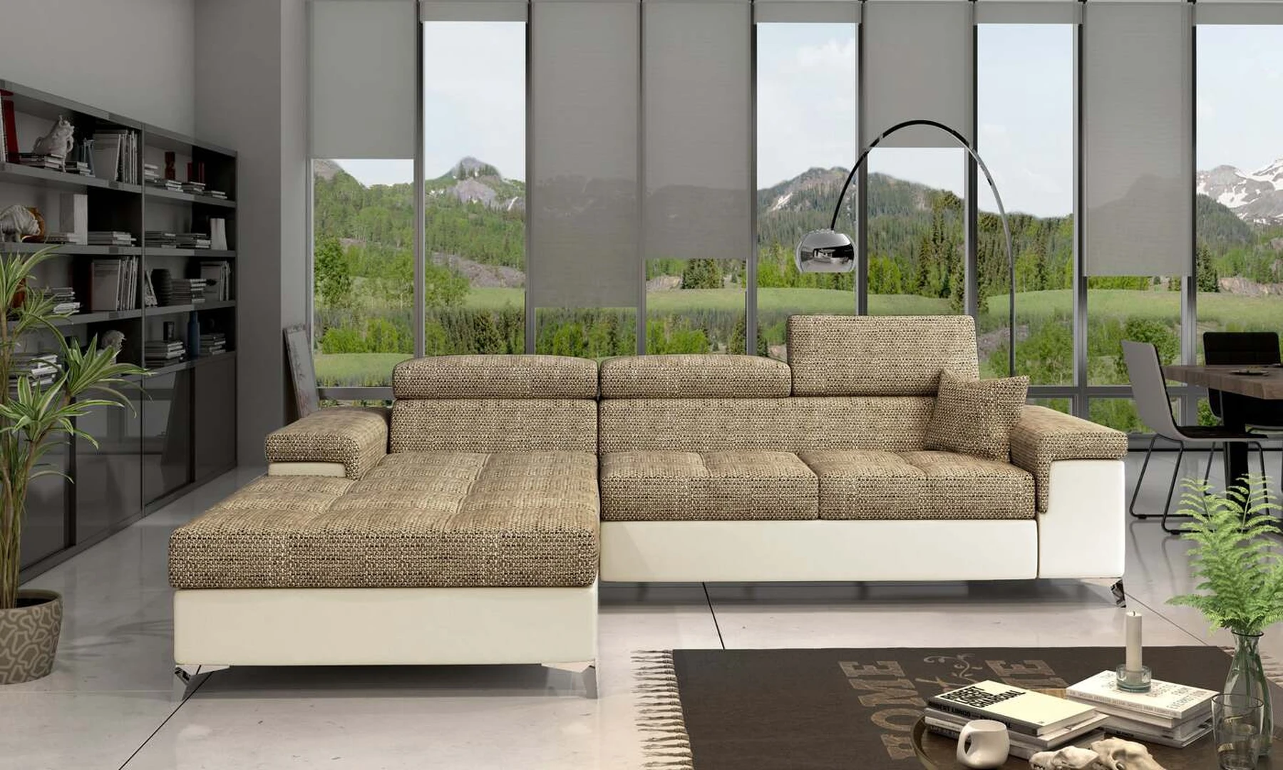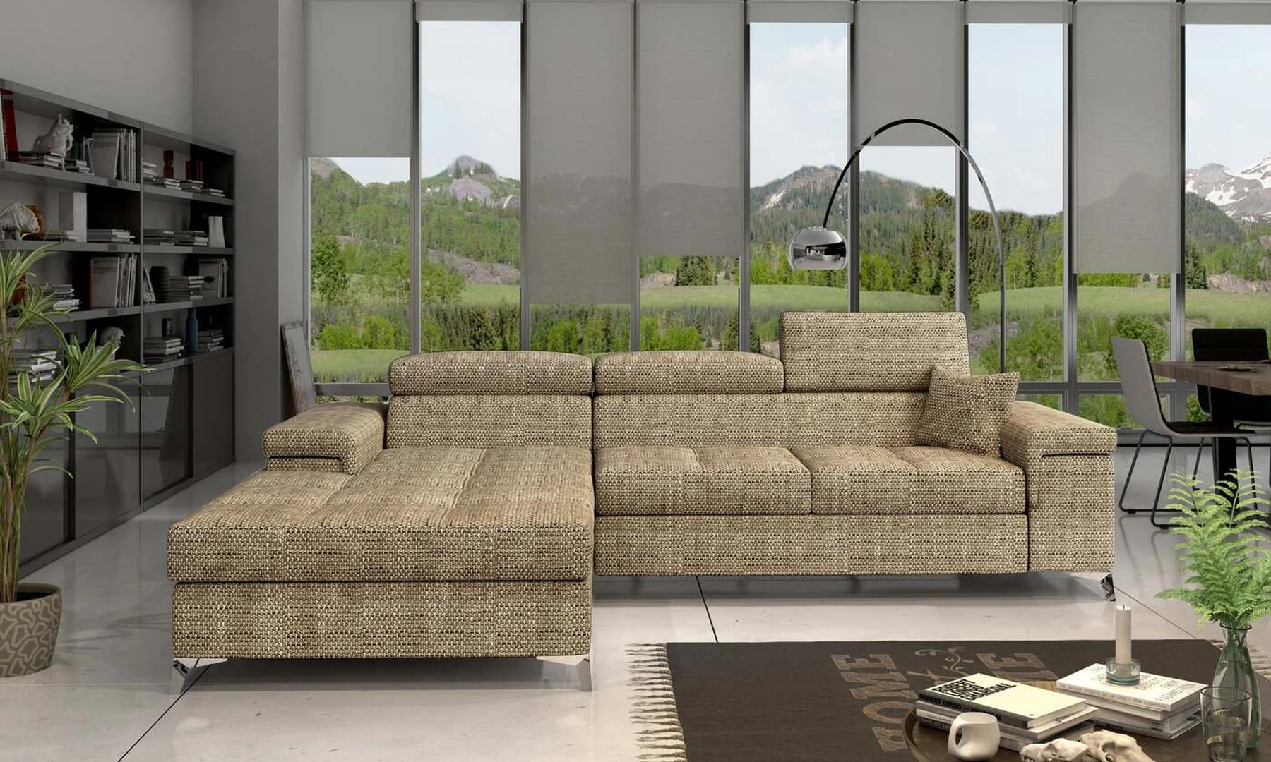 EL1097 yra paprastas ir stilingas kampinis blokas su apgalvotomis modernaus-klasikinio stiliaus dekoracijomis, nes klasikinę formą papildo daug modernių atskirų komponentų apdailos. Ši erdvi kampinė sofa-lova, kurios išmatavimai 281 x 205 x 88 cm, puikiai tiks kaip baldas dienos poilsiui, bet gali būti naudojama ir kaip miegojimo vieta, kai lovos matmenys 124 x 216 cm. Šiame modelyje yra įrengta miegojimo funkcija, pagrįsta paprasta ir intuityvia delfinų sistema. Be to, jame taip pat yra didelis skyrius patalynei, esantis pufas. Minkštumo ir elastingumo efektą sukelia aukštos kokybės putplasčio naudojimas ir bangų spyruoklių naudojimas. Papildoma išskirtinė mūsų baldų savybė: patogi sėdynė, platūs porankiai, reguliuojamos galvos atramos ir chromuotos kojelės. Be to, šį modelį galima rinktis iš visos spalvų gamos. Garantuojame, kad būsite 101% patenkinti tokiu kampiniu bloku kaip EL1097.