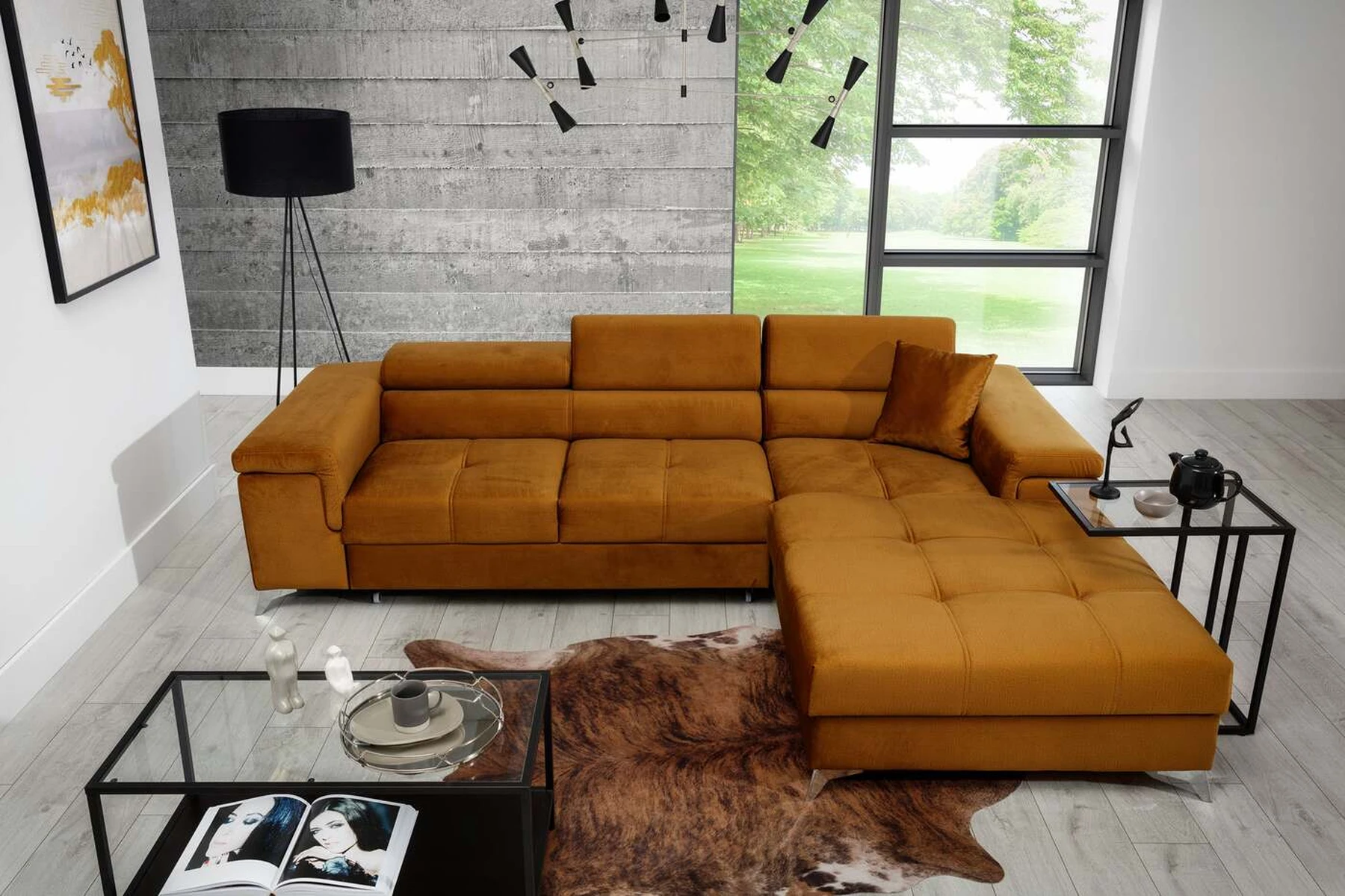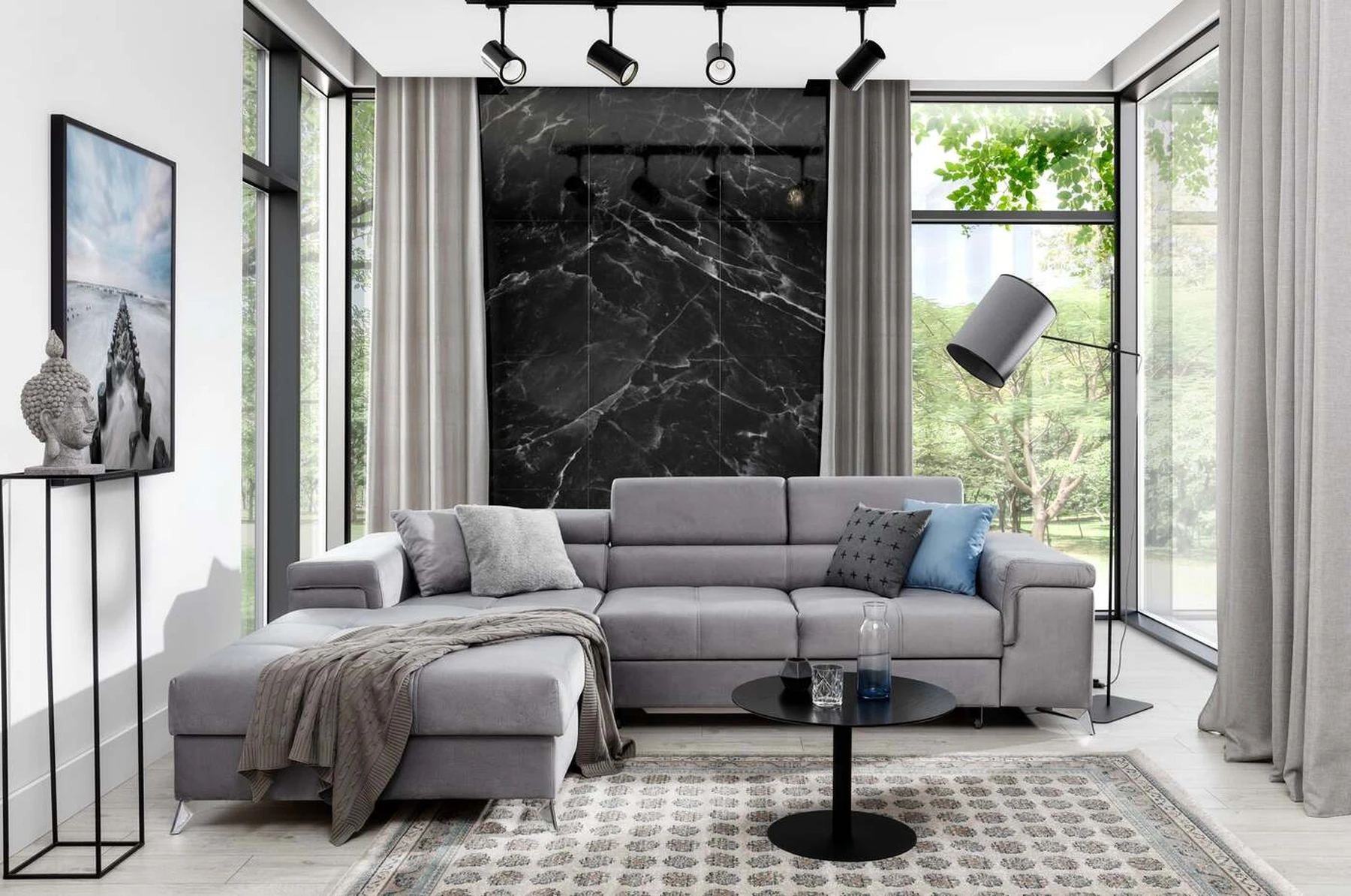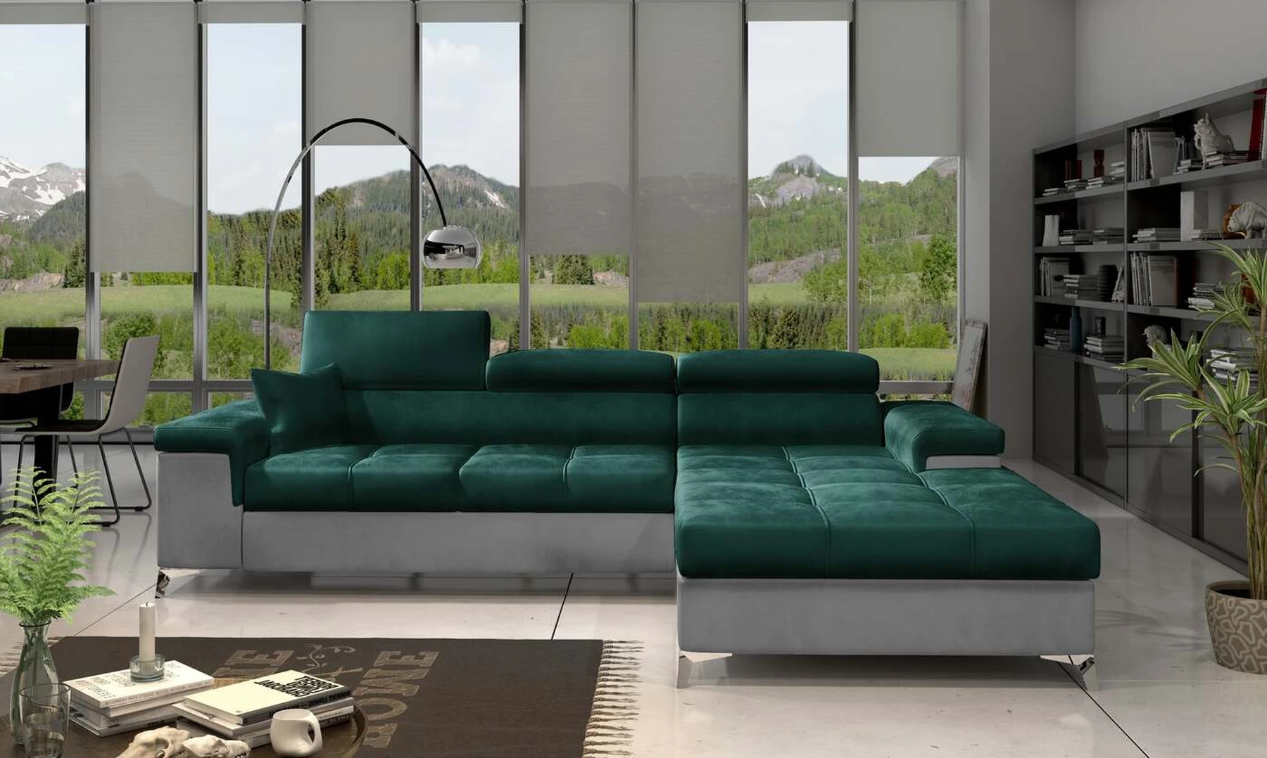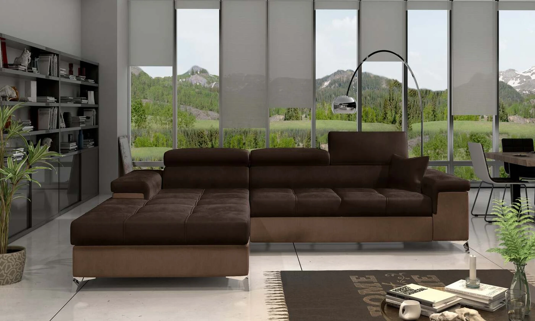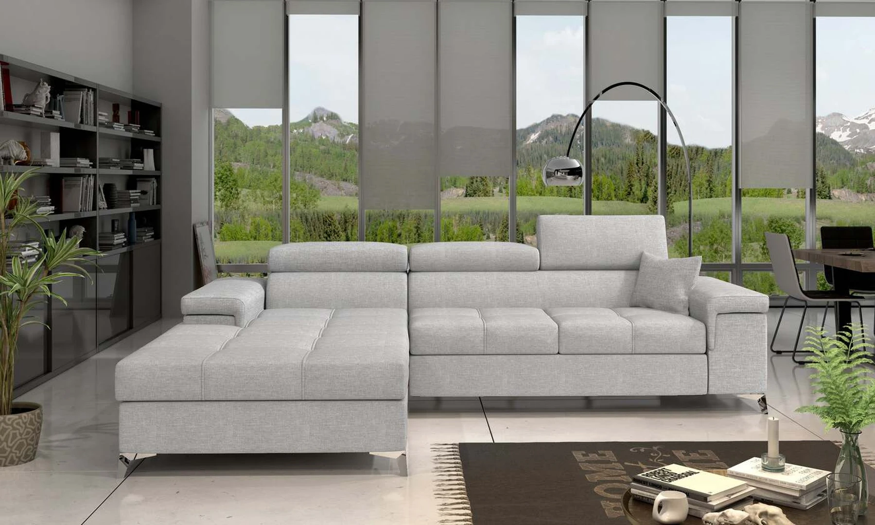 EL1097 yra paprastas ir stilingas kampinis blokas su apgalvotomis modernaus-klasikinio stiliaus dekoracijomis, nes klasikinę formą papildo daug modernių atskirų komponentų apdailos. Ši erdvi kampinė sofa-lova, kurios išmatavimai 281 x 205 x 88 cm, puikiai tiks kaip baldas dienos poilsiui, bet gali būti naudojama ir kaip miegojimo vieta, kai lovos matmenys 124 x 216 cm. Šiame modelyje yra įrengta miegojimo funkcija, pagrįsta paprasta ir intuityvia delfinų sistema. Be to, jame taip pat yra didelis skyrius patalynei, esantis pufas. Minkštumo ir elastingumo efektą sukelia aukštos kokybės putplasčio naudojimas ir bangų spyruoklių naudojimas. Papildoma išskirtinė mūsų baldų savybė: patogi sėdynė, platūs porankiai, reguliuojamos galvos atramos ir chromuotos kojelės. Be to, šį modelį galima rinktis iš visos spalvų gamos. Garantuojame, kad būsite 101% patenkinti tokiu kampiniu bloku kaip EL1097.