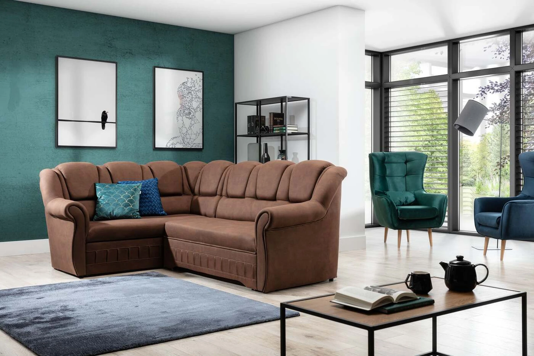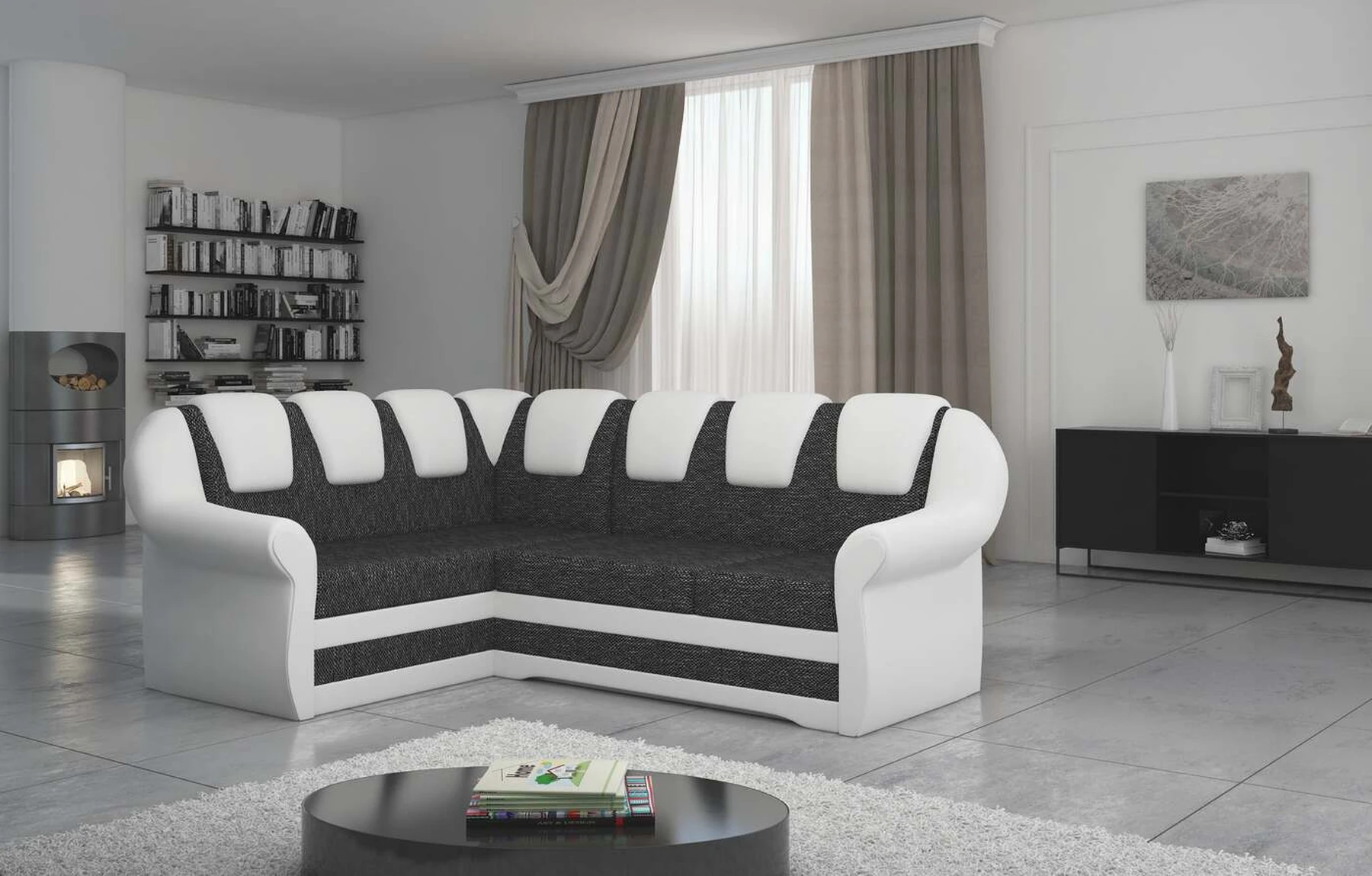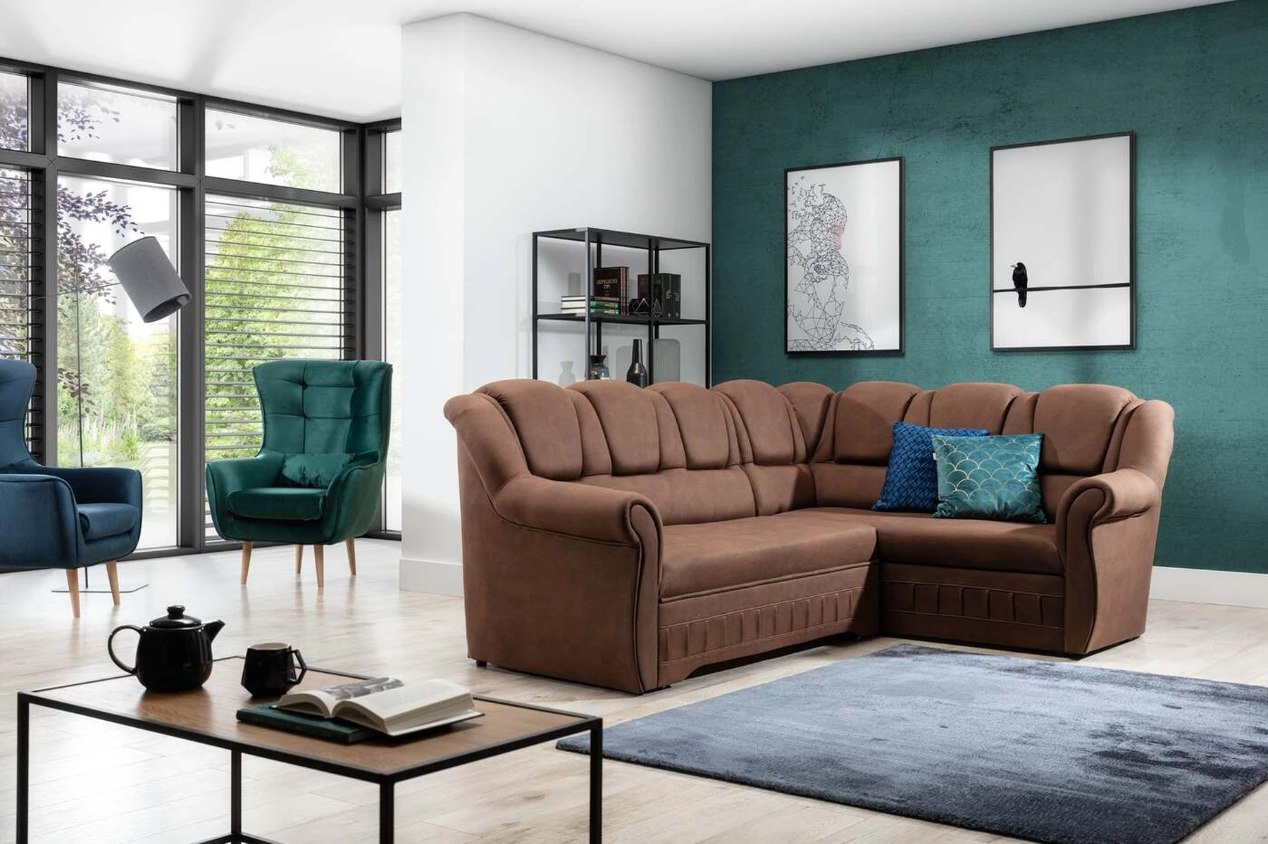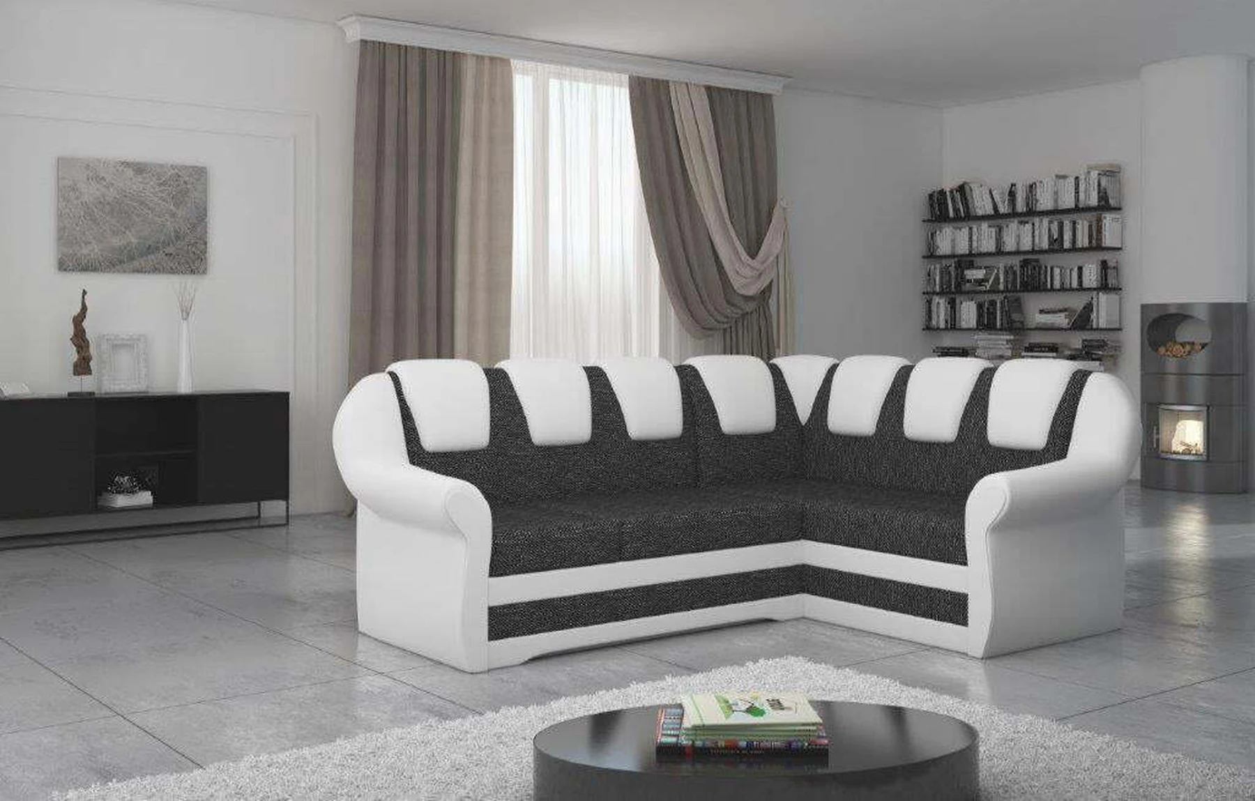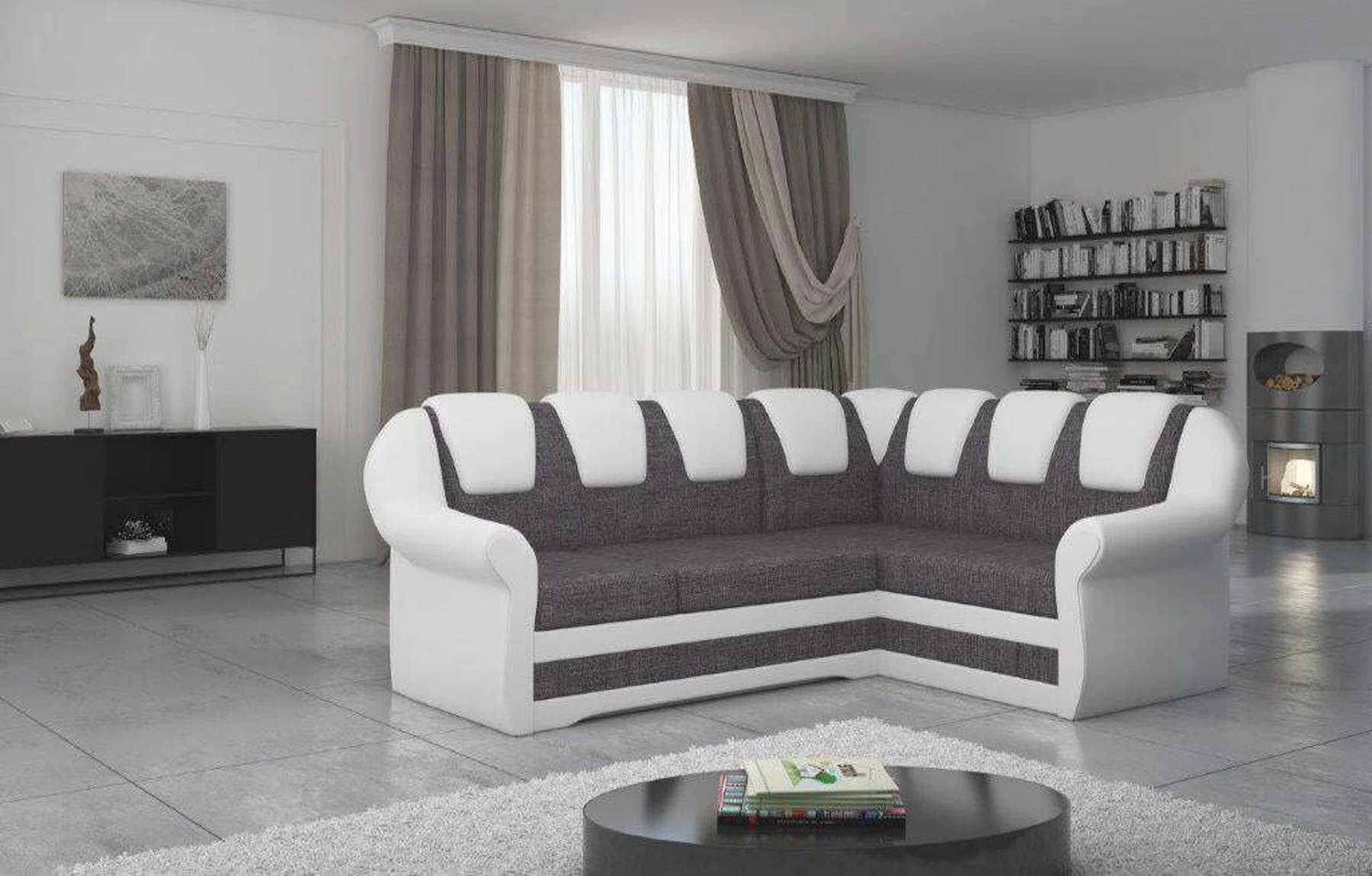 EL2950 yra patogi ir klasikinė kampinė sofa, o kartu ir išskirtinė bei funkcionali svetainės puošmena. Įdomią blokelio formą sulaužė banguota apdaila, stilingos atlošo siūlės, taip pat raukšlės palei baldus. Kampinės sofos matmenys 243 x 190 x 105 cm suteikia pakankamai erdvės poilsiui bet kuriuo dienos ar nakties metu. Šiuose balduose yra 195 x 125 cm miegojimo funkcija, taip pat talpi ir gili patalynės saugykla, esanti pufas. Delfino tipo išskleidimo funkcijos dėka baldus pritaikyti pagal esamus poreikius yra intuityvus ir nesudėtingas. Dėl gofruoto spyruoklės ir T30 putplasčio derinio kampinės sofos sėdynė yra minkšta ir lanksti. Kampinė sofa Lord – tai gero skonio, stiliaus ir klasikinių apdailos formų derinys. Tai tikrai bus tinkamas pasirinkimas tradicinei buto apdailai.