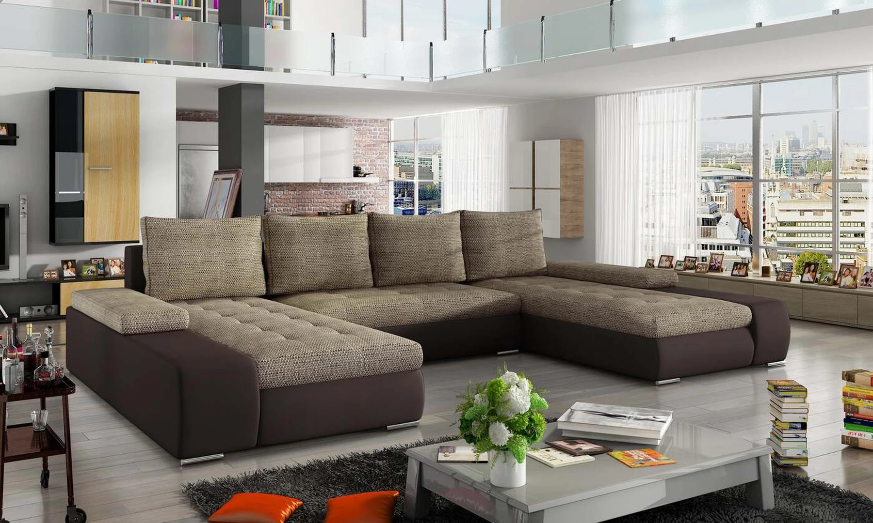 EL3422 yra erdvi, patogi ir stilinga kampinė sofa, kurios išmatavimai yra 363 x 200 x 88 cm. Maksimaliam mūsų U formos baldo komfortui įtakos turi: tinkamai profiliuoti atlošai, platūs porankiai, aprūpinti papildomomis stačiakampėmis pagalvėlėmis ir gofruota spyruokle bei pažeidimams atspariu putplasčiu užpildyta sėdynė. Mūsų kampinę sofą labai paprastai ir efektyviai galima paversti 297 x 122 cm ploto lova per ištraukiamą sėdynę ir atverčiamą atlošą. Be to, jame yra erdvus patalynės konteineris. Papildomos kampinės sofos EL3422 savybės: unikalus dizainas, subtilus skiautinis ir didelės pagalvėlės. Kampinė sofa EL3422 – tai baldas, ant kurio tikrai galėsite gerai pailsėti ir atsipalaiduoti po sunkios dienos.
