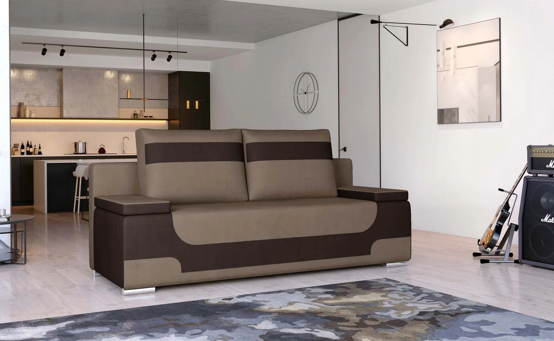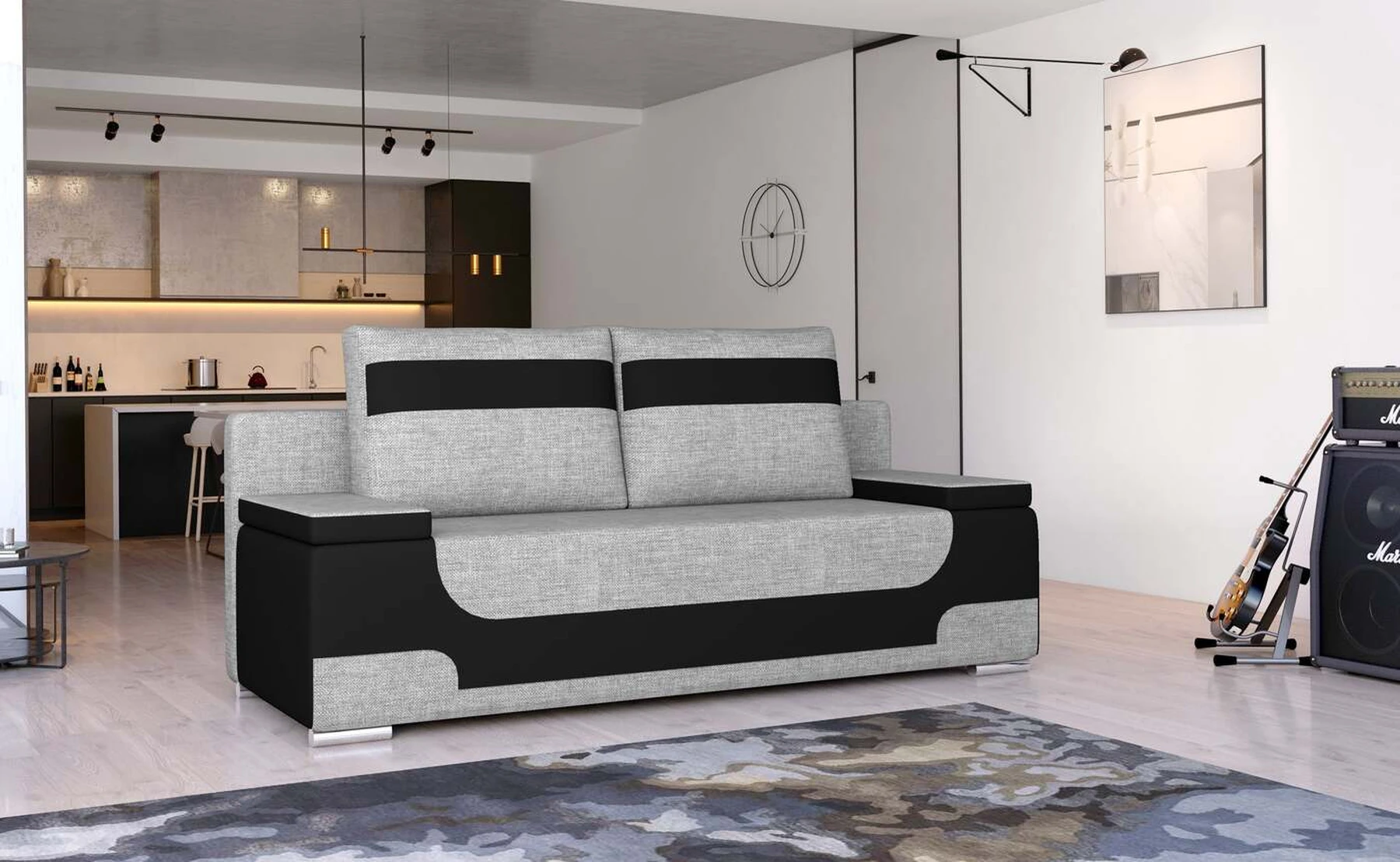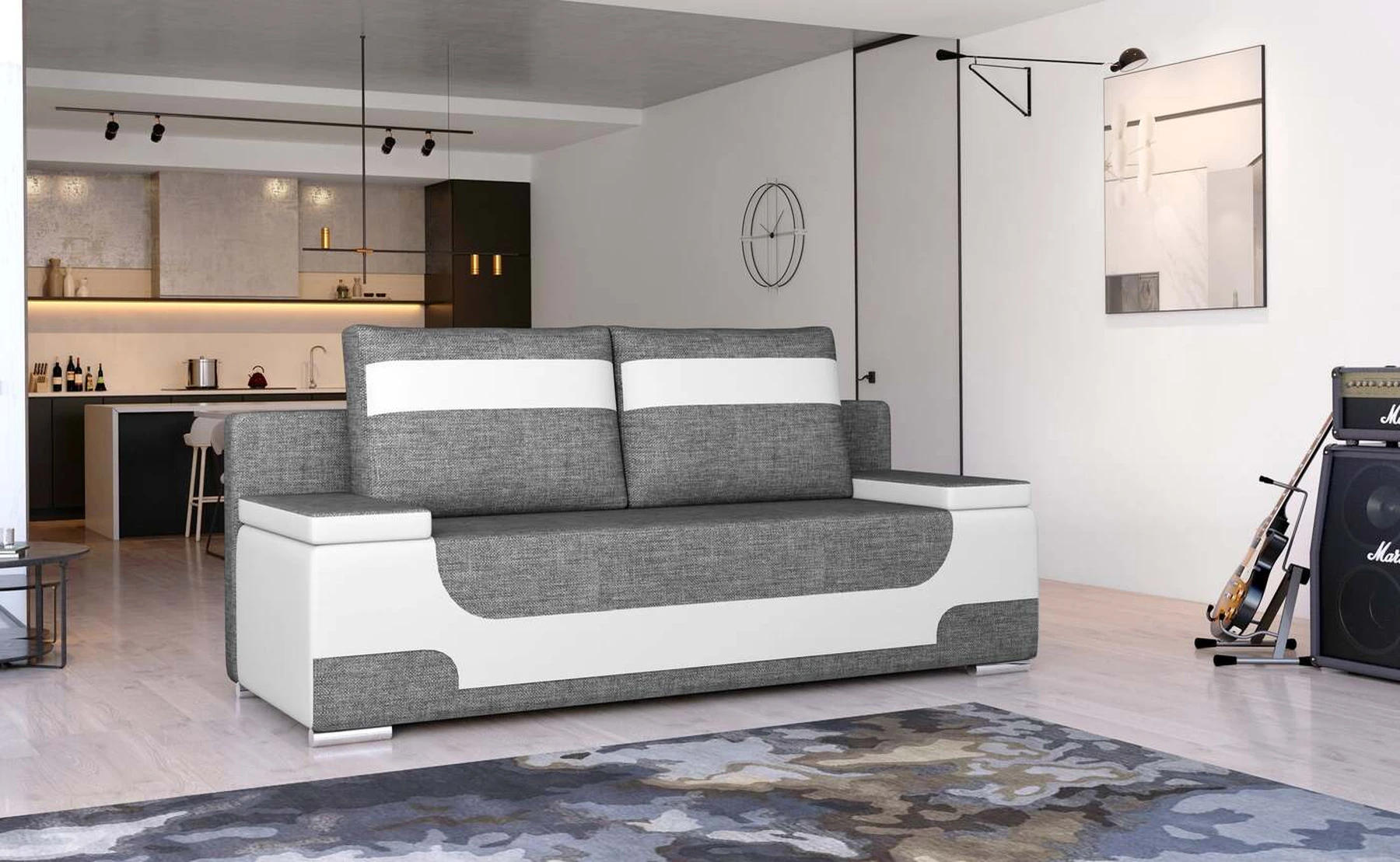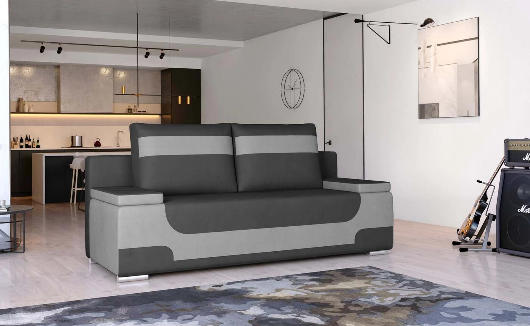 EL3529 – moderni, funkcionali ir originali sofa originalių sprendimų gerbėjams. Geometrinė forma, stilingos dekoracijos ant apmušalų ir pagalvėlių, originalus kitokio atspalvio apmušalų intarpas, esantis apatinėje sofos dalyje, šonuose ir pagalvėlėse – visa tai suteikia EL3529 sofai itin originalaus nuojautos. Taip pat verta paminėti plačius porankius, tinkamai profiliuotą atlošą ir papildomas, erdvias pagalvėles, kurios padidina naudojimo komfortą. EL3529 yra 200 x 92 x 90 cm išmatavimų baldas - poilsiui dienos metu, o miego funkcijos dėka - 200 x 140 cm lova su papildomai erdvia talpa patalynei. Visumą palaiko DL atidarymo mechanizmas. Dėl kaulo ir T25 porolono naudojimo sofos sėdynė yra itin lanksti ir minkšta. Paprasta forma, aptaki konstrukcija ir modernus dizainas – tokia yra EL3529 sofa. Mes už tai!