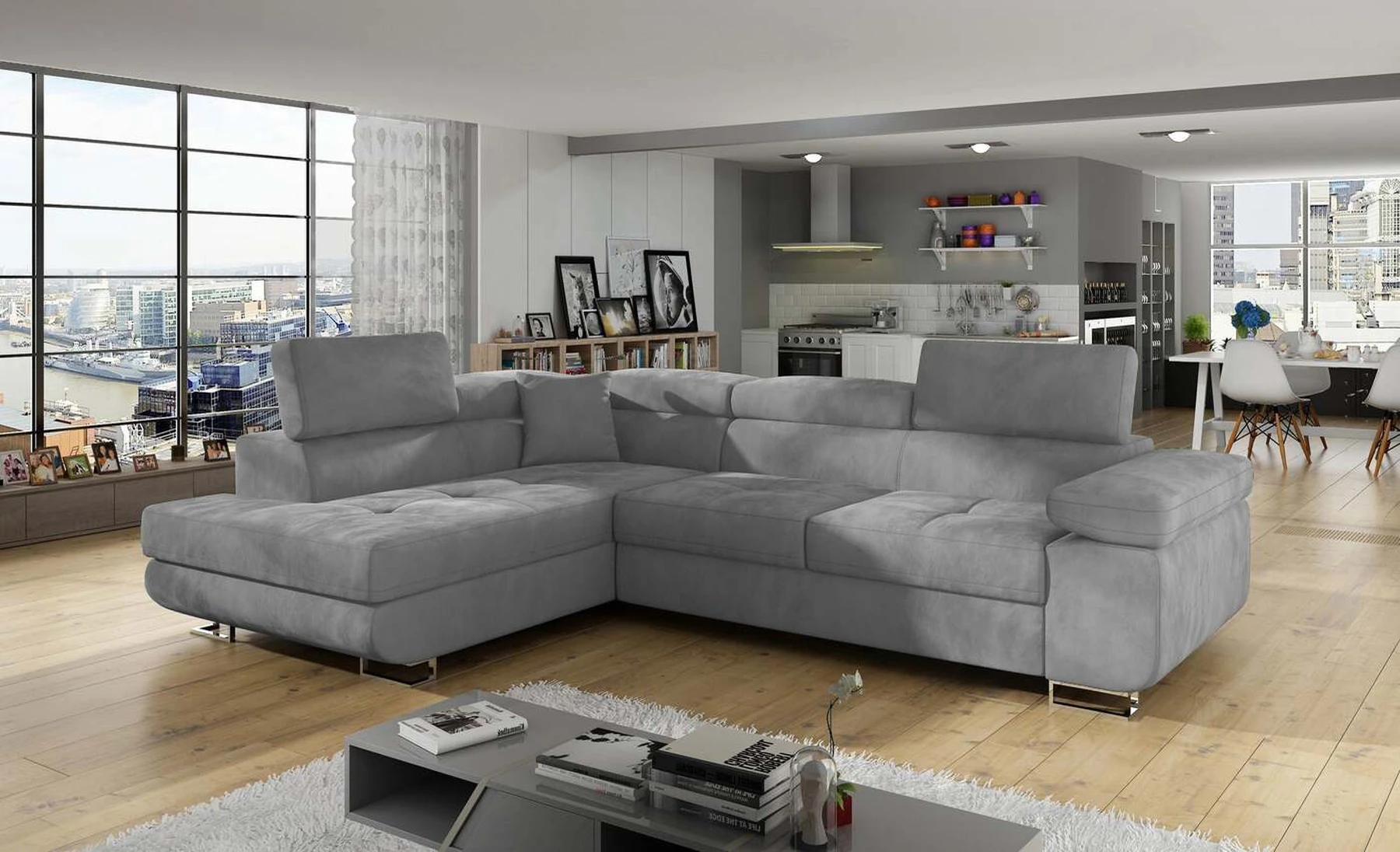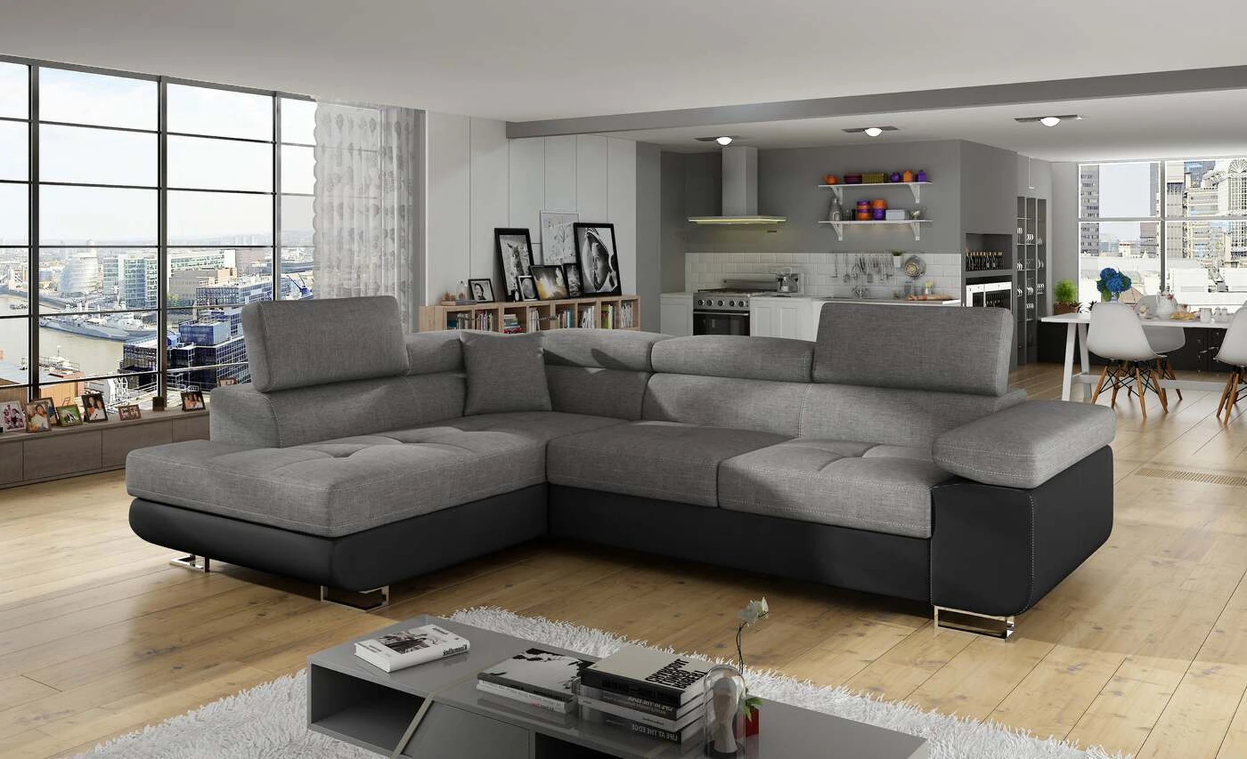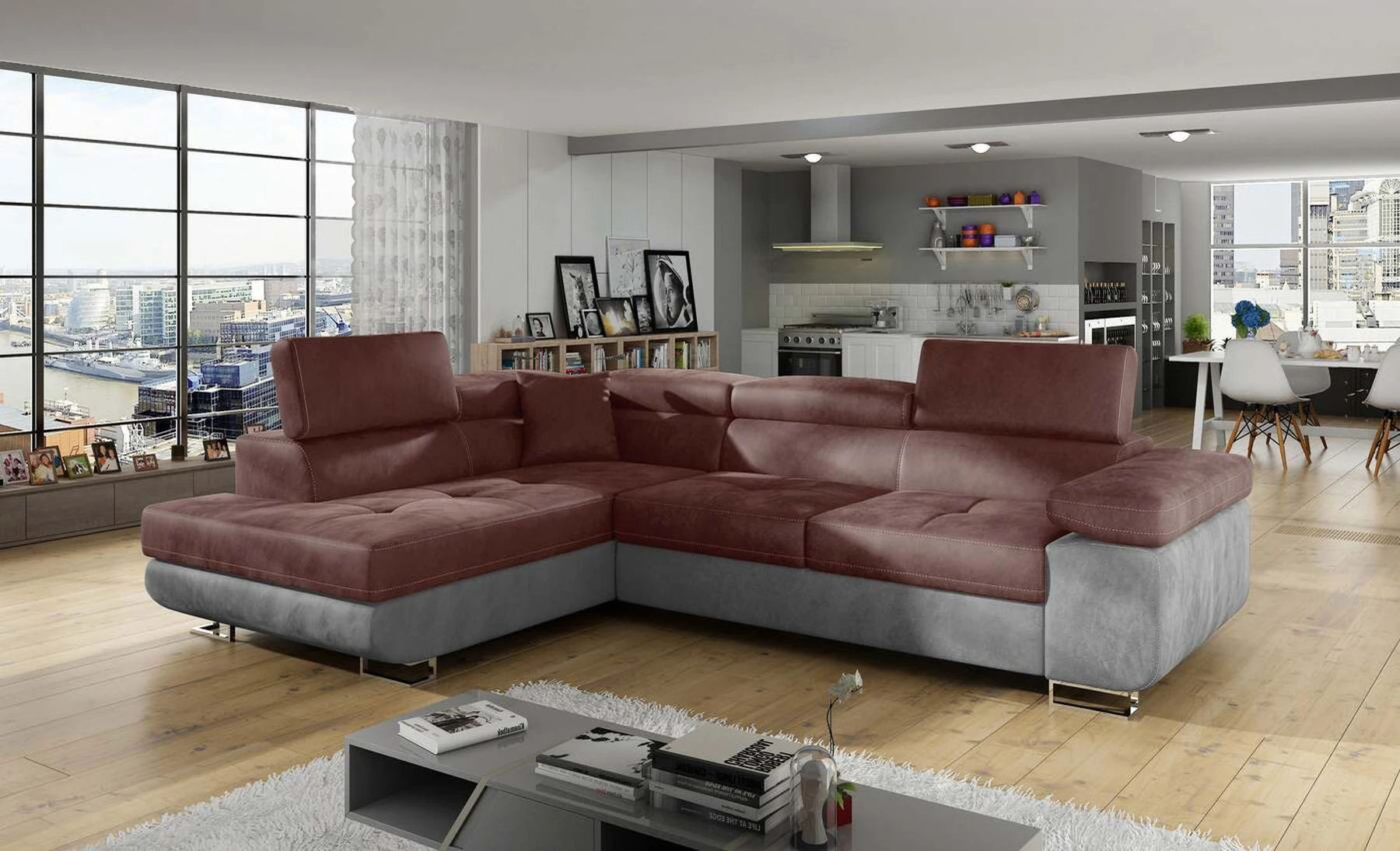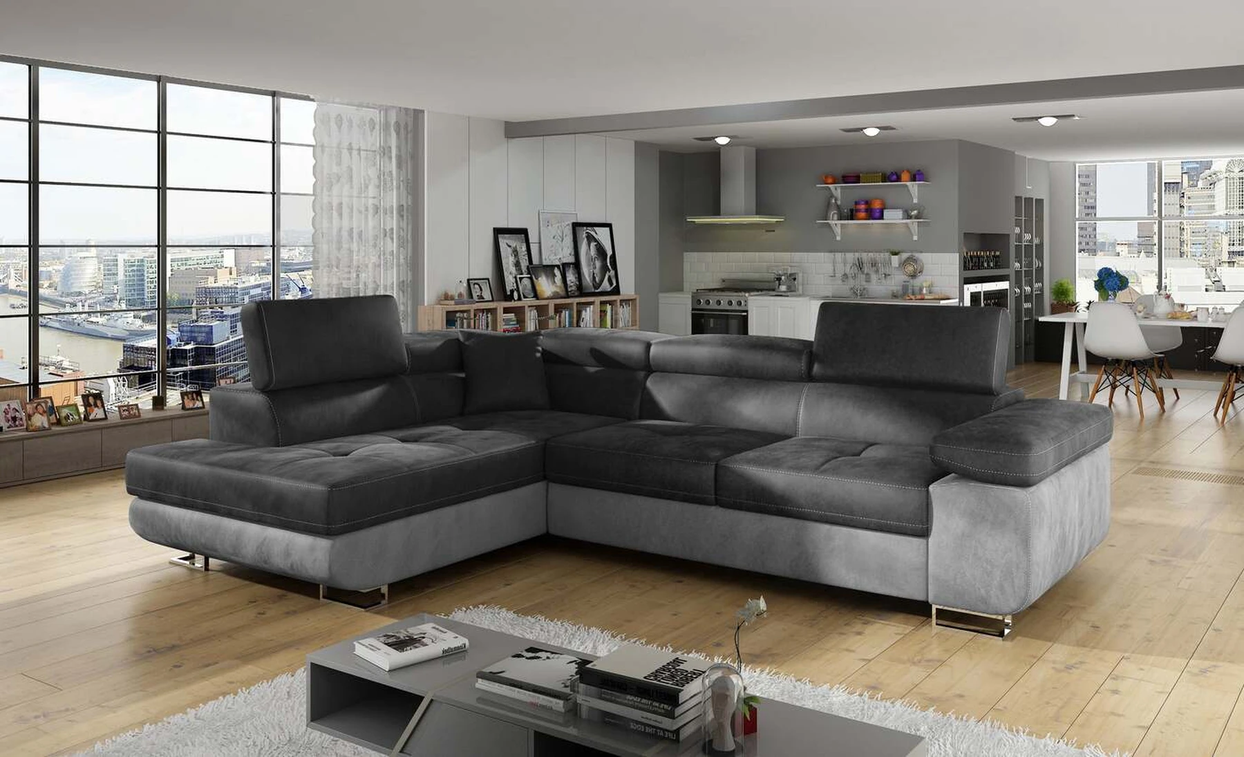 EL3550 yra daugiafunkcė ir erdvi kampinė sofa-lova, pagaminta modernaus stiliaus. Tai yra aukštos kokybės ir maksimalaus komforto sinonimas dėl plačios 60 cm gylio sėdynės ir itin elastingos T30 putos. EL3550, išmatavimai 275 x 202 x 90 cm su didele 125 x 193 cm miegamąja zona, reiškia gerai išsimiegoti. Balduose taip pat yra didelis skyrius patalynei. Didžiausią jaučiamo komforto efektą, be kita ko, įtakoja aukštos reguliuojamos galvos atramos, 28 centimetrų pločio porankiai, taip pat 9 cm aukščio metalinės kojos. Jei susidomėjote, ką dar siūlo EL3550 – raginame rinktis mūsų kampinę sofą-lovą.