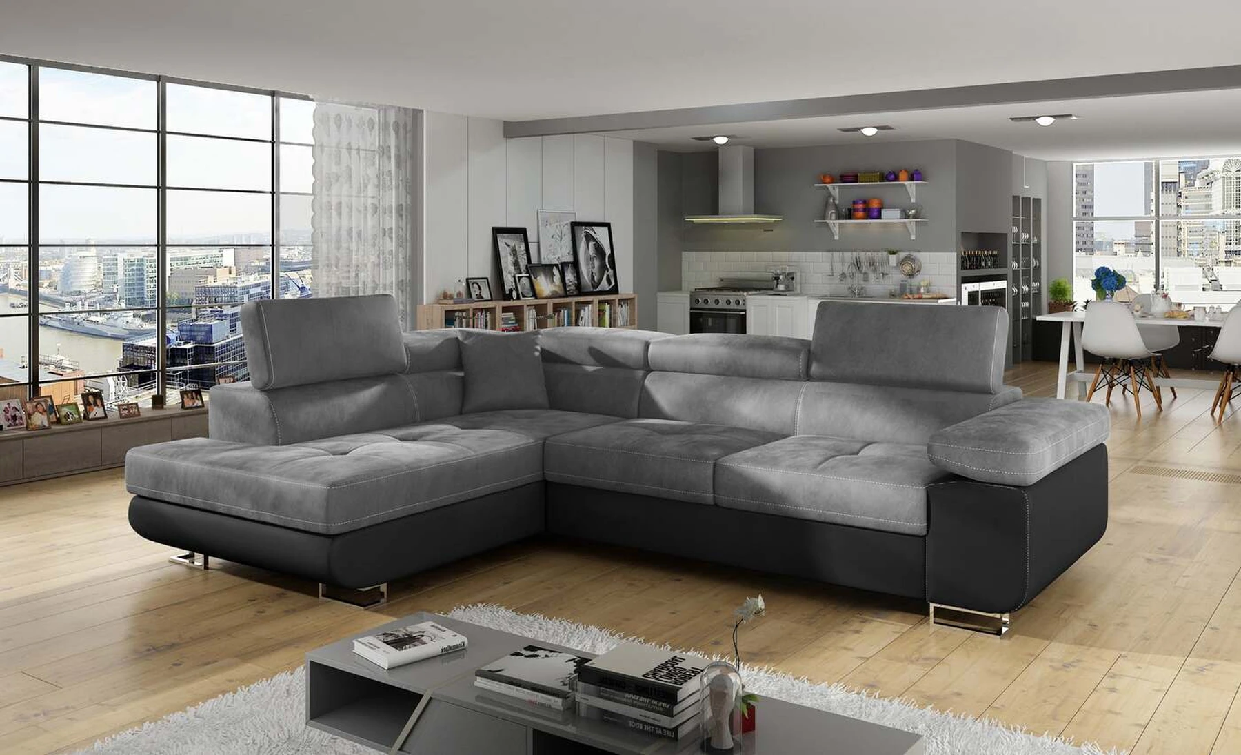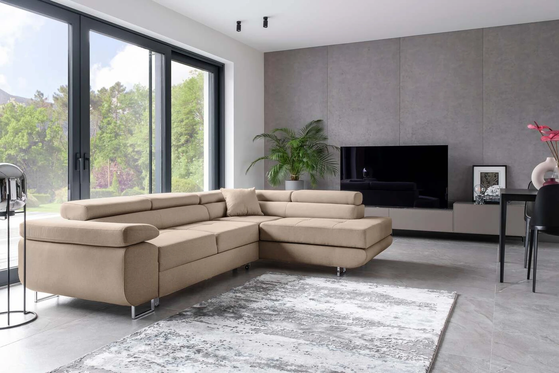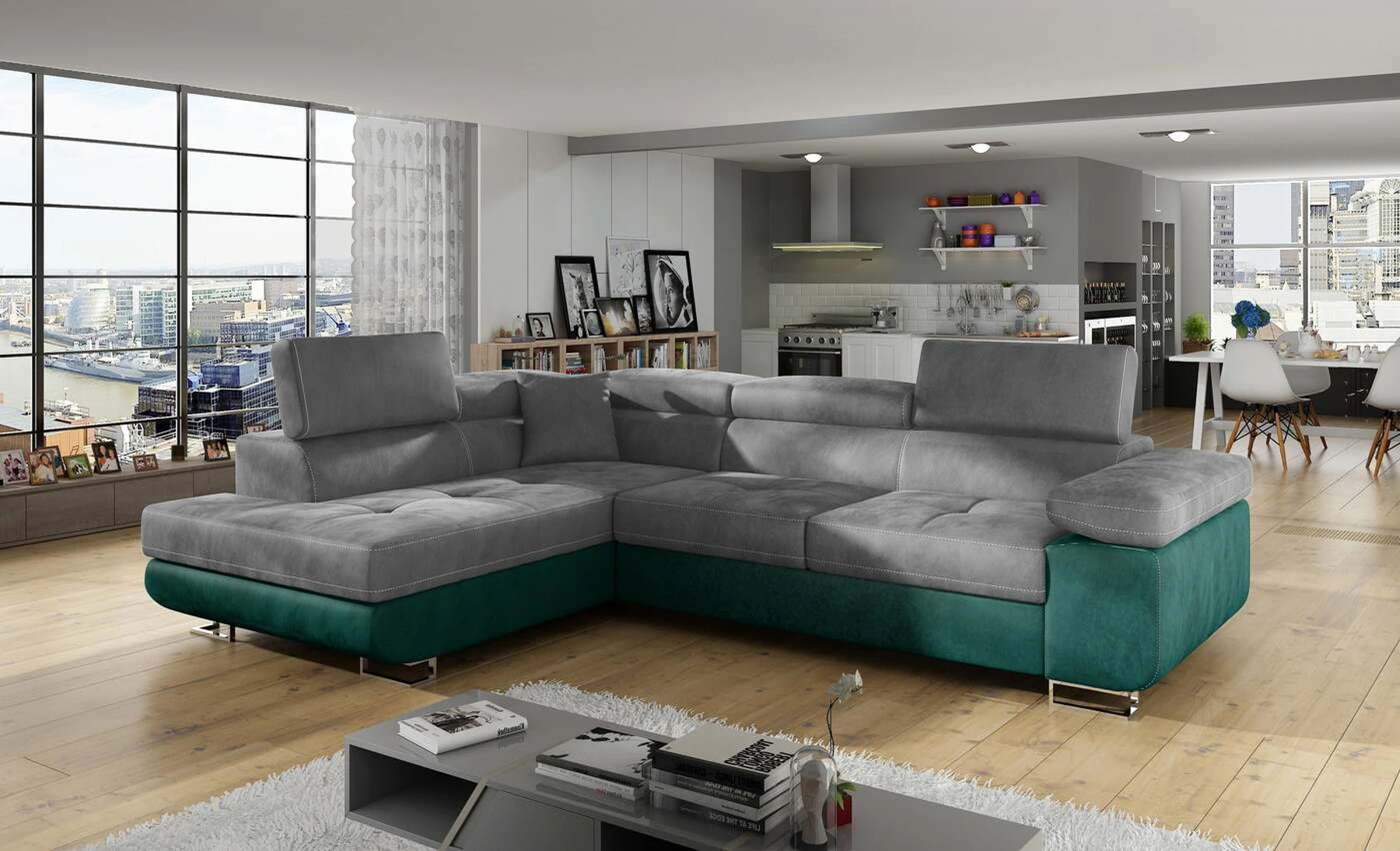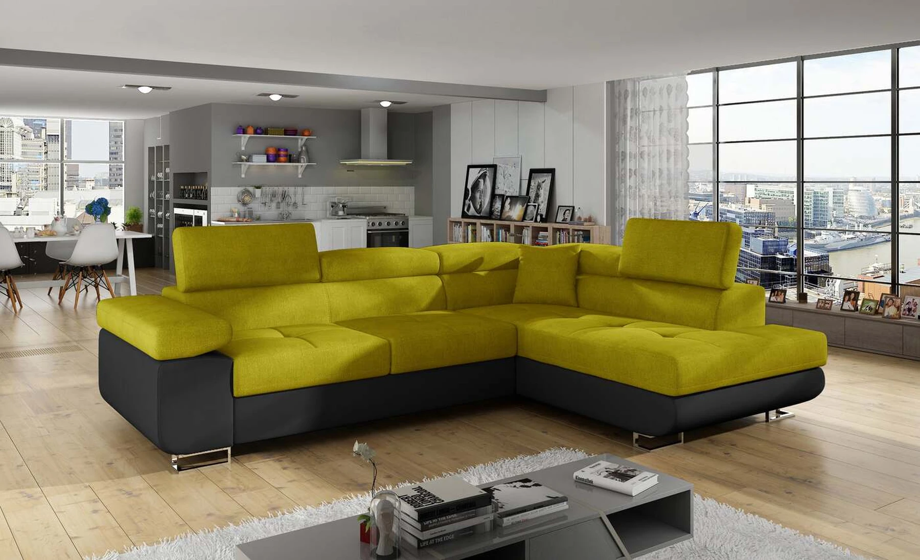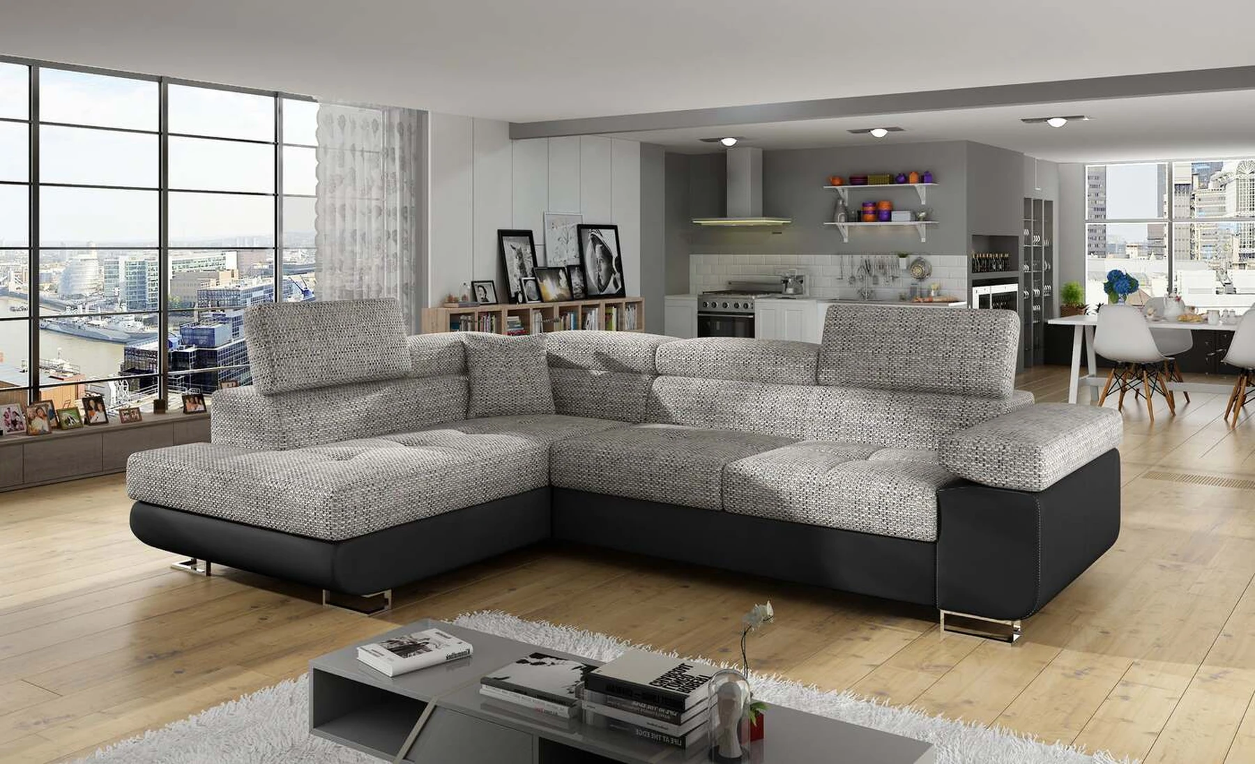 EL3550 yra daugiafunkcė ir erdvi kampinė sofa-lova, pagaminta modernaus stiliaus. Tai yra aukštos kokybės ir maksimalaus komforto sinonimas dėl plačios 60 cm gylio sėdynės ir itin elastingos T30 putos. EL3550, išmatavimai 275 x 202 x 90 cm su didele 125 x 193 cm miegamąja zona, reiškia gerai išsimiegoti. Balduose taip pat yra didelis skyrius patalynei. Didžiausią jaučiamo komforto efektą, be kita ko, įtakoja aukštos reguliuojamos galvos atramos, 28 centimetrų pločio porankiai, taip pat 9 cm aukščio metalinės kojos. Jei susidomėjote, ką dar siūlo EL3550 – raginame rinktis mūsų kampinę sofą-lovą.