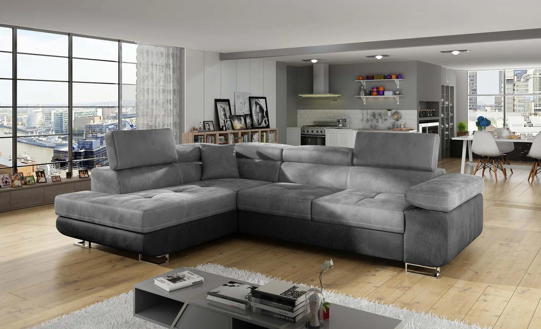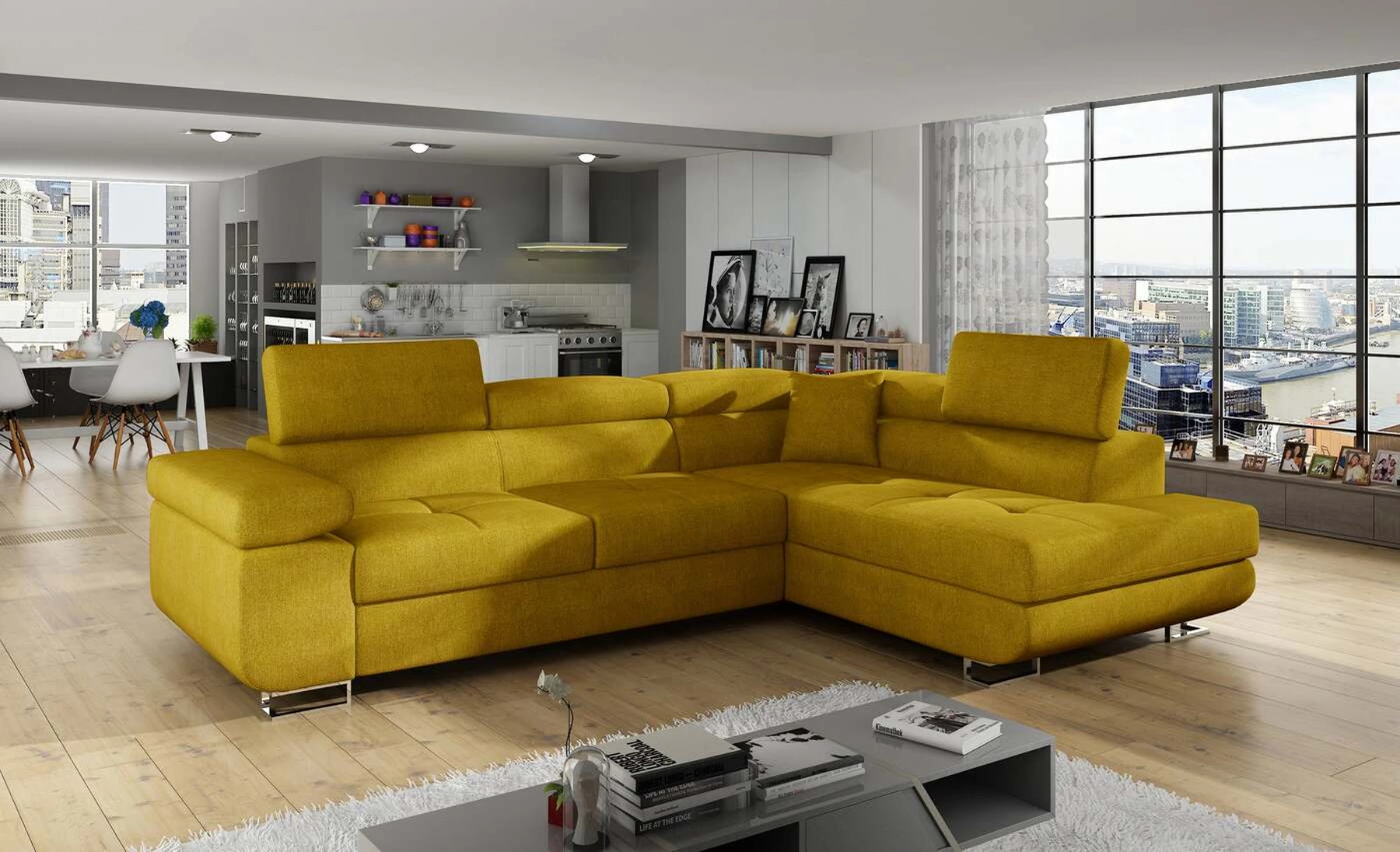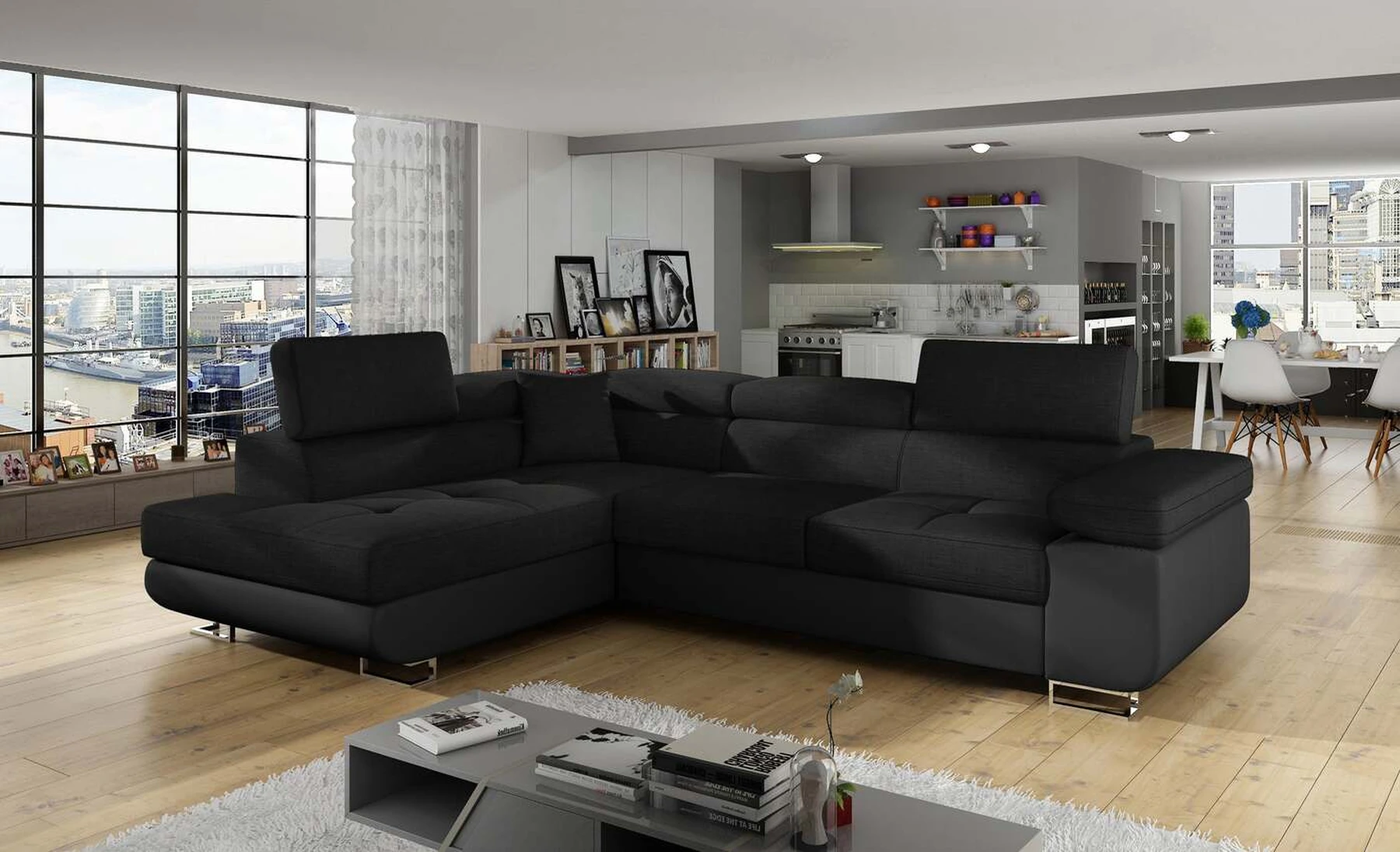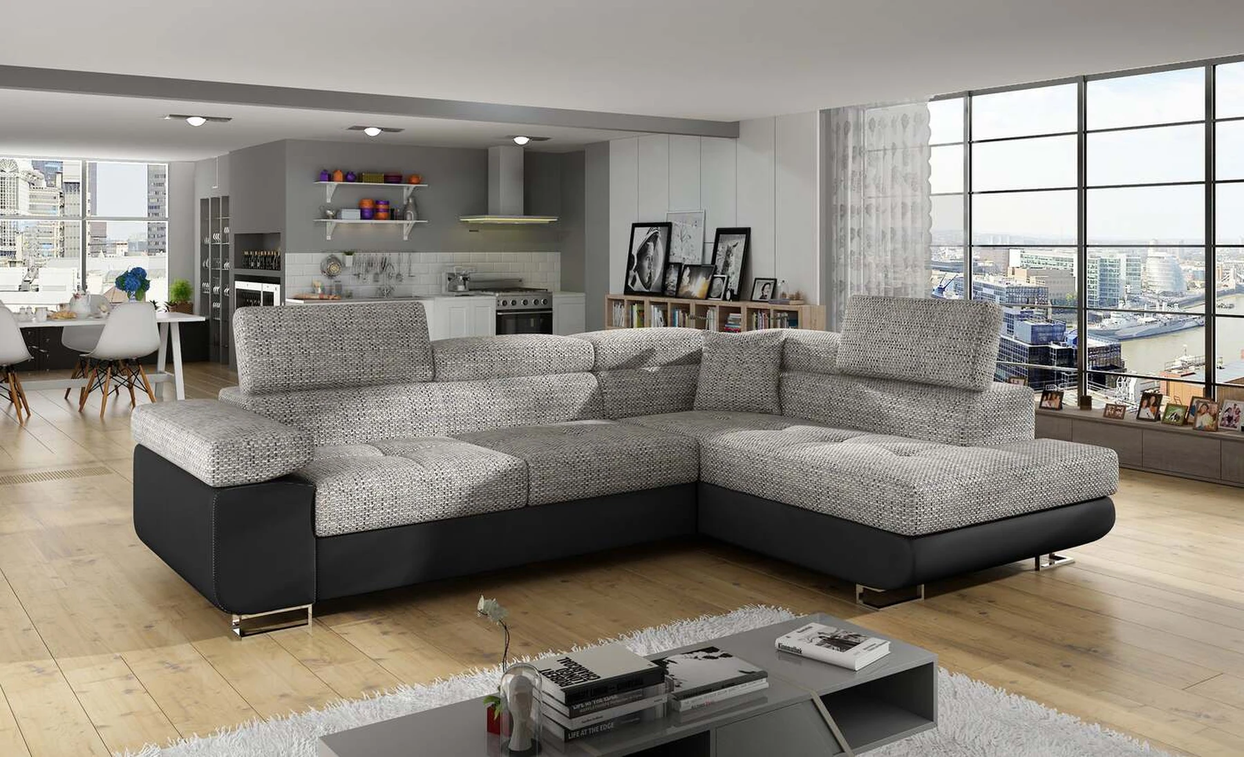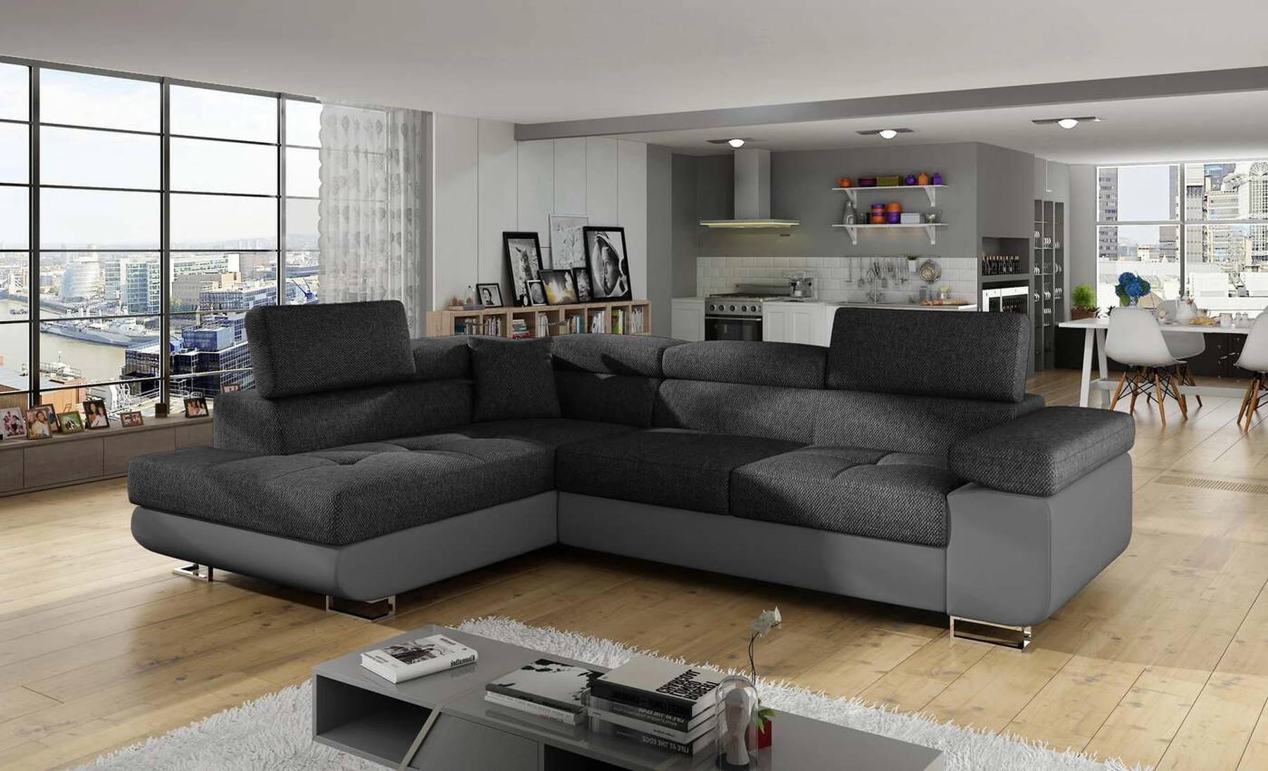 EL3550 yra daugiafunkcė ir erdvi kampinė sofa-lova, pagaminta modernaus stiliaus. Tai yra aukštos kokybės ir maksimalaus komforto sinonimas dėl plačios 60 cm gylio sėdynės ir itin elastingos T30 putos. EL3550, išmatavimai 275 x 202 x 90 cm su didele 125 x 193 cm miegamąja zona, reiškia gerai išsimiegoti. Balduose taip pat yra didelis skyrius patalynei. Didžiausią jaučiamo komforto efektą, be kita ko, įtakoja aukštos reguliuojamos galvos atramos, 28 centimetrų pločio porankiai, taip pat 9 cm aukščio metalinės kojos. Jei susidomėjote, ką dar siūlo EL3550 – raginame rinktis mūsų kampinę sofą-lovą.