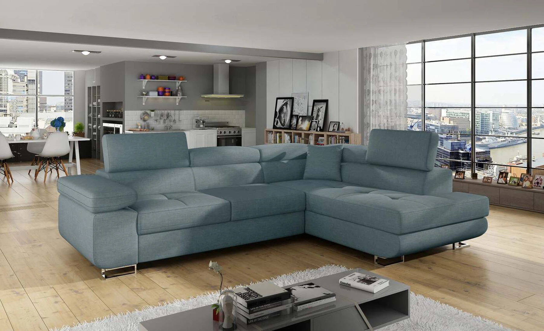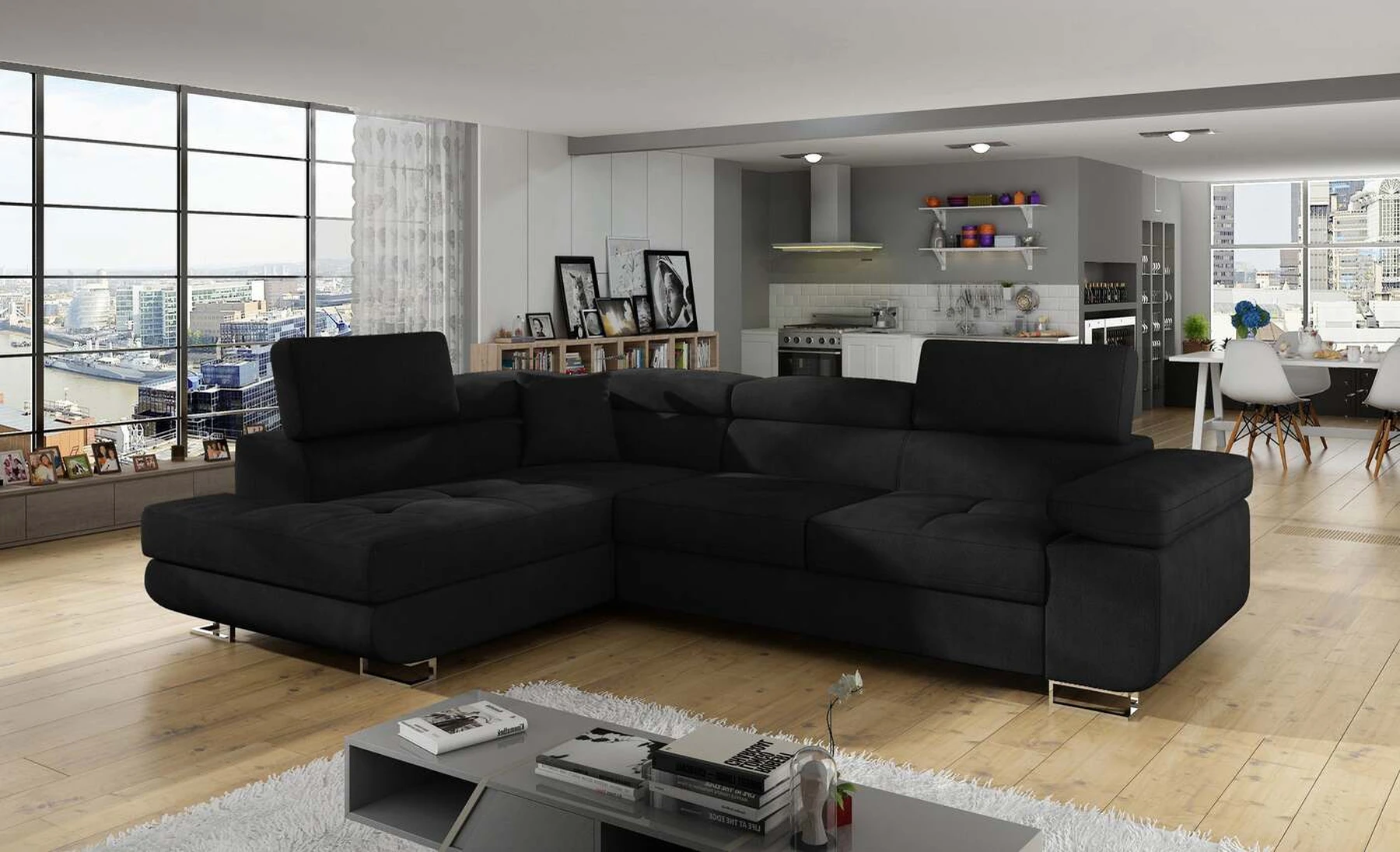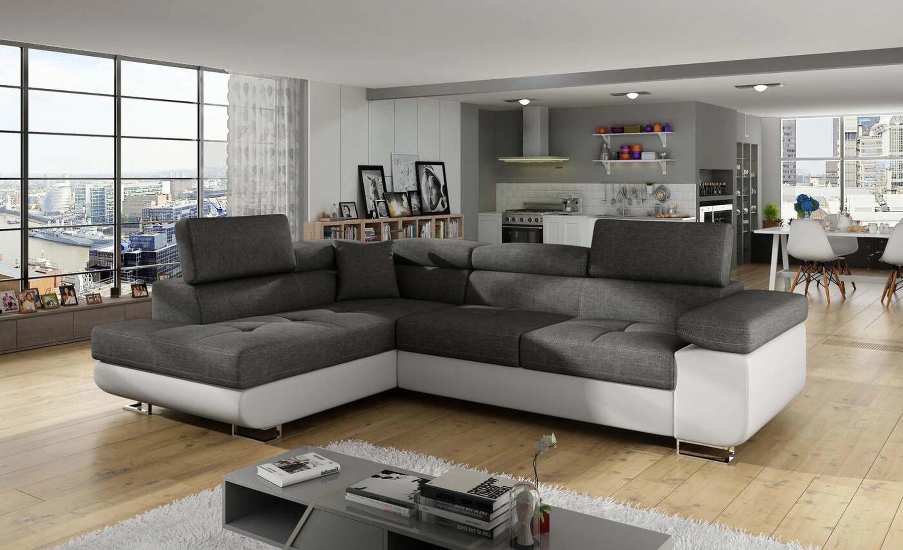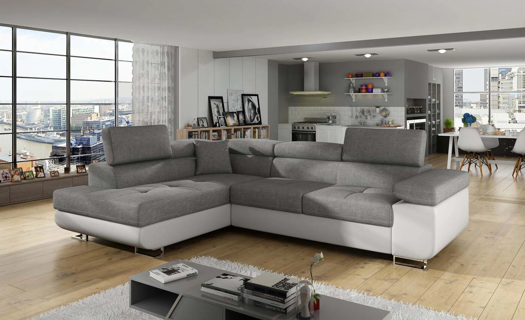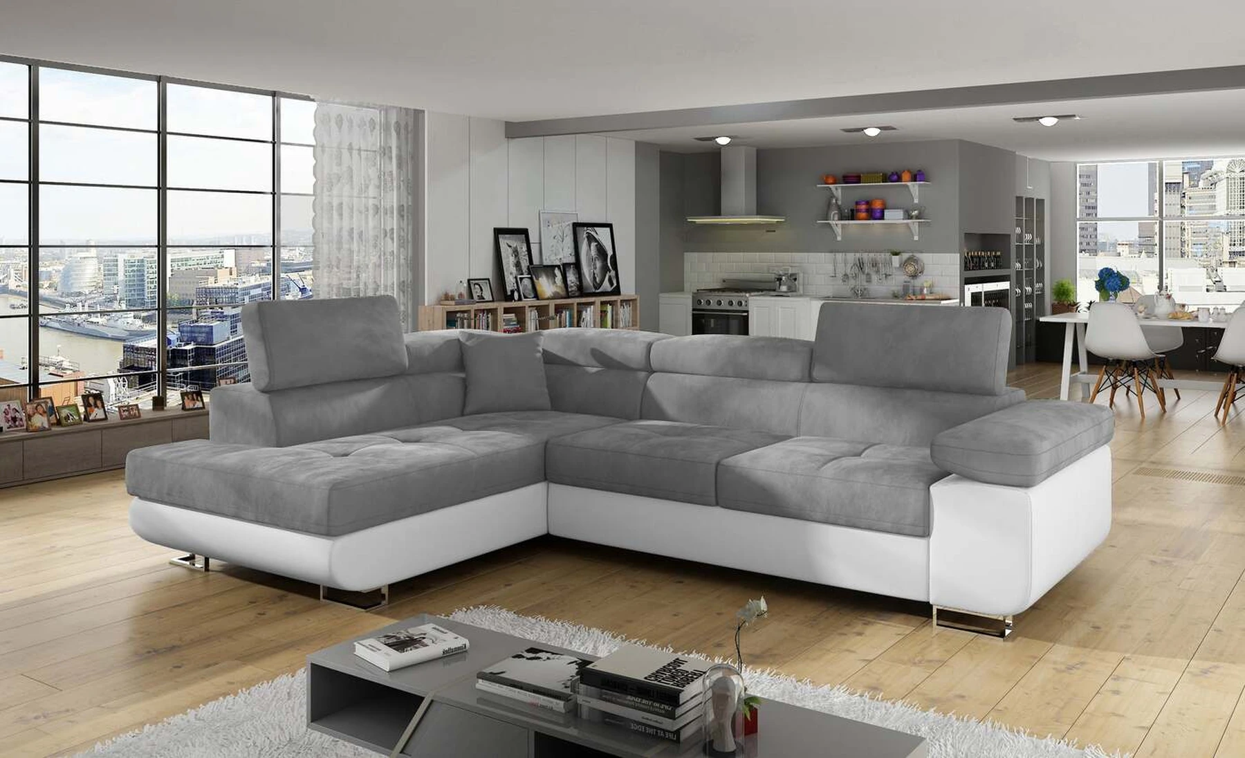 EL3550 yra daugiafunkcė ir erdvi kampinė sofa-lova, pagaminta modernaus stiliaus. Tai yra aukštos kokybės ir maksimalaus komforto sinonimas dėl plačios 60 cm gylio sėdynės ir itin elastingos T30 putos. EL3550, išmatavimai 275 x 202 x 90 cm su didele 125 x 193 cm miegamąja zona, reiškia gerai išsimiegoti. Balduose taip pat yra didelis skyrius patalynei. Didžiausią jaučiamo komforto efektą, be kita ko, įtakoja aukštos reguliuojamos galvos atramos, 28 centimetrų pločio porankiai, taip pat 9 cm aukščio metalinės kojos. Jei susidomėjote, ką dar siūlo EL3550 – raginame rinktis mūsų kampinę sofą-lovą.