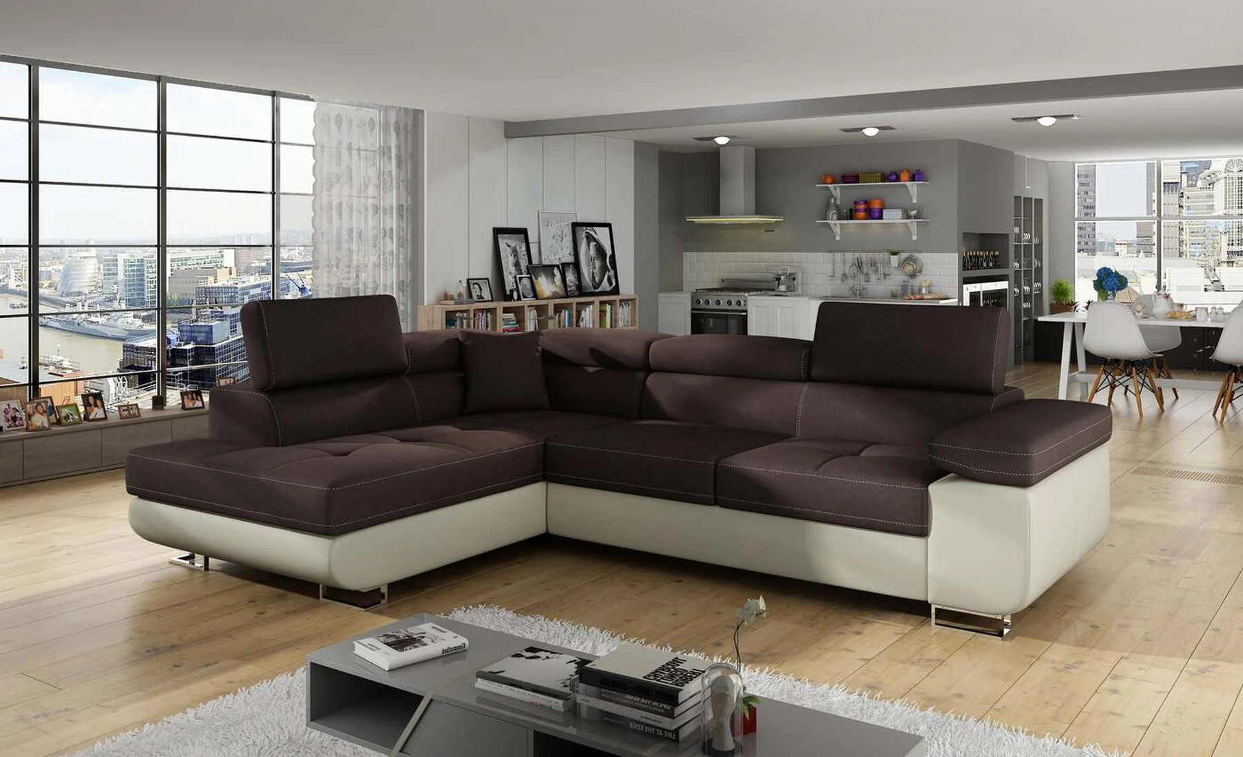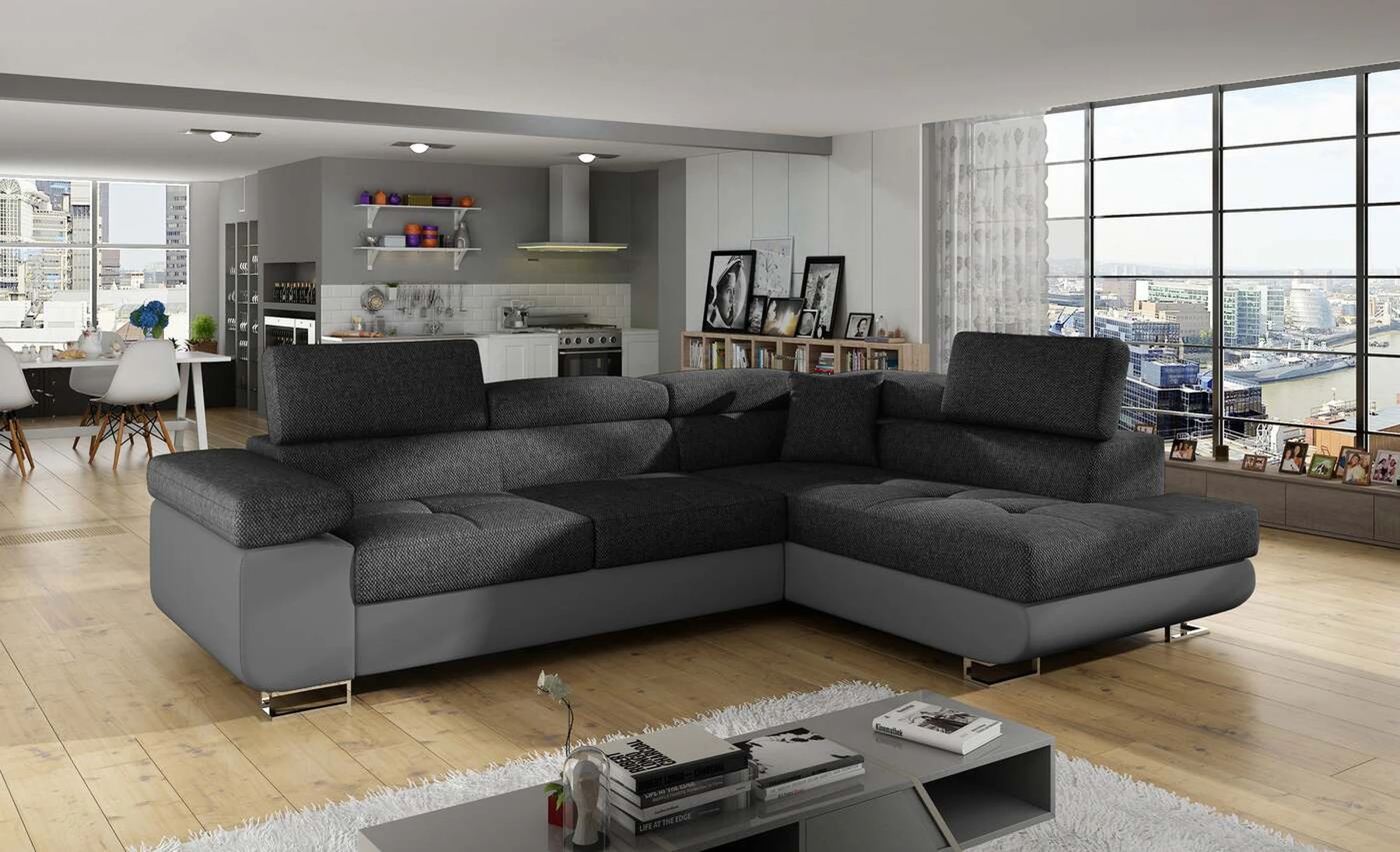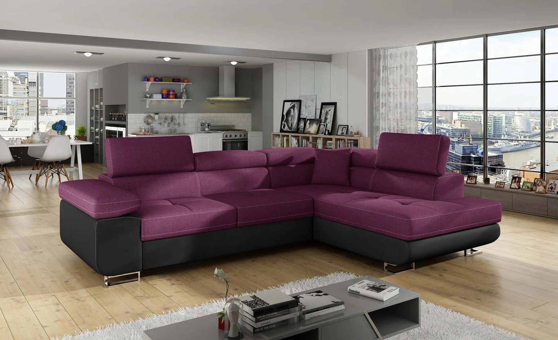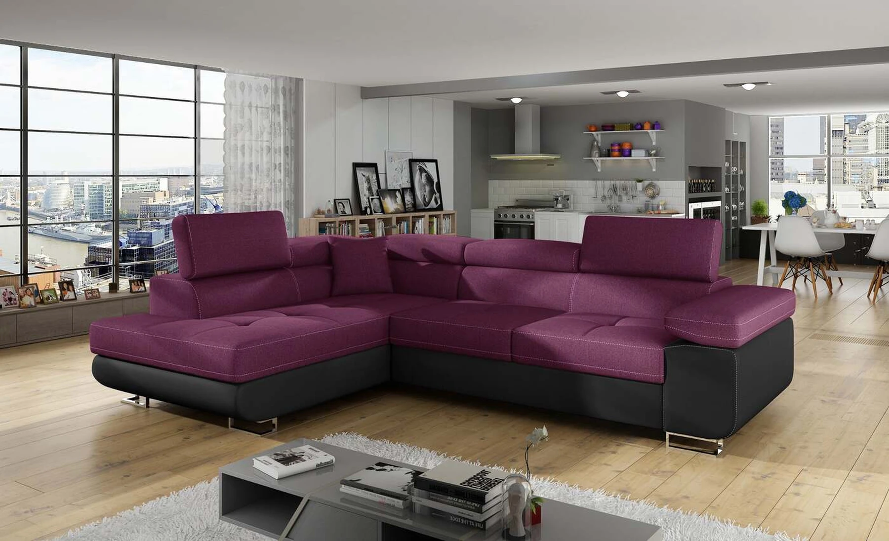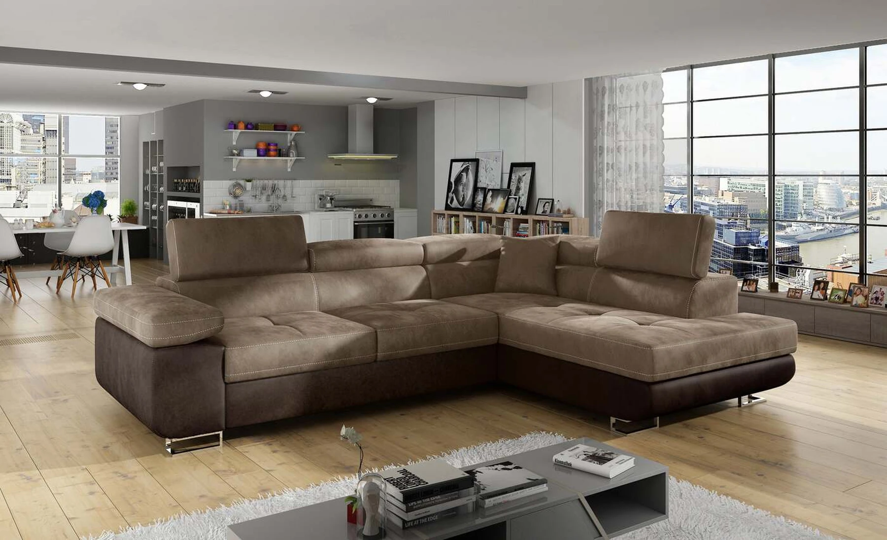 EL3550 yra daugiafunkcė ir erdvi kampinė sofa-lova, pagaminta modernaus stiliaus. Tai yra aukštos kokybės ir maksimalaus komforto sinonimas dėl plačios 60 cm gylio sėdynės ir itin elastingos T30 putos. EL3550, išmatavimai 275 x 202 x 90 cm su didele 125 x 193 cm miegamąja zona, reiškia gerai išsimiegoti. Balduose taip pat yra didelis skyrius patalynei. Didžiausią jaučiamo komforto efektą, be kita ko, įtakoja aukštos reguliuojamos galvos atramos, 28 centimetrų pločio porankiai, taip pat 9 cm aukščio metalinės kojos. Jei susidomėjote, ką dar siūlo EL3550 – raginame rinktis mūsų kampinę sofą-lovą.