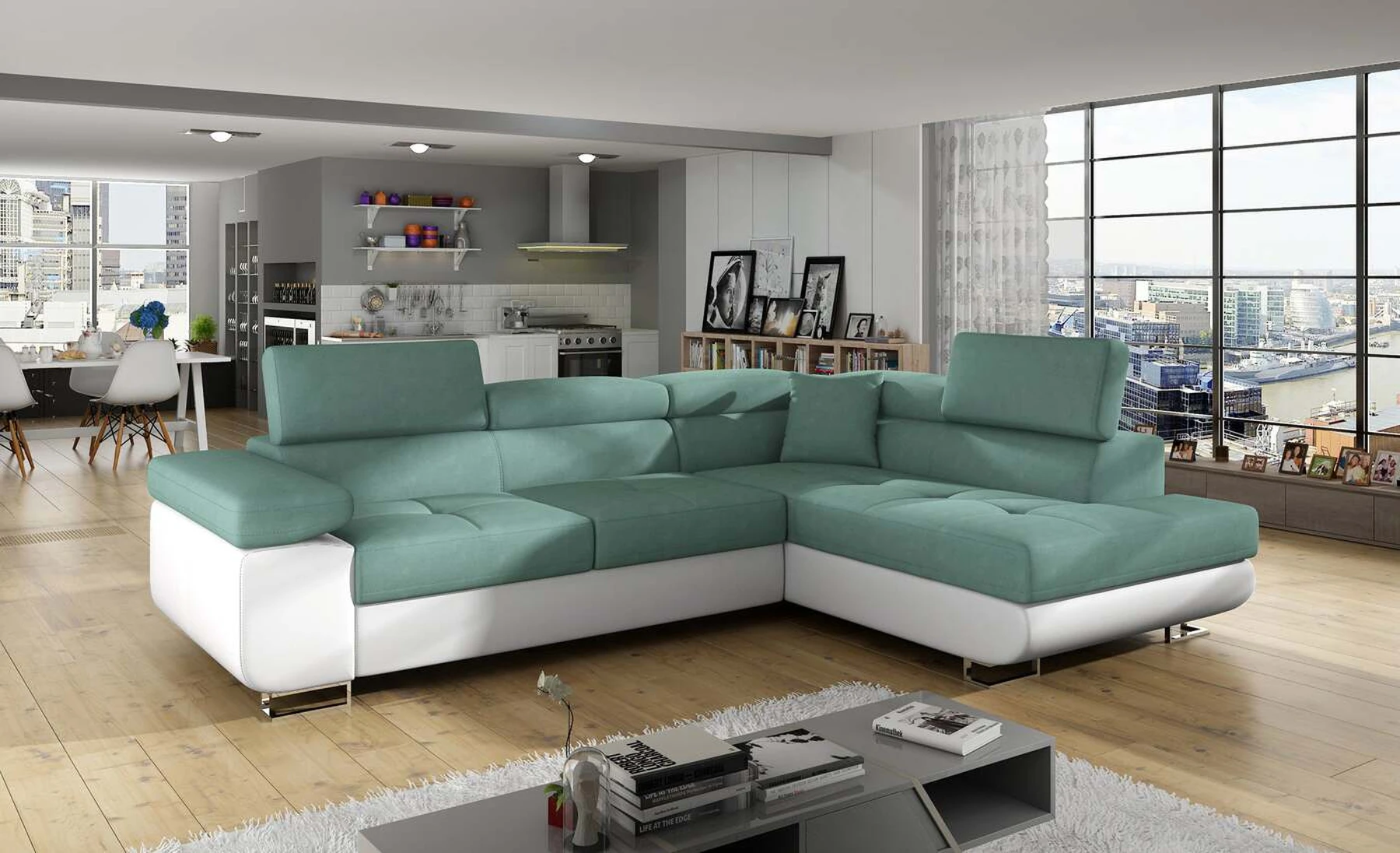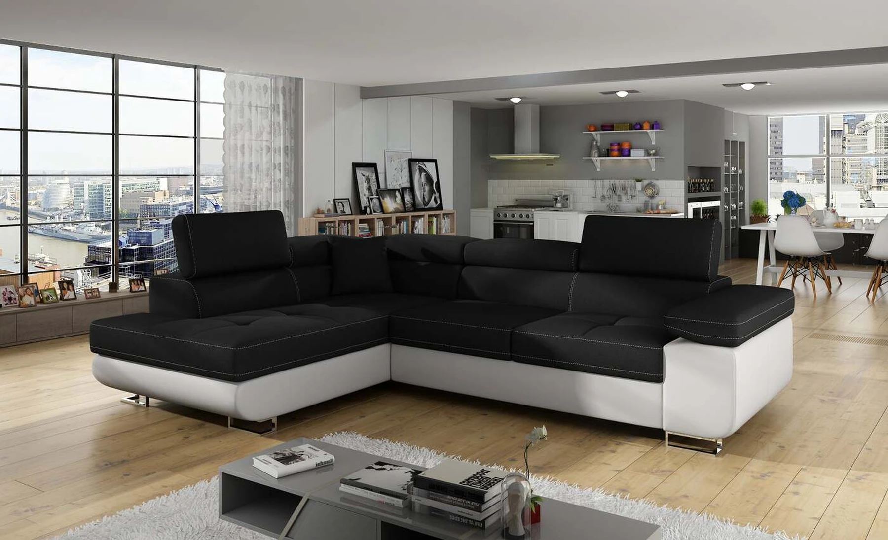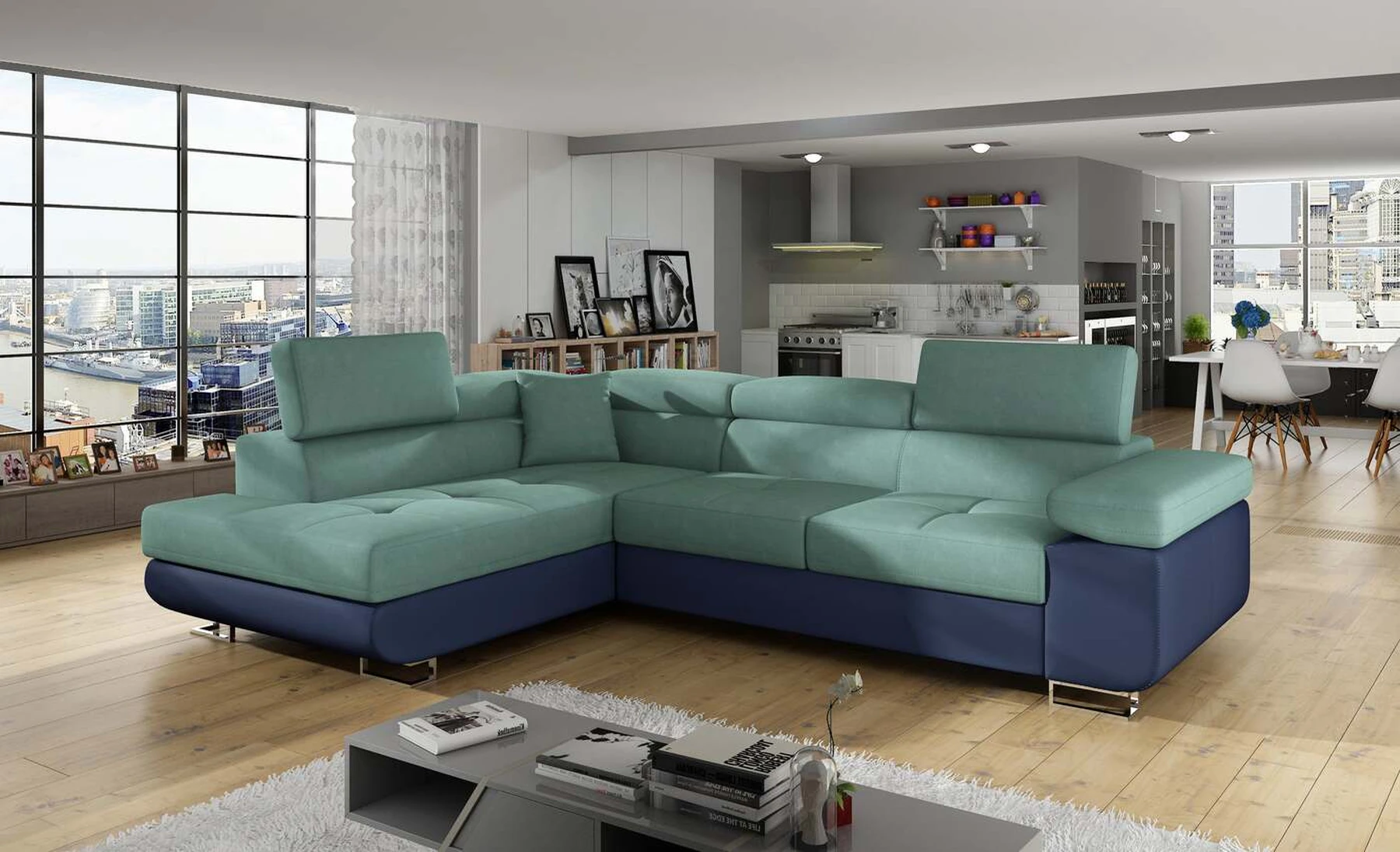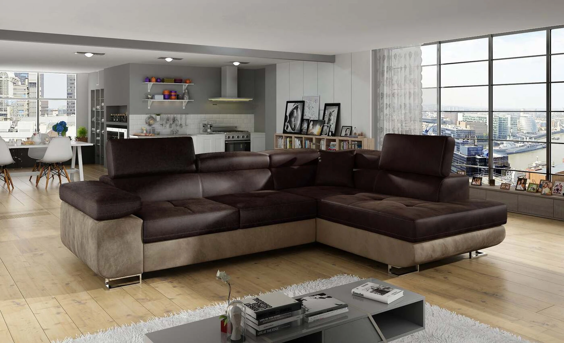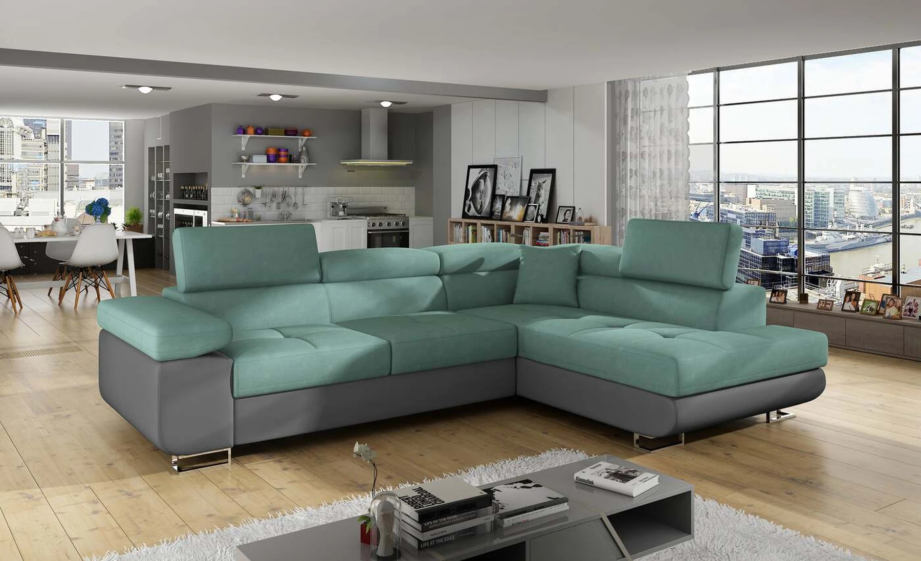 EL3550 yra daugiafunkcė ir erdvi kampinė sofa-lova, pagaminta modernaus stiliaus. Tai yra aukštos kokybės ir maksimalaus komforto sinonimas dėl plačios 60 cm gylio sėdynės ir itin elastingos T30 putos. EL3550, išmatavimai 275 x 202 x 90 cm su didele 125 x 193 cm miegamąja zona, reiškia gerai išsimiegoti. Balduose taip pat yra didelis skyrius patalynei. Didžiausią jaučiamo komforto efektą, be kita ko, įtakoja aukštos reguliuojamos galvos atramos, 28 centimetrų pločio porankiai, taip pat 9 cm aukščio metalinės kojos. Jei susidomėjote, ką dar siūlo EL3550 – raginame rinktis mūsų kampinę sofą-lovą.