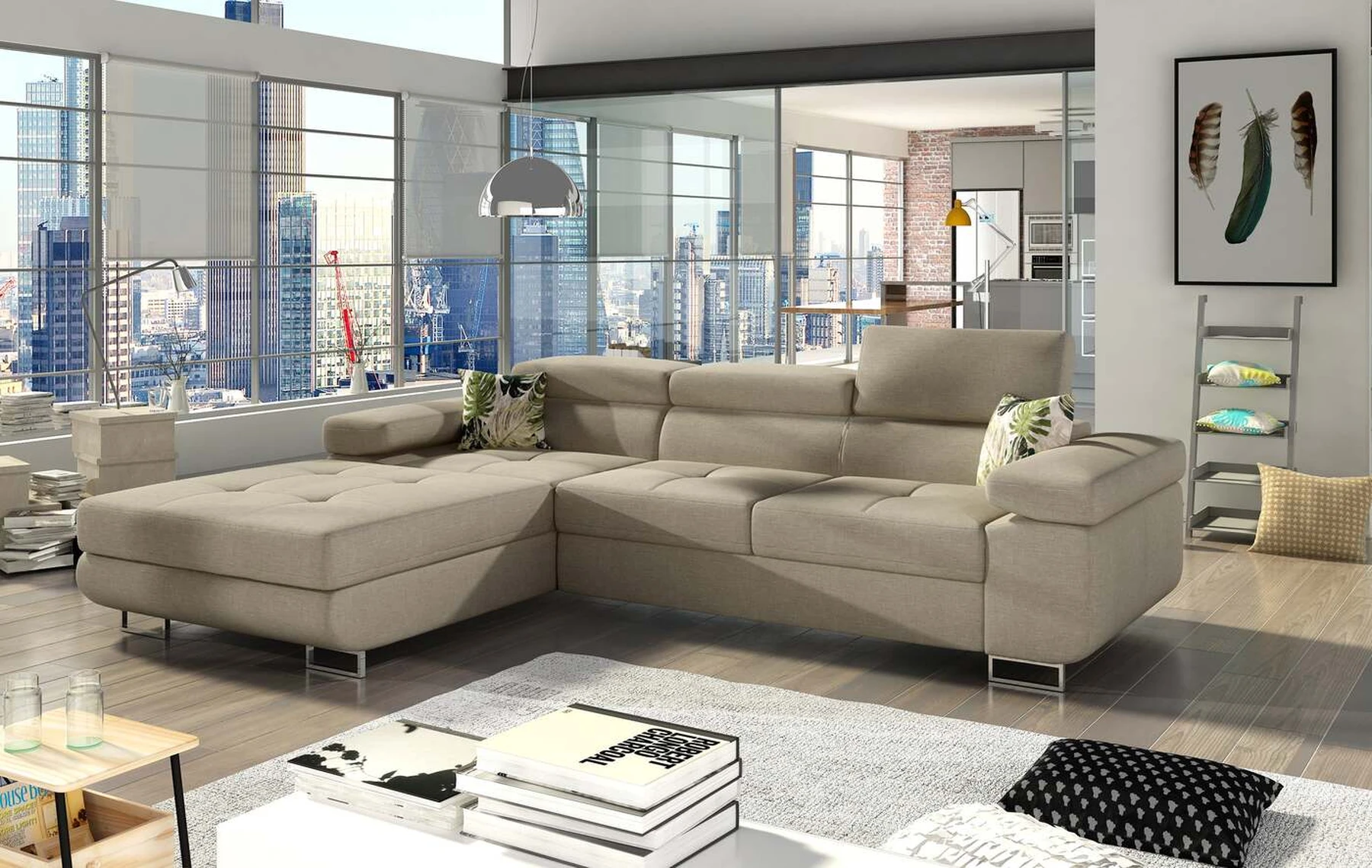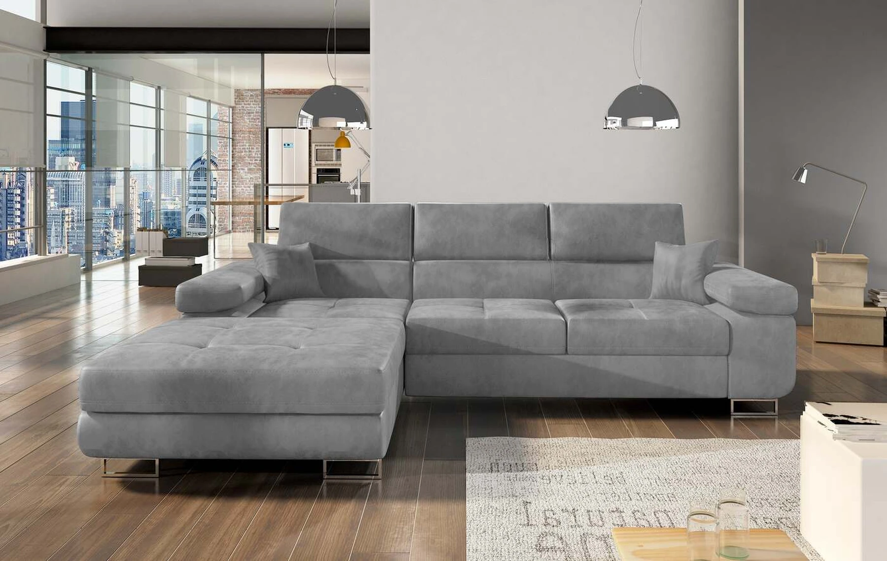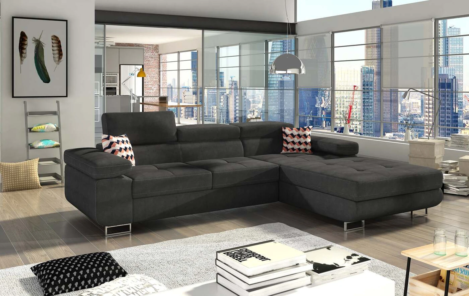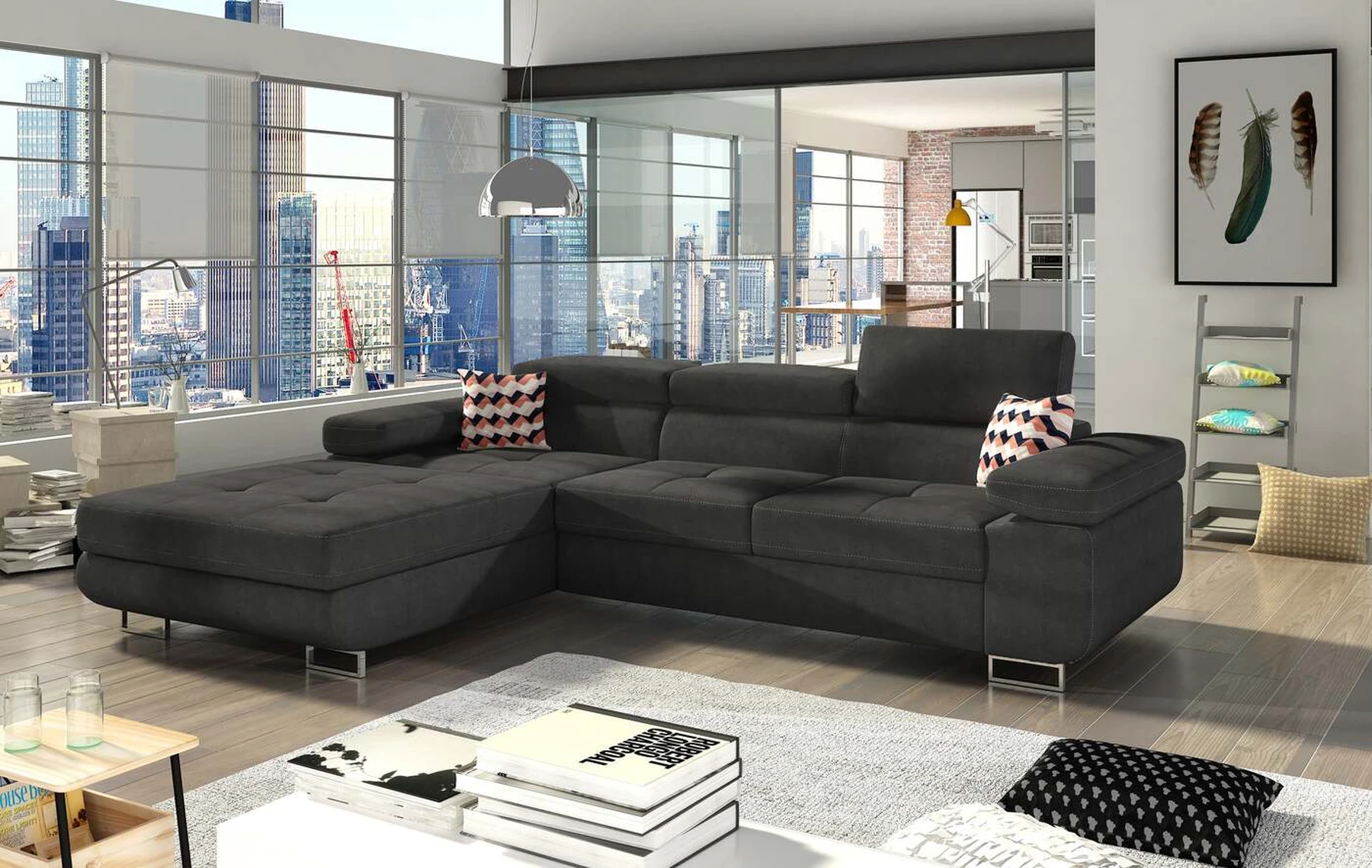 EL3776 yra stilinga, funkcionali ir, svarbiausia, elegantiška kampinė sofa, skirta reikliems komforto žinovams. Aukštą poilsio komfortą sustiprina platūs porankiai, gražių kontūrų atlošas ir reguliuojamos, aukštos galvos atramos. 280 x 205 x 90 cm matmenų erdvaus kampinio bloko sėdynė pagaminta iš T30 putplasčio, kuris yra atsakingas už maksimalų komfortą ir elastingumą. L formos kampinis blokas turi miegojimo funkciją, kurios plotas yra 125 x 198 cm. Be to, jame taip pat yra didelis skyrius patalynei. Dėl subtilių skiautinių detalių, elegantiškų siūlių ir aukštų, chromuotų kojų, kampinis blokas išlaikomas šiuolaikiško apdailos stiliumi. EL3776 yra įvairių spalvų. Verta turėti tokį baldą savo namuose.