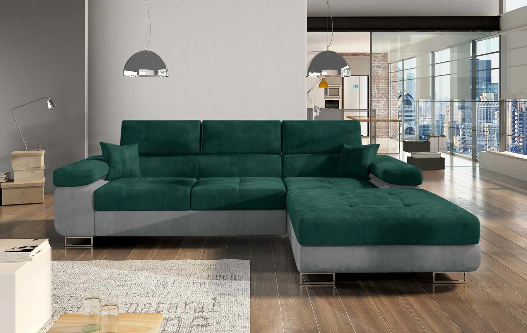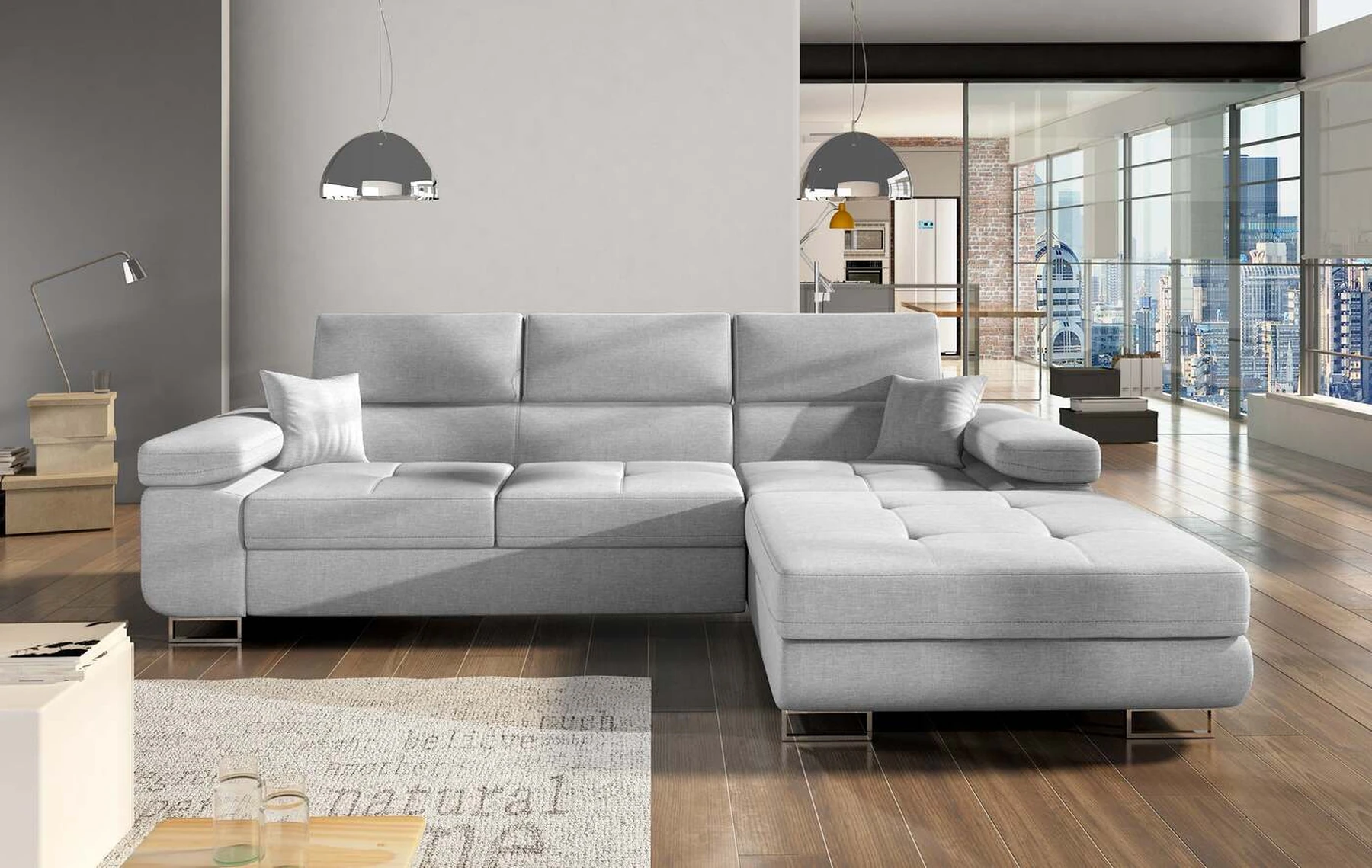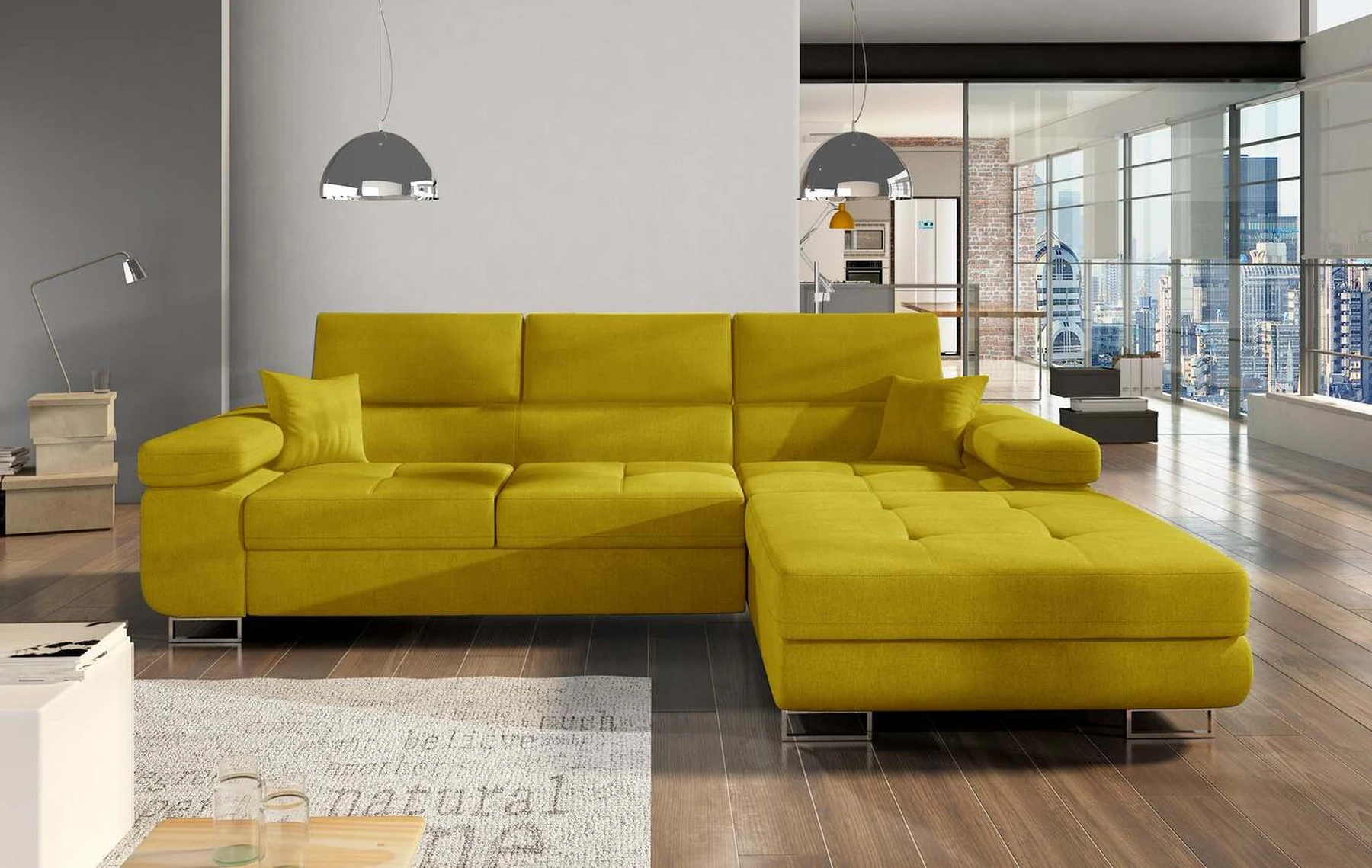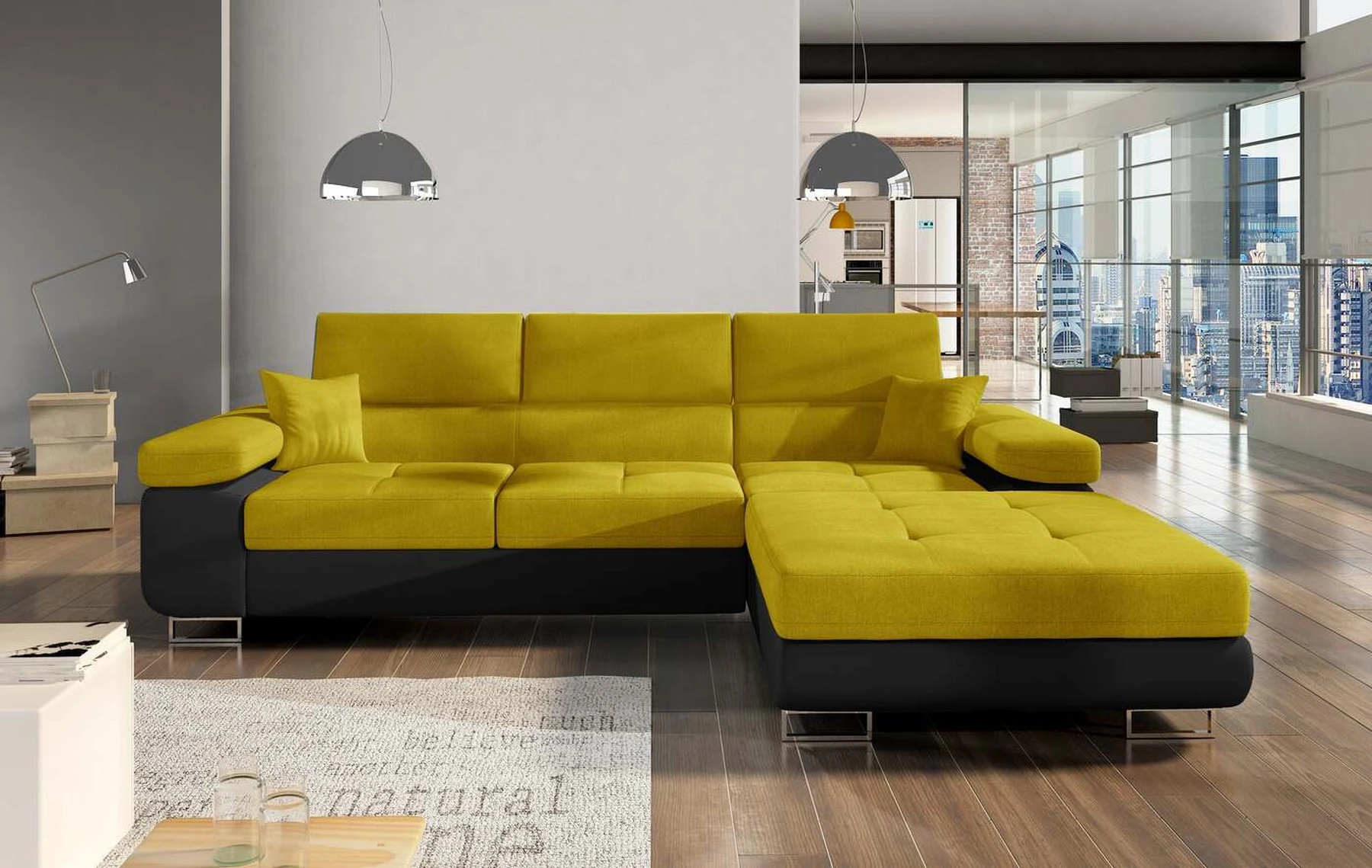 EL3776 yra stilinga, funkcionali ir, svarbiausia, elegantiška kampinė sofa, skirta reikliems komforto žinovams. Aukštą poilsio komfortą sustiprina platūs porankiai, gražių kontūrų atlošas ir reguliuojamos, aukštos galvos atramos. 280 x 205 x 90 cm matmenų erdvaus kampinio bloko sėdynė pagaminta iš T30 putplasčio, kuris yra atsakingas už maksimalų komfortą ir elastingumą. L formos kampinis blokas turi miegojimo funkciją, kurios plotas yra 125 x 198 cm. Be to, jame taip pat yra didelis skyrius patalynei. Dėl subtilių skiautinių detalių, elegantiškų siūlių ir aukštų, chromuotų kojų, kampinis blokas išlaikomas šiuolaikiško apdailos stiliumi. EL3776 yra įvairių spalvų. Verta turėti tokį baldą savo namuose.