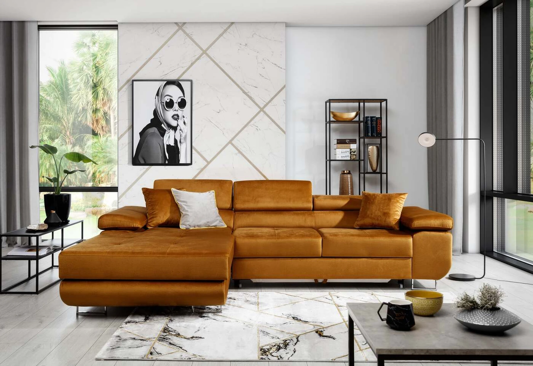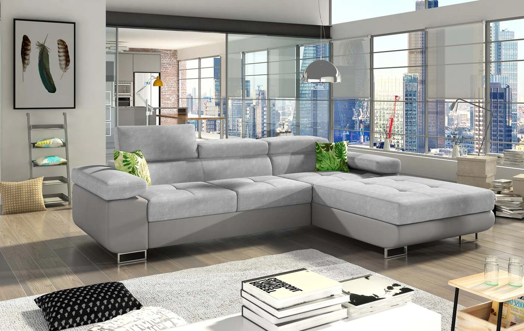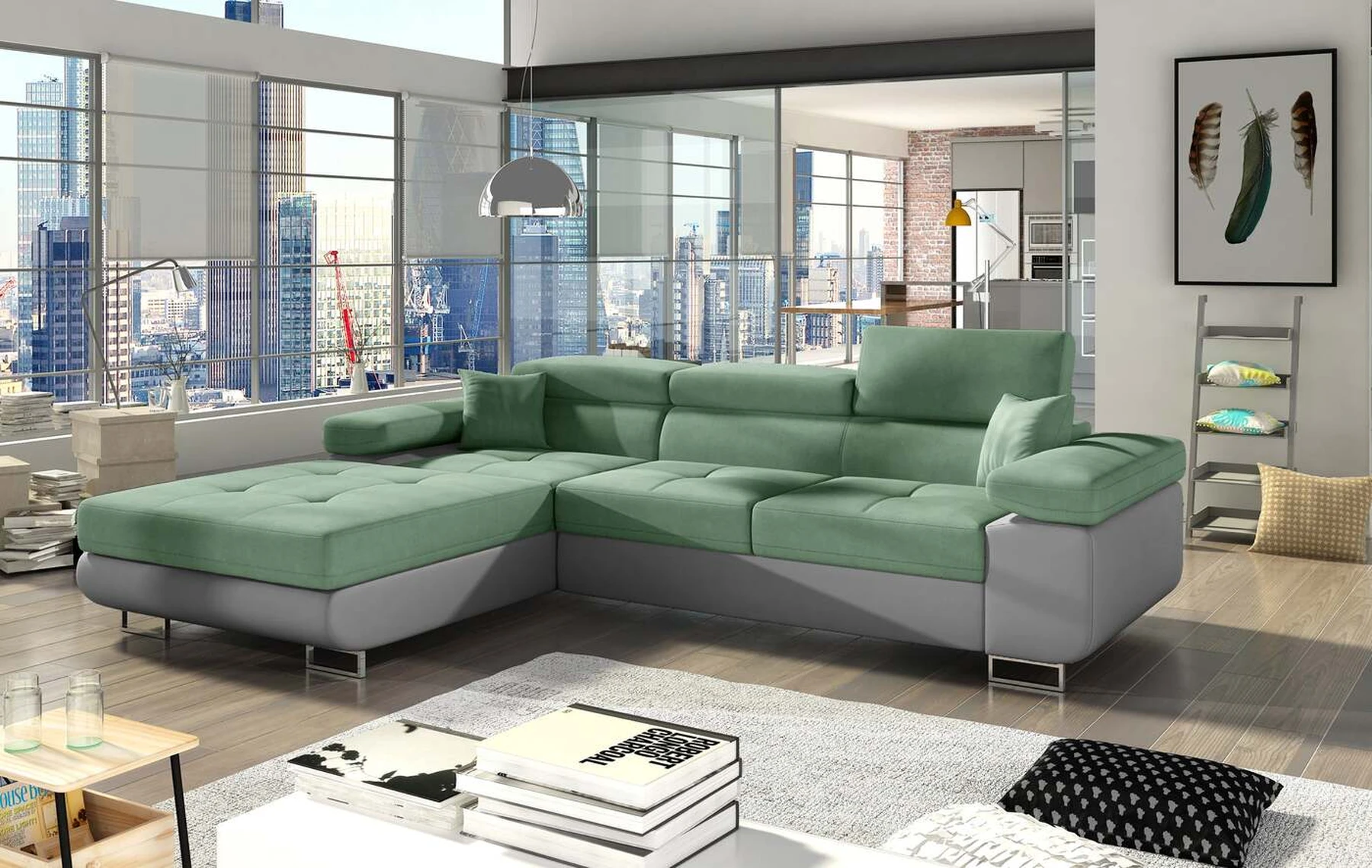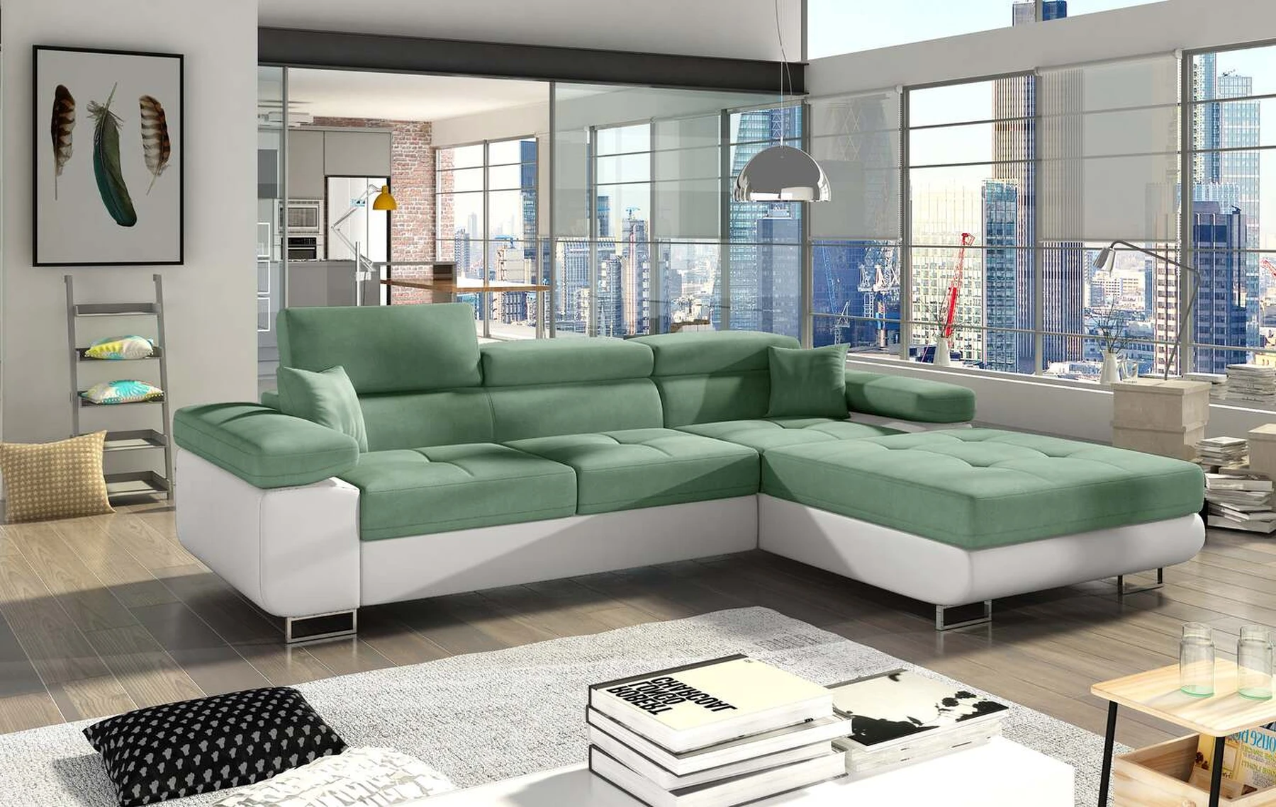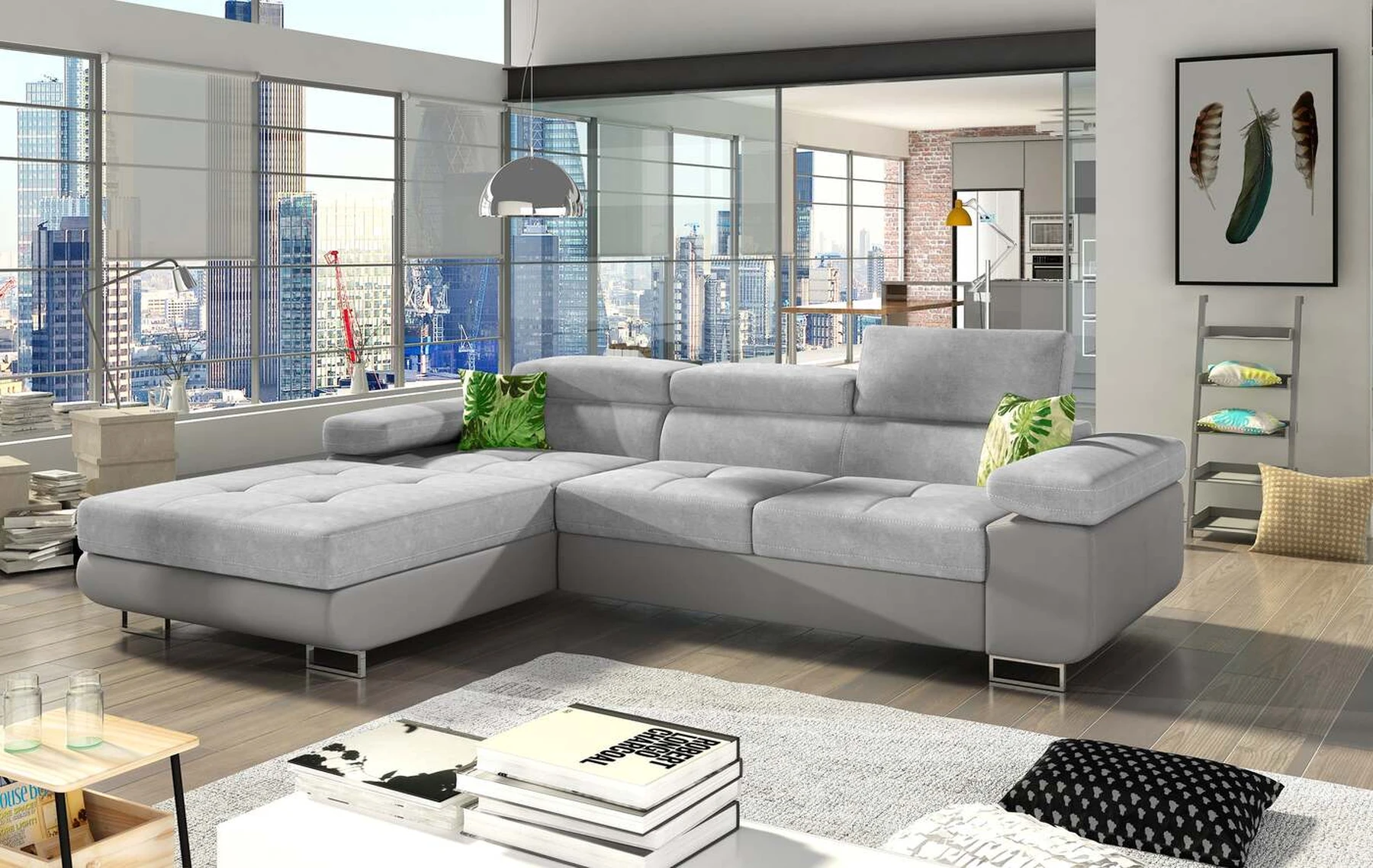 EL3776 yra stilinga, funkcionali ir, svarbiausia, elegantiška kampinė sofa, skirta reikliems komforto žinovams. Aukštą poilsio komfortą sustiprina platūs porankiai, gražių kontūrų atlošas ir reguliuojamos, aukštos galvos atramos. 280 x 205 x 90 cm matmenų erdvaus kampinio bloko sėdynė pagaminta iš T30 putplasčio, kuris yra atsakingas už maksimalų komfortą ir elastingumą. L formos kampinis blokas turi miegojimo funkciją, kurios plotas yra 125 x 198 cm. Be to, jame taip pat yra didelis skyrius patalynei. Dėl subtilių skiautinių detalių, elegantiškų siūlių ir aukštų, chromuotų kojų, kampinis blokas išlaikomas šiuolaikiško apdailos stiliumi. EL3776 yra įvairių spalvų. Verta turėti tokį baldą savo namuose.