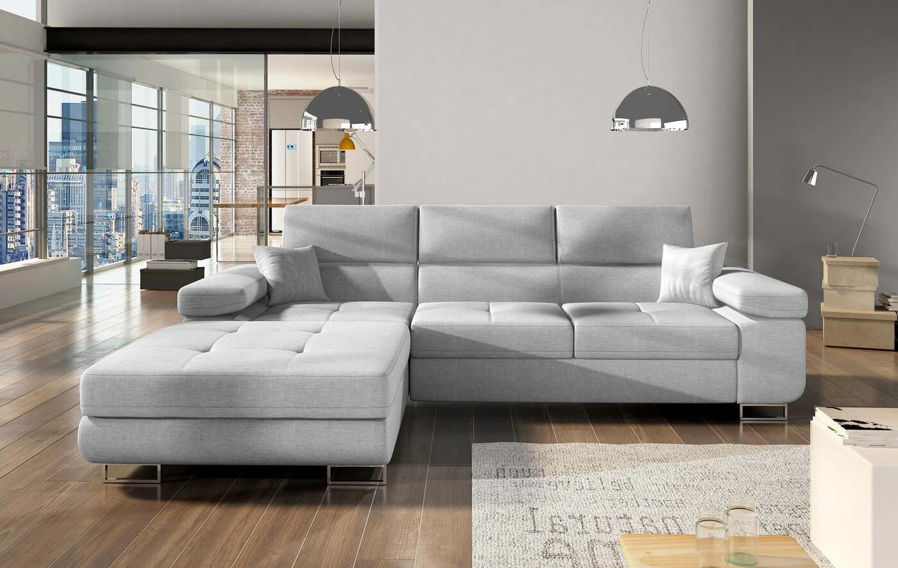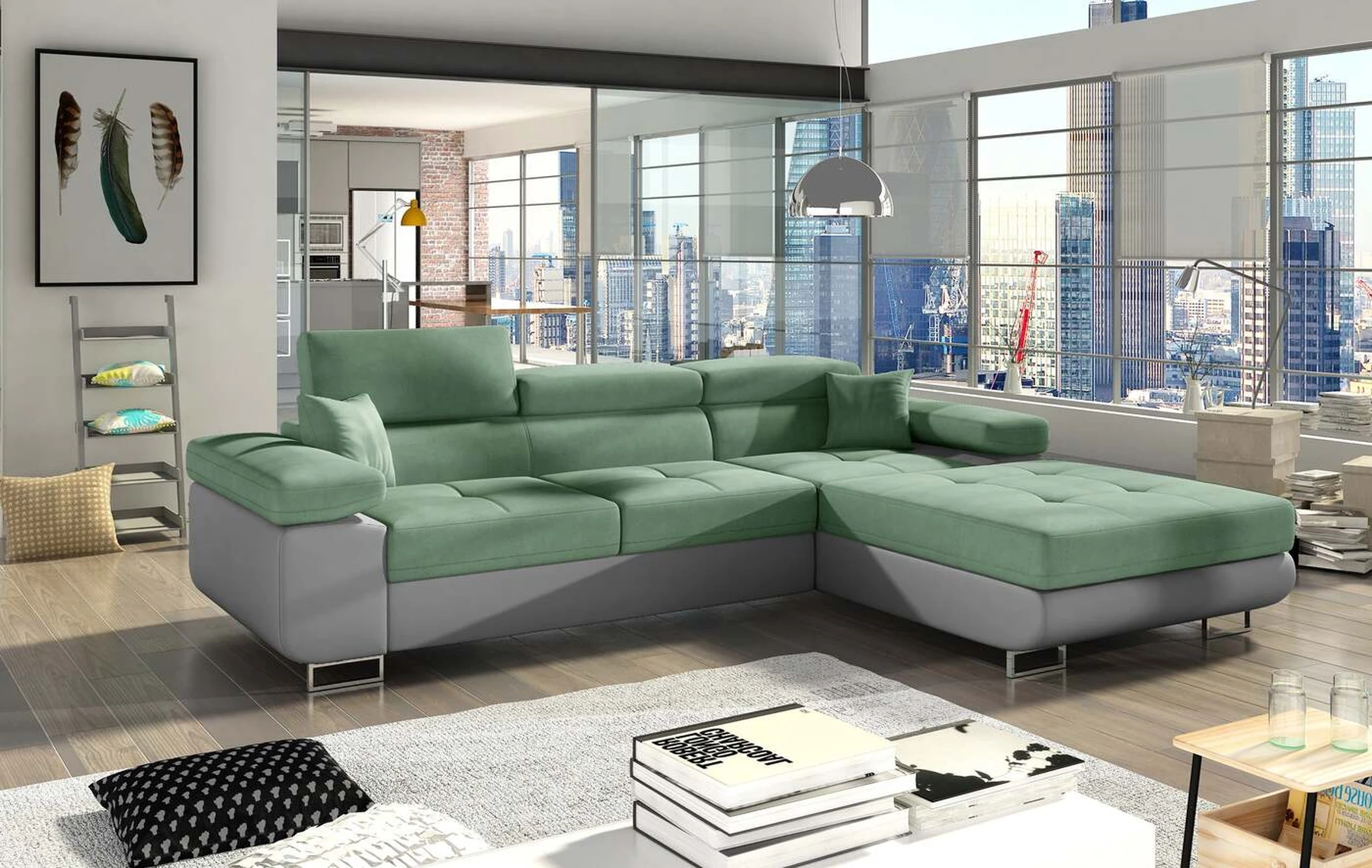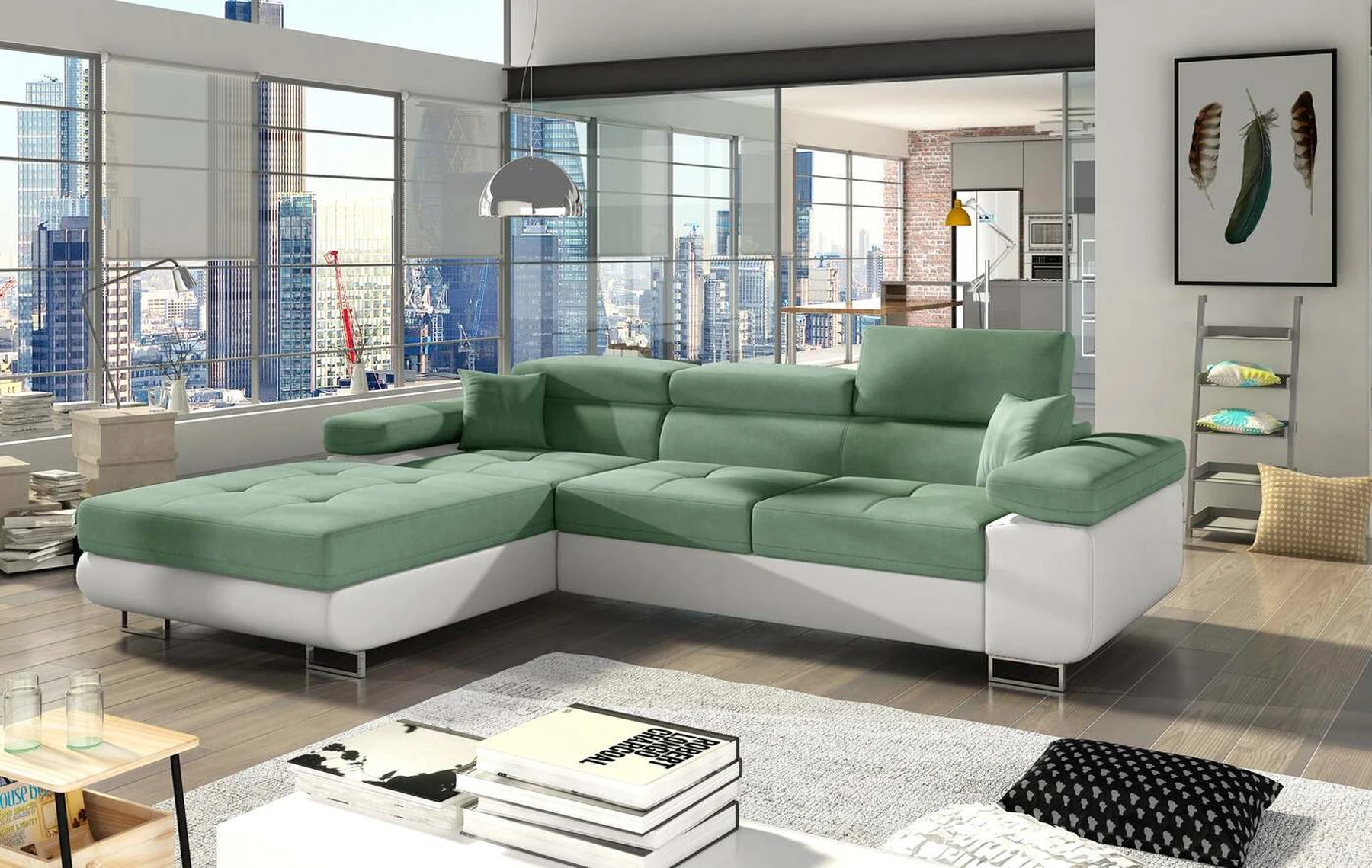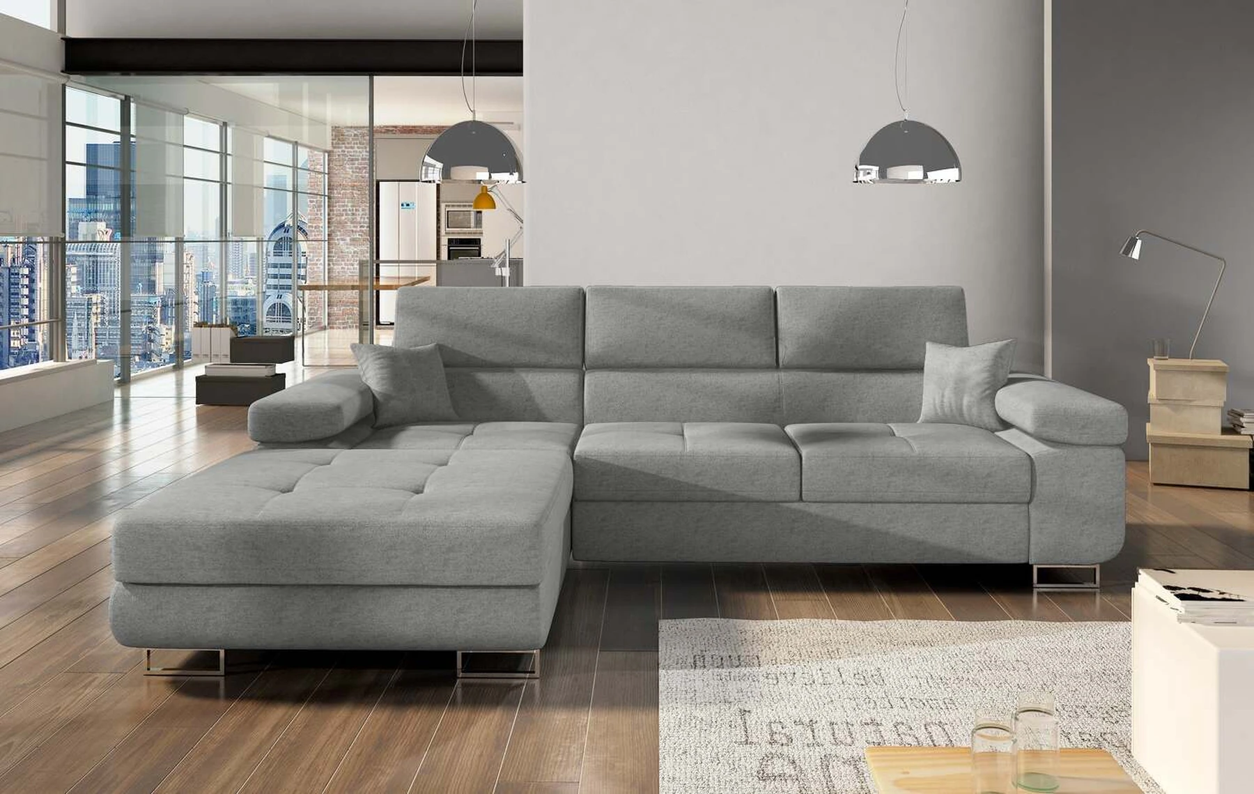 EL3776 yra stilinga, funkcionali ir, svarbiausia, elegantiška kampinė sofa, skirta reikliems komforto žinovams. Aukštą poilsio komfortą sustiprina platūs porankiai, gražių kontūrų atlošas ir reguliuojamos, aukštos galvos atramos. 280 x 205 x 90 cm matmenų erdvaus kampinio bloko sėdynė pagaminta iš T30 putplasčio, kuris yra atsakingas už maksimalų komfortą ir elastingumą. L formos kampinis blokas turi miegojimo funkciją, kurios plotas yra 125 x 198 cm. Be to, jame taip pat yra didelis skyrius patalynei. Dėl subtilių skiautinių detalių, elegantiškų siūlių ir aukštų, chromuotų kojų, kampinis blokas išlaikomas šiuolaikiško apdailos stiliumi. EL3776 yra įvairių spalvų. Verta turėti tokį baldą savo namuose.
