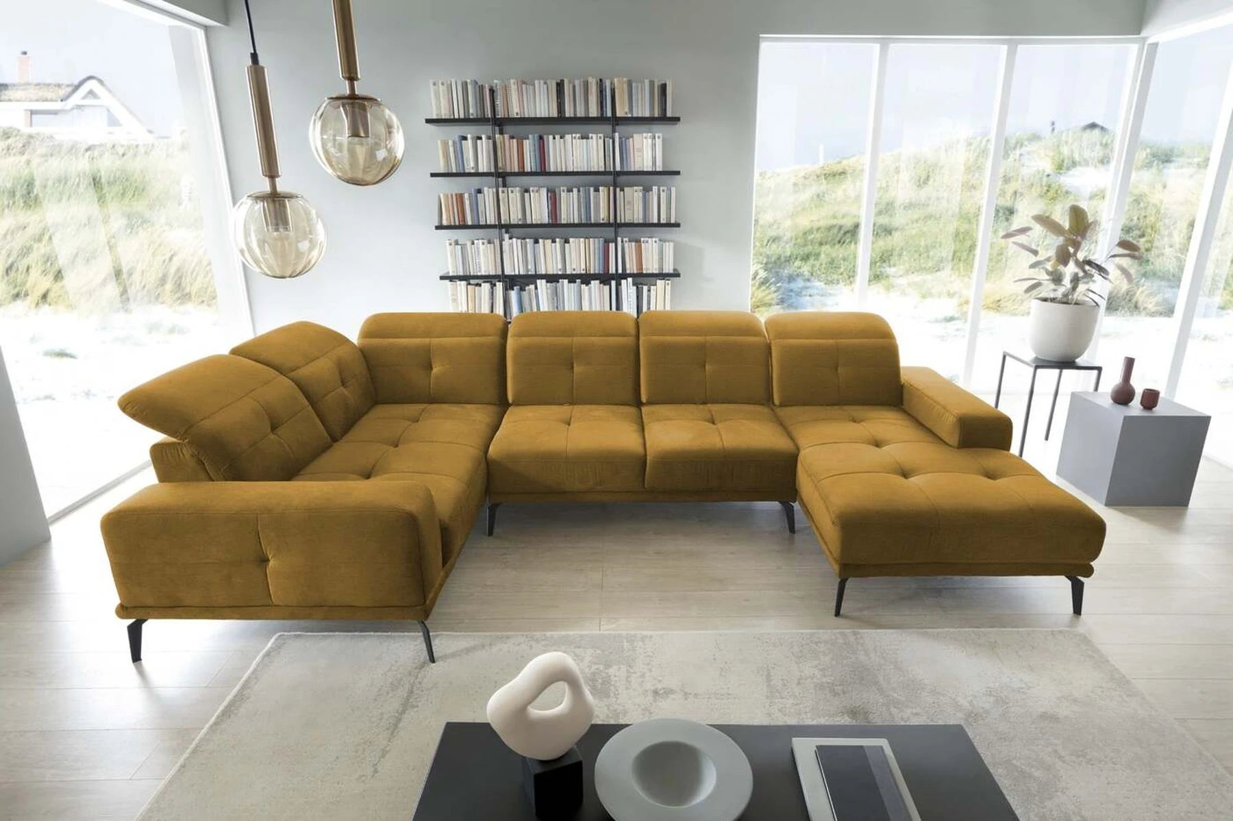 EL4000 Yellow kampinė sofa – modernus baldas, pasižymintis išradingomis savybėmis, kurios leidžia daug lengviau atsipalaiduoti. Įdomus sprendimas, su kuriuo įrengta EL4000, yra slankiojančių atlošu funkcija, kuri leidžia patogiai išdėstyti kūną. Išmanūs, reguliuojami, galvos atramos ir patogus porankis padidina komfortą. Baldo sėdynė pagaminta iš HR itin lankstaus putplasčio ir gofruotos spyruoklės, todėl komforto jausmas tampa dar didesnis. Be to, EL4000 siūlo estetinę patirtį dėl stilingo dygsnio ir elegantiškų siūlių. Kitas išskirtinis kampinės sofos bruožas – aukštos juodos plieninės kojos. EL4000 yra baldas, kurio matmenys: 350 x 201 x 77 cm.