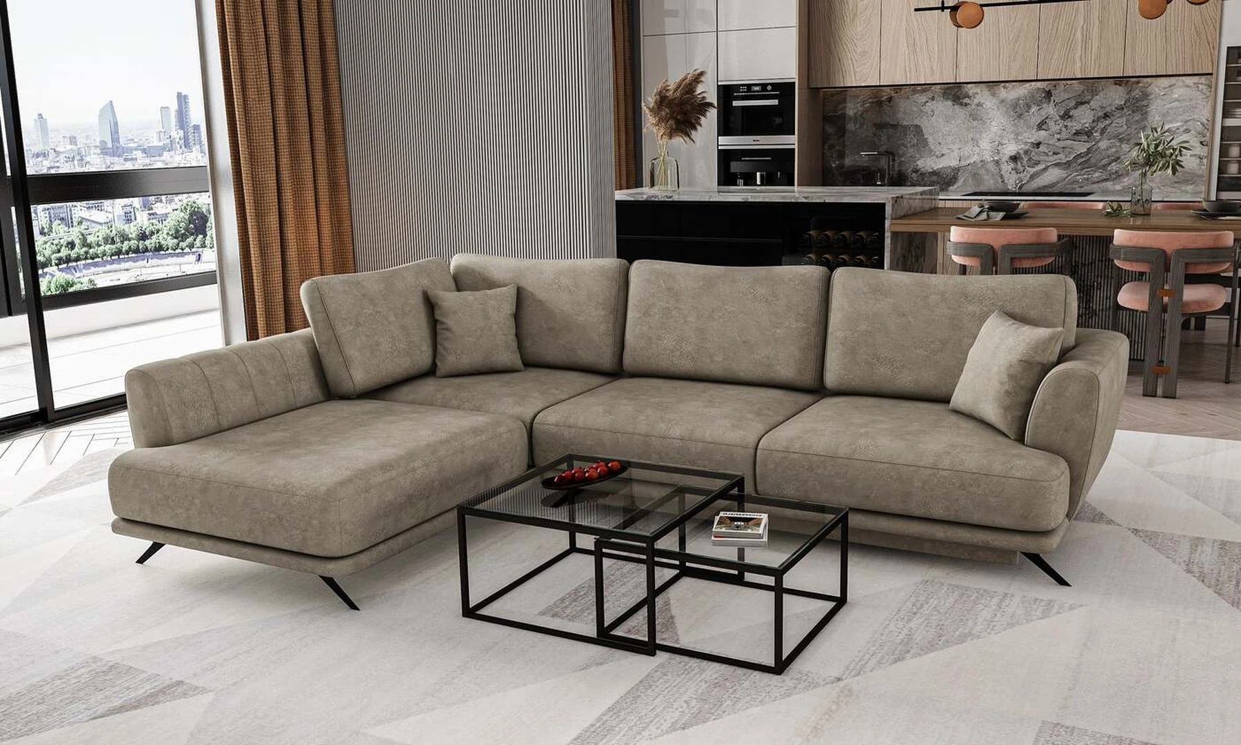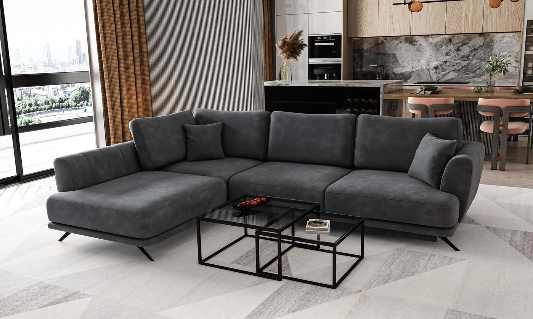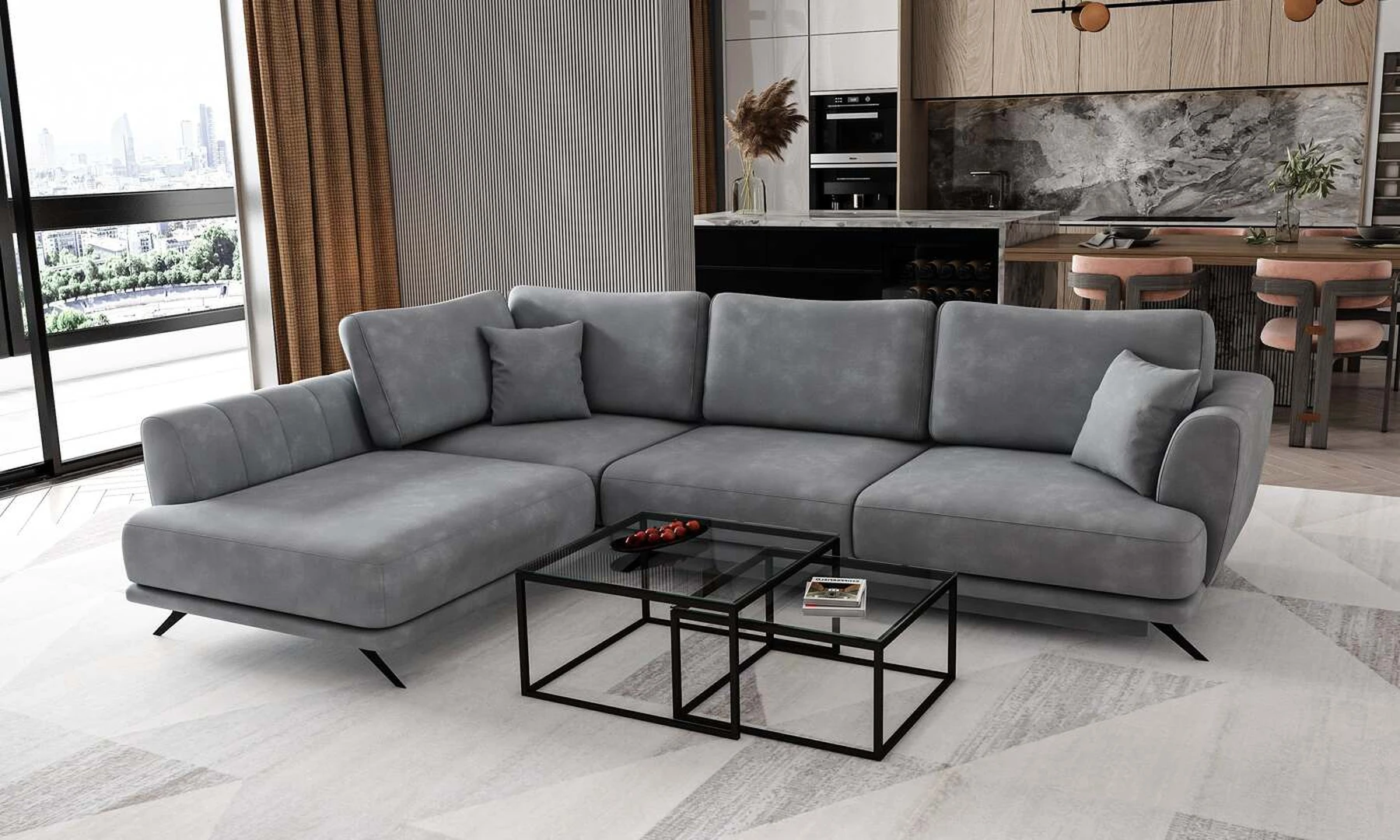 EL4170 yra išskirtinai jauki, tačiau patogi ir prašmatni L formos kampinė sofa, kurios išmatavimai 276 x 191 x 90 cm. Jo išskirtiniai bruožai: stabili konstrukcija, prislopintas, tačiau įdomus dizainas, minkšta nugara, didelės pagalvėlės, stilingos, visai konstrukcijai lengvumo suteikiančios kojelės ir gili, minkšta sėdynė iš HR putų. Jie taip pat garantuoja tinkamą kūno padėtį ilsintis ir nemažą komfortą. Kampinė sofa EL4170 yra daugiafunkcinis baldas, suteikiantis maksimalų komforto lygį tiek dieną, tiek naktį. Išskleidę sofą naudojant intuityvų ir nesudėtingą DL mechanizmą, gauname 126 x 240cm miegamąjį paviršių ir talpią patalynę. EL4170 yra baldas, kuris atitiks visus jūsų poreikius. Jame yra viskas, ko reikia norint pailsėti aukščiausiu lygiu. Kviečiame pasidomėti mūsų pasiūlymu.