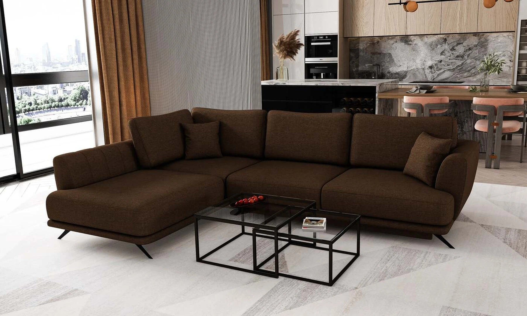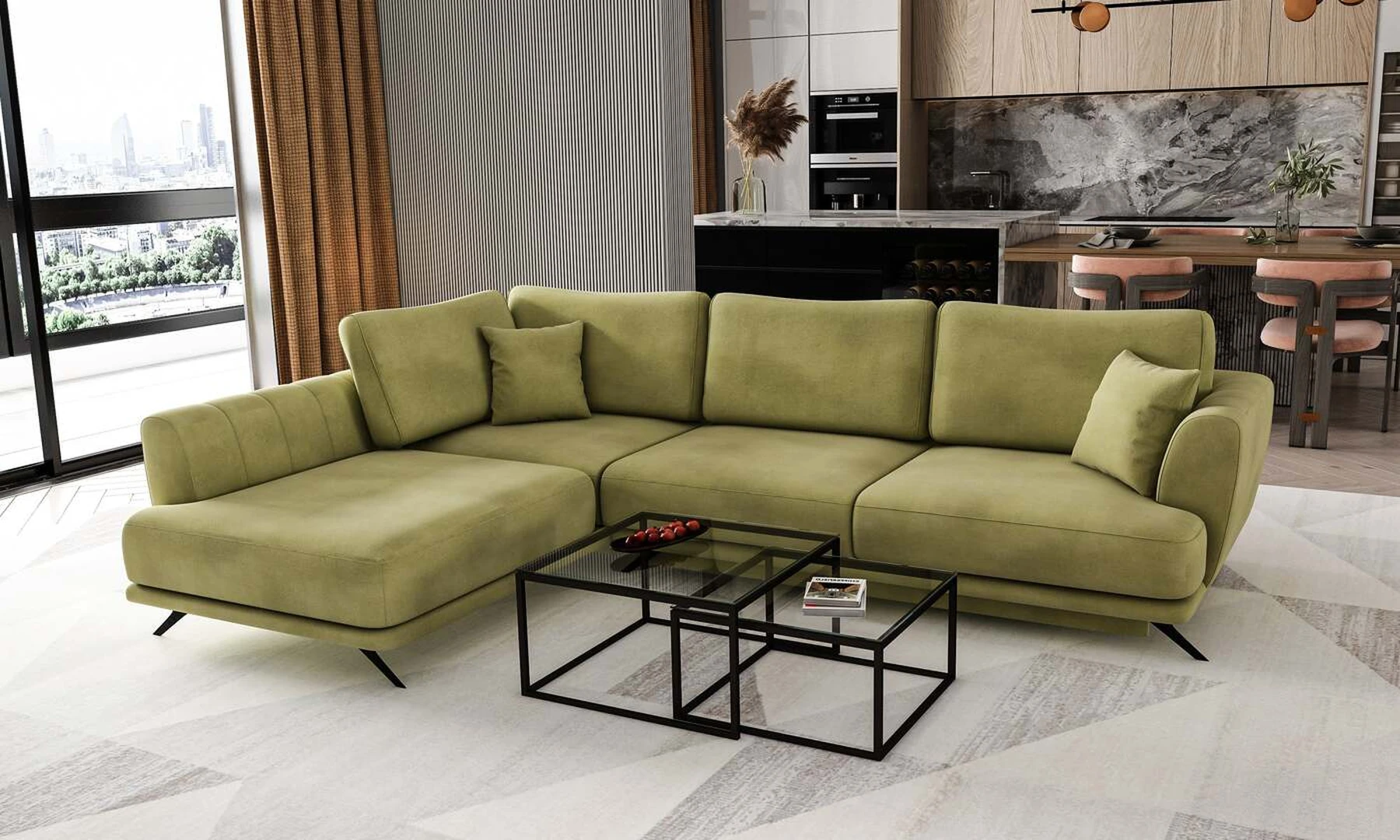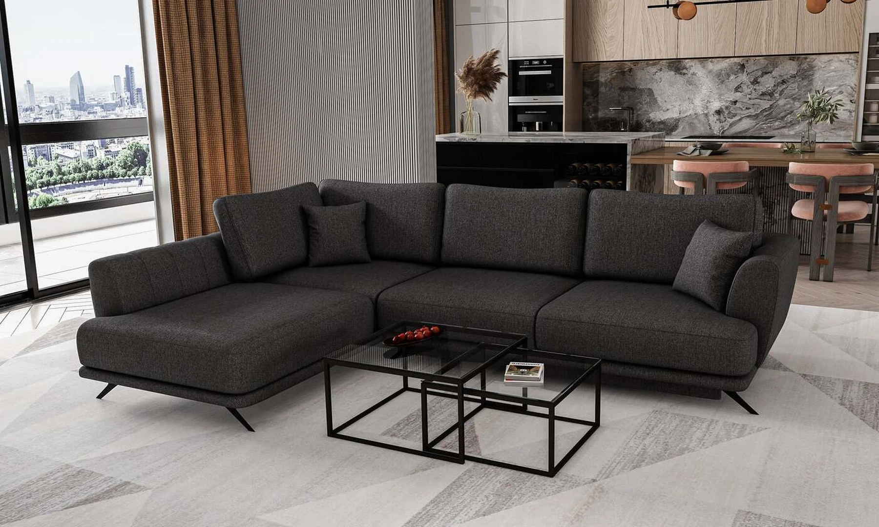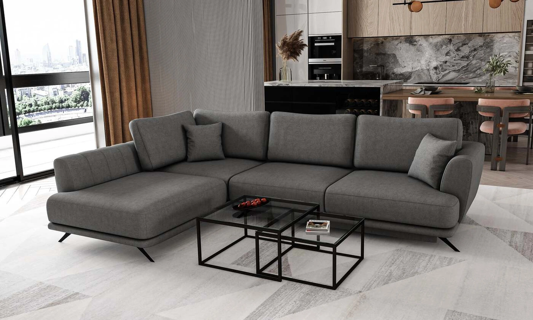 EL4170 yra išskirtinai jauki, tačiau patogi ir prašmatni L formos kampinė sofa, kurios išmatavimai 276 x 191 x 90 cm. Jo išskirtiniai bruožai: stabili konstrukcija, prislopintas, tačiau įdomus dizainas, minkšta nugara, didelės pagalvėlės, stilingos, visai konstrukcijai lengvumo suteikiančios kojelės ir gili, minkšta sėdynė iš HR putų. Jie taip pat garantuoja tinkamą kūno padėtį ilsintis ir nemažą komfortą. Kampinė sofa EL4170 yra daugiafunkcinis baldas, suteikiantis maksimalų komforto lygį tiek dieną, tiek naktį. Išskleidę sofą naudojant intuityvų ir nesudėtingą DL mechanizmą, gauname 126 x 240cm miegamąjį paviršių ir talpią patalynę. EL4170 yra baldas, kuris atitiks visus jūsų poreikius. Jame yra viskas, ko reikia norint pailsėti aukščiausiu lygiu. Kviečiame pasidomėti mūsų pasiūlymu.
