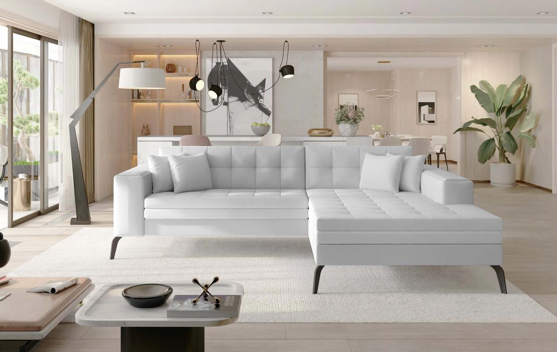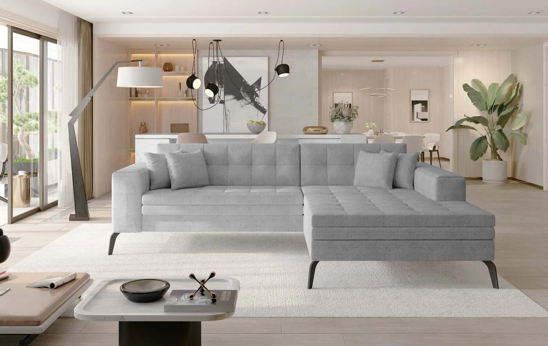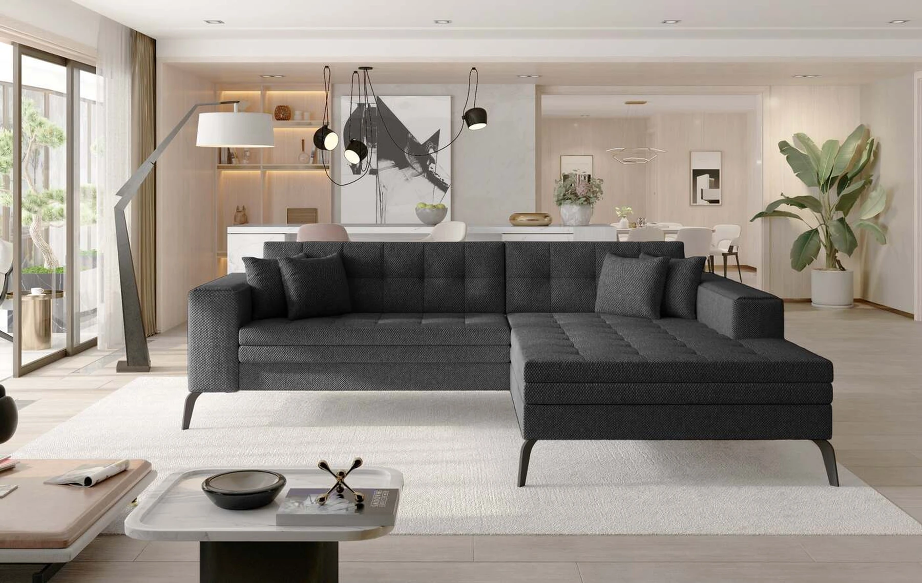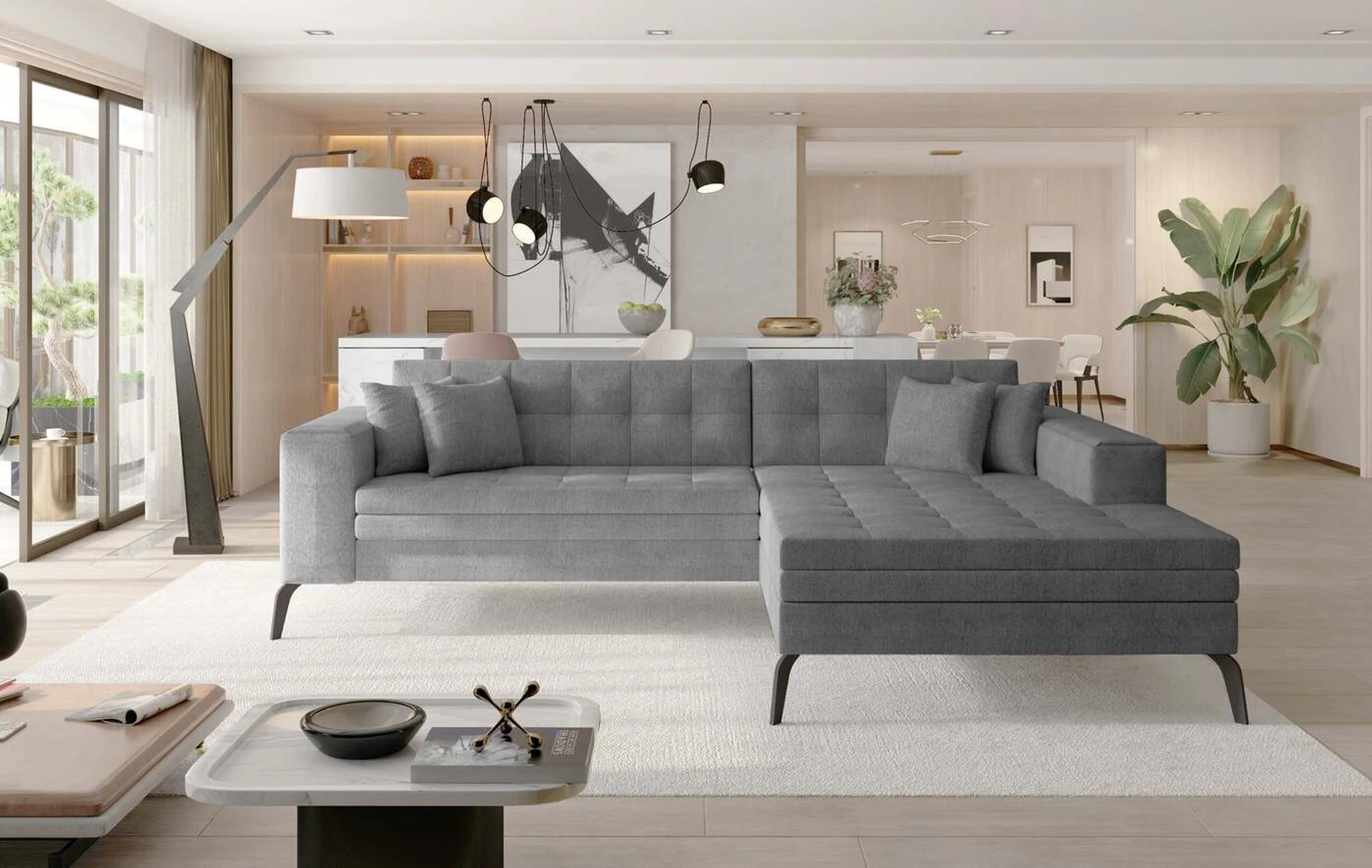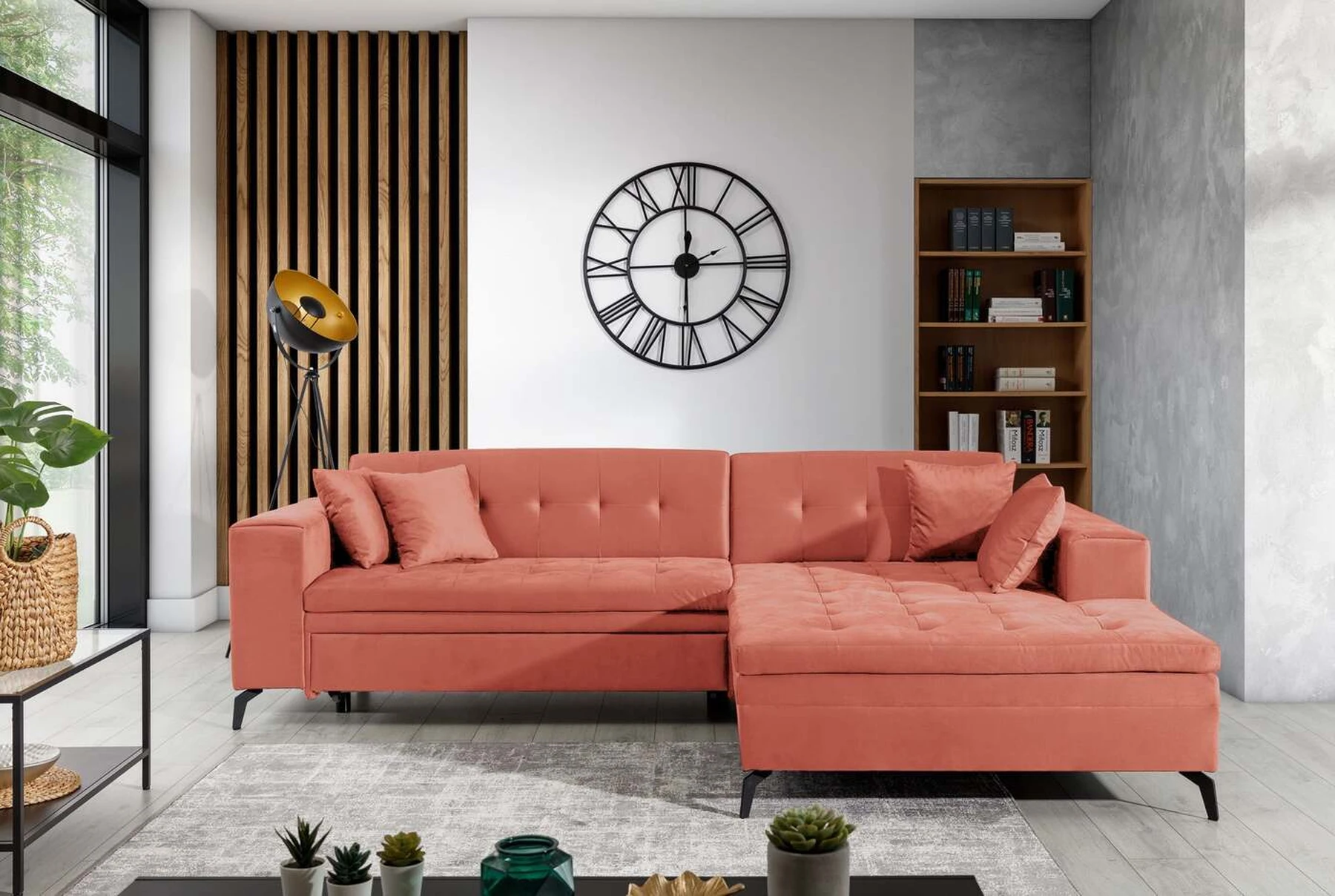 EL4254 yra originalus, skoningas ir išskirtinai minkštas kampinis blokas, suteikiantis gaivumo ir prabangos dvelksmo interjerui, kuriame jis yra. Šis baldas, kurio išmatavimai yra 292 x 196 x 80 cm, garantuoja maksimalų komfortą visai šeimai ilsėtis tiek dieną, tiek naktį, nes jame yra įrengtos 210 x 126 cm ploto miego funkcijos. Taip pat yra delfinų mechanizmas, padedantis lengvai išlankstyti baldą į reikiamą padėtį. Gilios sėdynės su ilgu pufas, užpildytos bangine spyruokle ir T30 putomis leidžia ne tik išlaikyti taisyklingą kūno laikyseną, bet ir jų dėka mūsų baldai yra atsparūs išsikraipymams. Kampinė miegamoji sofa yra plati spalvų gama, o tai suteikia daug galimybių išsirinkti baldą ir įrengti svetainę pagal savo individualų stilių.