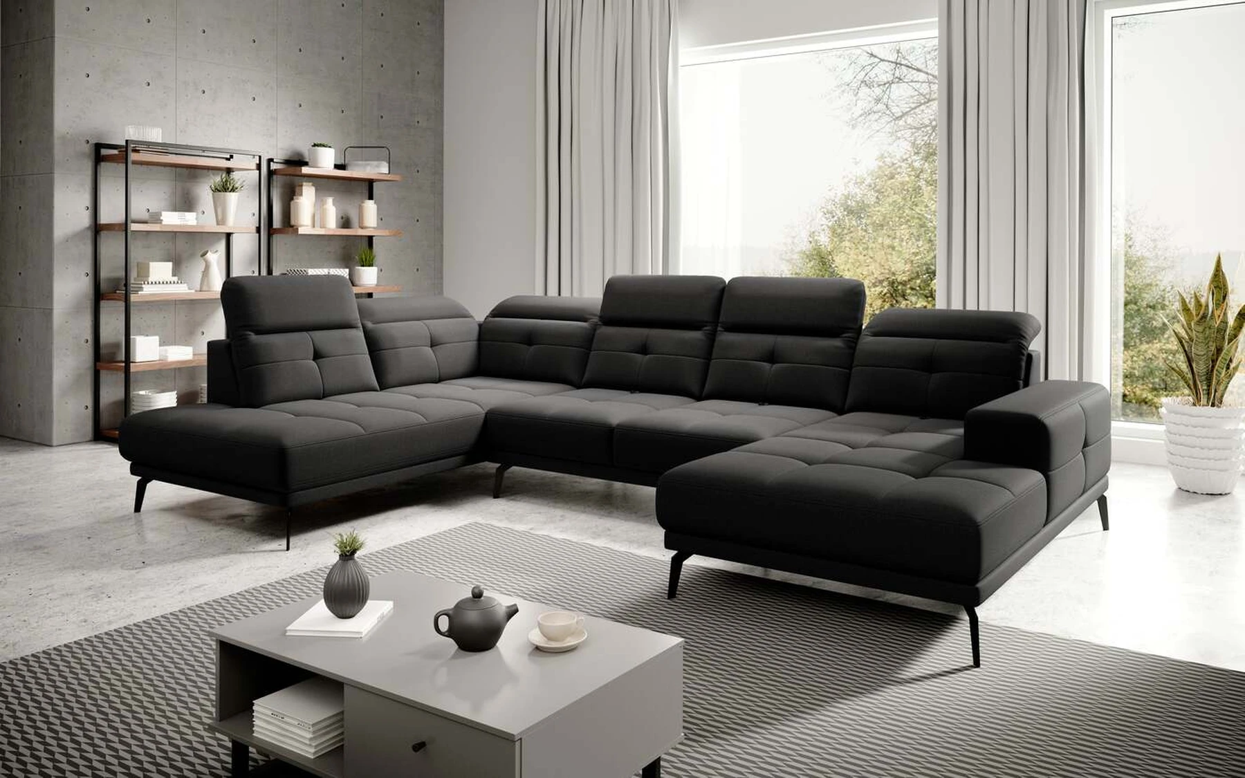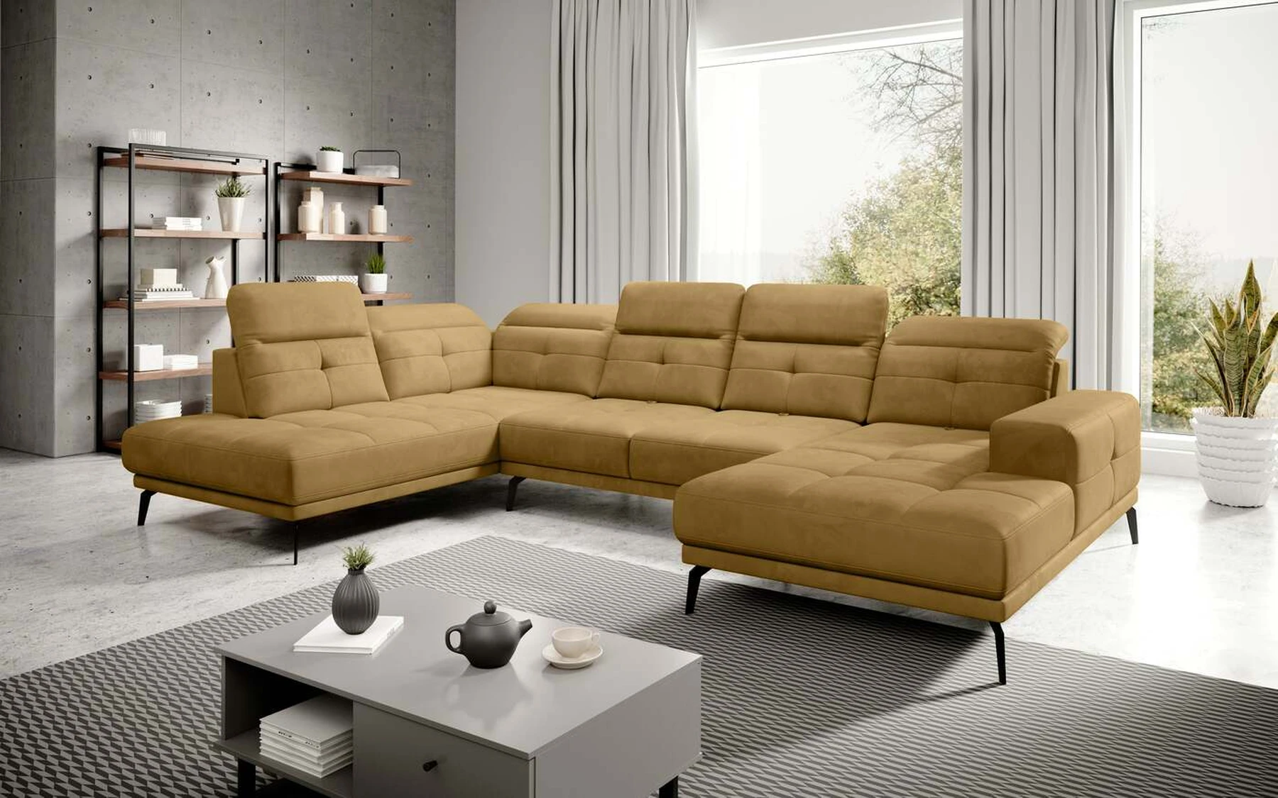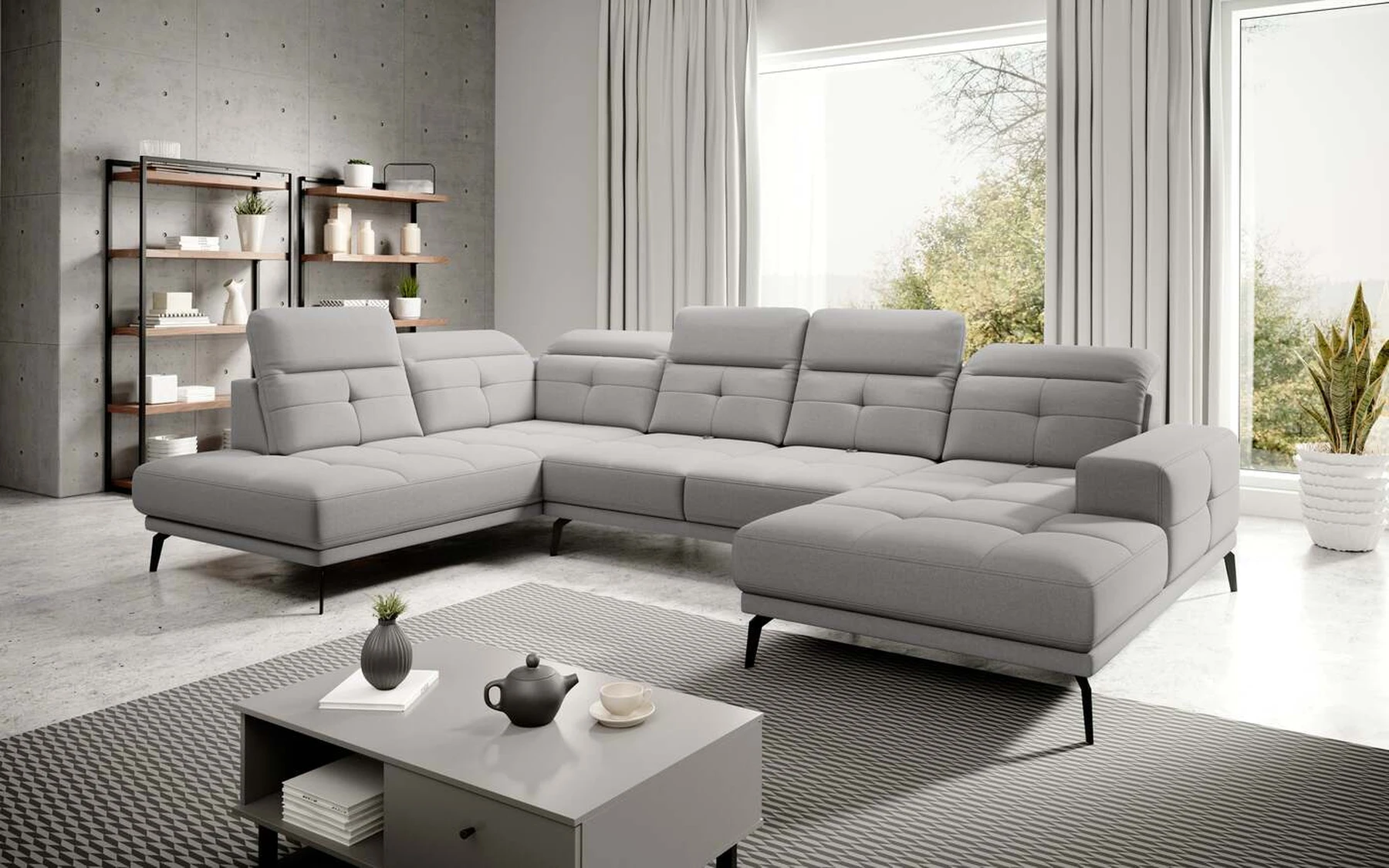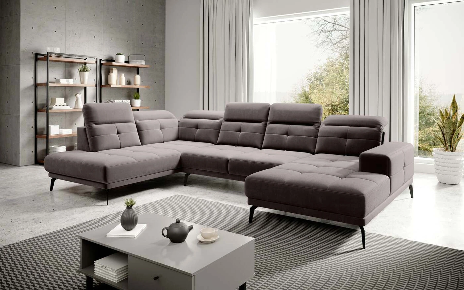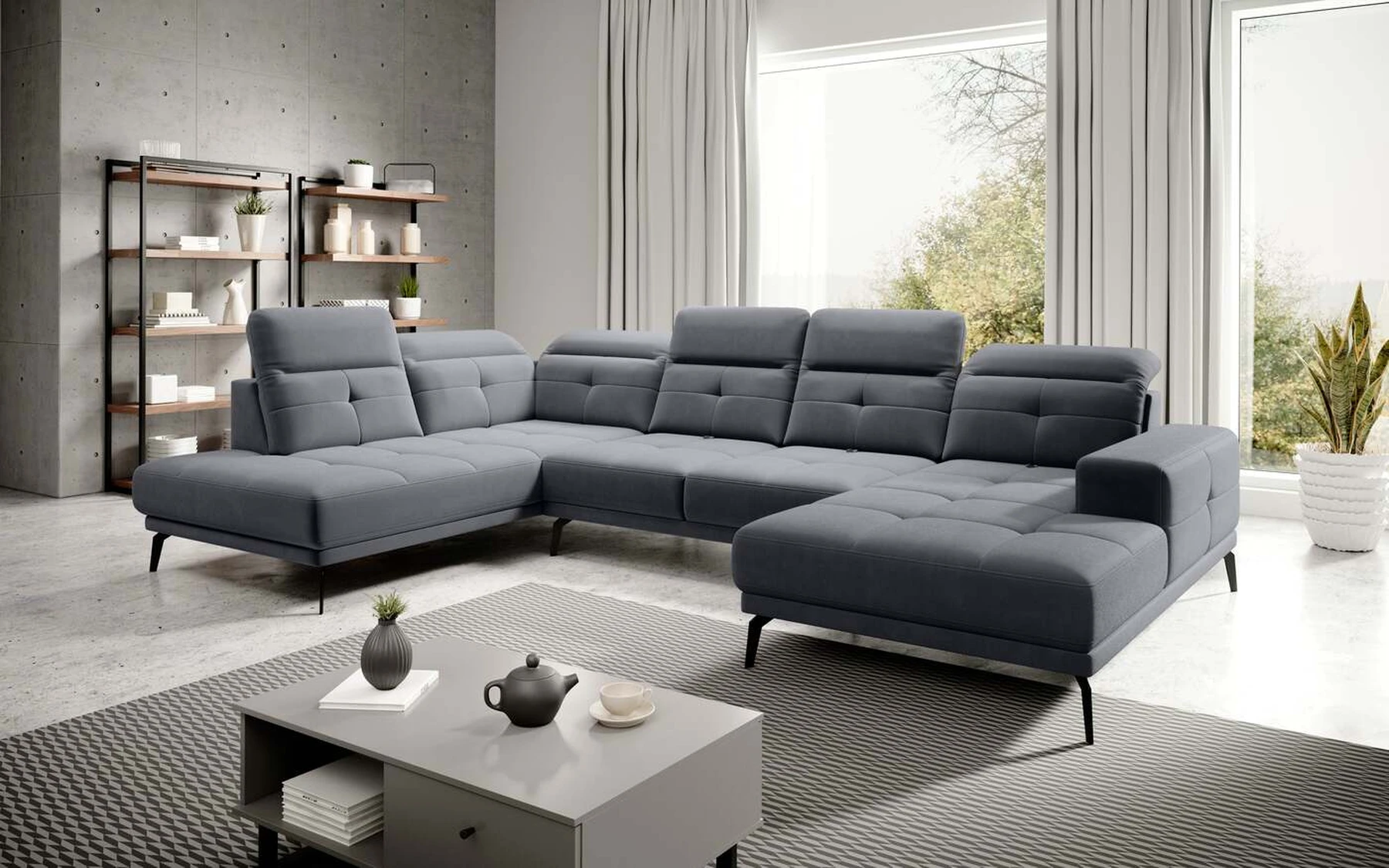 EL4287 yra patogi, moderni ir stilinga kampinė sofa. Didelis dydis ir modernumas yra savybės, kuriomis EL4287 išsiskiria. Kampo suteikiamas komfortas yra dėl sėdynių, užpildytų itin elastingomis HR putomis, padidinančiomis tamprumą ir tvirtumą. Baldai turi galvos ir atlošus, kuriuos galima lengvai reguliuoti, kad būtų pasiekta patogiausi kūno padėtis. Išskirtinės juodos įdomios formos kojelės suteikia baldams originalumo, o patogus porankis leidžia patogiai ilsėtis. Verta paminėti ir tai, kad baldo kojelės siekia net 18 cm, todėl po kampu galėsite lengvai išlaikyti švarą. Gaminio matmenys: 350 x 201 x 107 cm. Be to, baldų apmušalai gali būti įvairių įdomių spalvų. Kampinė sofa EL4287 pasižymi įdomia forma ir išradingais bruožais, o išskirtiniais bruožais taip pat yra elegantiškas skiautinis ir tvirta apmušalų medžiaga. EL4287 yra modernumo dvasia pagamintas baldas.