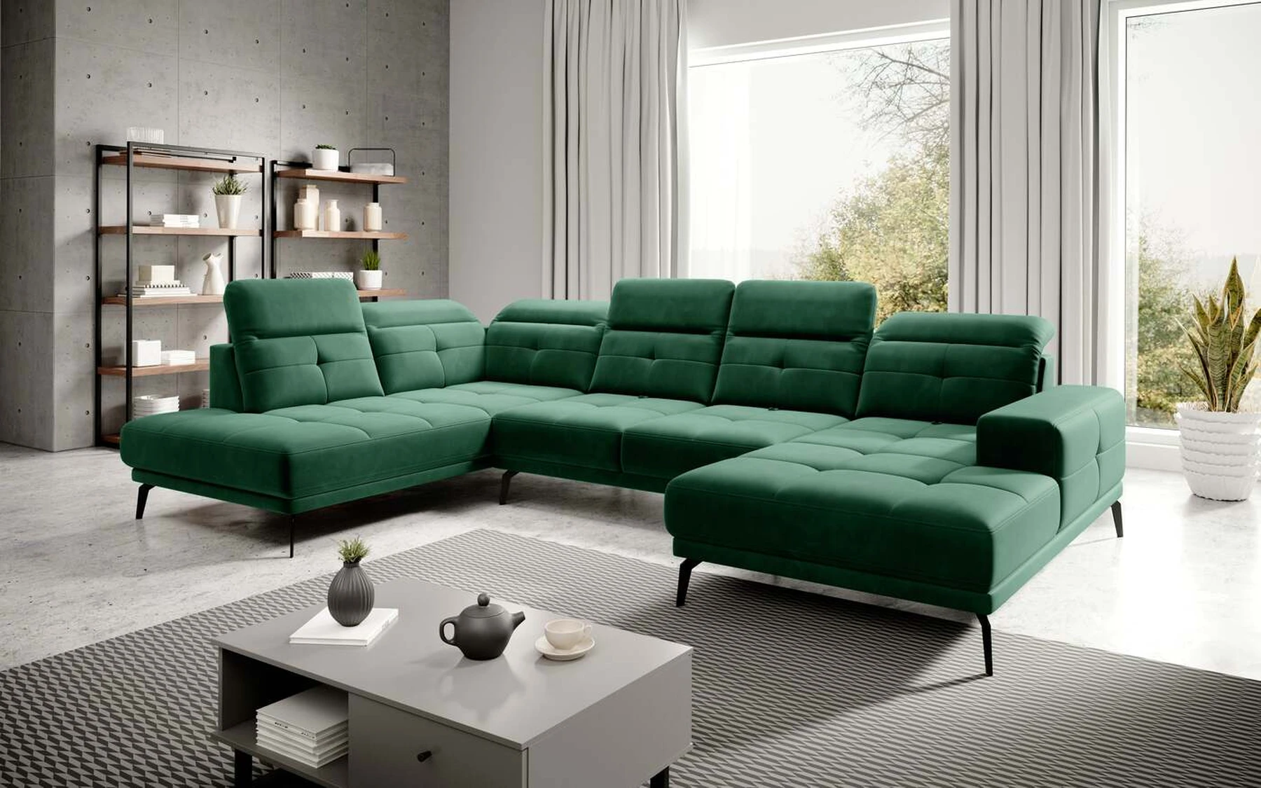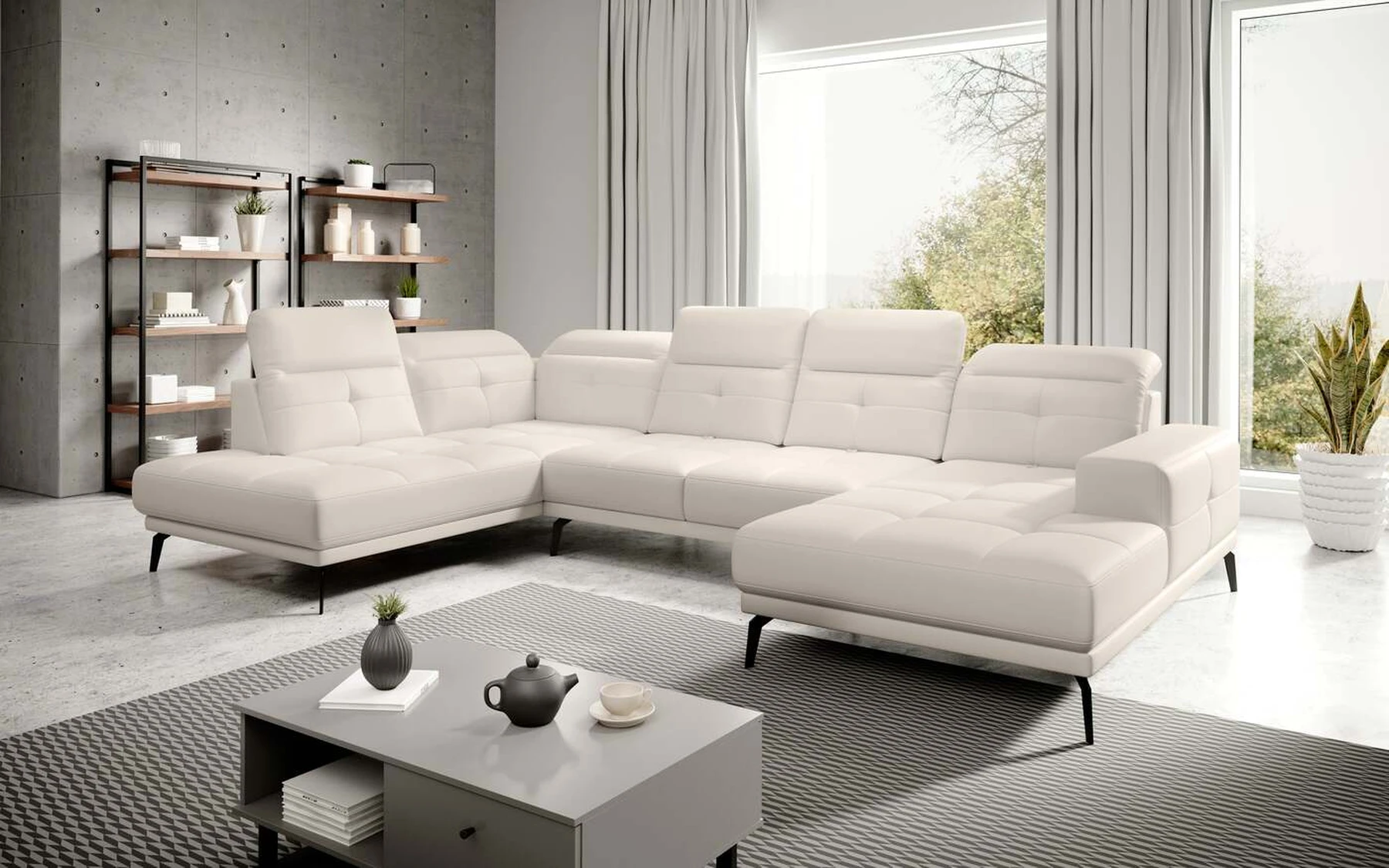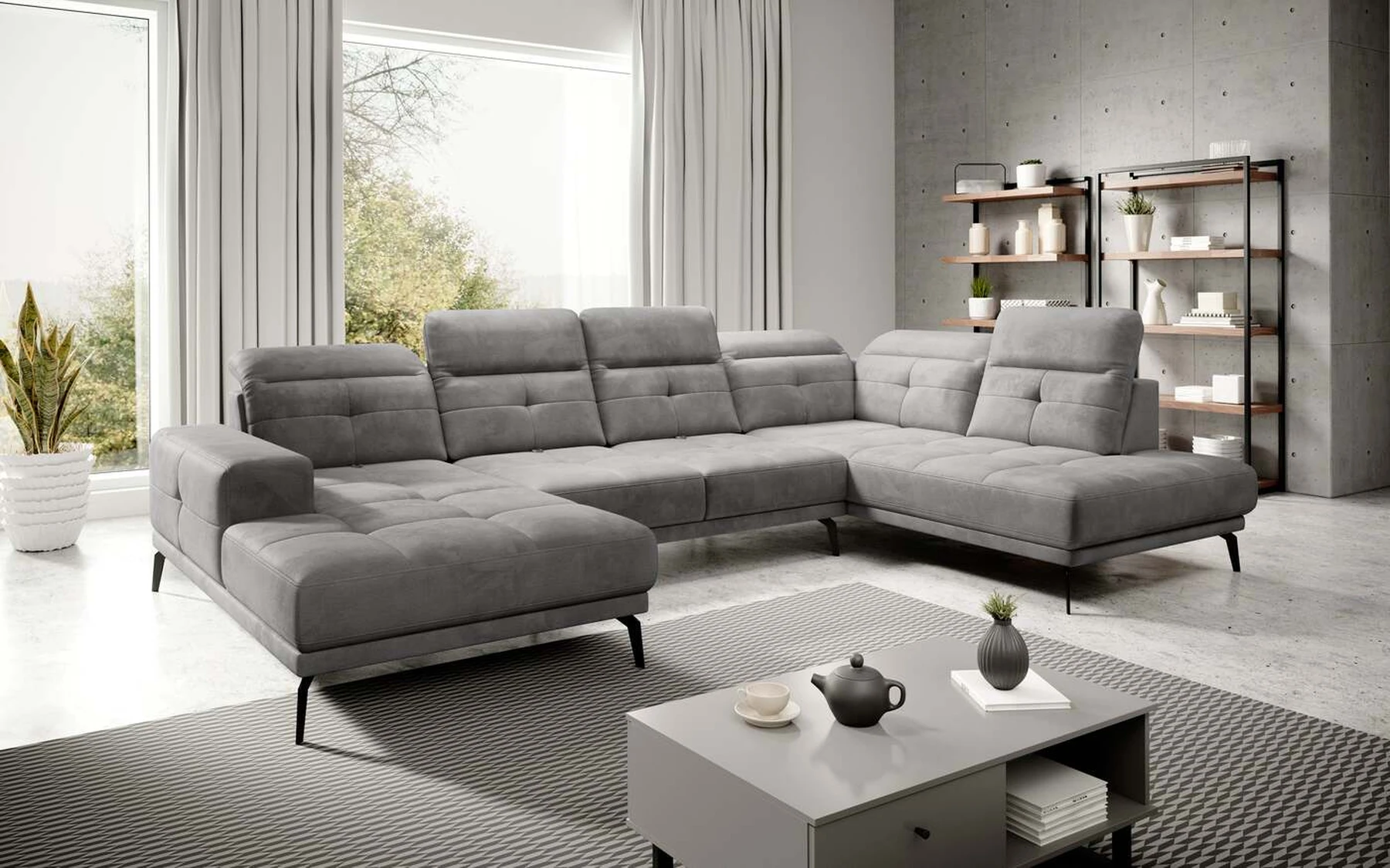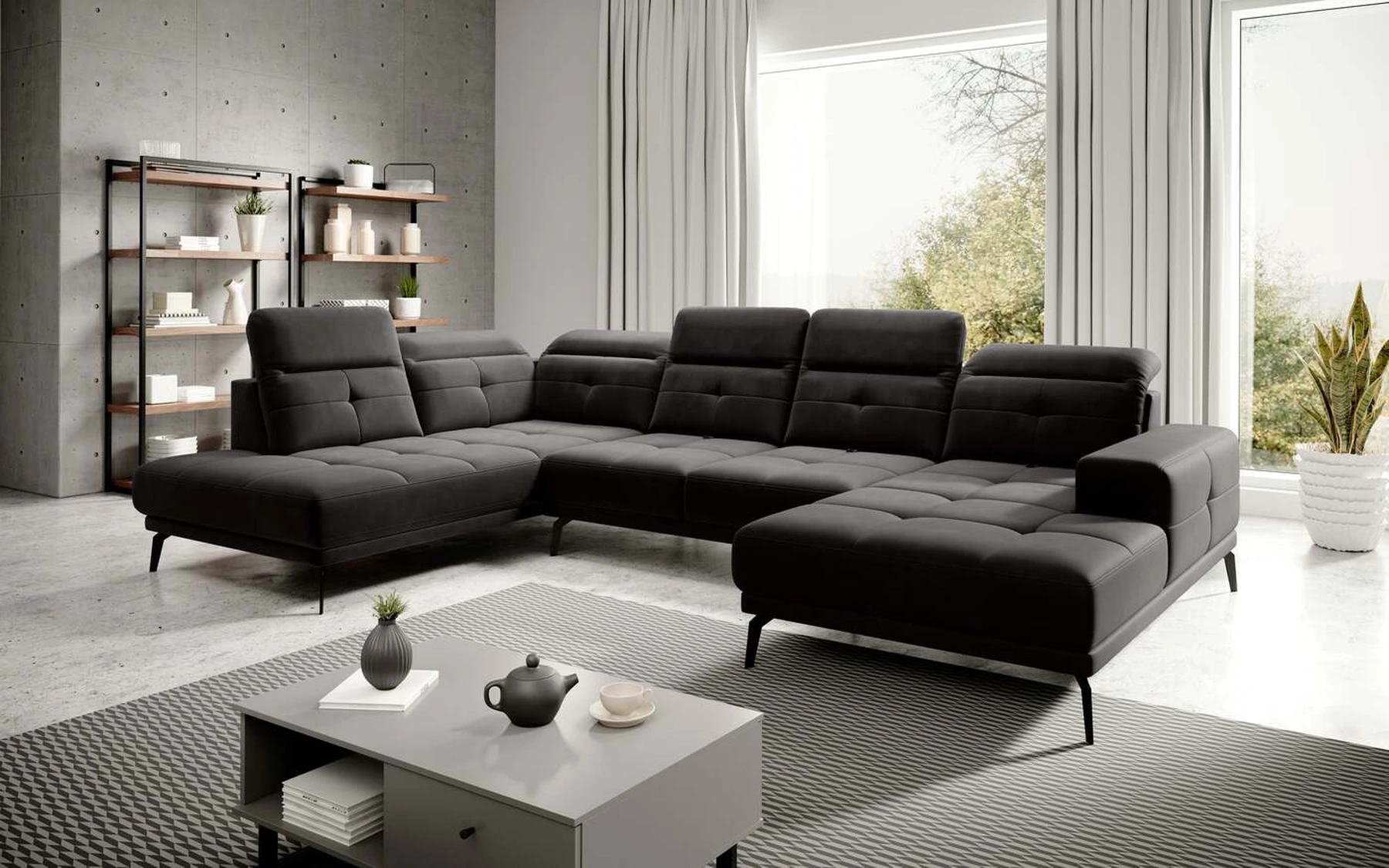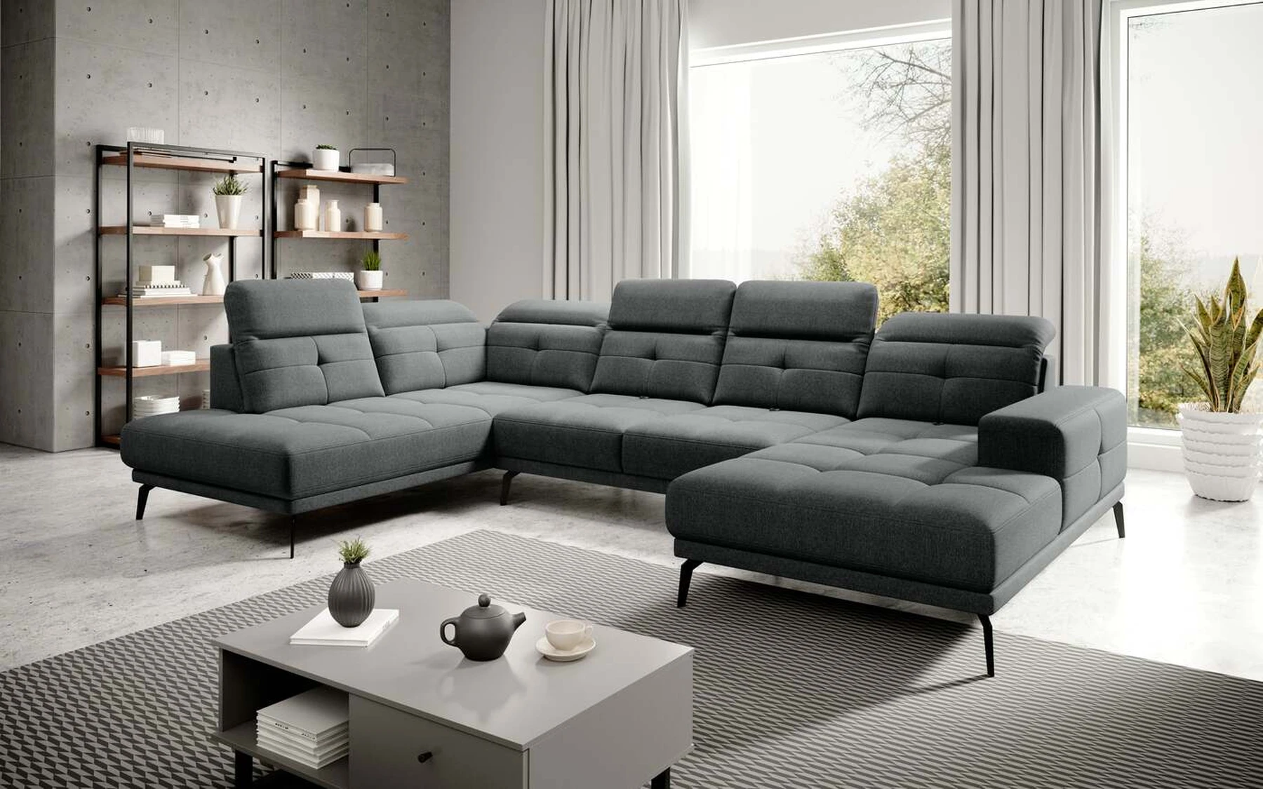 EL4287 yra patogi, moderni ir stilinga kampinė sofa. Didelis dydis ir modernumas yra savybės, kuriomis EL4287 išsiskiria. Kampo suteikiamas komfortas yra dėl sėdynių, užpildytų itin elastingomis HR putomis, padidinančiomis tamprumą ir tvirtumą. Baldai turi galvos ir atlošus, kuriuos galima lengvai reguliuoti, kad būtų pasiekta patogiausi kūno padėtis. Išskirtinės juodos įdomios formos kojelės suteikia baldams originalumo, o patogus porankis leidžia patogiai ilsėtis. Verta paminėti ir tai, kad baldo kojelės siekia net 18 cm, todėl po kampu galėsite lengvai išlaikyti švarą. Gaminio matmenys: 350 x 201 x 107 cm. Be to, baldų apmušalai gali būti įvairių įdomių spalvų. Kampinė sofa EL4287 pasižymi įdomia forma ir išradingais bruožais, o išskirtiniais bruožais taip pat yra elegantiškas skiautinis ir tvirta apmušalų medžiaga. EL4287 yra modernumo dvasia pagamintas baldas.