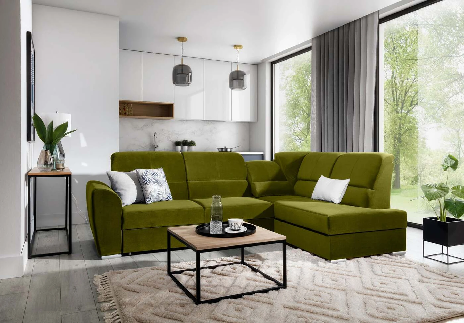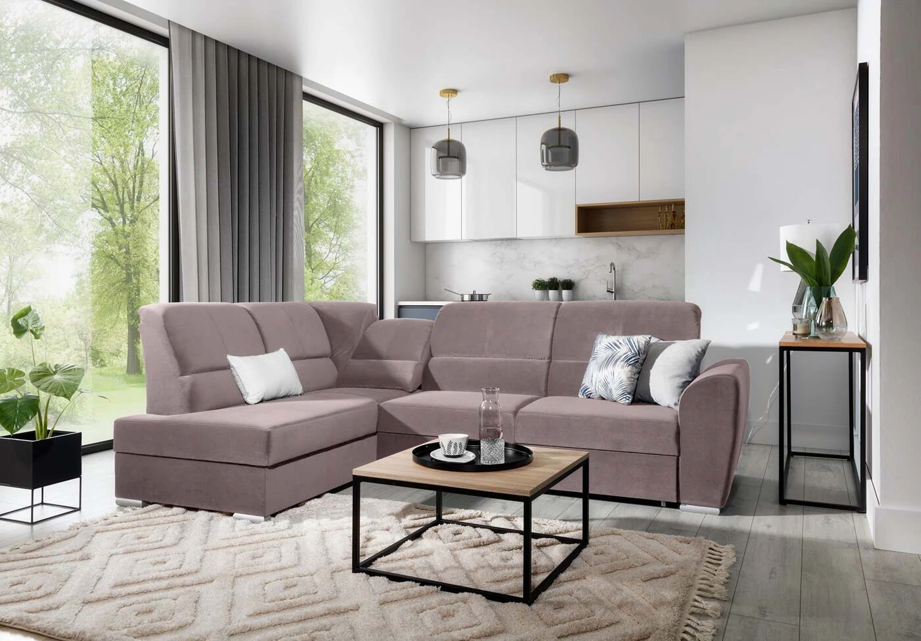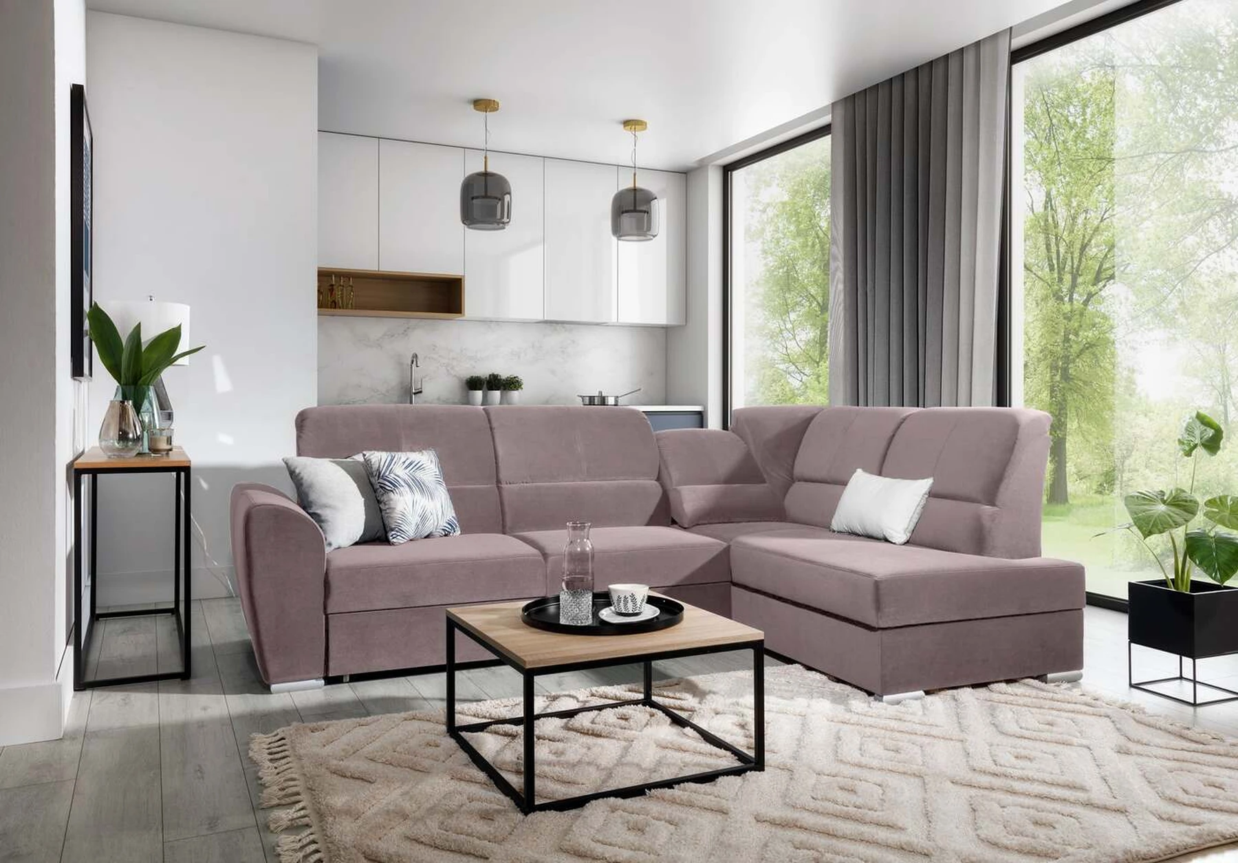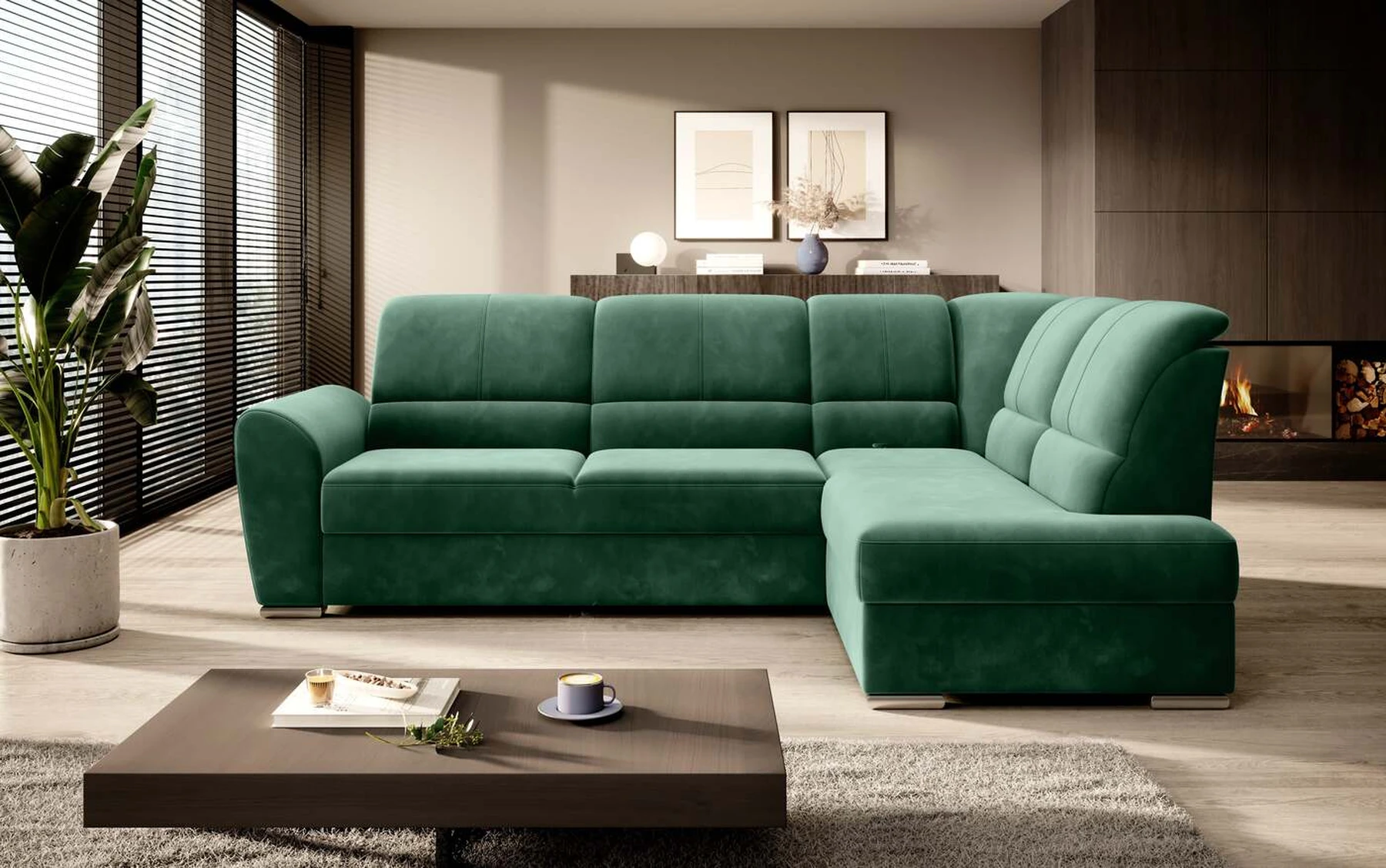 Kampinė sofa EL4636 yra puikus sprendimas žmonėms, kurie vertina tvarką ir organizuotumą. Tai padeda sutaupyti vietos dėl didelio patalynės konteinerio. Aukšto profilio reguliuojami atlošai, dekoruoti stilingomis siūlėmis, net valandas pailsės su mėgstamais TV serialais patogia ir patogia patirtimi. Kampinės sofos išmatavimai: 270 x 186 x 93 cm, leidžianti ramiai ilsėtis didesniam žmonių skaičiui be papildomo poilsio baldų. Be to, kampinė sofa gali tapti papildoma lova dėl sulankstomos miegojimo funkcijos, kurios plotas 205 x 125 cm. Šiame balde naudojamas delfinų sulankstymo mechanizmas yra puikus ir paprastas būdas kampinę sofą paversti viso dydžio lova. Taip pat verta paminėti reguliuojamus atlošus, kurie gali padėti patogiai atsipalaiduoti skaitant knygą ar žiūrint televizorių. Įdomūs šio baldo elementai yra 5 cm aukščio medinės kojelės, taip pat sėdynė, užpildyta T30 putplasčiu, užtikrinančiu puikų elastingumą ir didelį tankį.