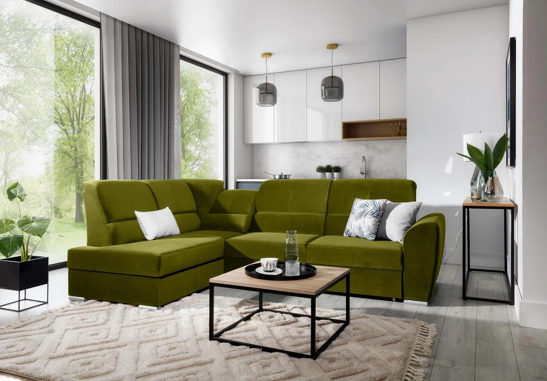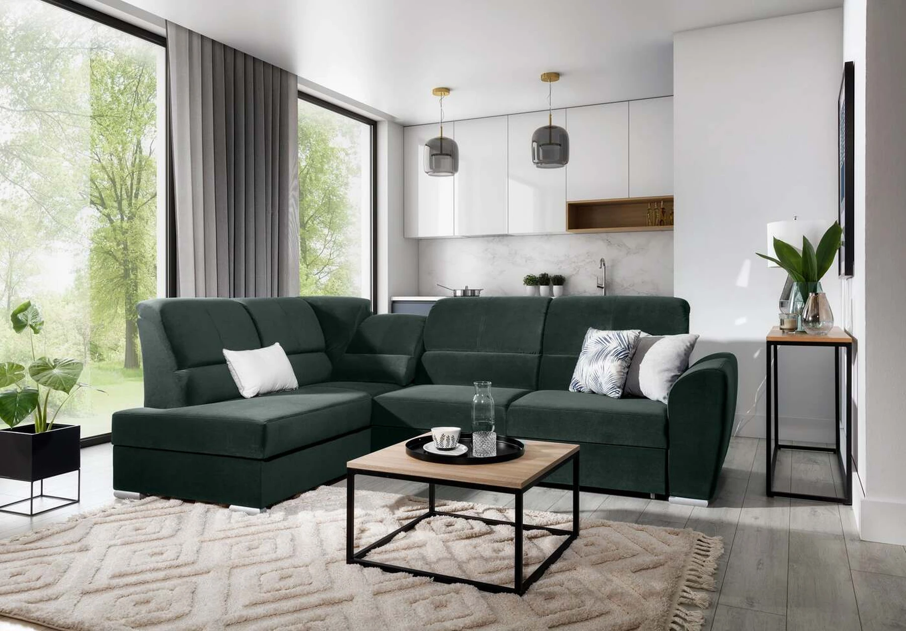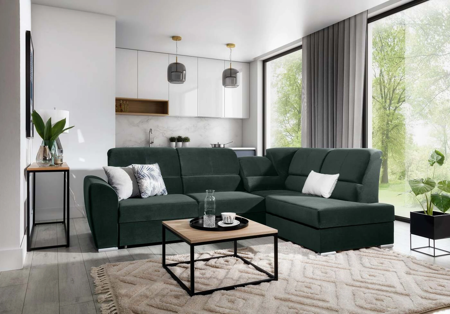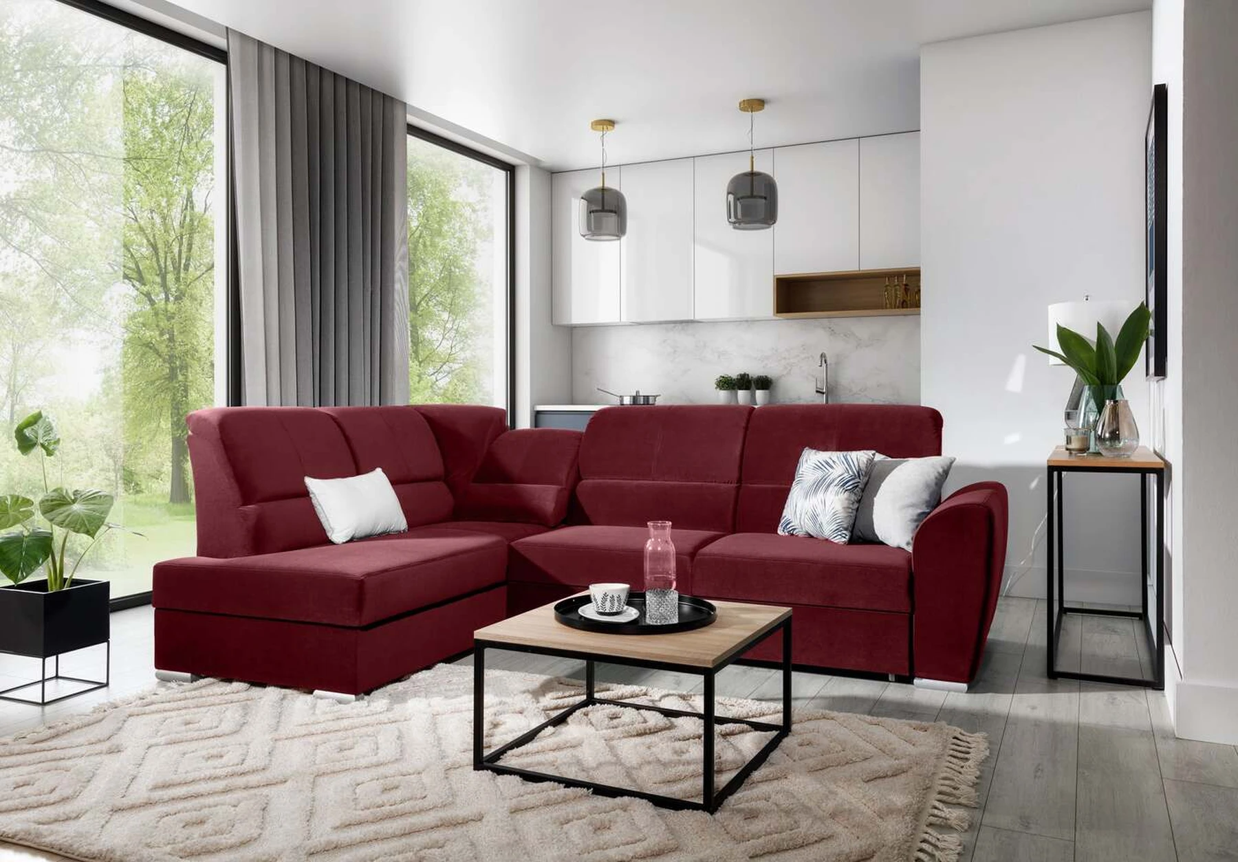 Kampinė sofa EL4636 yra puikus sprendimas žmonėms, kurie vertina tvarką ir organizuotumą. Tai padeda sutaupyti vietos dėl didelio patalynės konteinerio. Aukšto profilio reguliuojami atlošai, dekoruoti stilingomis siūlėmis, net valandas pailsės su mėgstamais TV serialais patogia ir patogia patirtimi. Kampinės sofos išmatavimai: 270 x 186 x 93 cm, leidžianti ramiai ilsėtis didesniam žmonių skaičiui be papildomo poilsio baldų. Be to, kampinė sofa gali tapti papildoma lova dėl sulankstomos miegojimo funkcijos, kurios plotas 205 x 125 cm. Šiame balde naudojamas delfinų sulankstymo mechanizmas yra puikus ir paprastas būdas kampinę sofą paversti viso dydžio lova. Taip pat verta paminėti reguliuojamus atlošus, kurie gali padėti patogiai atsipalaiduoti skaitant knygą ar žiūrint televizorių. Įdomūs šio baldo elementai yra 5 cm aukščio medinės kojelės, taip pat sėdynė, užpildyta T30 putplasčiu, užtikrinančiu puikų elastingumą ir didelį tankį.