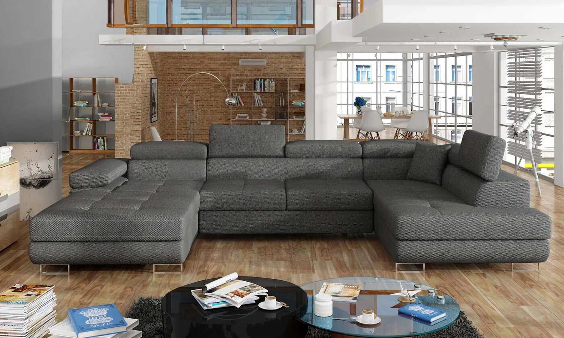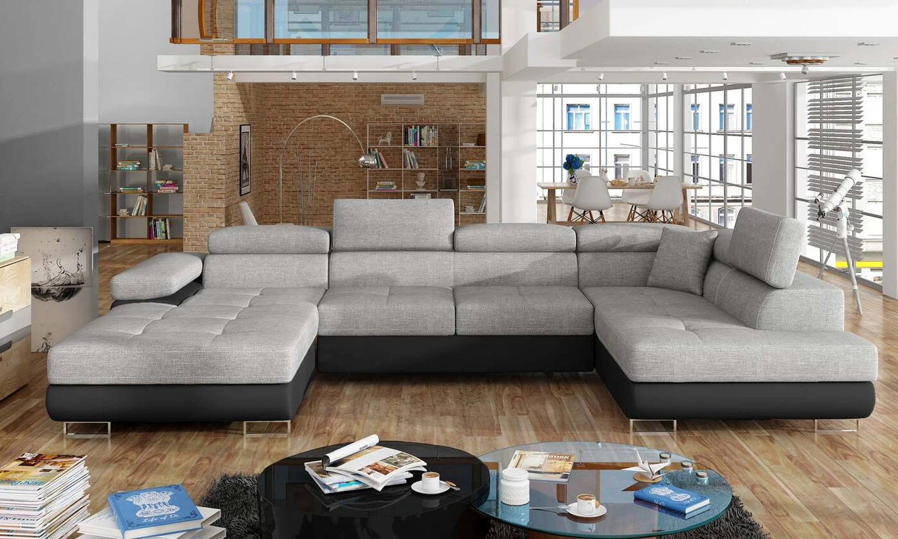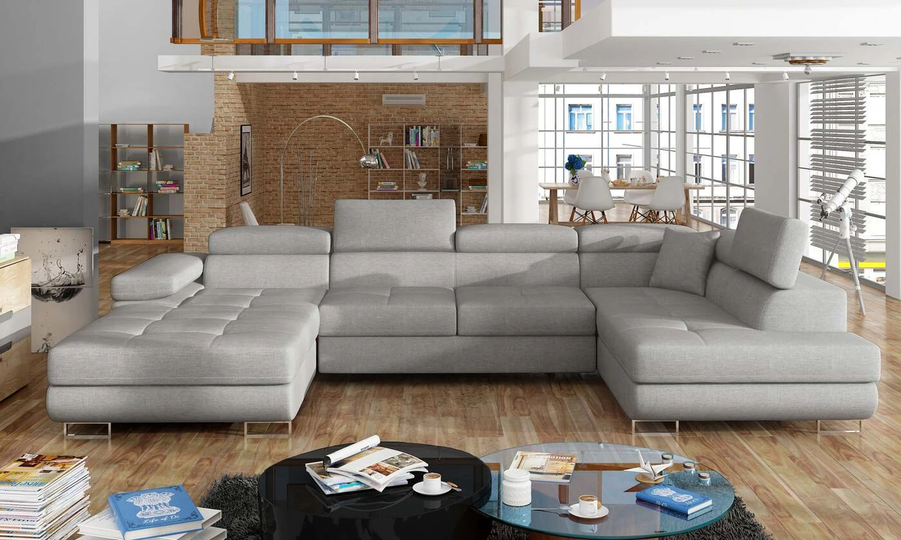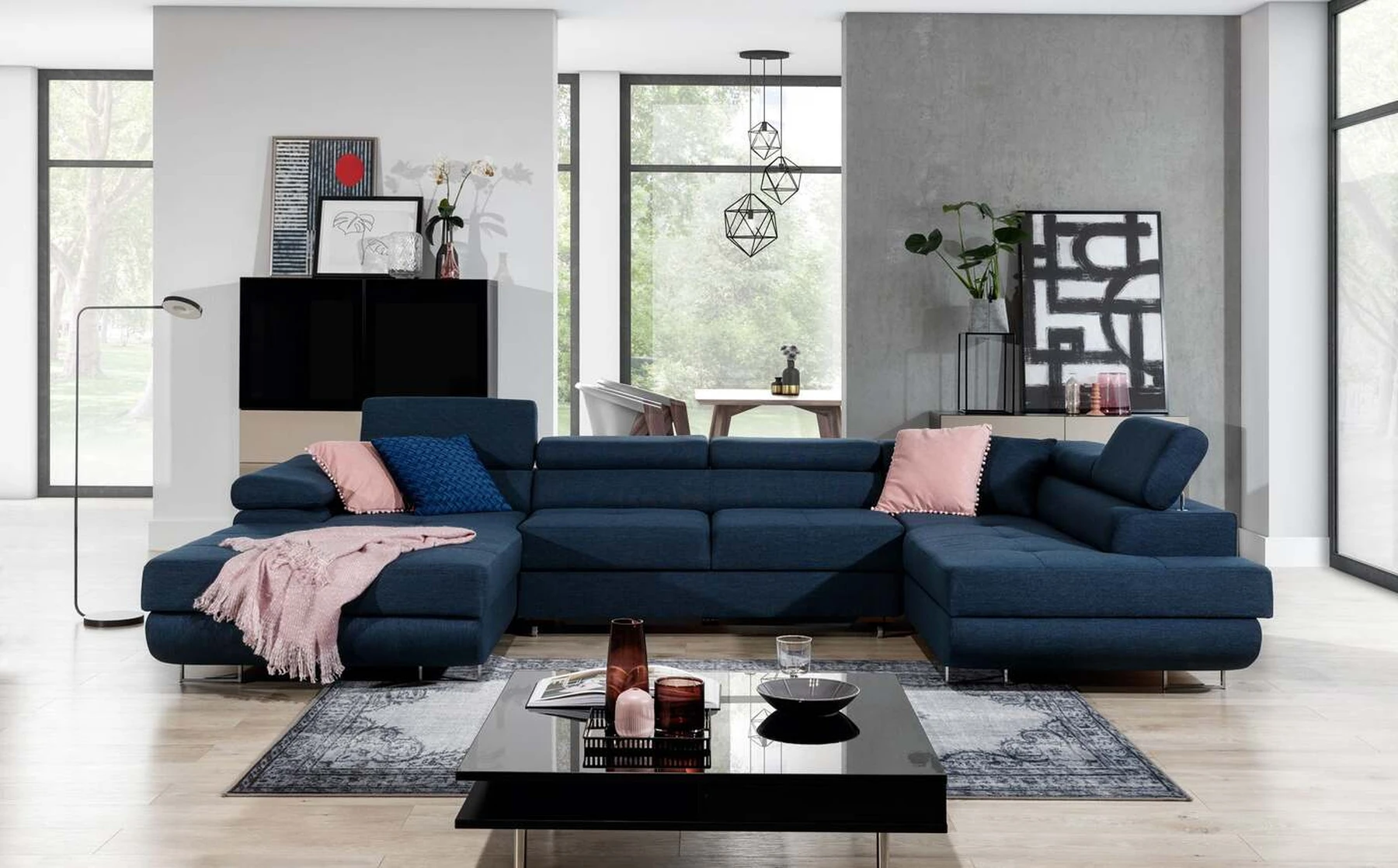 EL4772 yra stilinga ir moderni U formos kampinė sofa. Baldai, kurių matmenys 345 x 202 x 90 cm, garantuoja erdvumą ir komfortą dieną, taip pat maksimalų komfortą 125 x 266 cm – naktį. Delfinų tipo mechanizmo dėka lovos išskleidimas malonus ir nesudėtingas. Be to, verta paminėti ir erdvų patalynės konteinerį, esantį pufoje. Išskirtinį sėdynės minkštumą ir elastingumą garantuoja deformacijoms atsparaus T30 porolono sugretinimas su lanksčia ir patvaria gofruota spyruokle. Tarp ypatybių, kurias galime priskirti šiam modeliui, yra: apmušta nugara, erdvios, gilios sėdynės, kontūrinis atlošas, reguliuojamos galvos atramos, siūlės ir subtilus dygsniavimas ant sėdynių, taip pat aukštos chromuotos kojos. Jei ieškote kažko unikalaus šiuolaikinio klasikinio stiliaus su papildomais žavesio atspalviais – EL4772 jums tikrai puikiai tiks.