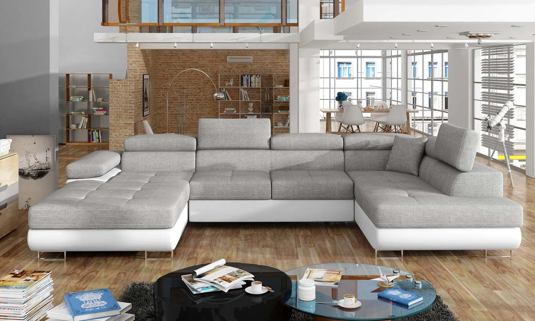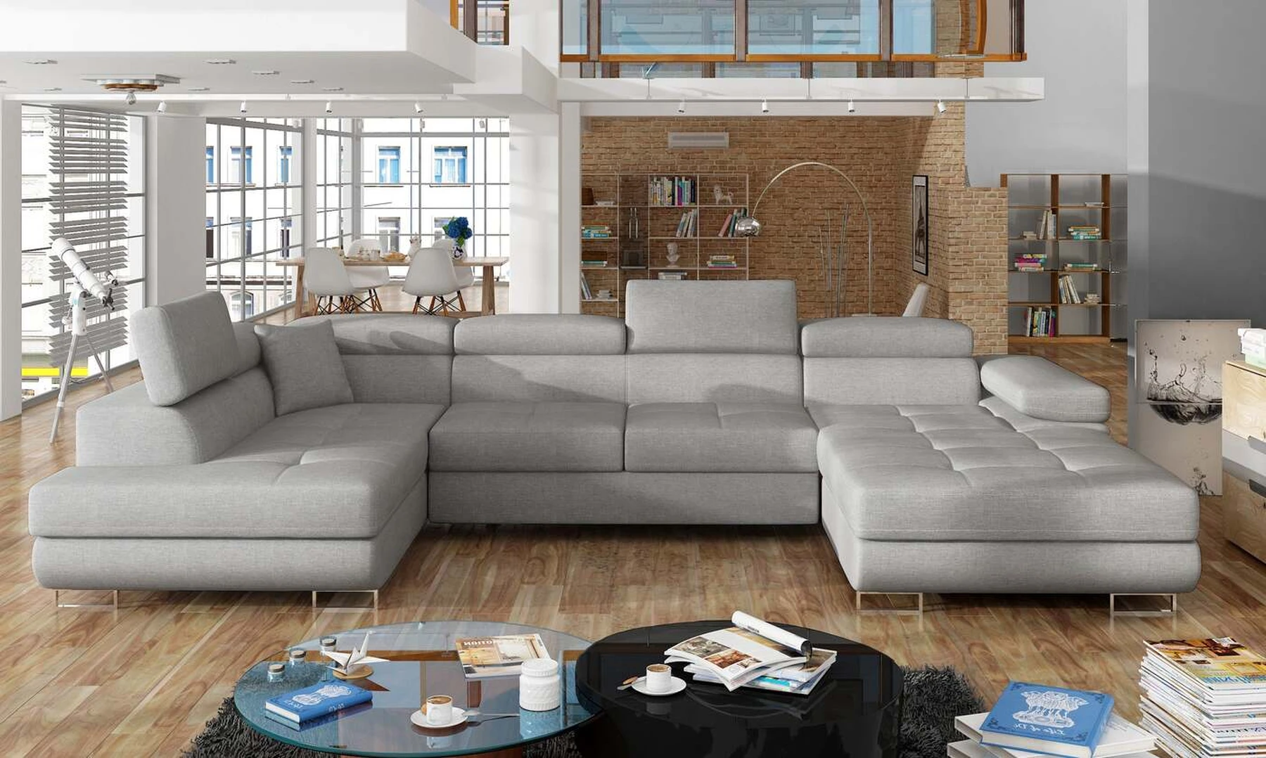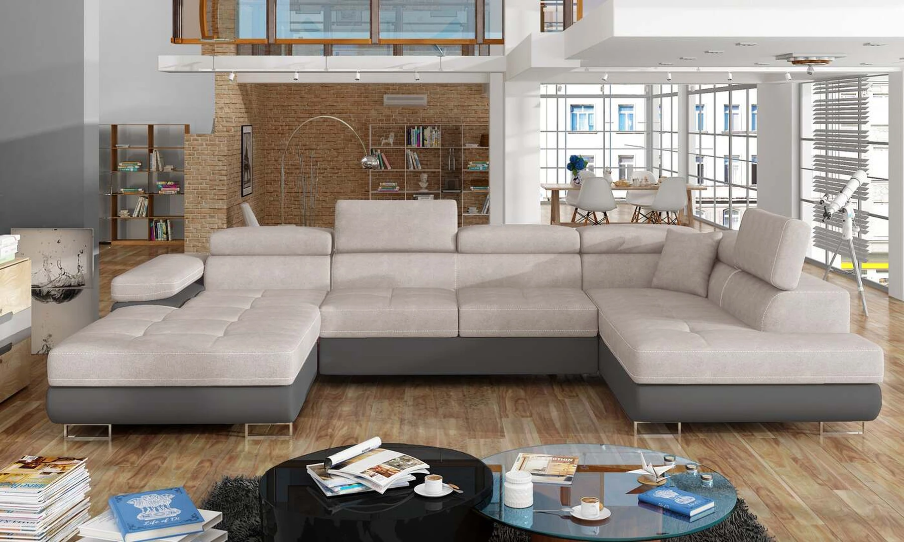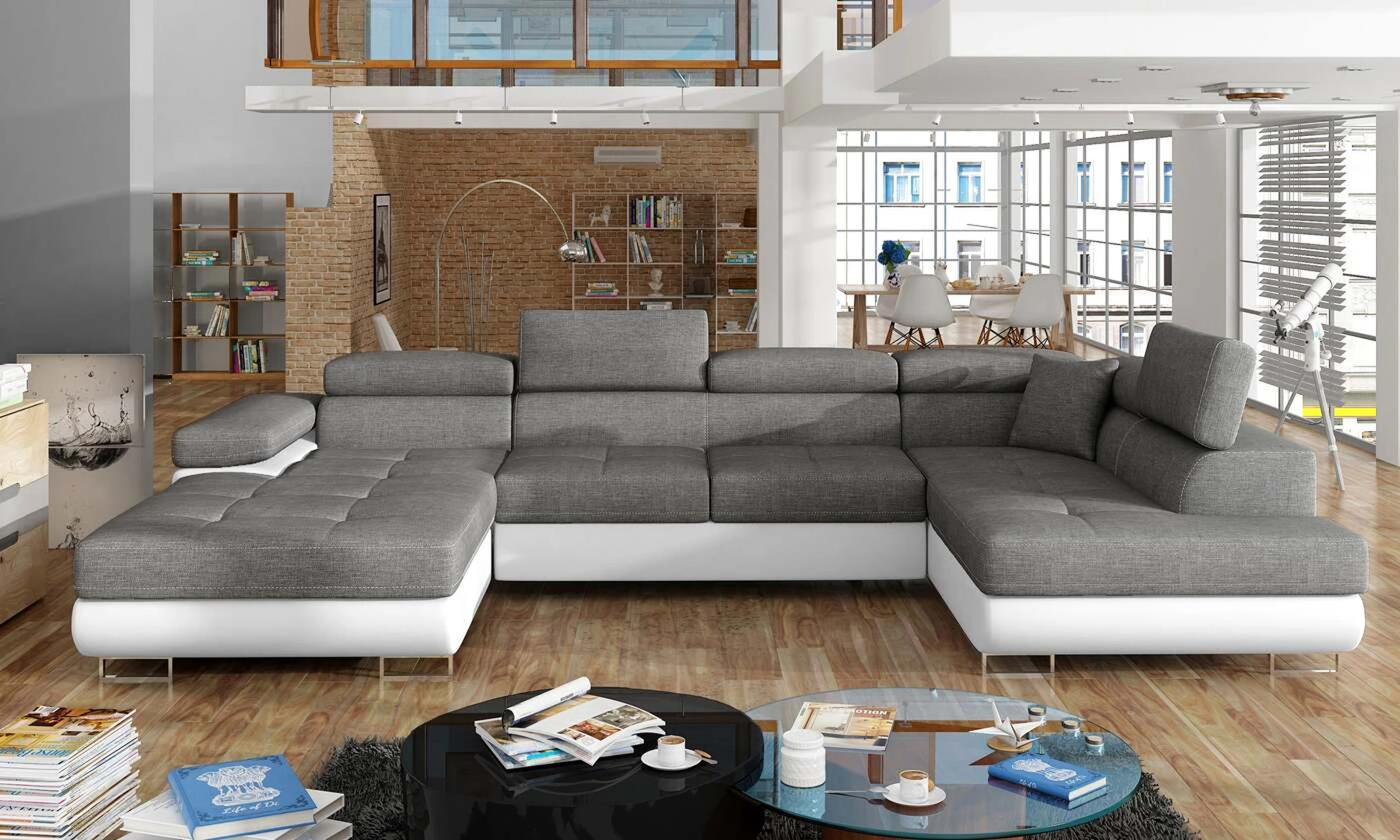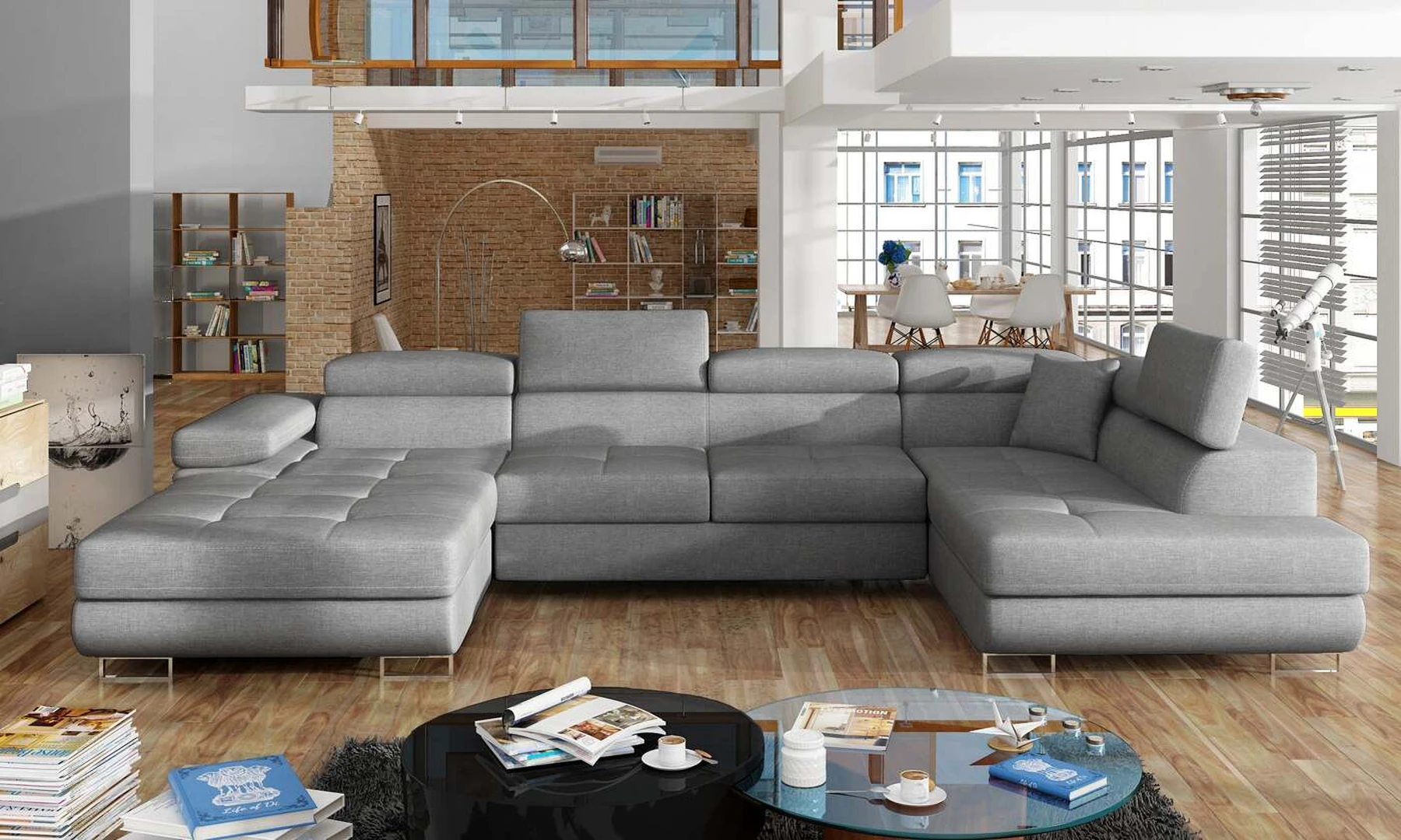 EL4772 yra stilinga ir moderni U formos kampinė sofa. Baldai, kurių matmenys 345 x 202 x 90 cm, garantuoja erdvumą ir komfortą dieną, taip pat maksimalų komfortą 125 x 266 cm – naktį. Delfinų tipo mechanizmo dėka lovos išskleidimas malonus ir nesudėtingas. Be to, verta paminėti ir erdvų patalynės konteinerį, esantį pufoje. Išskirtinį sėdynės minkštumą ir elastingumą garantuoja deformacijoms atsparaus T30 porolono sugretinimas su lanksčia ir patvaria gofruota spyruokle. Tarp ypatybių, kurias galime priskirti šiam modeliui, yra: apmušta nugara, erdvios, gilios sėdynės, kontūrinis atlošas, reguliuojamos galvos atramos, siūlės ir subtilus dygsniavimas ant sėdynių, taip pat aukštos chromuotos kojos. Jei ieškote kažko unikalaus šiuolaikinio klasikinio stiliaus su papildomais žavesio atspalviais – EL4772 jums tikrai puikiai tiks.
