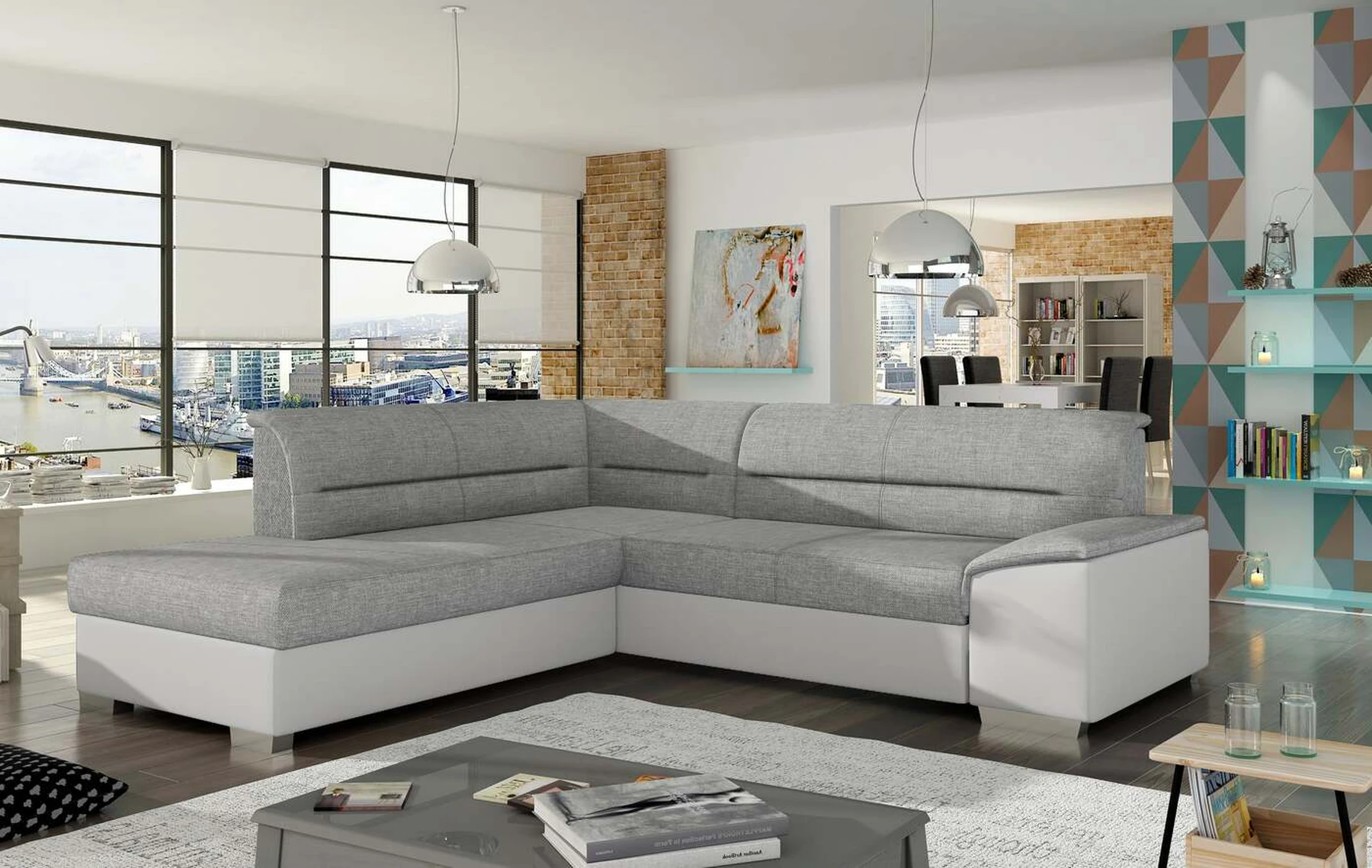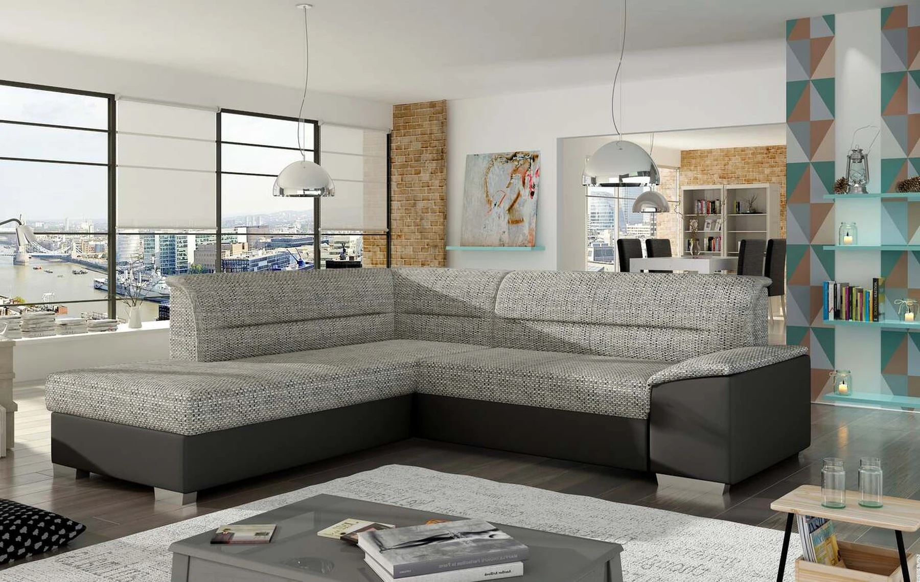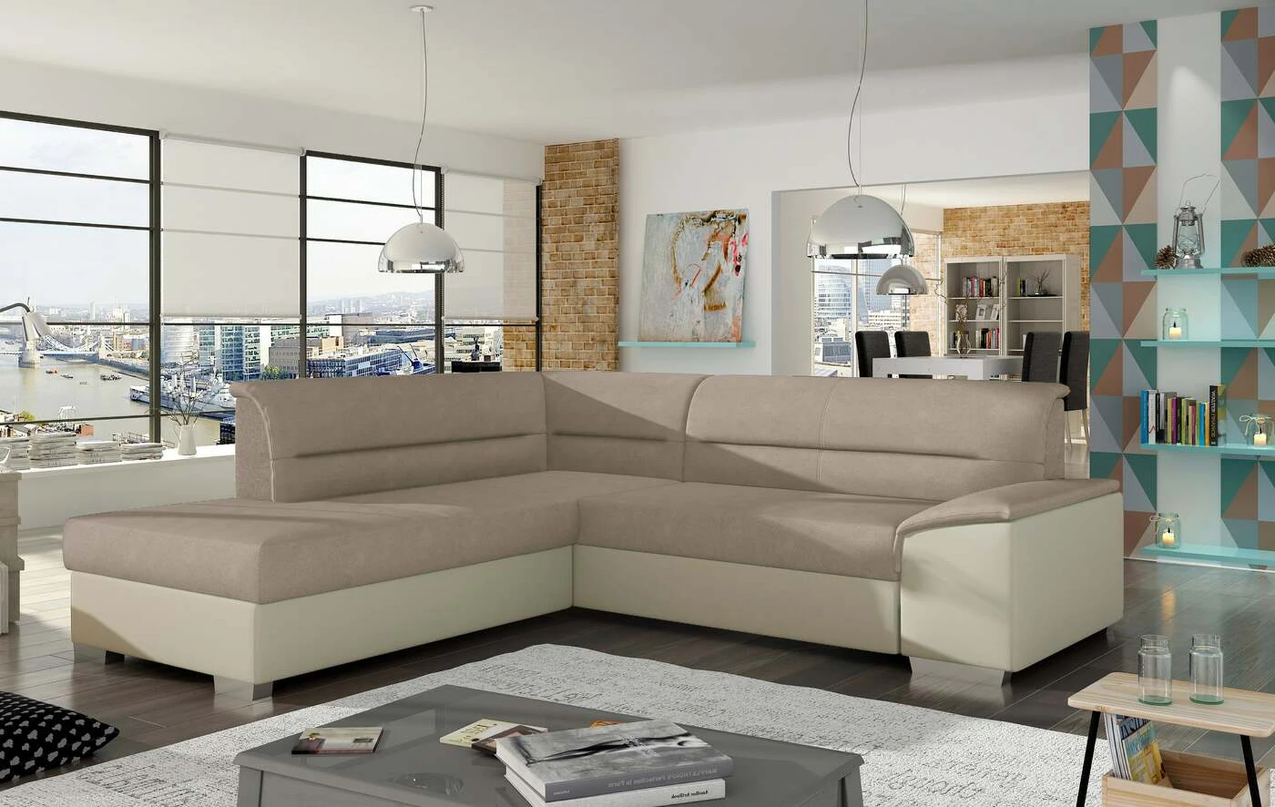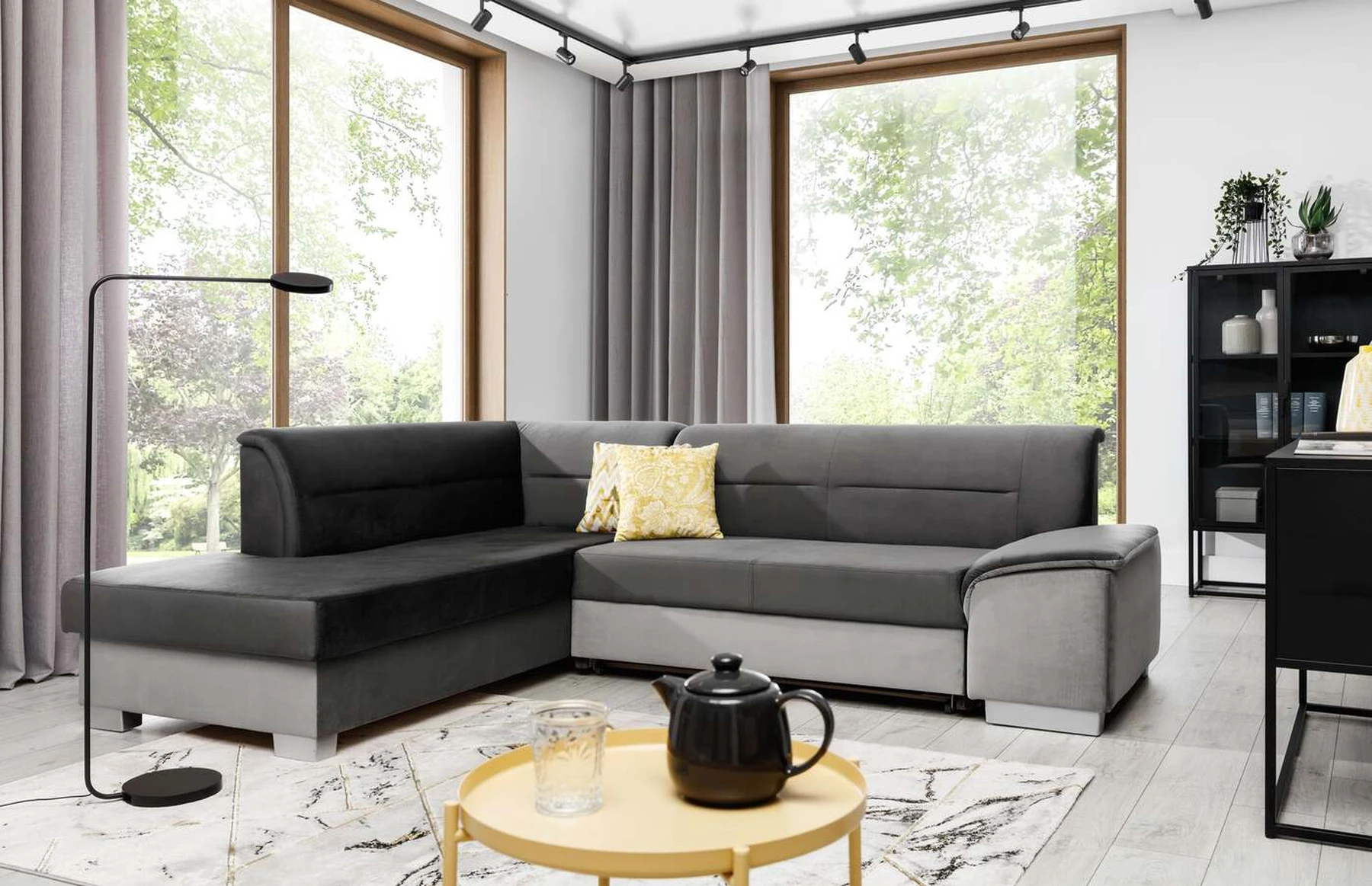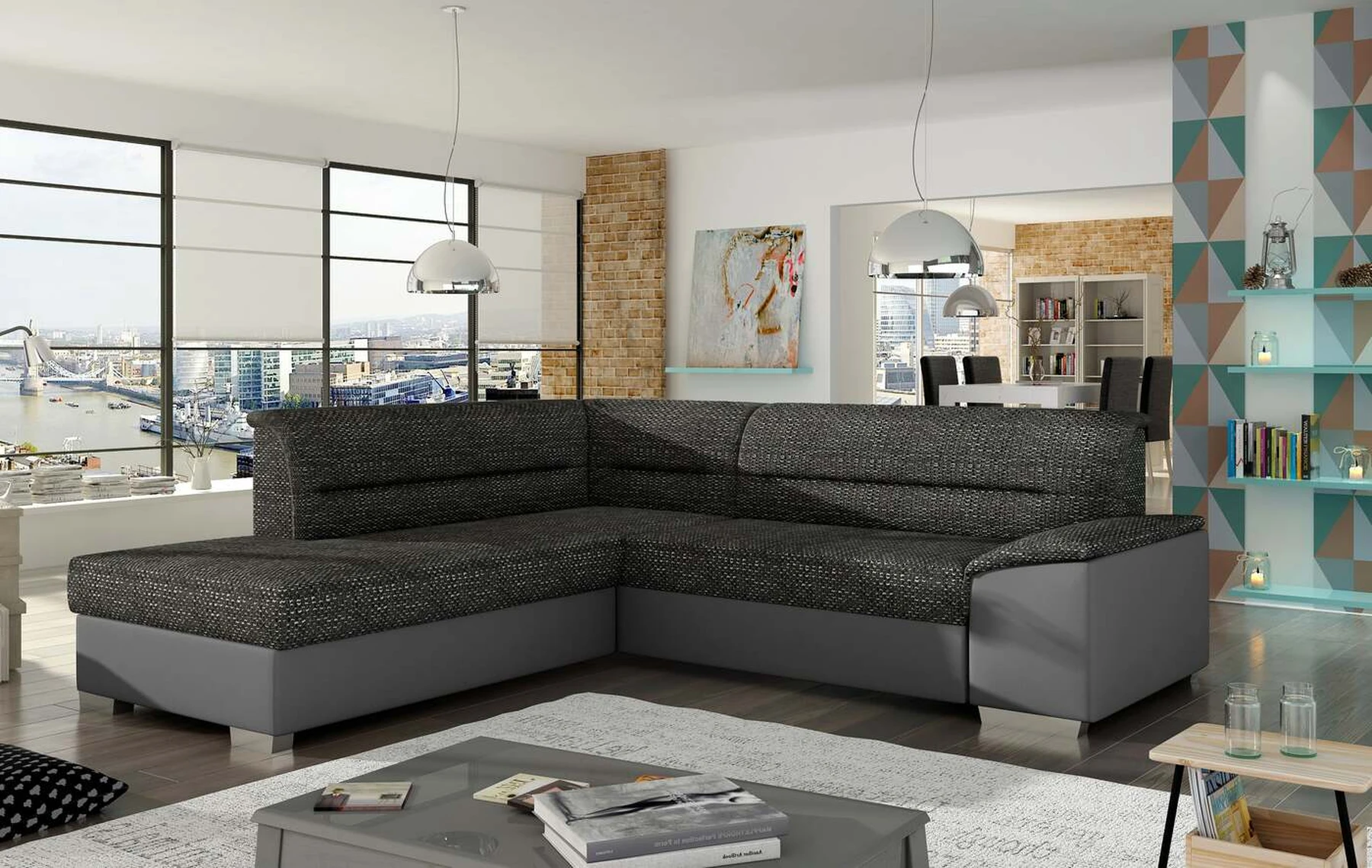 EL5261 yra klasikinė, tačiau paprasta, patogi ir funkcionali L formos kampinė sofa, kurios matmenys 265 x 208 x 87 cm. Tarp skiriamųjų bruožų yra: platus porankis šiek tiek pasvirus, stabilus suapvalintas atlošas, minkšta nugara, elegantiškos, stilingos kojos, dekoratyvinės siūlės ir minkšta sėdynė, užpildyta gofruota spyruokle ir T30 putplasčiu. Šio tipo derinio dėka sofos sėdynė yra atspari deformacijai ir pažeidimams. Mūsų kampinė sofa garantuoja maksimalų komforto lygį tiek ilsintis dieną, tiek miegant. Dėl savo miegojimo funkcijos ir talpios patalynės talpos EL5261 yra daugiafunkcis baldas. Intuityviu ir paprastu delfinų mechanizmu išskleidę sofą gauname 195 x 135 cm matmenų lovą. Jeigu ieškote minimalistinio, tačiau klasikinio ir elegantiško baldo – pasirinkimas gali būti tik vienas – ramia sąžine rekomenduojame kampinę sofą EL5261, kuri pateisins visus Jūsų lūkesčius.