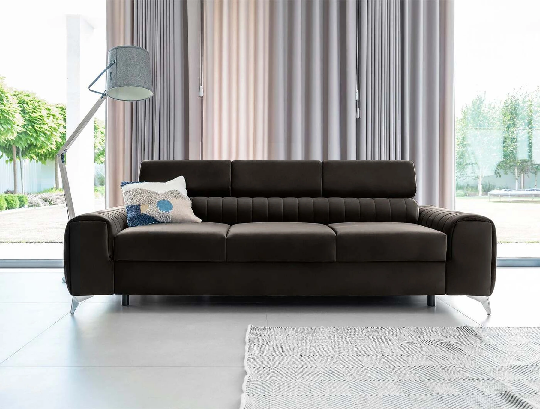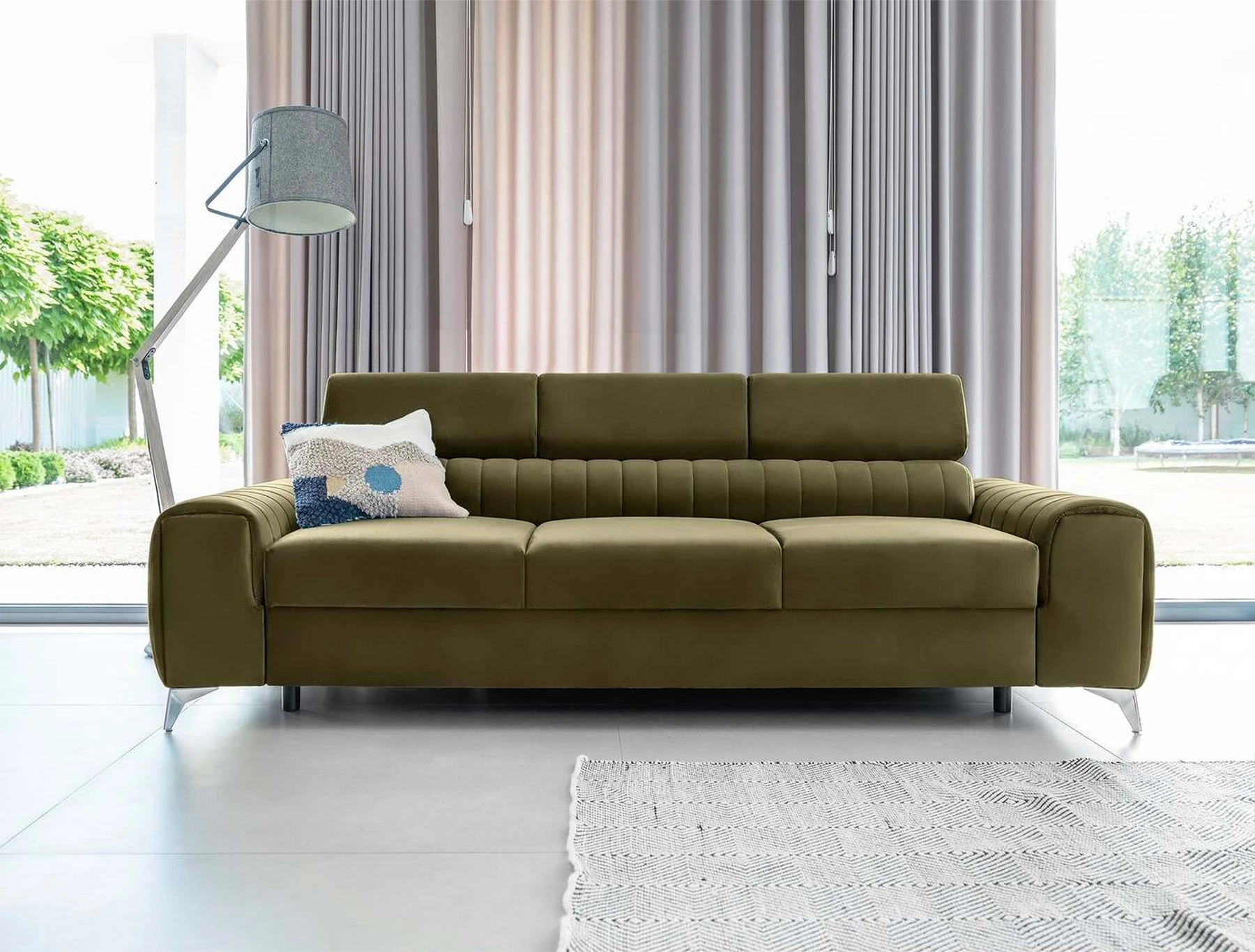 EL5456 sofa turi tvirtą medinį rėmą, kuris remiasi į pasvirusias, chromuotas metalines kojeles. Šioje išskleidžiamoje sofoje, aptrauktoje elegantiškais kolekcijos audiniais, yra sėdynė, užpildyta HR ir T30 putomis. Be to, baldą laiko tvirtos B tipo banginės spyruoklės, kurios suteikia komforto ir patogumo pojūtį. EL5456 sofa suteikia interjerui lengvumo ir stiliaus. Klasikinė šio baldo forma kontrastuojama su siūlėmis ir aiškiai pabrėžtu padalijimu į tris sėdėjimo zonas. EL5456 sofa yra puikus pasirinkimas mažesnėms patalpoms, kuriose, pavyzdžiui, negalite pastatyti kampinės sofos. Jos matmenys: 260 x 97 x 75 centimetrai. Jo kojų aukštis (10 cm) leidžia valyti grindis po sofa moderniais valymo robotais. Ši konvertuojama sofa gali tapti ir dvigule lova, kuri puikiai tinka bet kokį interjerą paversti svečių kambariu. Puma plus sistema buvo naudojama kaip sofos išlankstymo mechanizmas, dėl kurio reikia pakelti sėdynę ir nuleisti į priekį. Tuo pačiu metu iš po sėdynės automatiškai išslysta antrasis miegamasis paviršius. Puma plus mechanizmo privalumas yra tas, kad jums nereikia jaudintis dėl grindų sugadinimo išskleidžiant ir sulankant sofą. Visa konstrukcija yra labai lengva ir nesudėtinga, todėl bet kas gali ją išskleisti be jokių problemų. 199 x 136 centimetrų miegamoji erdvė užtikrina ramų miegą dviem žmonėms.