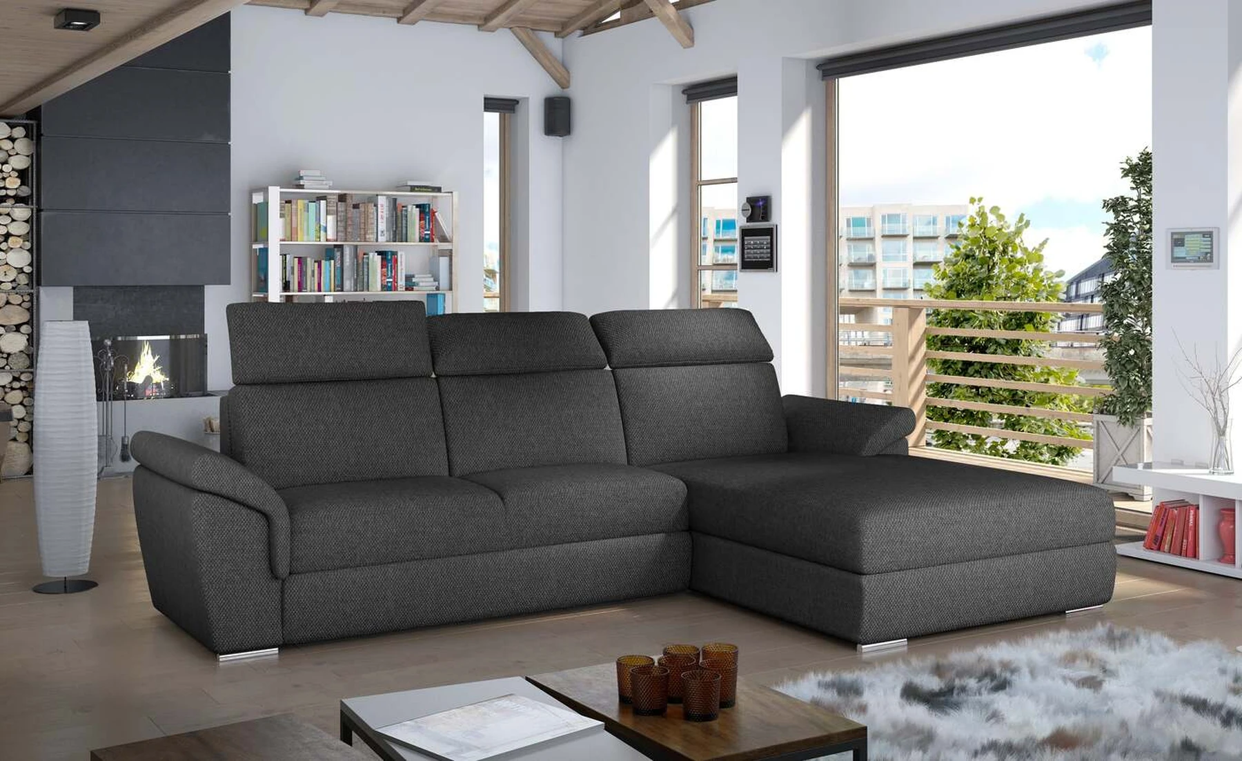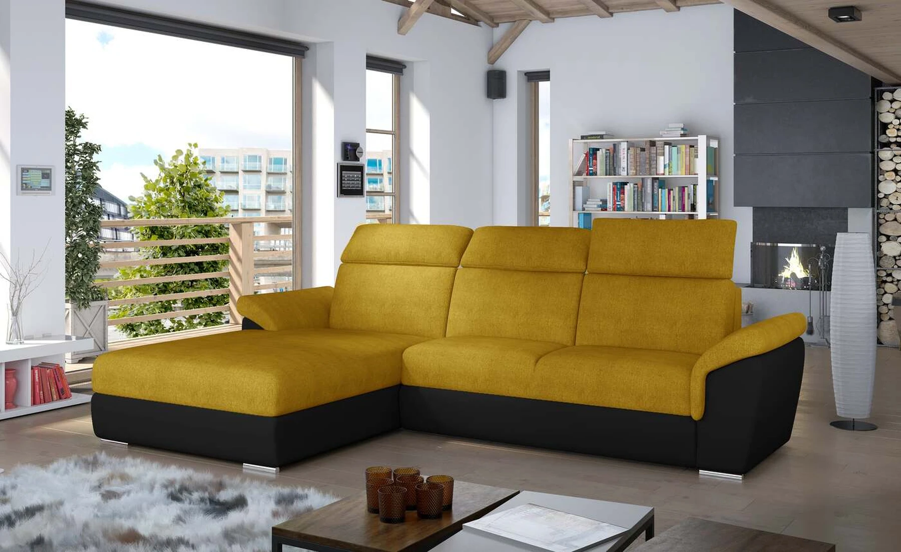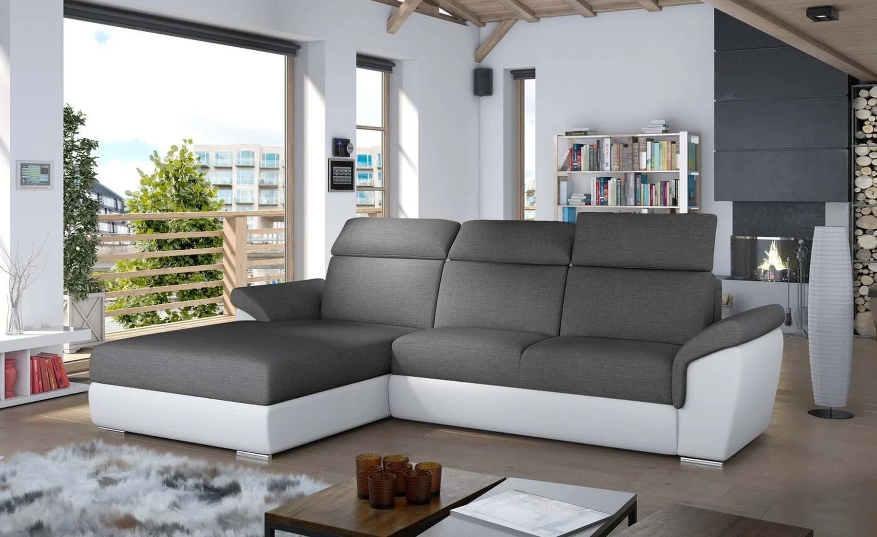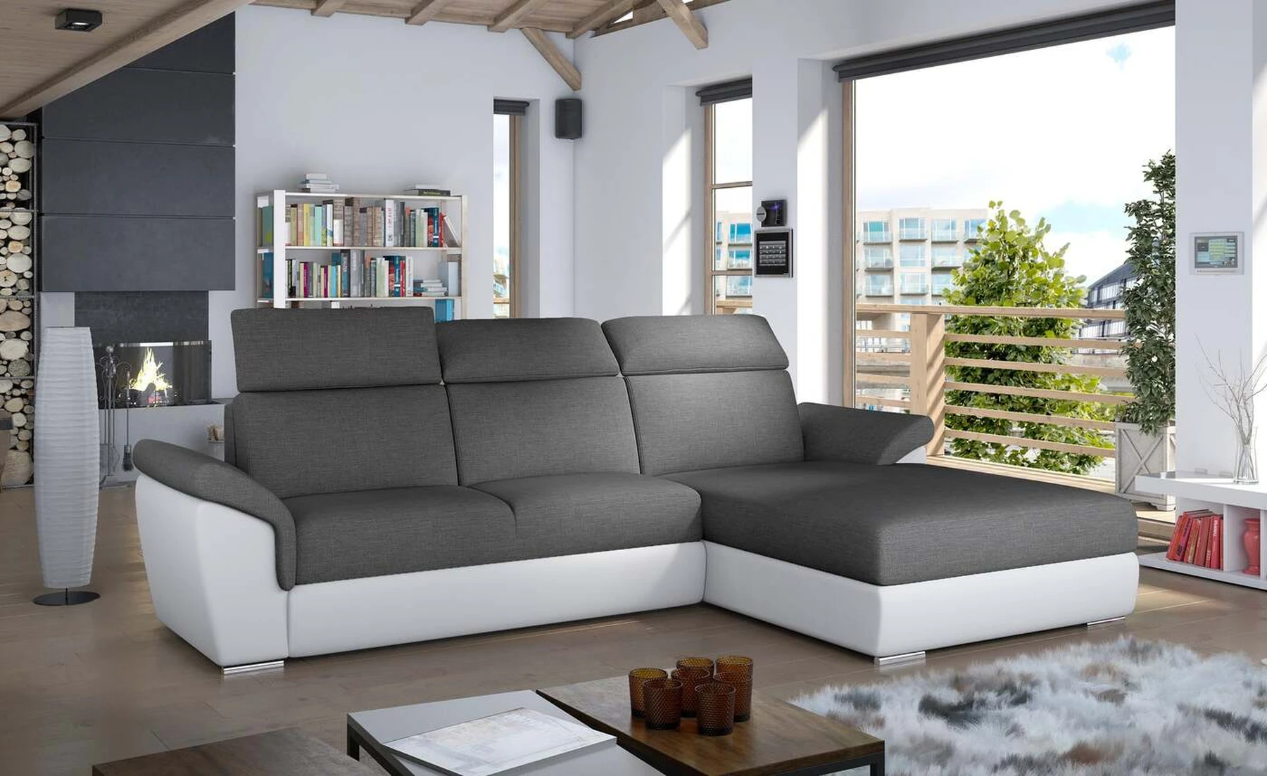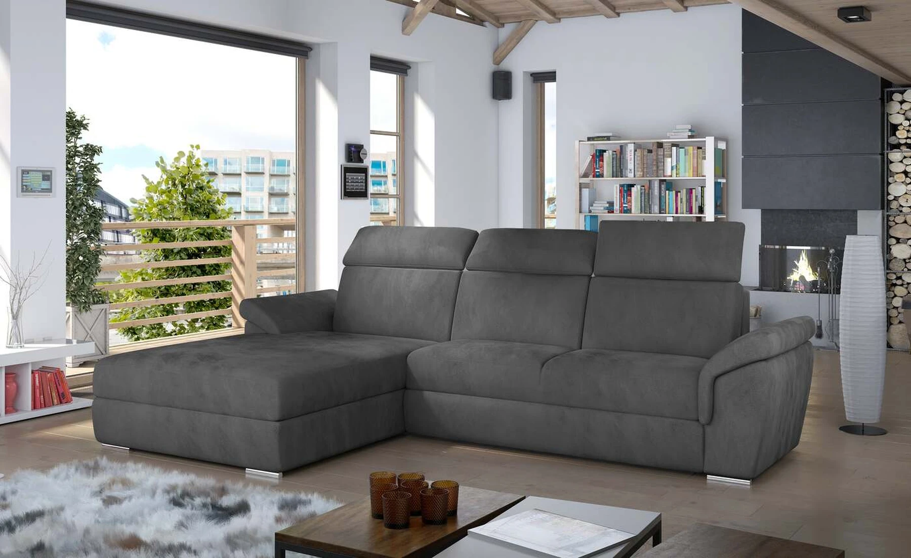 EL5961 yra patogi ir stilinga kampinė sofa, kuri tiesiog žavi – ne tik klasikiniu korpusu, kuris papildo modernią atskirų elementų apdailą, bet ir maksimaliu komfortu, kurį galima patirti ant 272 x 212 x 100 cm sofos. Sofa-lova EL5961 puikiai tiks kaip baldas dienos poilsiui, bet gali pasitarnauti ir kaip miegojimo vieta. Išskleidžiamas delfinas leidžia greitai pakeisti kampinę sofą į patogią 127 x 210 cm matmenų lovą. Baldo funkcionalumą pagerina ir talpi patalynės saugykla, kuri yra atsidarančioje pufoje. Baldo sėdynė pagaminta iš patvarios gofruotos spyruoklės ir elastingo T30 putplasčio, kuris garantuoja išskirtinį švelnumo ir lankstumo efektą. EL5961 yra baldas, kuris atitiks visus jūsų lūkesčius – nuo žavėjimosi estetinėmis savybėmis iki maksimalaus patogumo, pasiekiamo po ranka.