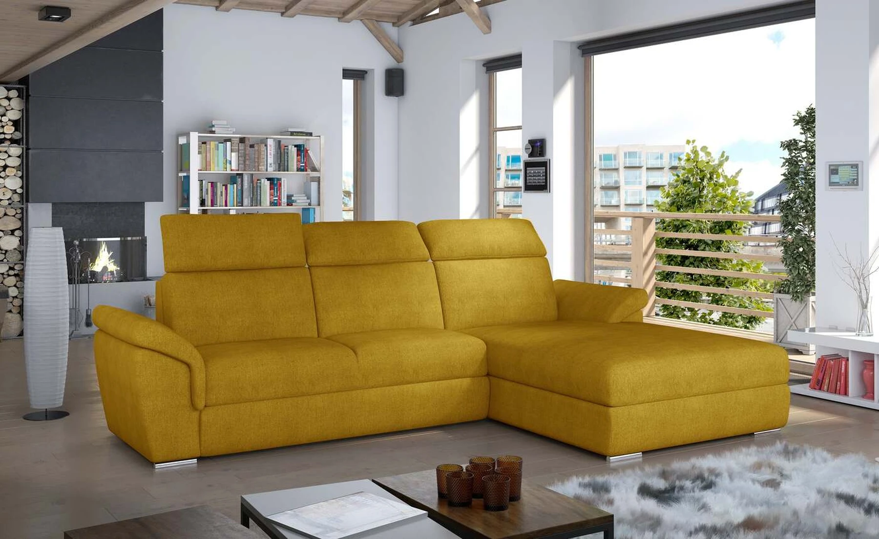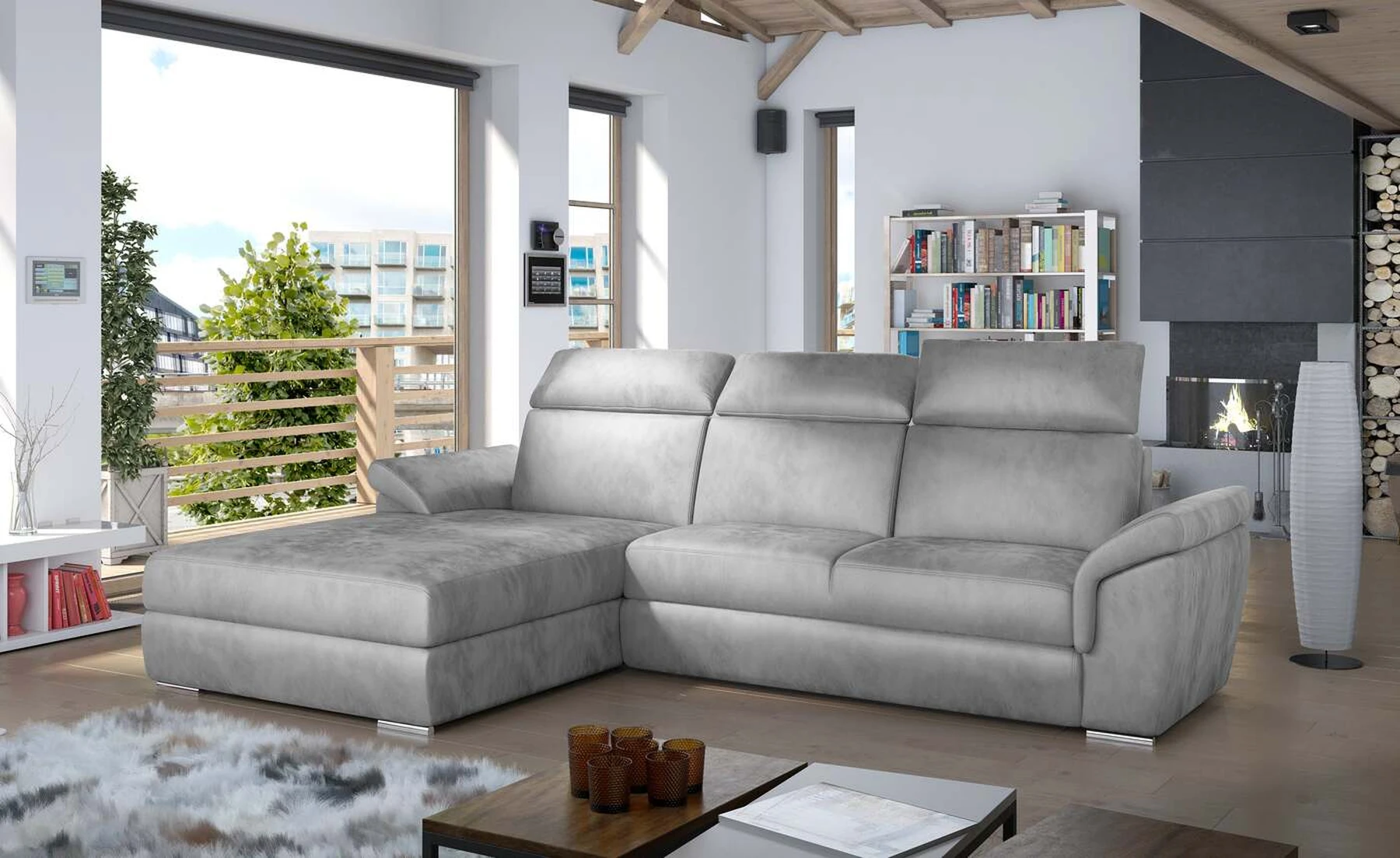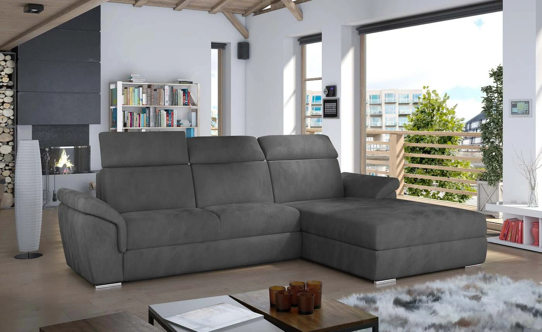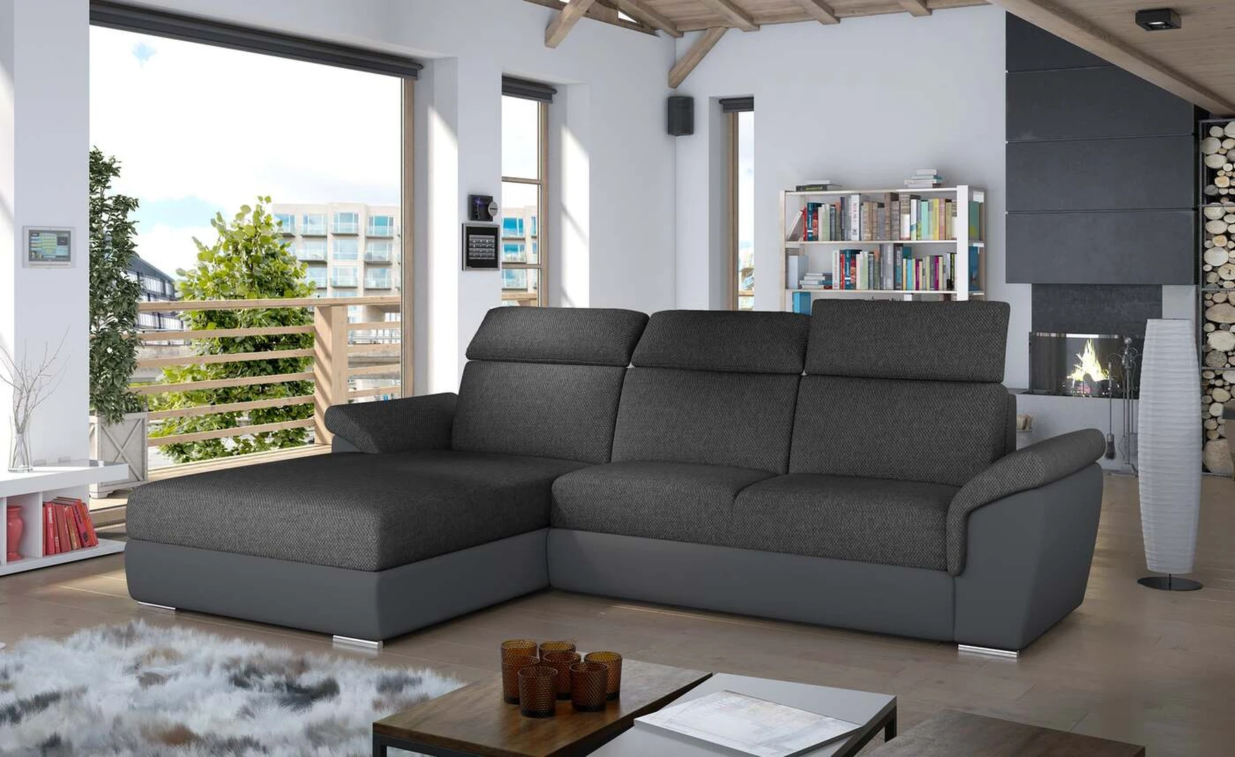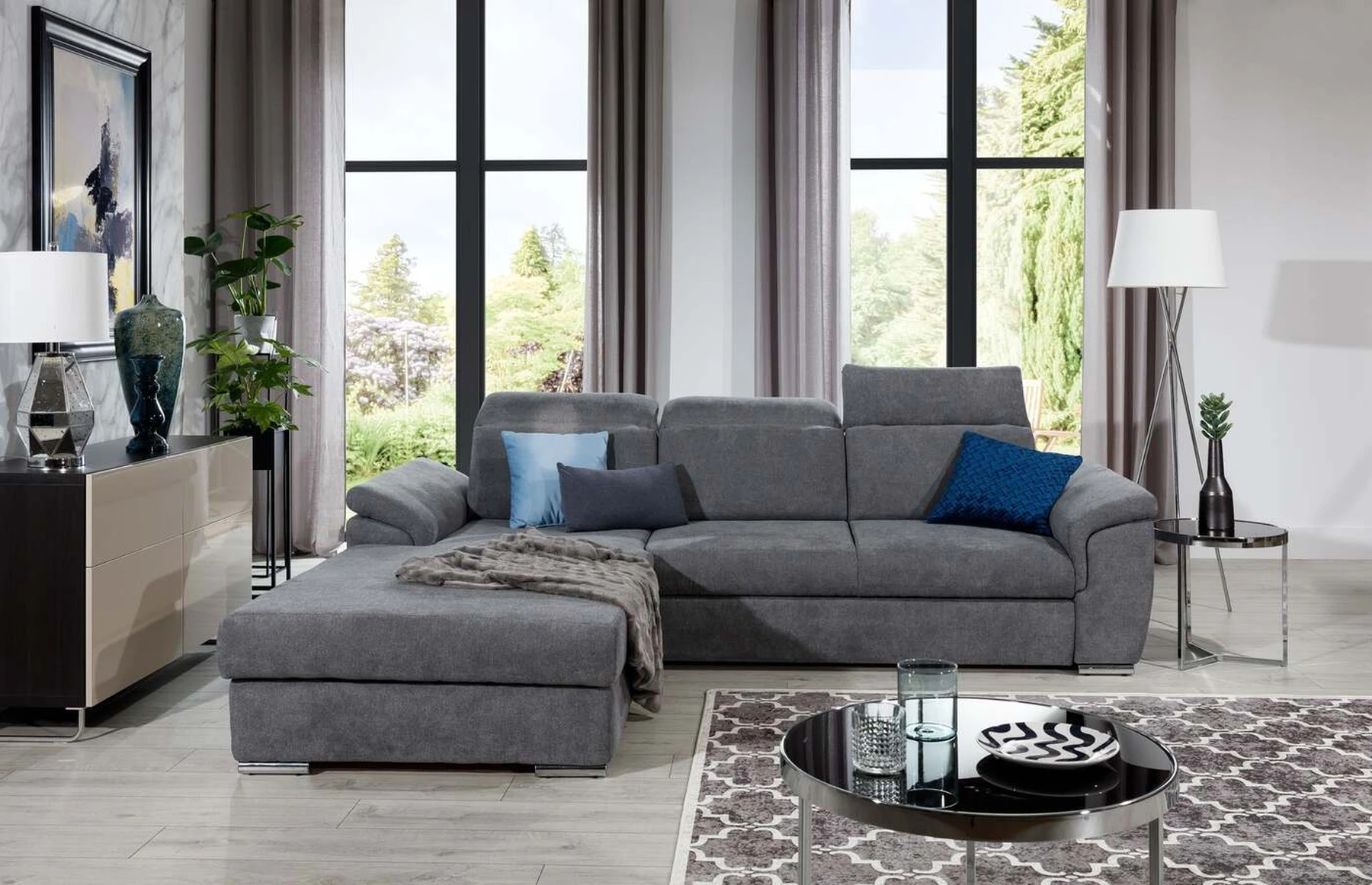 EL5961 yra patogi ir stilinga kampinė sofa, kuri tiesiog žavi – ne tik klasikiniu korpusu, kuris papildo modernią atskirų elementų apdailą, bet ir maksimaliu komfortu, kurį galima patirti ant 272 x 212 x 100 cm sofos. Sofa-lova EL5961 puikiai tiks kaip baldas dienos poilsiui, bet gali pasitarnauti ir kaip miegojimo vieta. Išskleidžiamas delfinas leidžia greitai pakeisti kampinę sofą į patogią 127 x 210 cm matmenų lovą. Baldo funkcionalumą pagerina ir talpi patalynės saugykla, kuri yra atsidarančioje pufoje. Baldo sėdynė pagaminta iš patvarios gofruotos spyruoklės ir elastingo T30 putplasčio, kuris garantuoja išskirtinį švelnumo ir lankstumo efektą. EL5961 yra baldas, kuris atitiks visus jūsų lūkesčius – nuo žavėjimosi estetinėmis savybėmis iki maksimalaus patogumo, pasiekiamo po ranka.
