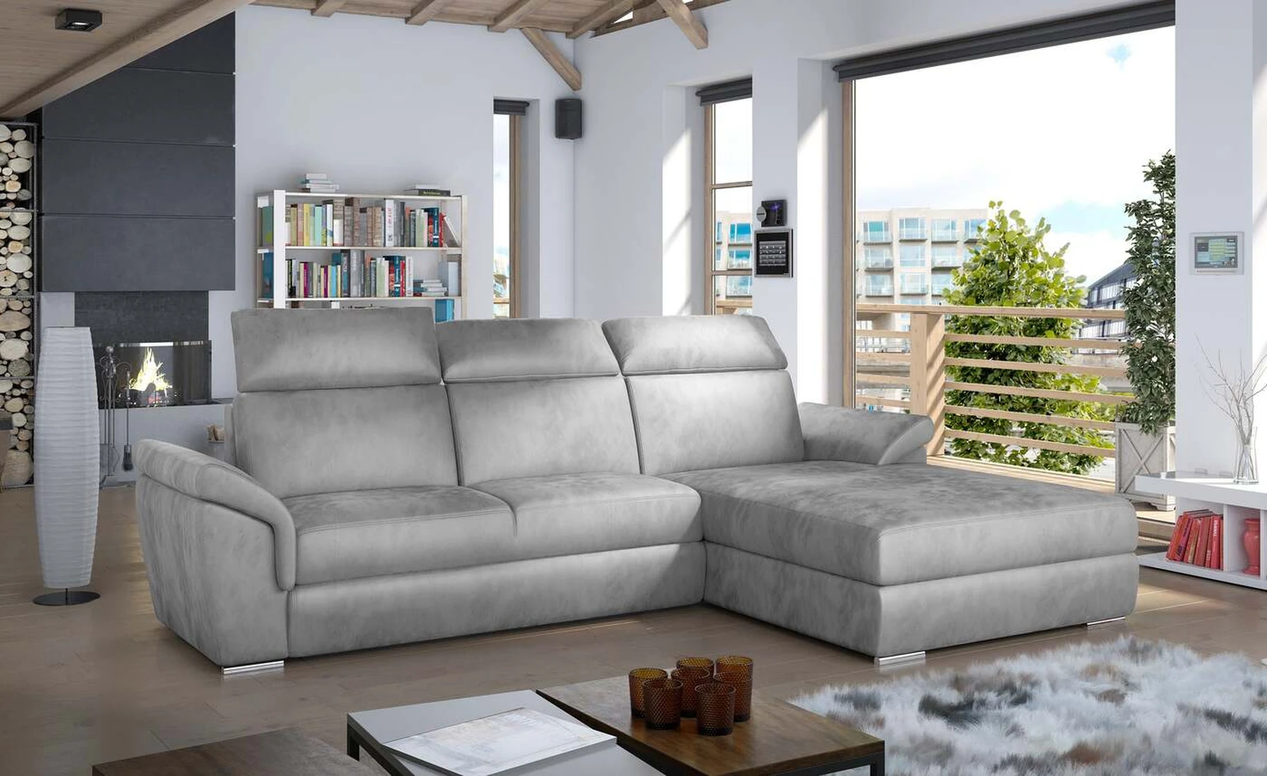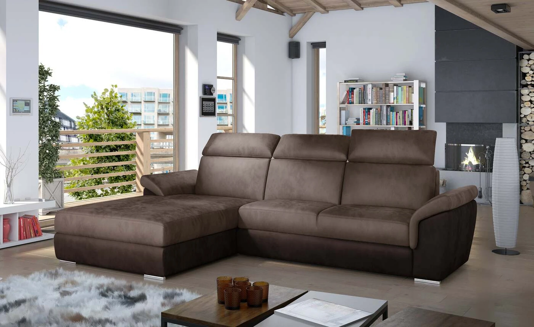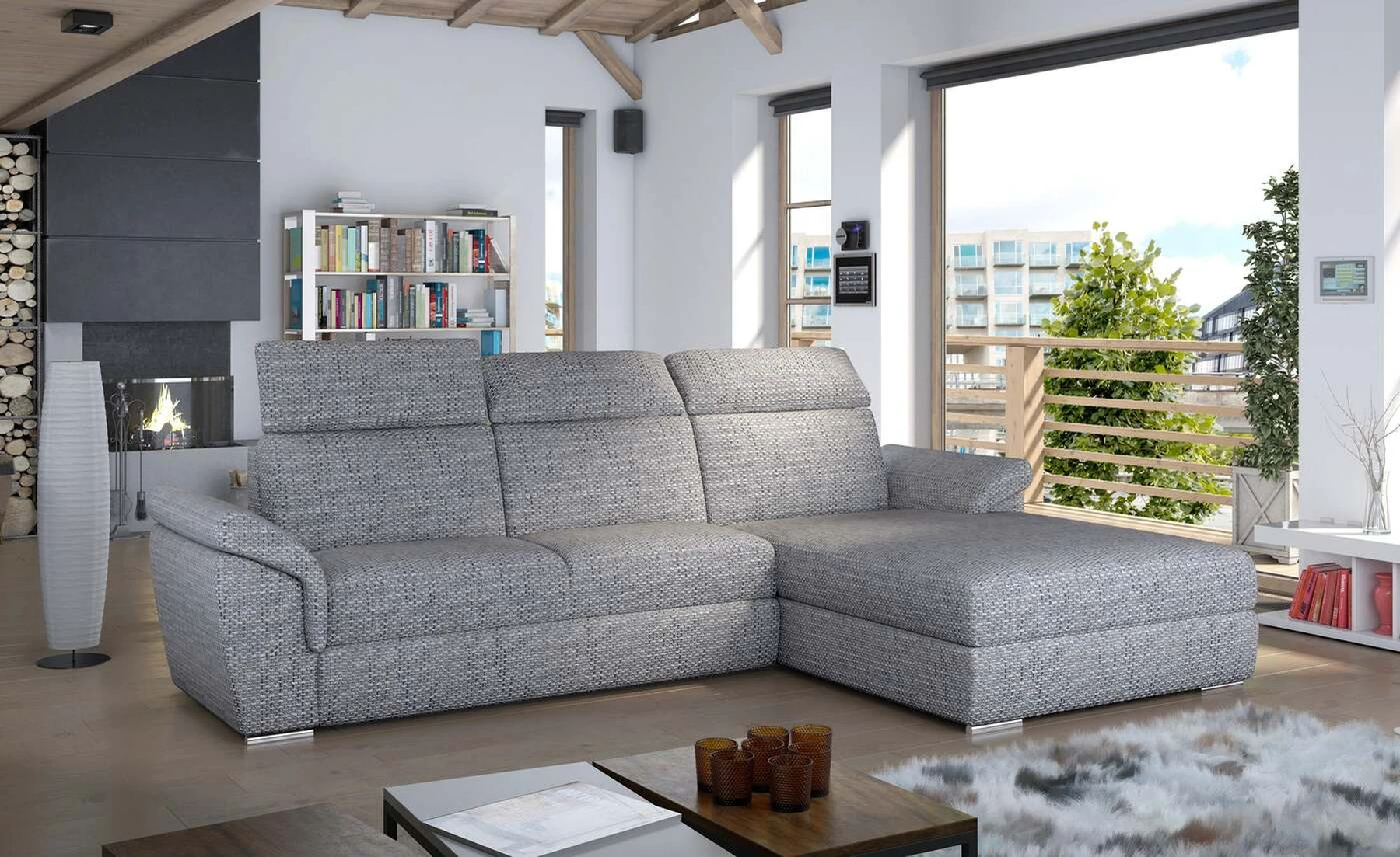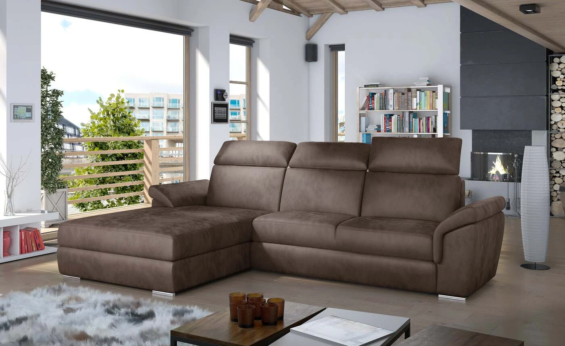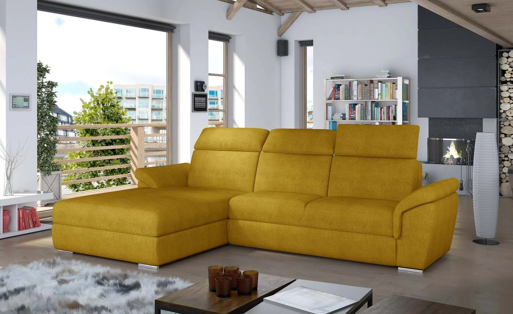 EL5961 yra patogi ir stilinga kampinė sofa, kuri tiesiog žavi – ne tik klasikiniu korpusu, kuris papildo modernią atskirų elementų apdailą, bet ir maksimaliu komfortu, kurį galima patirti ant 272 x 212 x 100 cm sofos. Sofa-lova EL5961 puikiai tiks kaip baldas dienos poilsiui, bet gali pasitarnauti ir kaip miegojimo vieta. Išskleidžiamas delfinas leidžia greitai pakeisti kampinę sofą į patogią 127 x 210 cm matmenų lovą. Baldo funkcionalumą pagerina ir talpi patalynės saugykla, kuri yra atsidarančioje pufoje. Baldo sėdynė pagaminta iš patvarios gofruotos spyruoklės ir elastingo T30 putplasčio, kuris garantuoja išskirtinį švelnumo ir lankstumo efektą. EL5961 yra baldas, kuris atitiks visus jūsų lūkesčius – nuo žavėjimosi estetinėmis savybėmis iki maksimalaus patogumo, pasiekiamo po ranka.