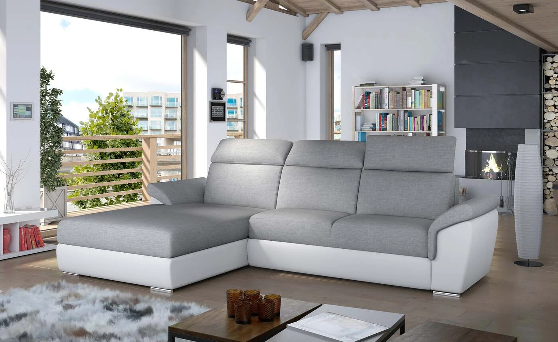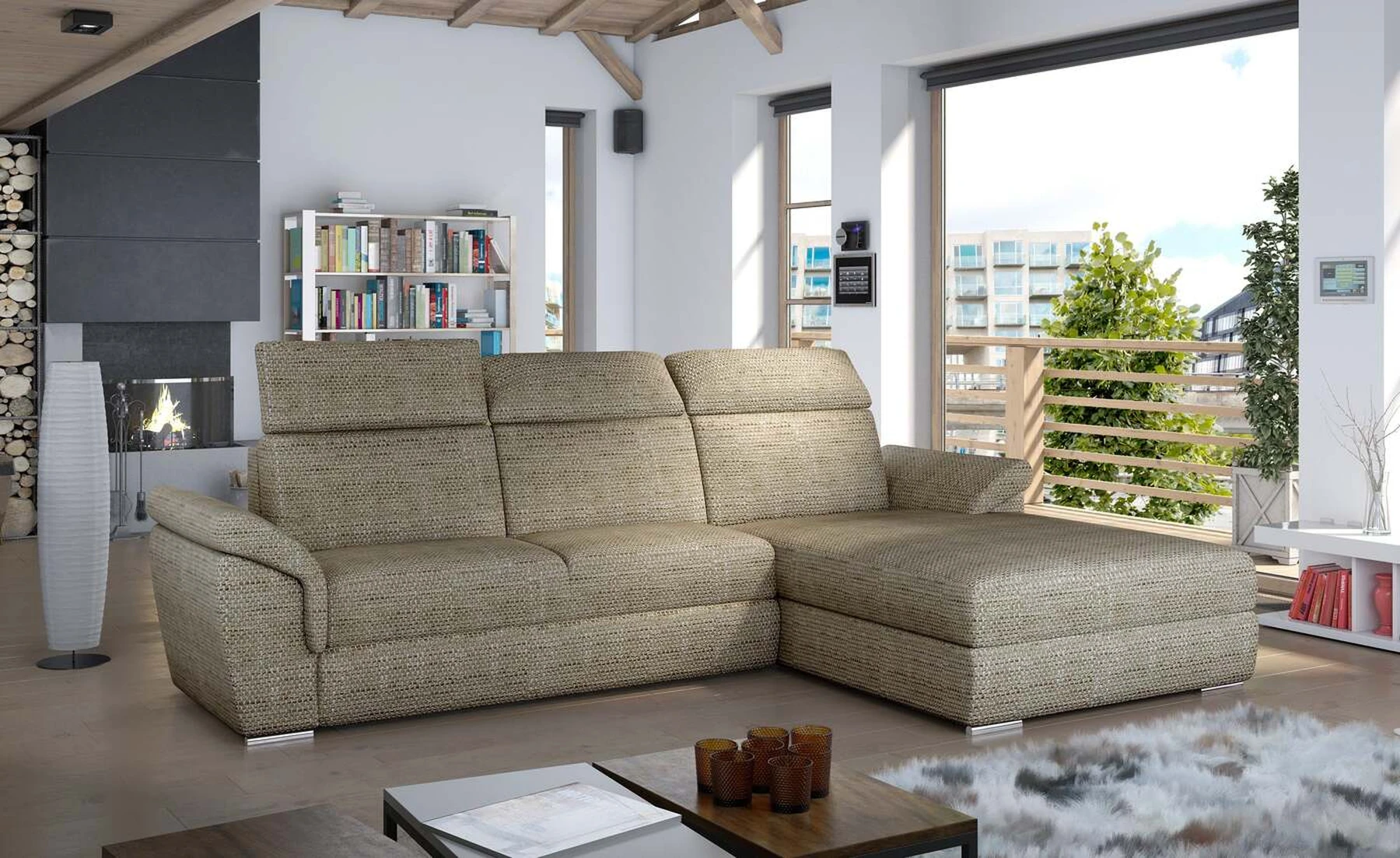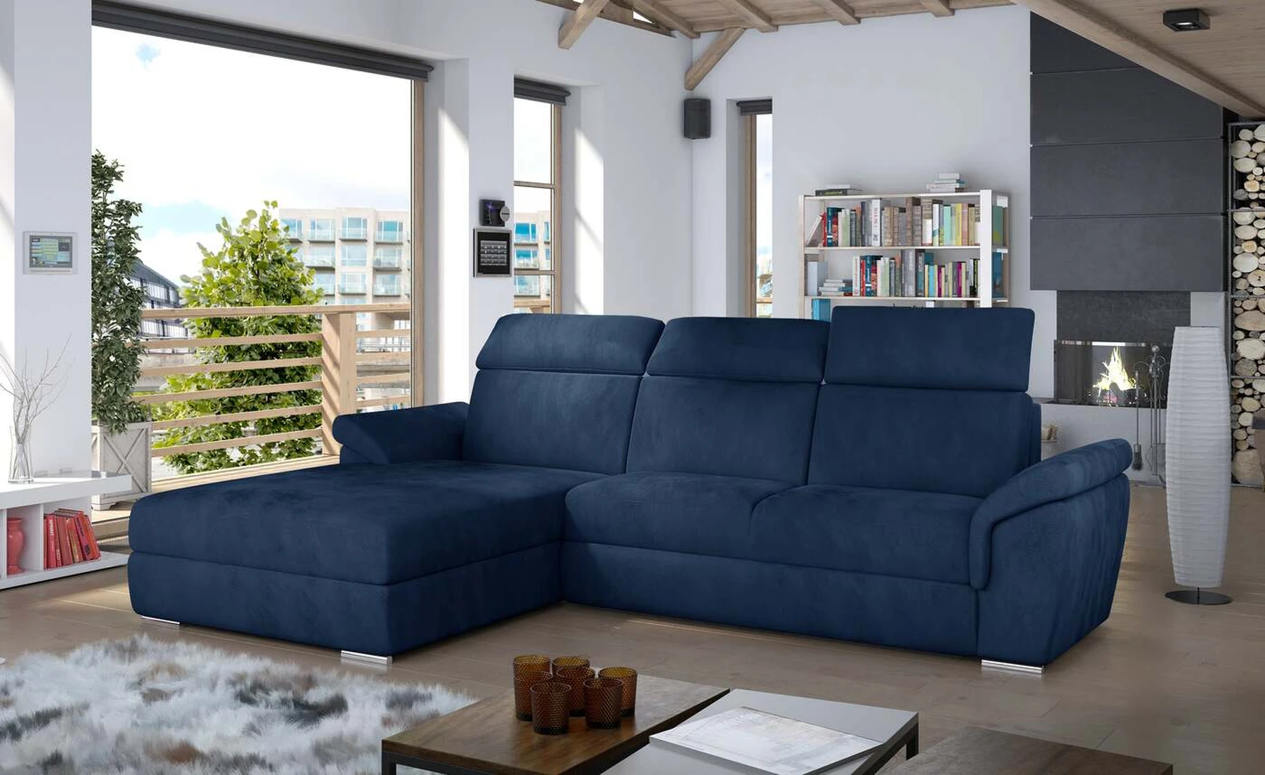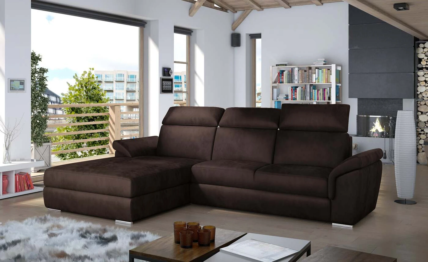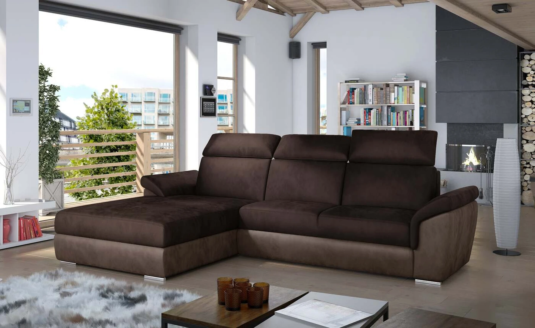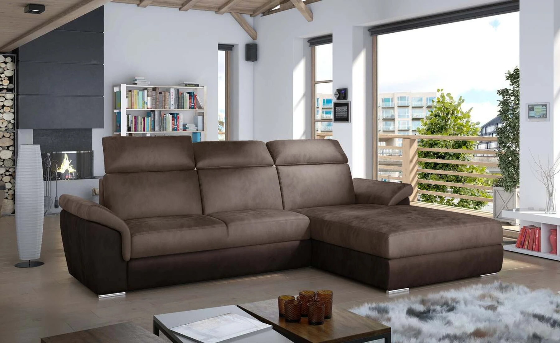 EL5961 yra patogi ir stilinga kampinė sofa, kuri tiesiog žavi – ne tik klasikiniu korpusu, kuris papildo modernią atskirų elementų apdailą, bet ir maksimaliu komfortu, kurį galima patirti ant 272 x 212 x 100 cm sofos. Sofa-lova EL5961 puikiai tiks kaip baldas dienos poilsiui, bet gali pasitarnauti ir kaip miegojimo vieta. Išskleidžiamas delfinas leidžia greitai pakeisti kampinę sofą į patogią 127 x 210 cm matmenų lovą. Baldo funkcionalumą pagerina ir talpi patalynės saugykla, kuri yra atsidarančioje pufoje. Baldo sėdynė pagaminta iš patvarios gofruotos spyruoklės ir elastingo T30 putplasčio, kuris garantuoja išskirtinį švelnumo ir lankstumo efektą. EL5961 yra baldas, kuris atitiks visus jūsų lūkesčius – nuo žavėjimosi estetinėmis savybėmis iki maksimalaus patogumo, pasiekiamo po ranka.