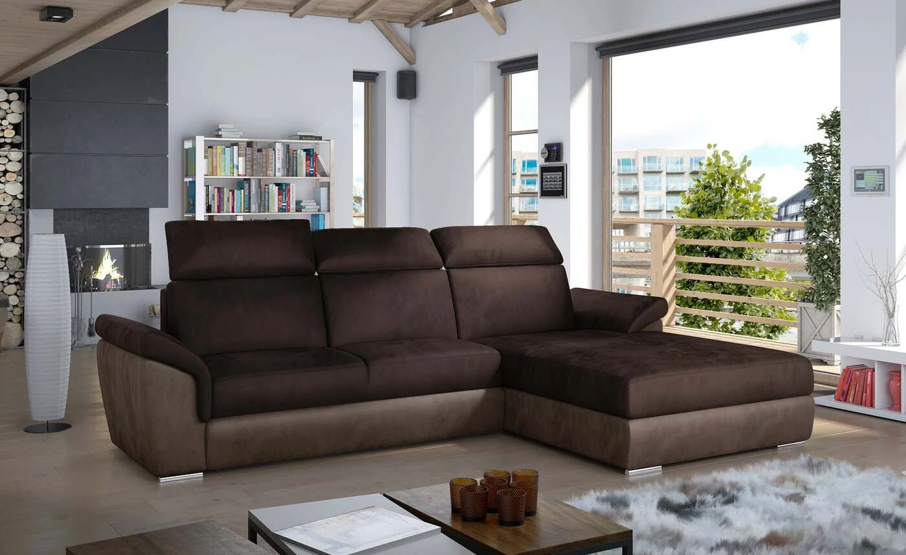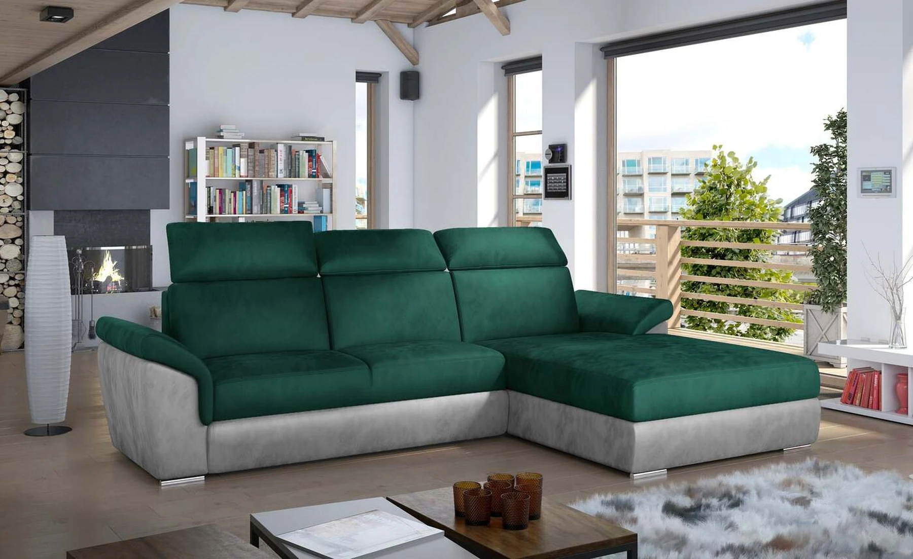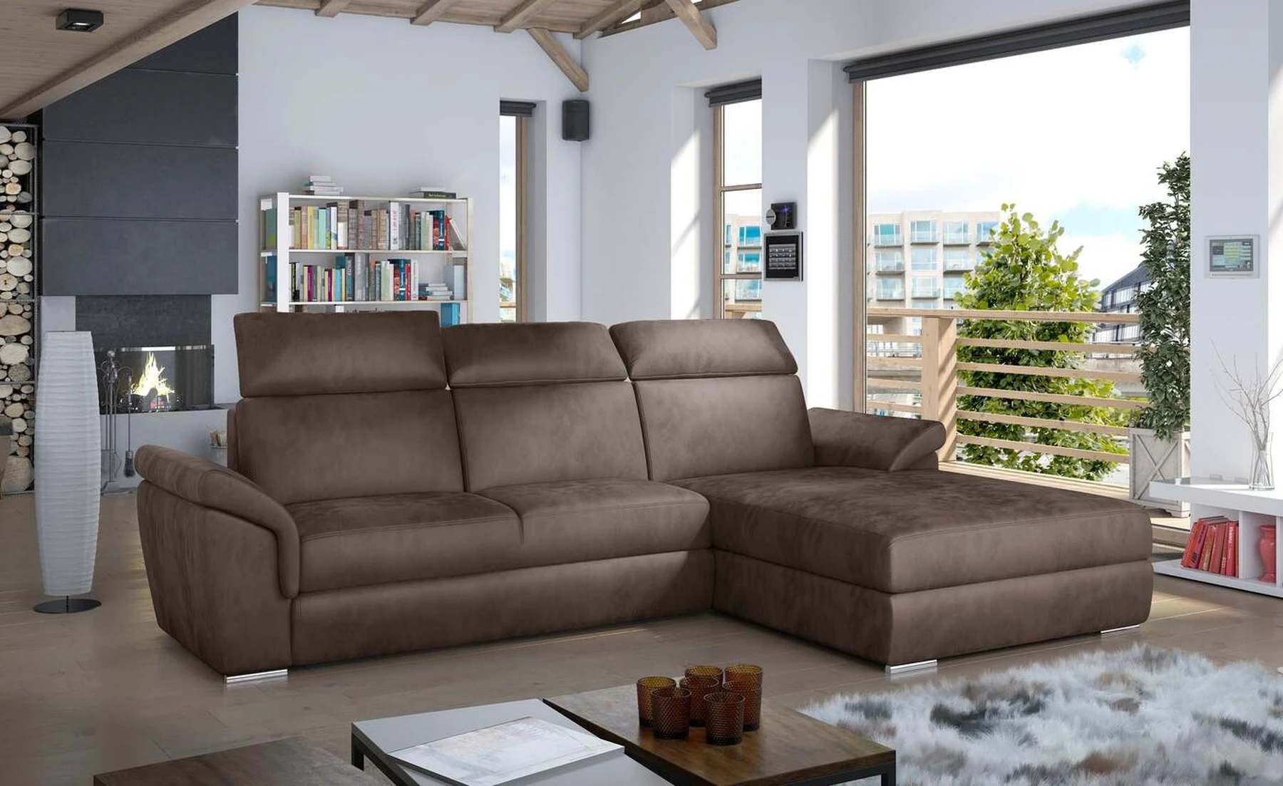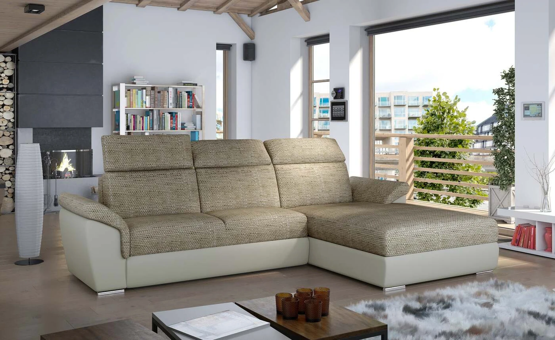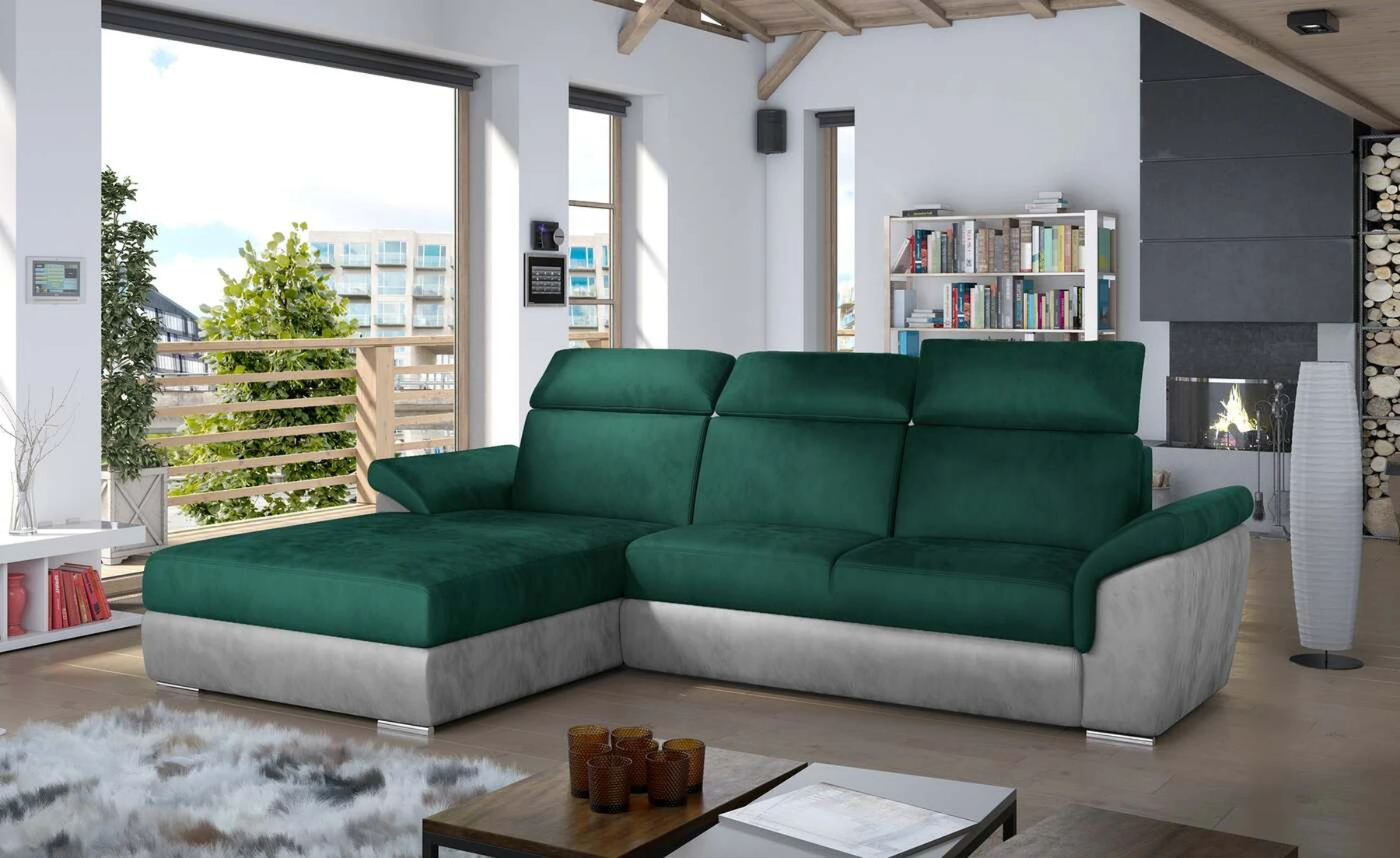EL5961 yra patogi ir stilinga kampinė sofa, kuri tiesiog žavi – ne tik klasikiniu korpusu, kuris papildo modernią atskirų elementų apdailą, bet ir maksimaliu komfortu, kurį galima patirti ant 272 x 212 x 100 cm sofos. Sofa-lova EL5961 puikiai tiks kaip baldas dienos poilsiui, bet gali pasitarnauti ir kaip miegojimo vieta. Išskleidžiamas delfinas leidžia greitai pakeisti kampinę sofą į patogią 127 x 210 cm matmenų lovą. Baldo funkcionalumą pagerina ir talpi patalynės saugykla, kuri yra atsidarančioje pufoje. Baldo sėdynė pagaminta iš patvarios gofruotos spyruoklės ir elastingo T30 putplasčio, kuris garantuoja išskirtinį švelnumo ir lankstumo efektą. EL5961 yra baldas, kuris atitiks visus jūsų lūkesčius – nuo žavėjimosi estetinėmis savybėmis iki maksimalaus patogumo, pasiekiamo po ranka.