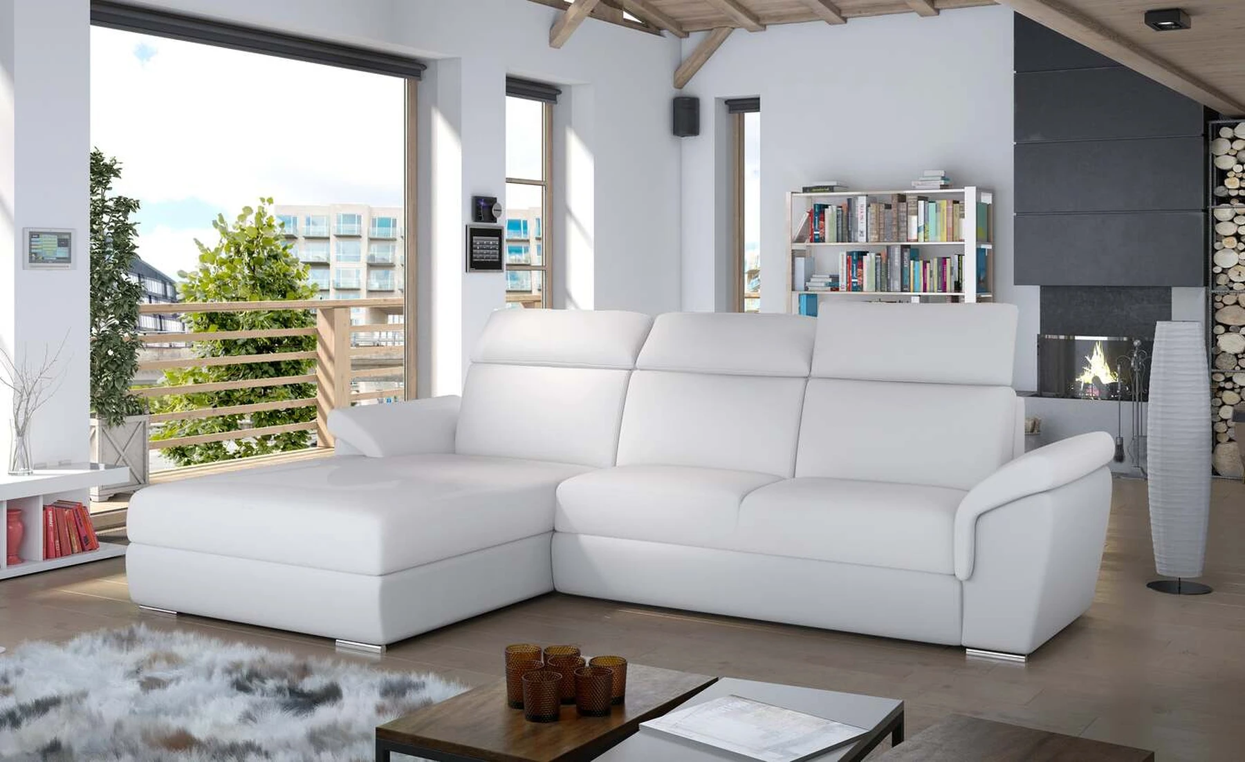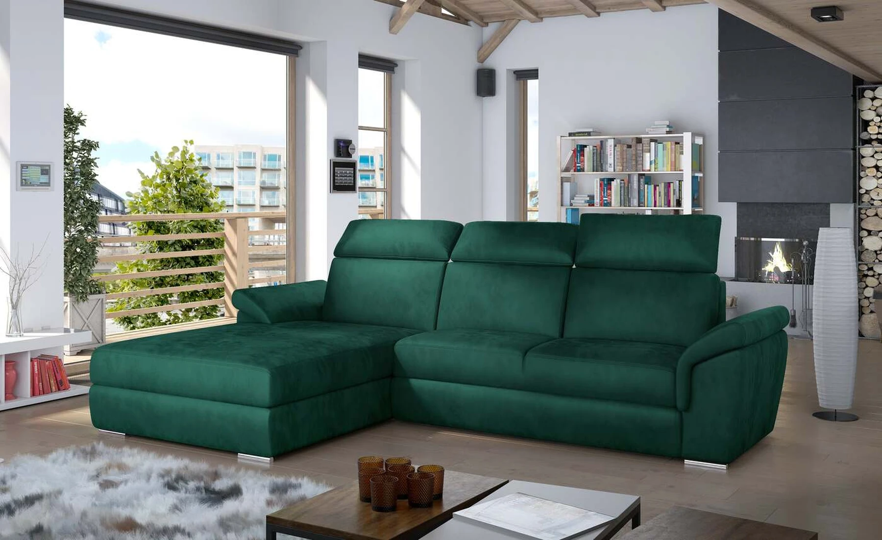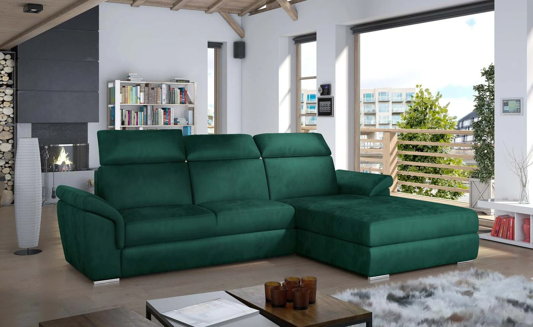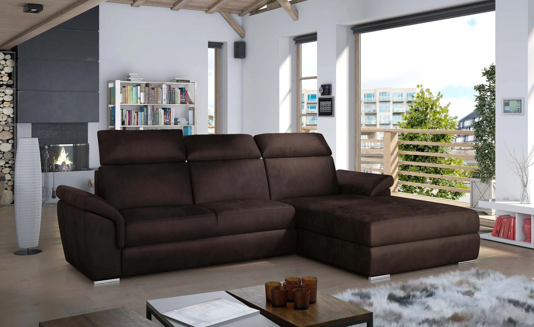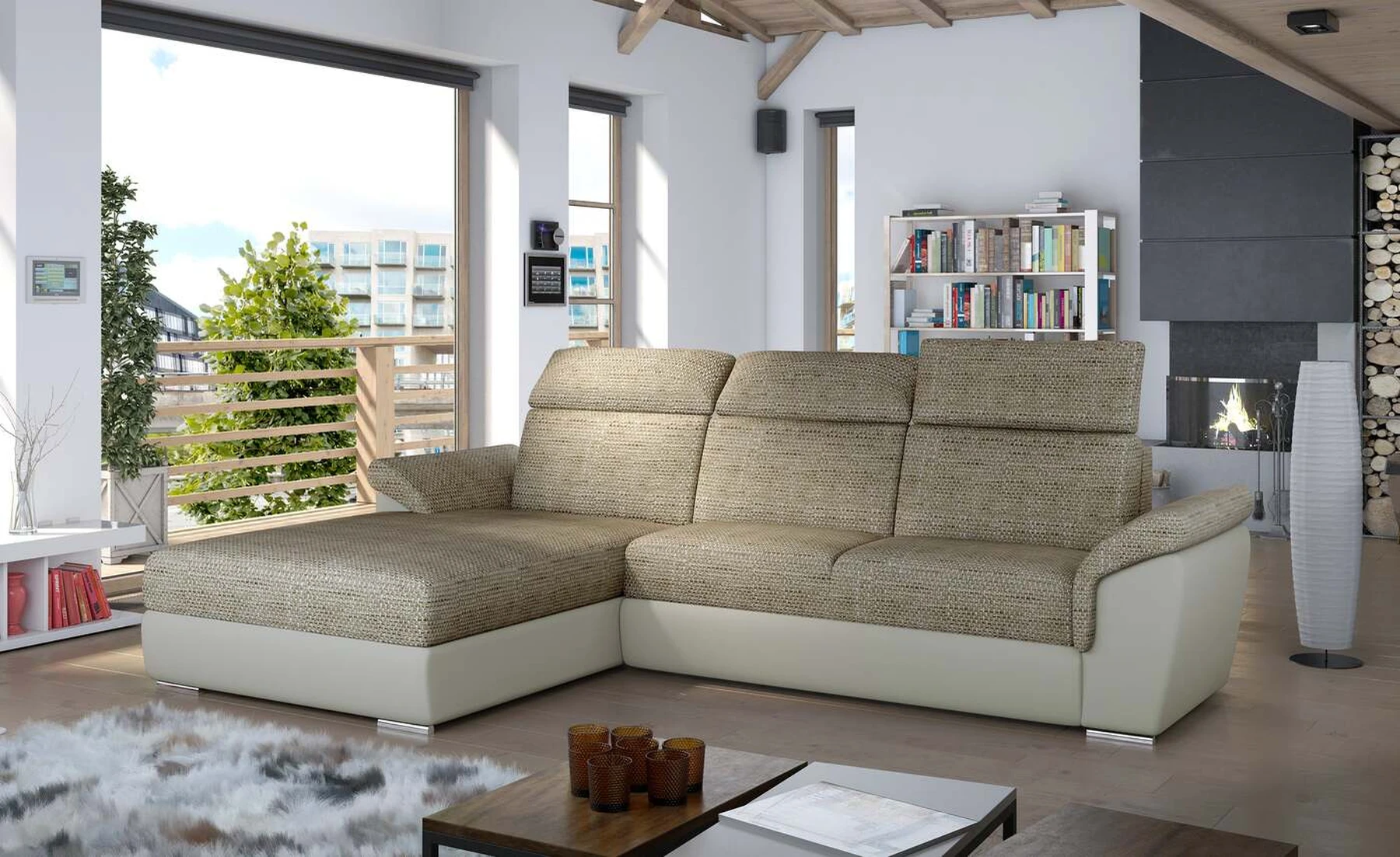 EL5961 yra patogi ir stilinga kampinė sofa, kuri tiesiog žavi – ne tik klasikiniu korpusu, kuris papildo modernią atskirų elementų apdailą, bet ir maksimaliu komfortu, kurį galima patirti ant 272 x 212 x 100 cm sofos. Sofa-lova EL5961 puikiai tiks kaip baldas dienos poilsiui, bet gali pasitarnauti ir kaip miegojimo vieta. Išskleidžiamas delfinas leidžia greitai pakeisti kampinę sofą į patogią 127 x 210 cm matmenų lovą. Baldo funkcionalumą pagerina ir talpi patalynės saugykla, kuri yra atsidarančioje pufoje. Baldo sėdynė pagaminta iš patvarios gofruotos spyruoklės ir elastingo T30 putplasčio, kuris garantuoja išskirtinį švelnumo ir lankstumo efektą. EL5961 yra baldas, kuris atitiks visus jūsų lūkesčius – nuo žavėjimosi estetinėmis savybėmis iki maksimalaus patogumo, pasiekiamo po ranka.