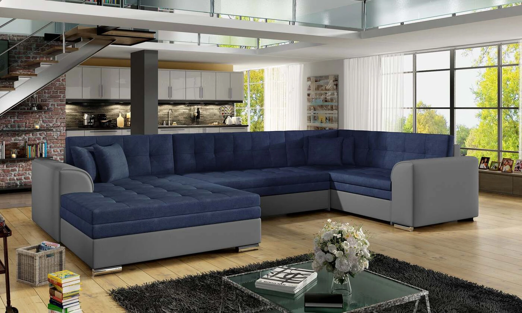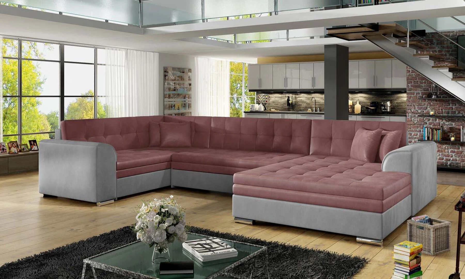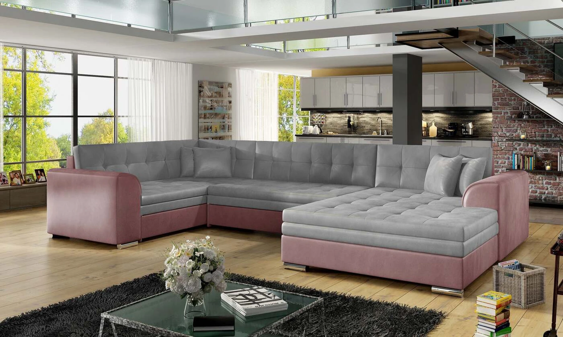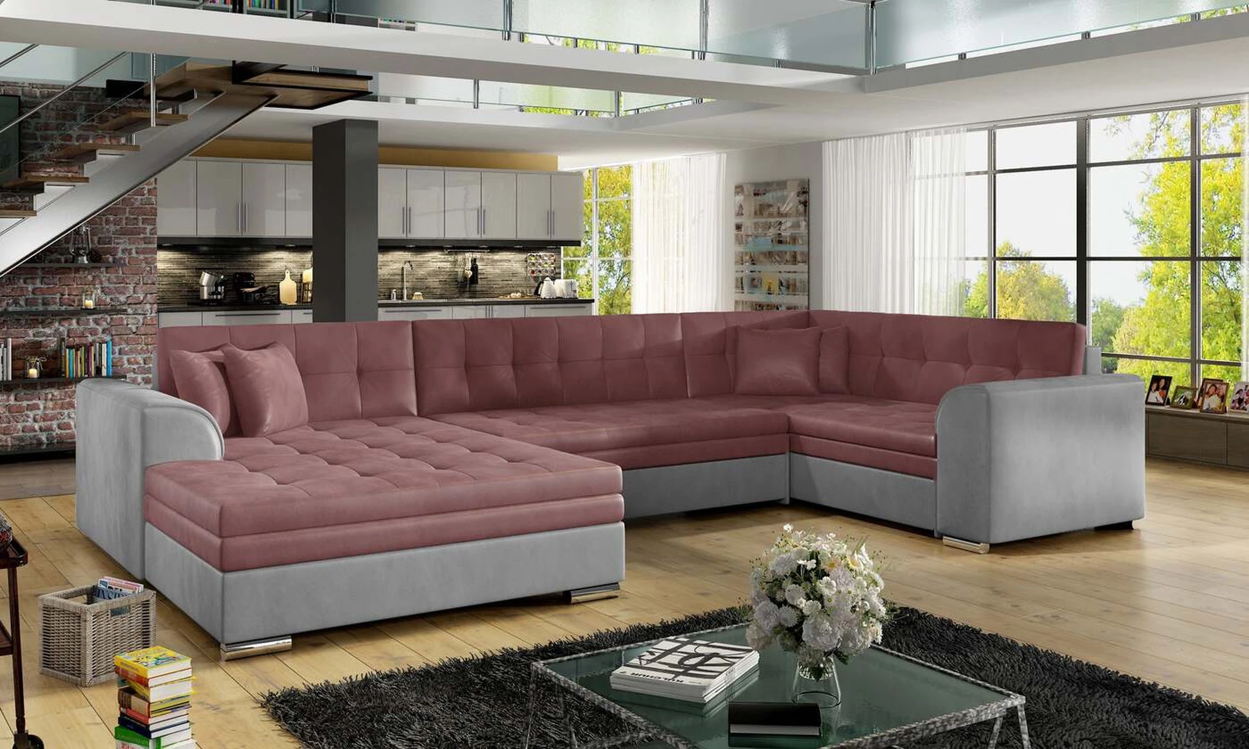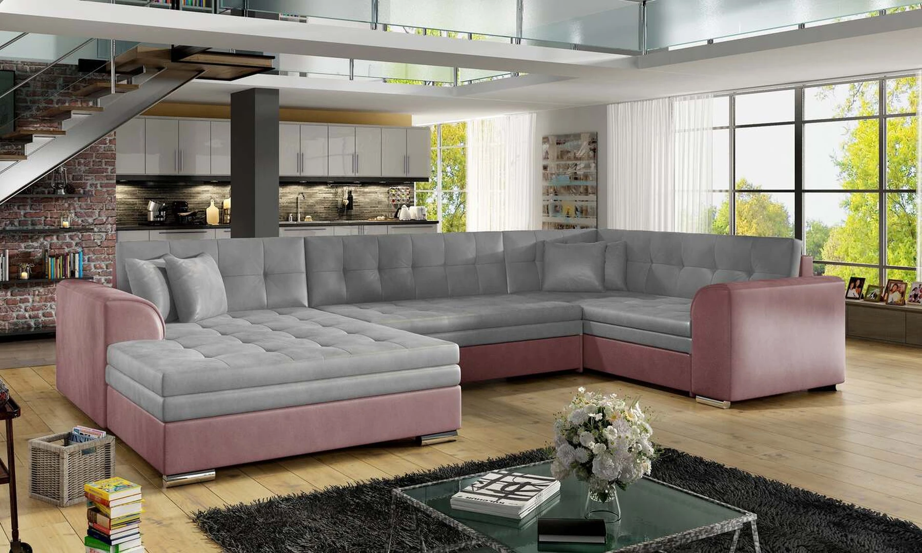 EL6798 yra erdvus, išskirtinai stilingas ir skoningas didelio dydžio kampinis blokas, kurio matmenys 338 x 189 x 78 cm. Šis U formos baldas turi patogią, minkštą sėdynę, pagamintą iš patvarios banginės spyruoklės, taip pat elastinio T30 putplasčio, kuris yra atsparus pažeidimams, deformacijoms ir visų tipų įbrėžimams. Be to, mūsų kampinė miegamoji sofa turi miegojimo funkciją. Paskirta sritis, gauta automatizuoto ir intuityvaus delfino tipo mechanizmo dėka, yra 275 x 126 cm. Būdingos kampinės sofos-lovos EL6798 savybės: patogi 40 cm sėdynė, supaprastinti porankiai, kontūriniai atlošai, dekoratyvinės pagalvėlės. Be to, taip pat galime nurodyti elegantiškas kojeles, taip pat daugybę galimų spalvų variantų, kuriais yra mūsų kampinis blokas. EL6798 yra svajonių išsipildymas erdvioje svetainėje. Čia rasite viską, ko reikia norint pasiekti maksimalų komfortą tiek naktį, tiek dieną.