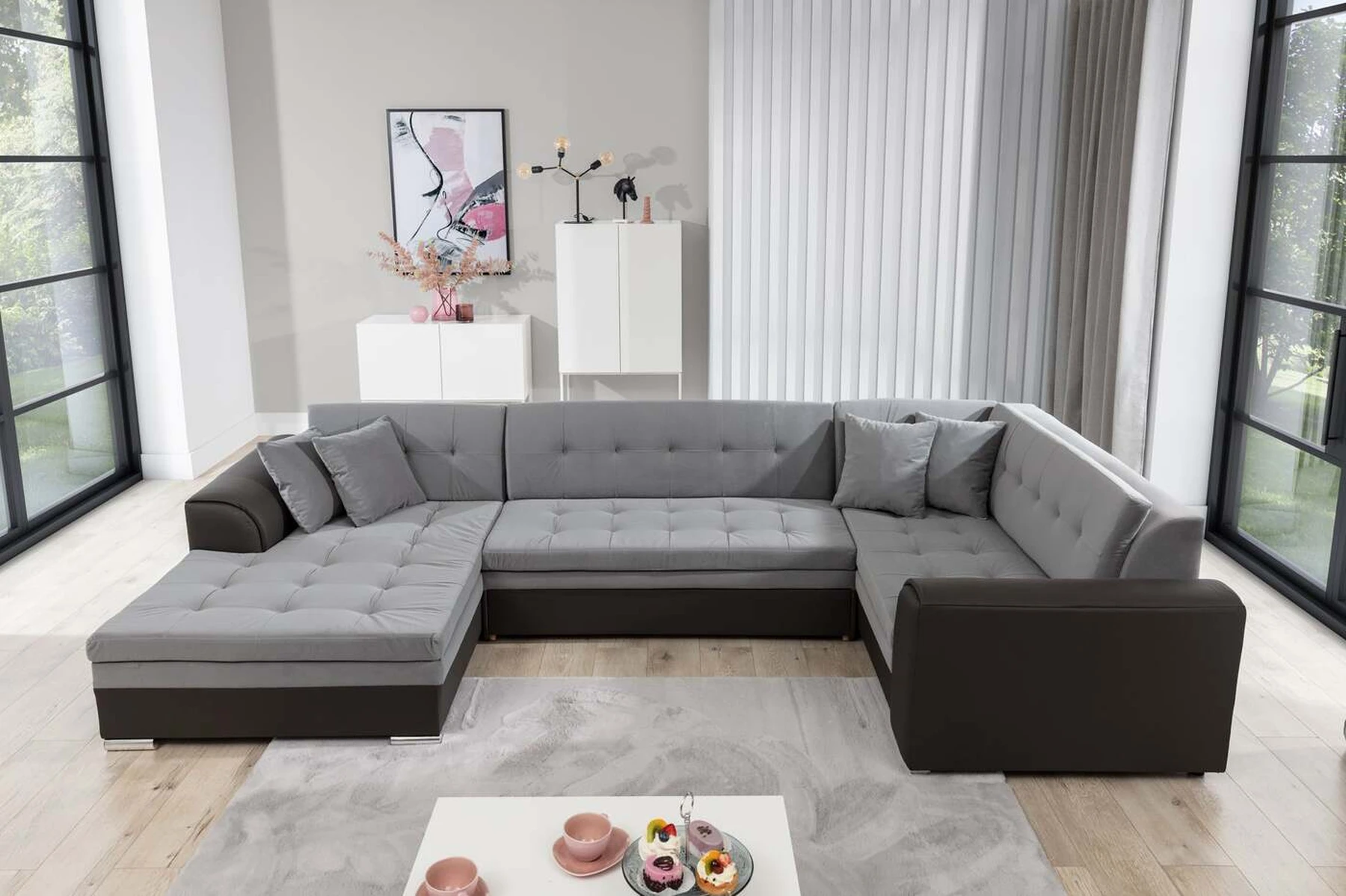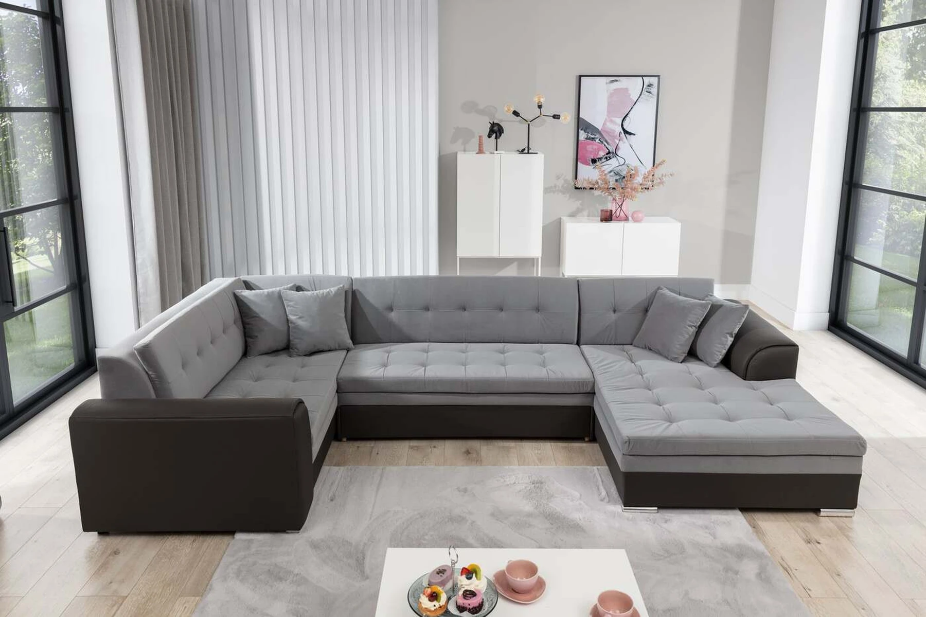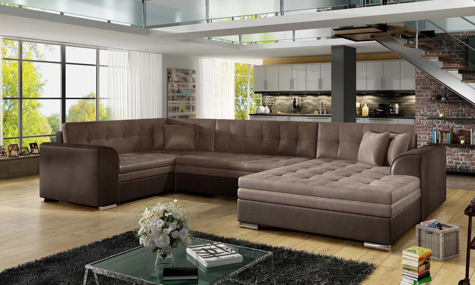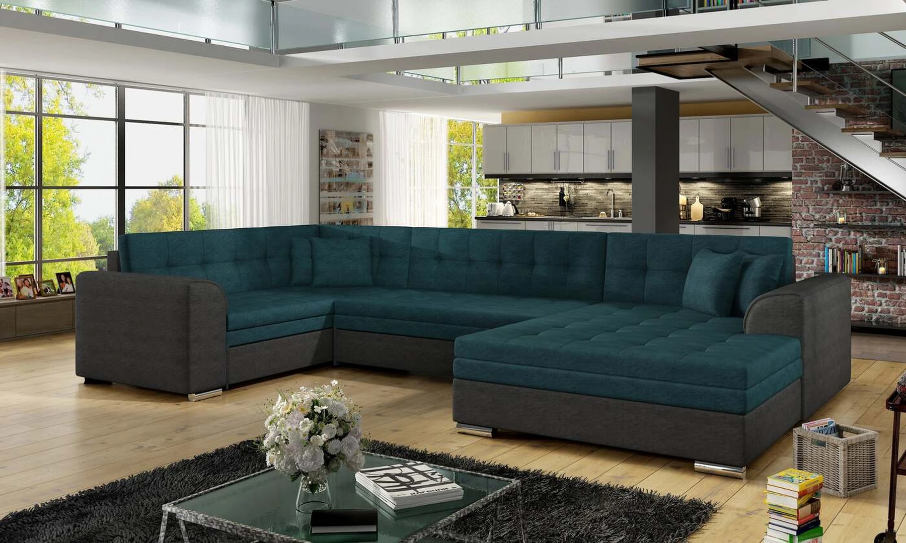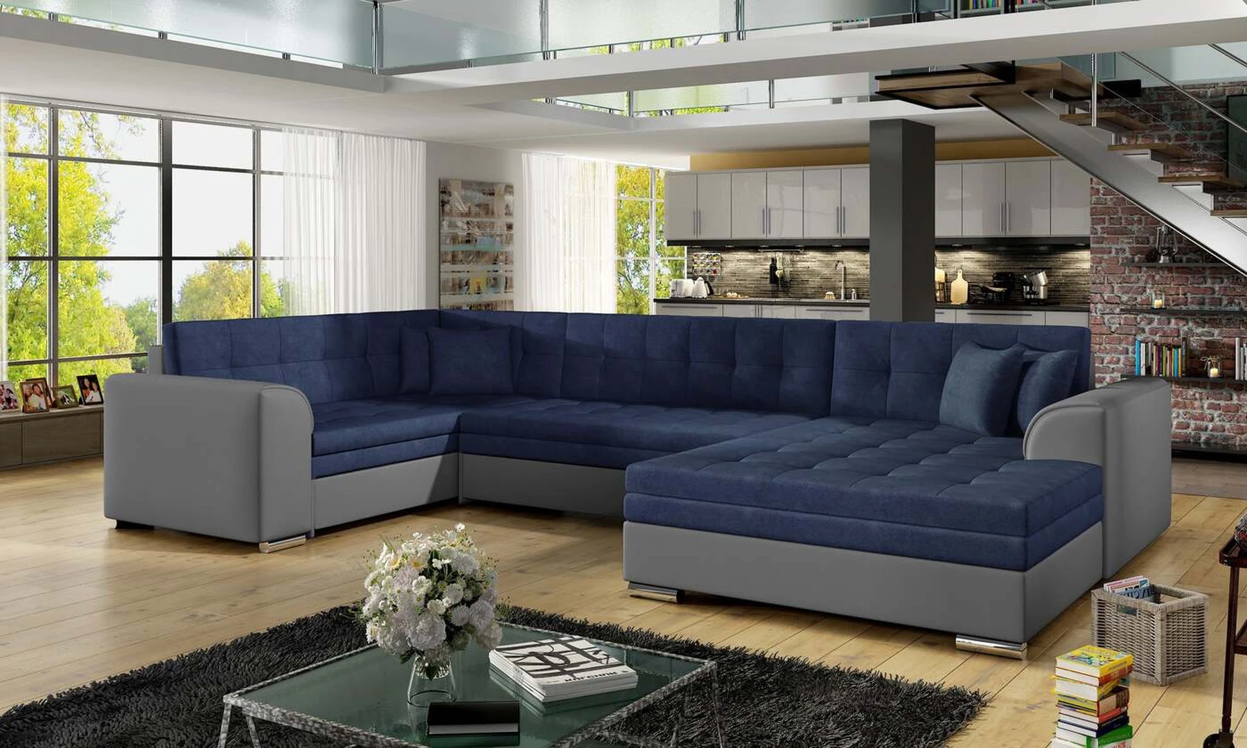 EL6798 yra erdvus, išskirtinai stilingas ir skoningas didelio dydžio kampinis blokas, kurio matmenys 338 x 189 x 78 cm. Šis U formos baldas turi patogią, minkštą sėdynę, pagamintą iš patvarios banginės spyruoklės, taip pat elastinio T30 putplasčio, kuris yra atsparus pažeidimams, deformacijoms ir visų tipų įbrėžimams. Be to, mūsų kampinė miegamoji sofa turi miegojimo funkciją. Paskirta sritis, gauta automatizuoto ir intuityvaus delfino tipo mechanizmo dėka, yra 275 x 126 cm. Būdingos kampinės sofos-lovos EL6798 savybės: patogi 40 cm sėdynė, supaprastinti porankiai, kontūriniai atlošai, dekoratyvinės pagalvėlės. Be to, taip pat galime nurodyti elegantiškas kojeles, taip pat daugybę galimų spalvų variantų, kuriais yra mūsų kampinis blokas. EL6798 yra svajonių išsipildymas erdvioje svetainėje. Čia rasite viską, ko reikia norint pasiekti maksimalų komfortą tiek naktį, tiek dieną.