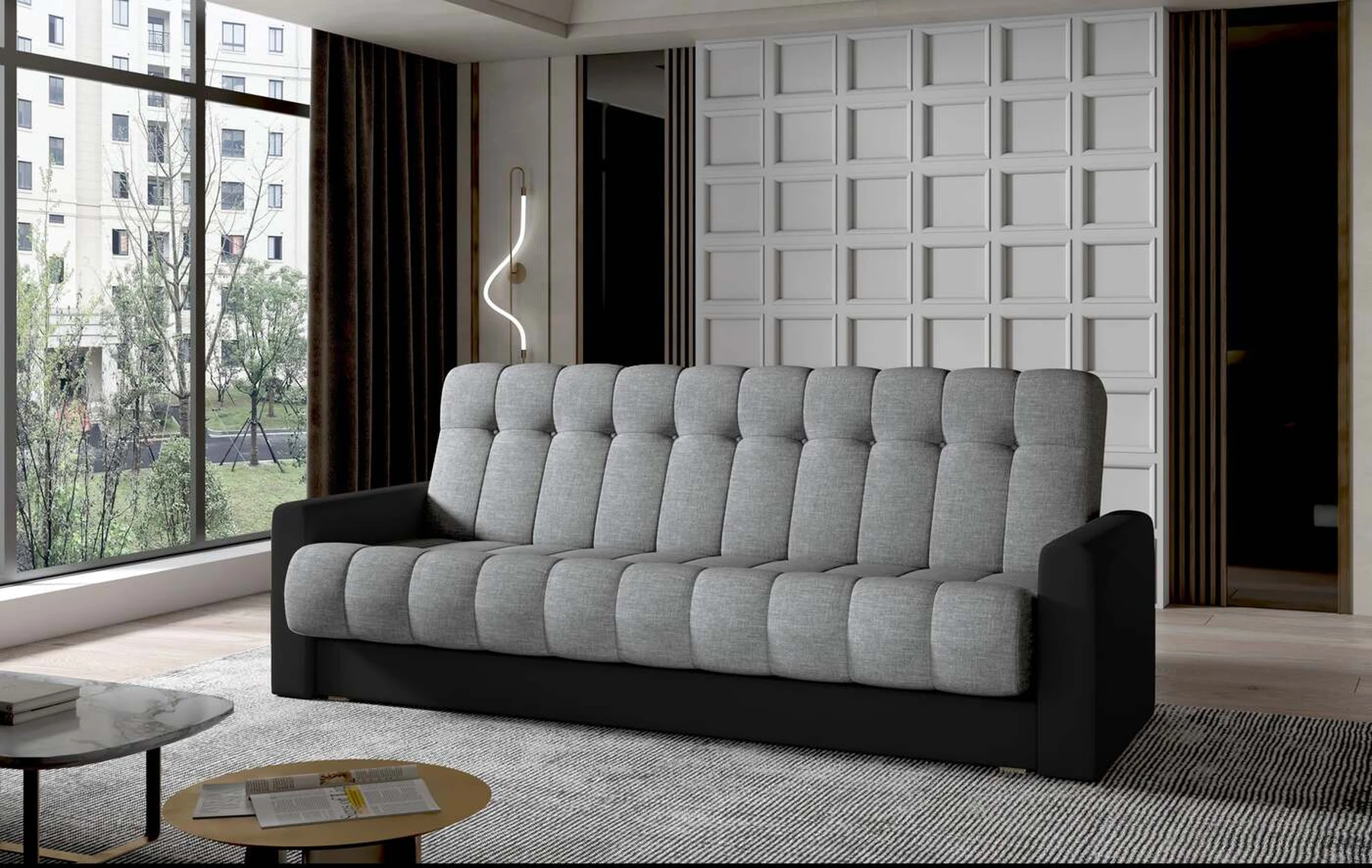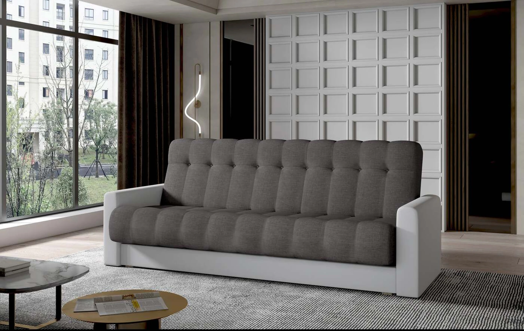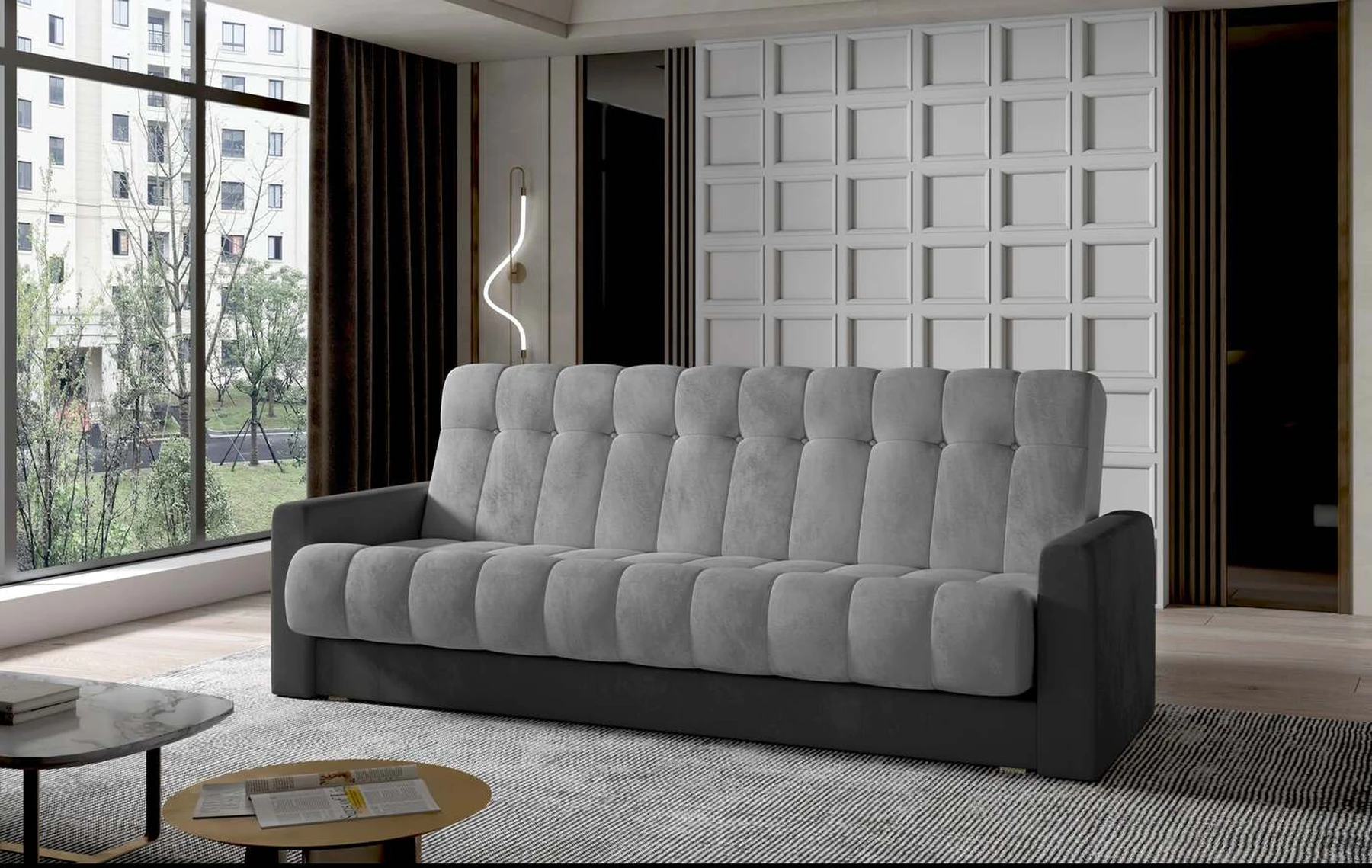 EL7008 yra elegantiška ir labai stilinga sofa, kuri stebina savo meistriškumu. Klasikinė forma su stilinga apdaila suteikia sofai nepakartojamo charakterio. EL7008 yra 210 x 85 x 90 cm matmenų baldas - skirtas poilsiui dieną, taip pat naktį - dėl miego funkcijos - 115 x 190 cm lova su papildomai erdvia patalynės dėže, kurią palaiko „Klik-clack“ atidarymo mechanizmas. Dėl kaulų ir T25 porolono naudojimo sofos sėdynė yra ypač lanksti, minkšta ir atspari bet kokiai deformacijai. Paprasta forma, elegantiška apdaila ir saugi konstrukcija – tai EL7008 poilsio baldai. Tokia sofa tikrai pateisins visus jūsų lūkesčius.