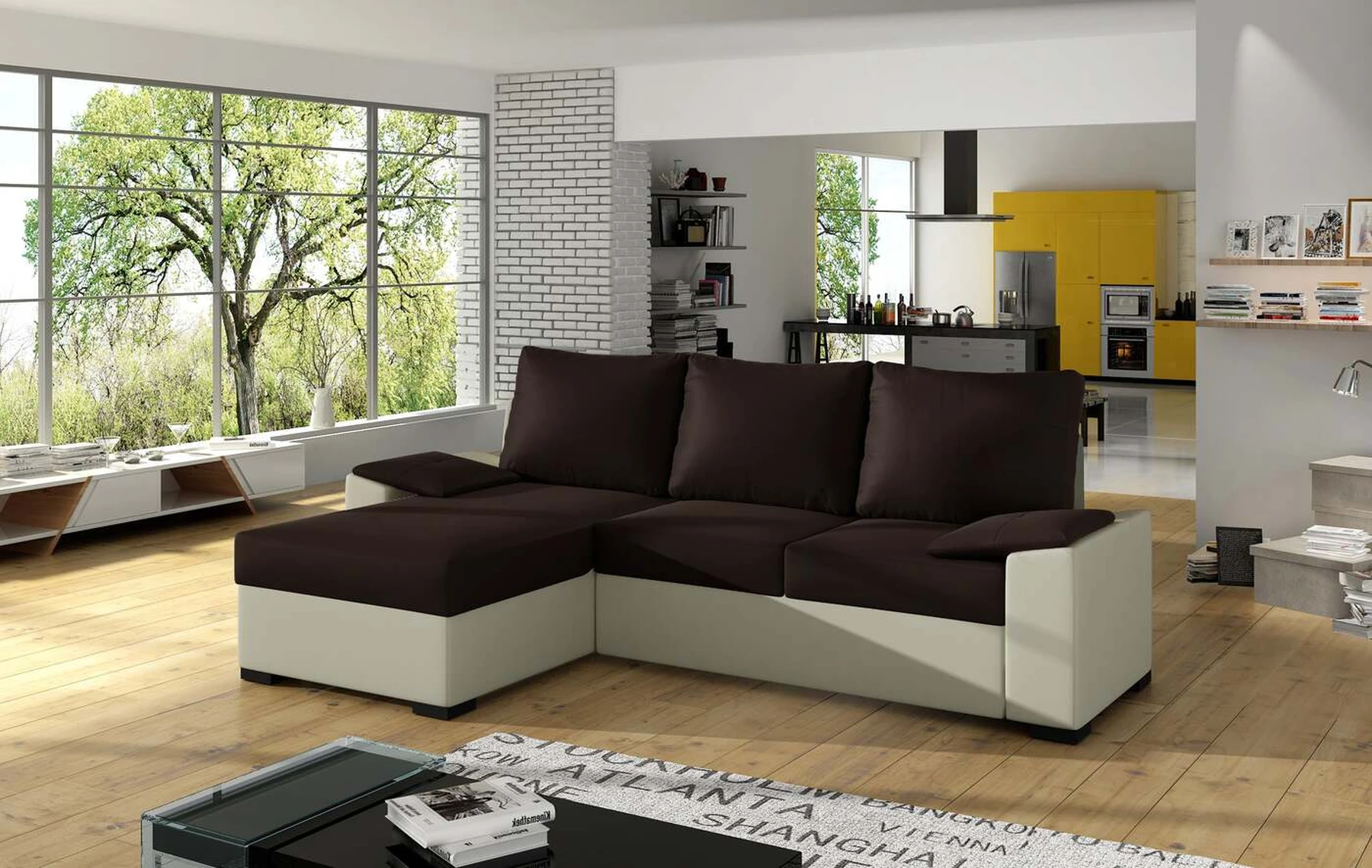 EL7047 – tai elegantiška, paprasto korpuso ir kompaktiška 245 x 160 x 90 cm išmatavimų kampinė sofa, kuri puikiai tiks bet kokiame interjere, nepaisant jo dydžio. Mūsų baldų sėdynė užpildyta gofruotomis spyruoklėmis ir T30 putomis, kurios suteiks maksimalų komfortą kiekvieną dieną – tiek dieną, tiek naktį. Papildomas baldo privalumas – galima miegamoji funkcija ir patalynės saugykla, esanti pufoje. Išskleidę baldus DL automatu gauname lovą, kurios išmatavimai 205 x 145 cm.