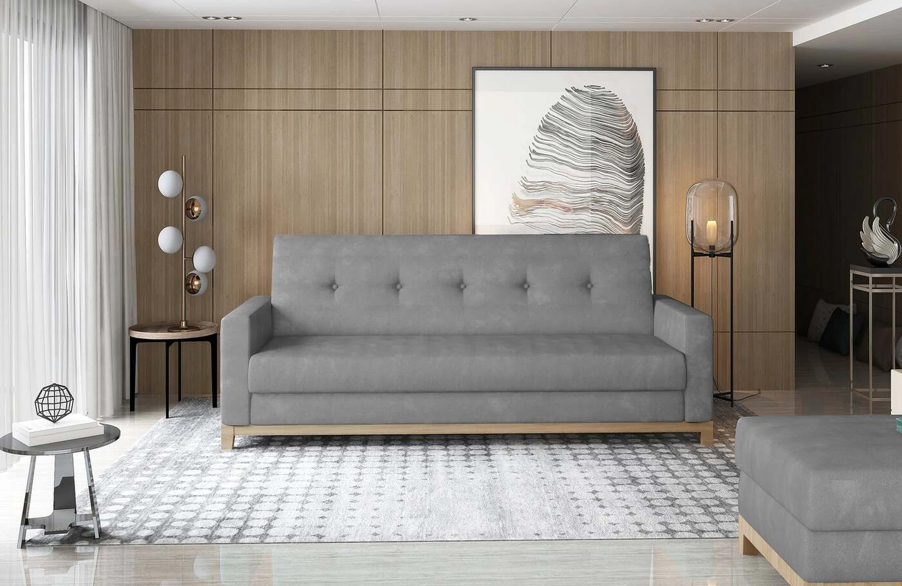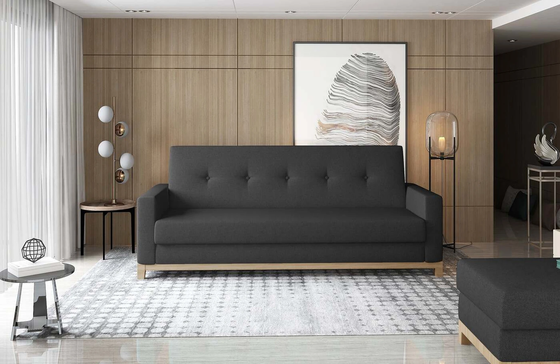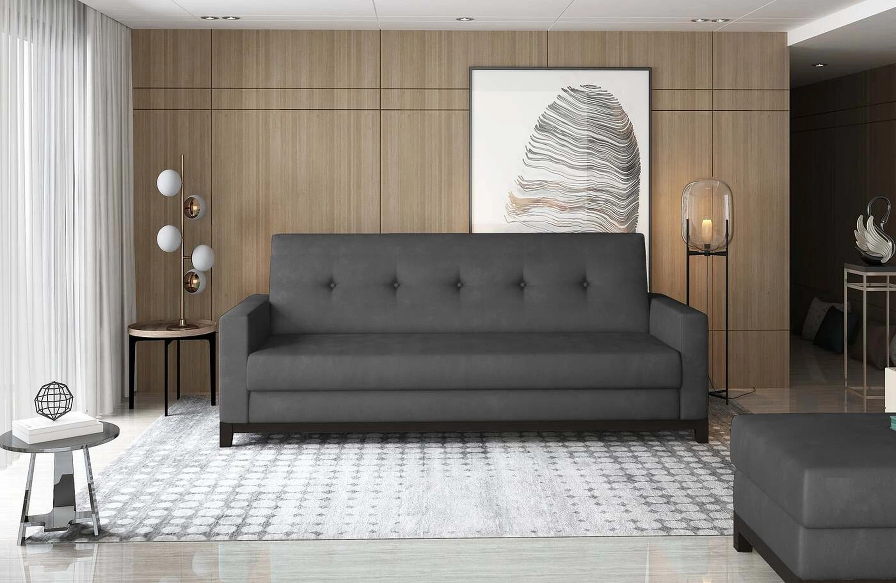 EL7142 – tai erdvi, klasikinė 216 x 87 x 93 cm išmatavimų sofa, kuri sukurta itin stilingai, bet minimalistiškai. Jis idealiai tinka ilsėtis dieną ir naktį, nes gali būti 195 x 110 cm lovos pavidalu, kai išskleistas naudojant „click-clack“ mechanizmą. Sofoje taip pat yra erdvus patalynės konteineris, kuris yra baldų dėžėje. Kalbant apie išskirtinį lankstumą ir minkštumą, čia reikėtų paminėti T30 putas, kurios yra atsparios negražioms įduboms. Papildomi šio modelio privalumai: stilinga dygsniuota ant atlošo ir baldo šonų, medinės kojelės, pagamintos iš medžio masyvo, kontūruotas atlošas, taip pat daugybė modelio spalvų variantų. EL7142 yra išskirtinis baldas ateinantiems metams. Jei jums rūpi maksimalus komfortas ir funkcionalumas – EL7142 tikrai bus hitas!
