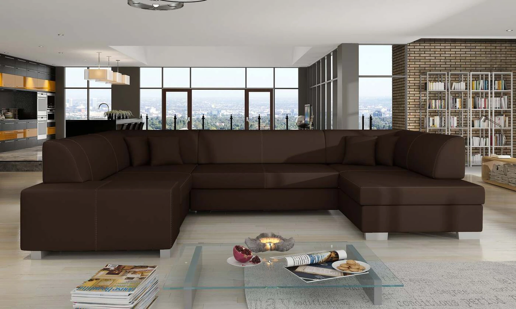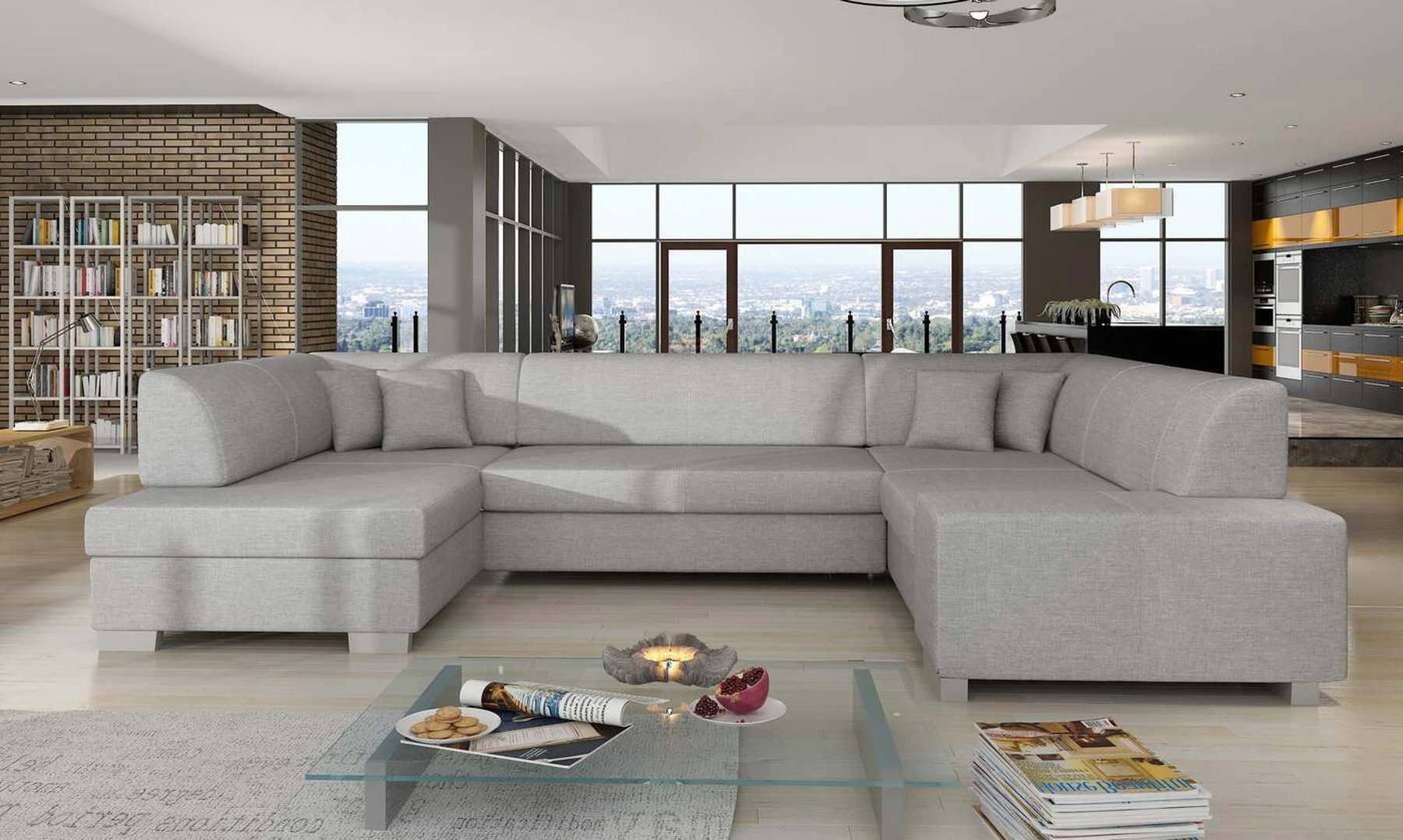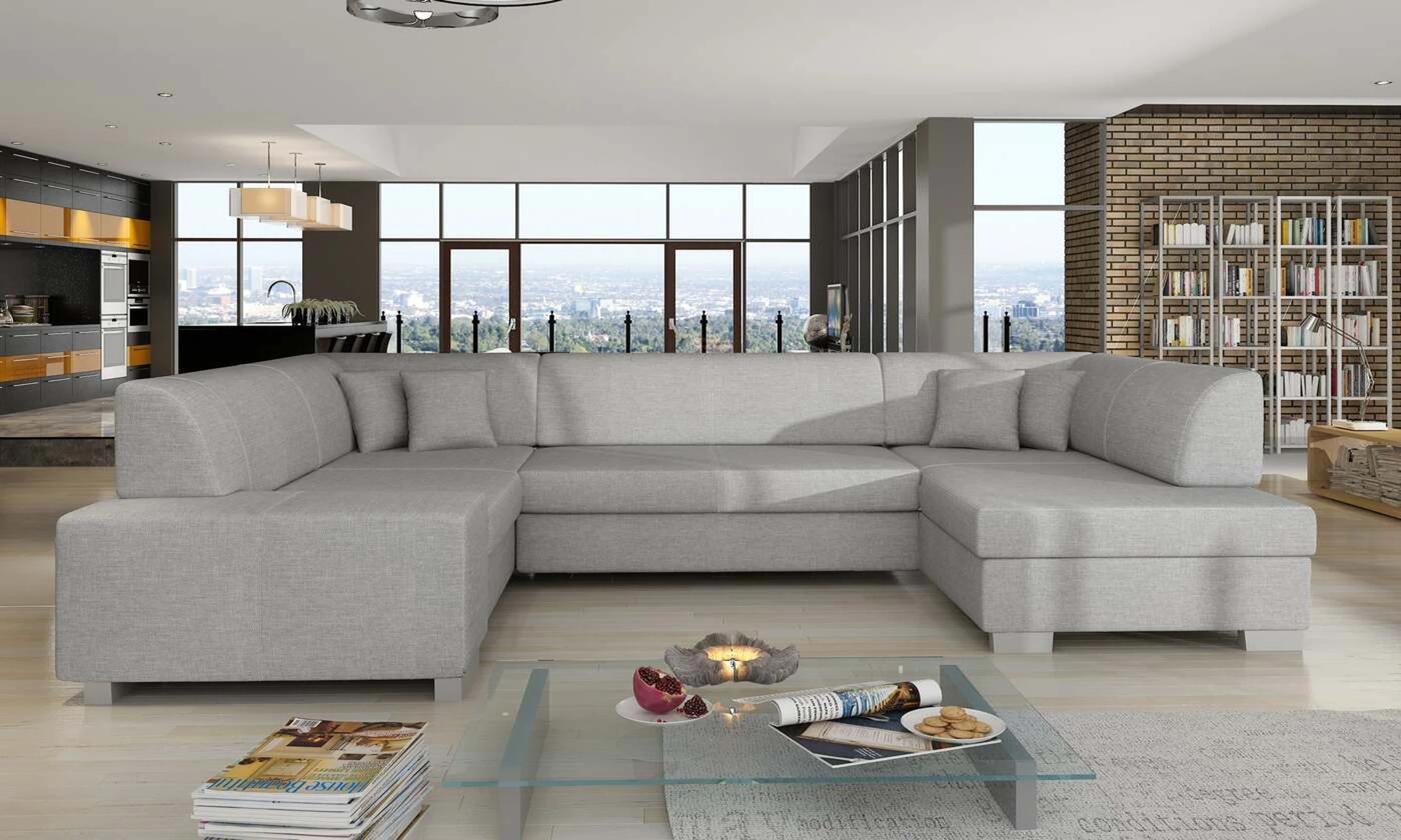 EL7221 yra erdvi, prabangi, nemažo dydžio kampinė sofa, kurios matmenys yra 320 x 167/207 x 73 cm, todėl joje yra pakankamai vietos poilsiui. U formos baldas turi patogią, minkštą sėdynę, pagamintą iš patvarios gofruotos spyruoklės, taip pat lanksčios T30 putos, todėl visas daiktas yra atsparus įlenkimams. Mūsų kampinėje sofoje yra miegojimo funkcija ir daug vietos patalynei. Intuityvi delfinų išskleidimo sistema leidžia lengvai paversti sofą į 280x125 cm lovą ir gauti tikrai didelį plotą nakties poilsiui. Papildomos mūsų kampinės sofos EL7221 specifikacijos: klasikinis, patikrintas dizainas, dėmesys darbo detalėms, paprastas geometrinis pjūvis. Kampinė sofa taip pat yra su didelėmis dekoratyvinėmis pagalvėlėmis. EL7221 – tai komforto ir gero stiliaus kvintesencija, kuri puikiai tiks ne viename interjere.