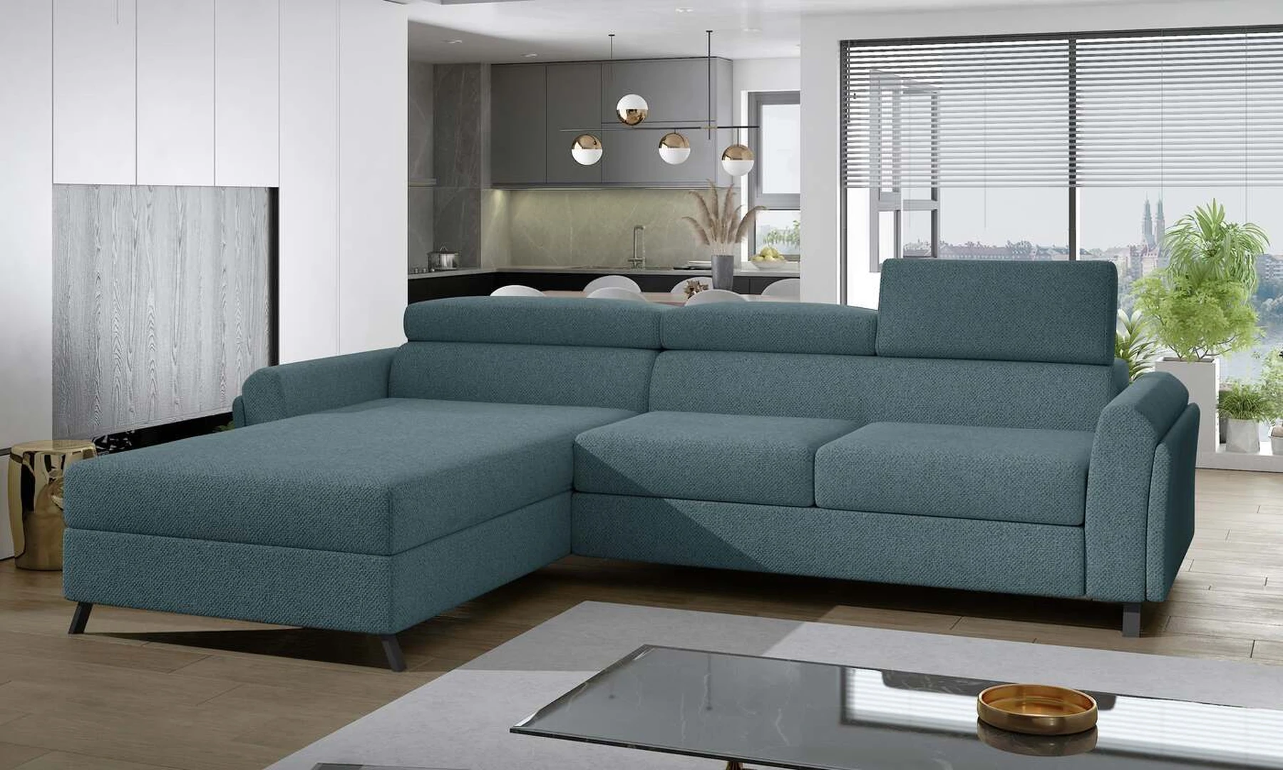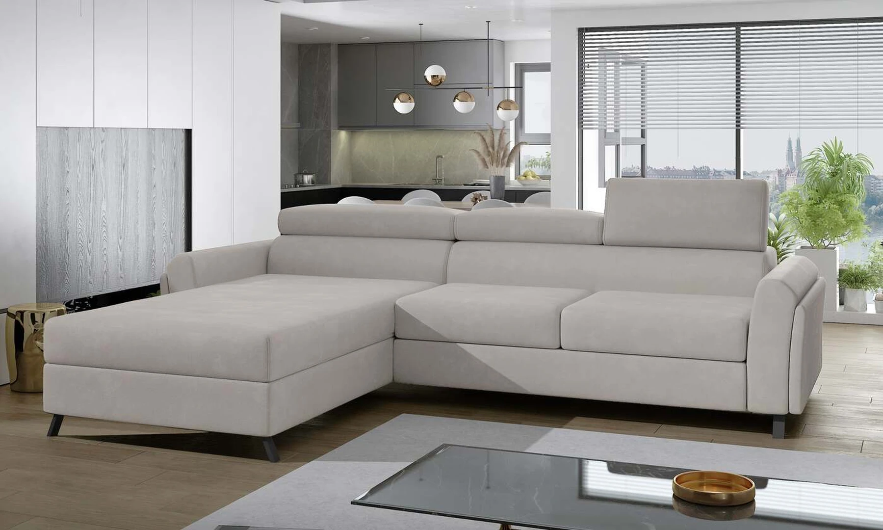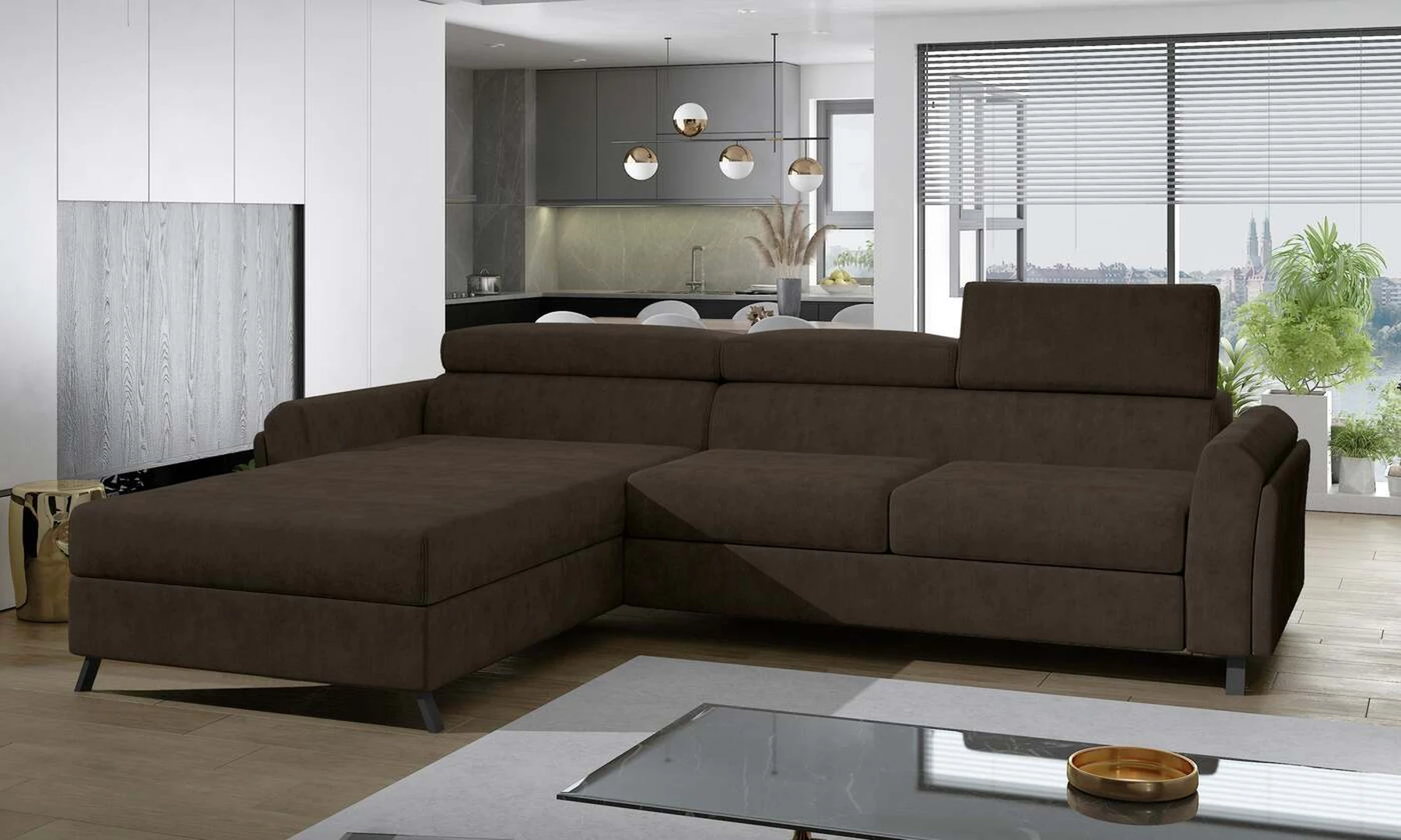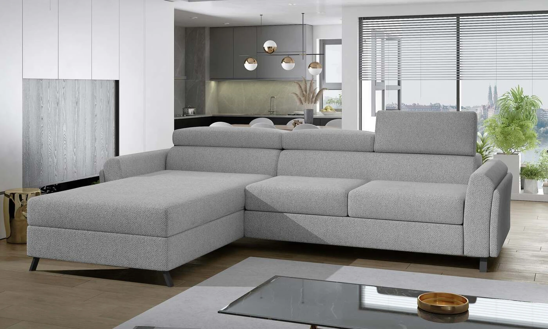 EL7306 yra klasikinė, tačiau patogi ir prašmatni L formos kampinė sofa, kurios išmatavimai 300 x 190 x 98 cm. Jo išskirtiniai bruožai: reguliuojamos galvos atramos, apmušta sofos nugara, elegantiškos metalinės kojos su medine apdaila ir gili, minkšta sėdynė, pagaminta iš naujoviškų T30 ir HR putų, kurios yra atsparios deformacijai ir pažeidimams. Be to, jie garantuoja maksimalų komfortą tiek ilsintis dieną, tiek miegant. Dėl savo miegojimo funkcijos EL7306 yra daugiafunkcis baldas. Išskleidę sofą naudojant intuityvų ir nesudėtingą delfinų mechanizmą, gauname erdvią 110 x 240 cm lovą, taip pat talpų, gilų patalynės skyrių, esantį pufoje. Jei ieškote funkcionalaus, tačiau klasikinio ir elegantiško baldo – pasirinkimas gali būti tik vienas – ramia sąžine rekomenduojame kampinę sofą EL7306, kuri yra atsakymas į visus klausimus.