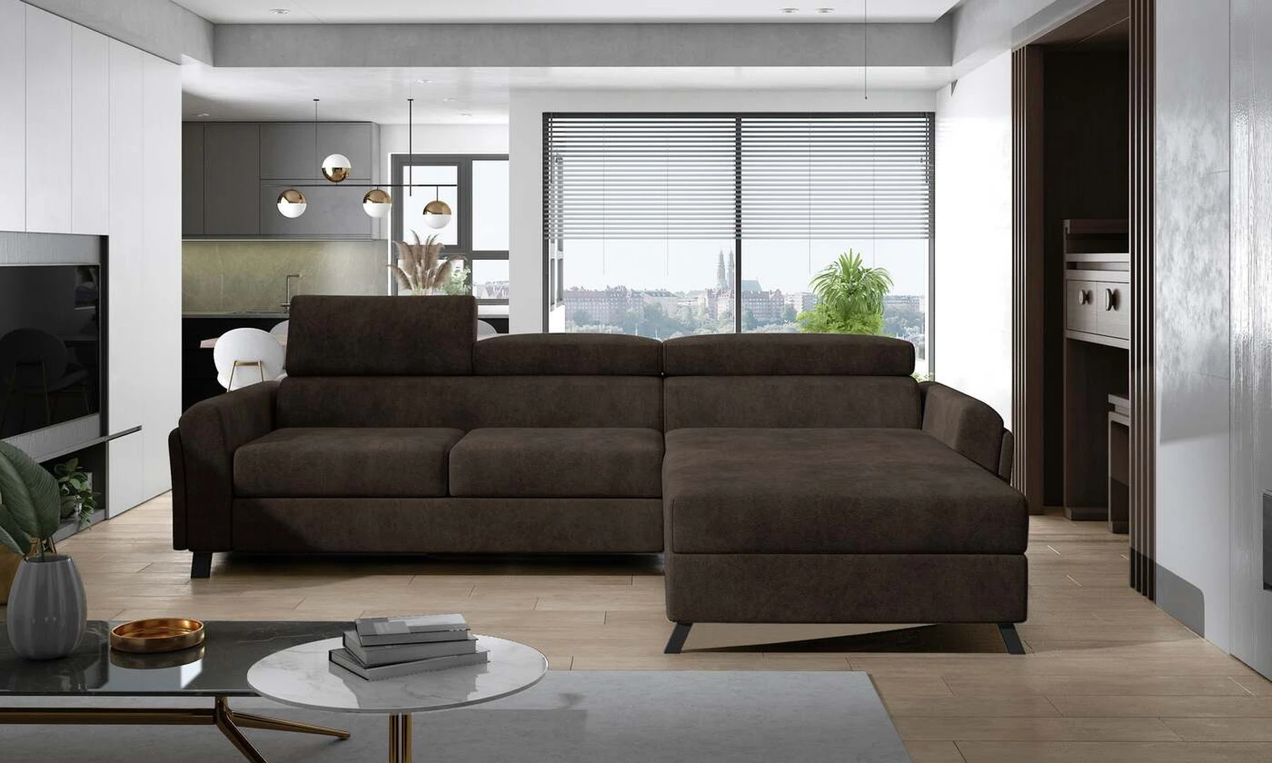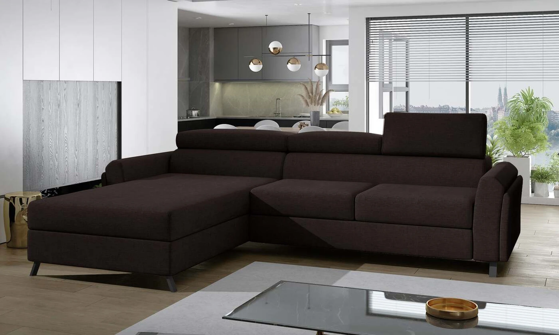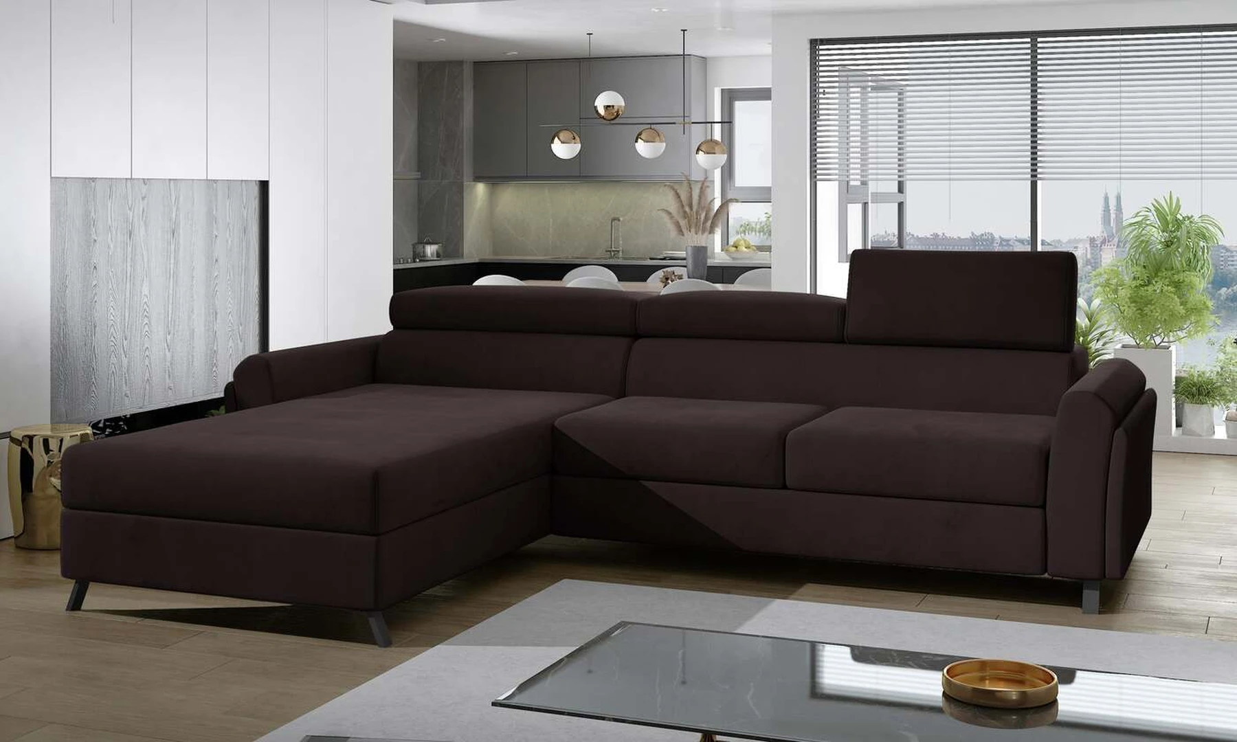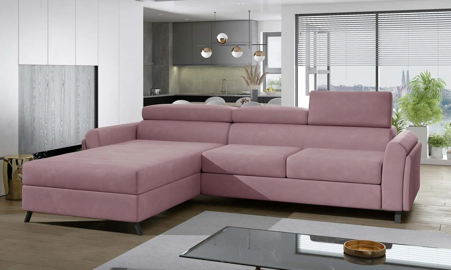 EL7306 yra klasikinė, tačiau patogi ir prašmatni L formos kampinė sofa, kurios išmatavimai 300 x 190 x 98 cm. Jo išskirtiniai bruožai: reguliuojamos galvos atramos, apmušta sofos nugara, elegantiškos metalinės kojos su medine apdaila ir gili, minkšta sėdynė, pagaminta iš naujoviškų T30 ir HR putų, kurios yra atsparios deformacijai ir pažeidimams. Be to, jie garantuoja maksimalų komfortą tiek ilsintis dieną, tiek miegant. Dėl savo miegojimo funkcijos EL7306 yra daugiafunkcis baldas. Išskleidę sofą naudojant intuityvų ir nesudėtingą delfinų mechanizmą, gauname erdvią 110 x 240 cm lovą, taip pat talpų, gilų patalynės skyrių, esantį pufoje. Jei ieškote funkcionalaus, tačiau klasikinio ir elegantiško baldo – pasirinkimas gali būti tik vienas – ramia sąžine rekomenduojame kampinę sofą EL7306, kuri yra atsakymas į visus klausimus.