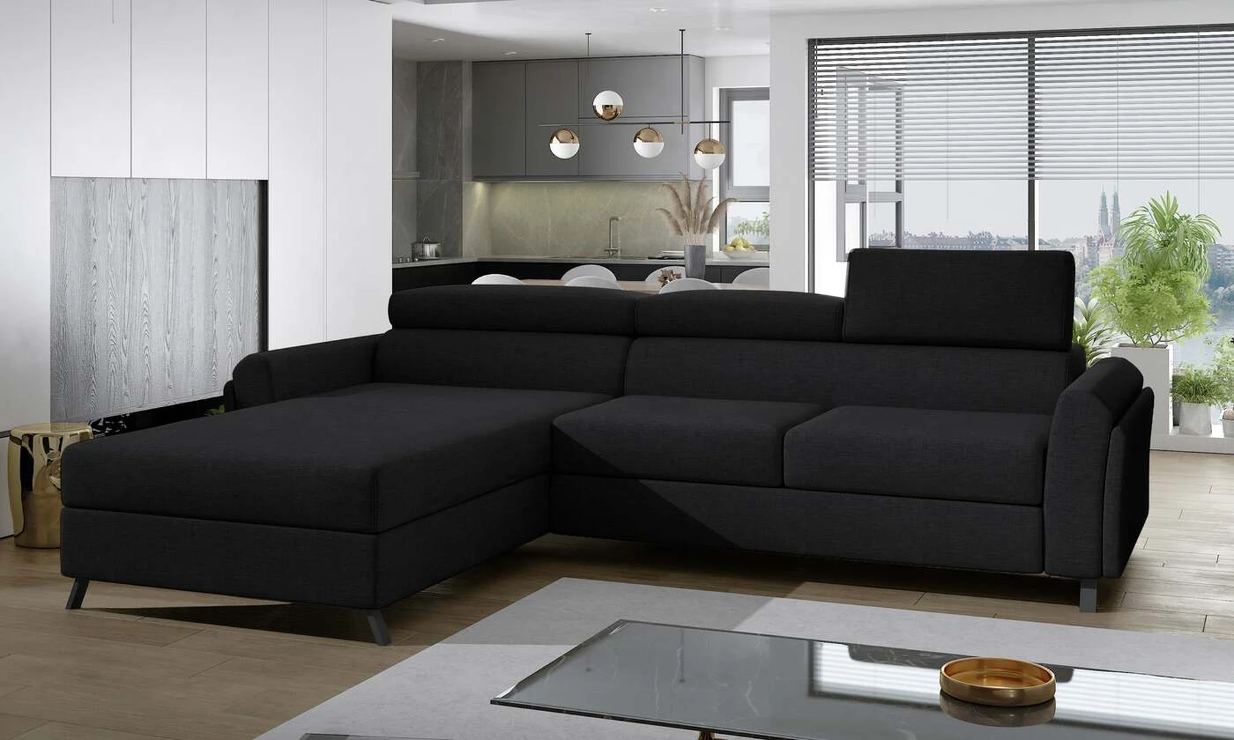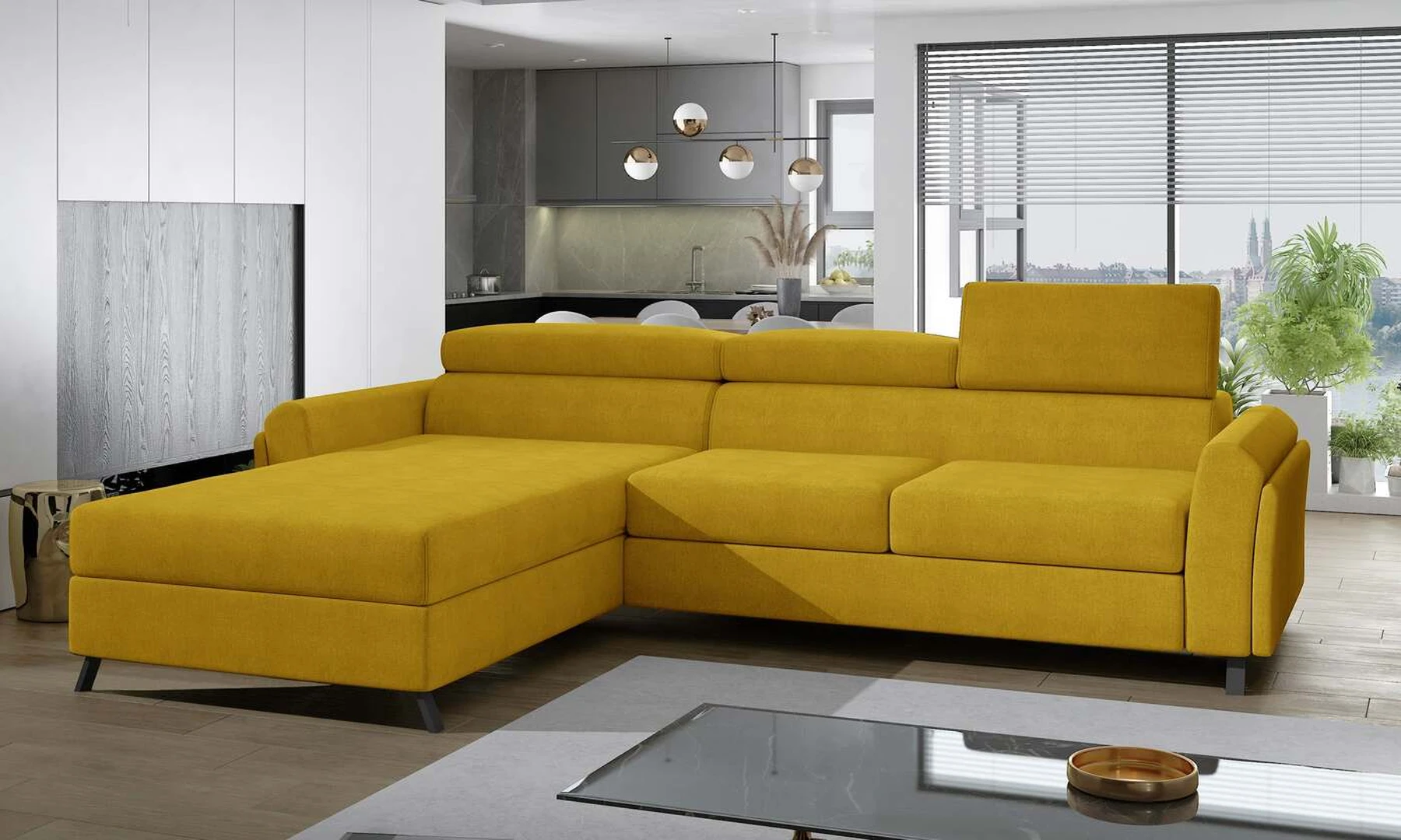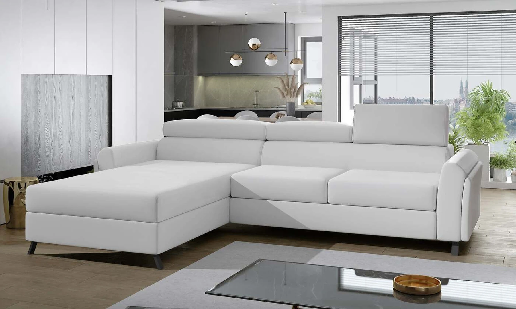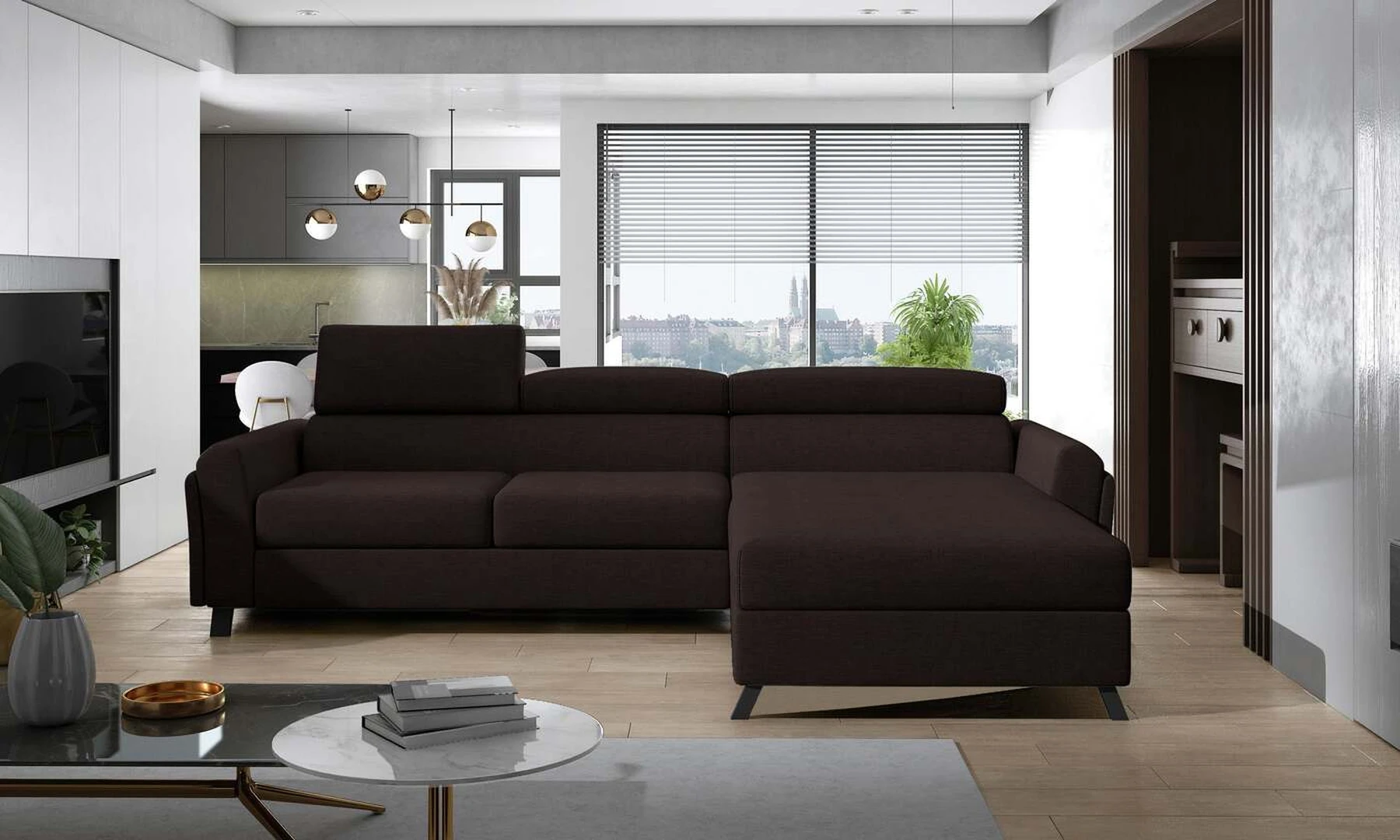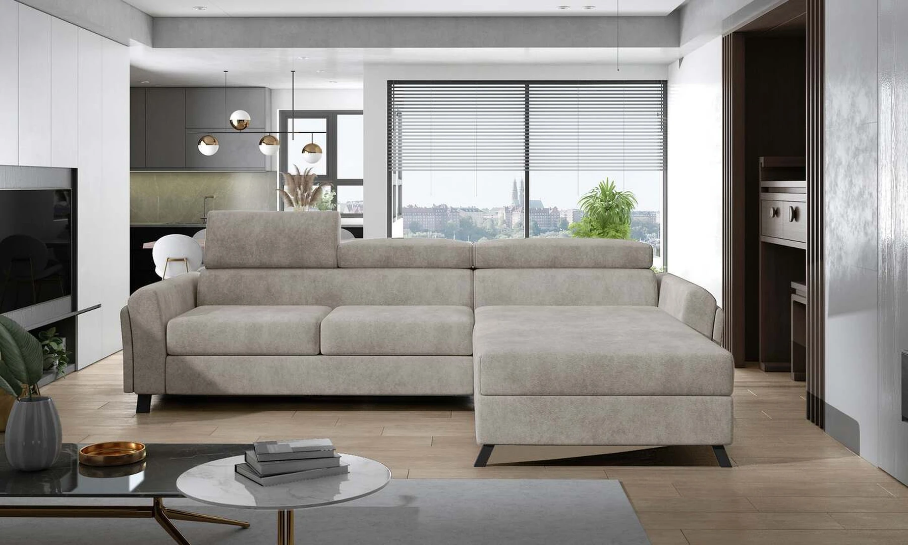 EL7306 yra klasikinė, tačiau patogi ir prašmatni L formos kampinė sofa, kurios išmatavimai 300 x 190 x 98 cm. Jo išskirtiniai bruožai: reguliuojamos galvos atramos, apmušta sofos nugara, elegantiškos metalinės kojos su medine apdaila ir gili, minkšta sėdynė, pagaminta iš naujoviškų T30 ir HR putų, kurios yra atsparios deformacijai ir pažeidimams. Be to, jie garantuoja maksimalų komfortą tiek ilsintis dieną, tiek miegant. Dėl savo miegojimo funkcijos EL7306 yra daugiafunkcis baldas. Išskleidę sofą naudojant intuityvų ir nesudėtingą delfinų mechanizmą, gauname erdvią 110 x 240 cm lovą, taip pat talpų, gilų patalynės skyrių, esantį pufoje. Jei ieškote funkcionalaus, tačiau klasikinio ir elegantiško baldo – pasirinkimas gali būti tik vienas – ramia sąžine rekomenduojame kampinę sofą EL7306, kuri yra atsakymas į visus klausimus.