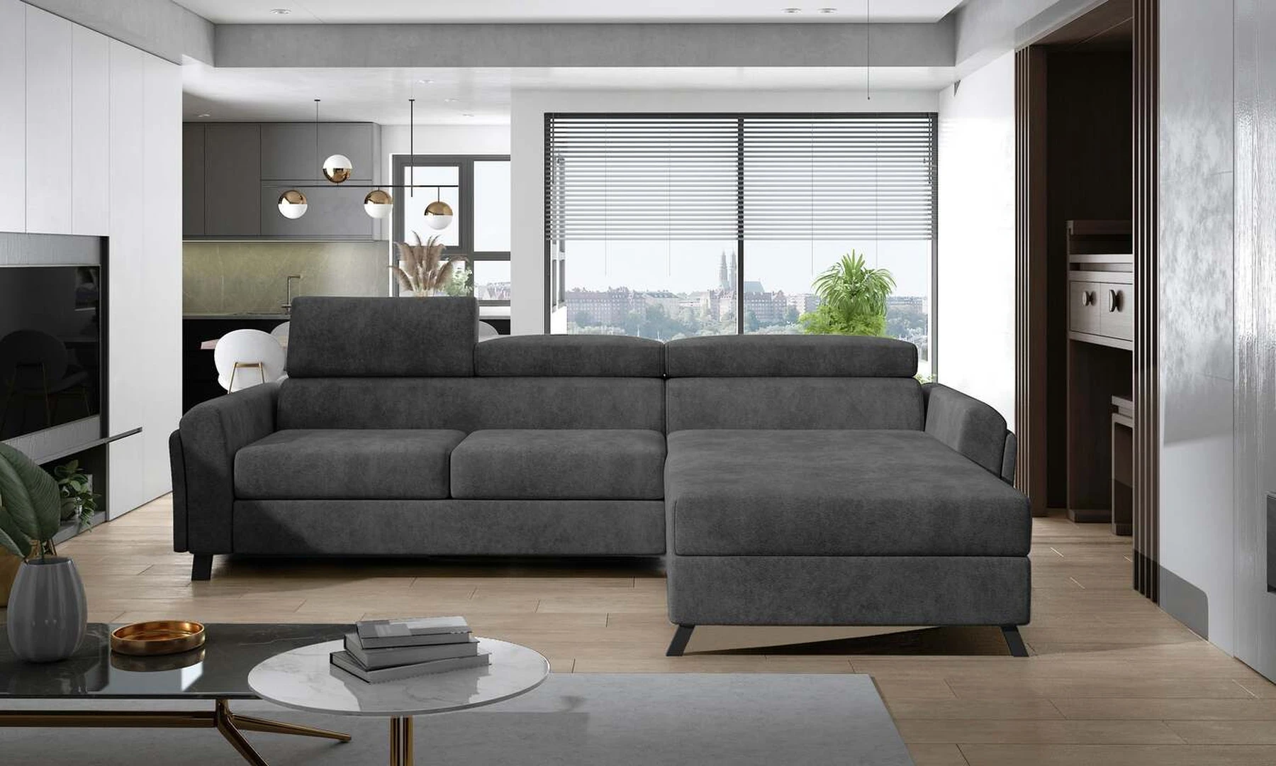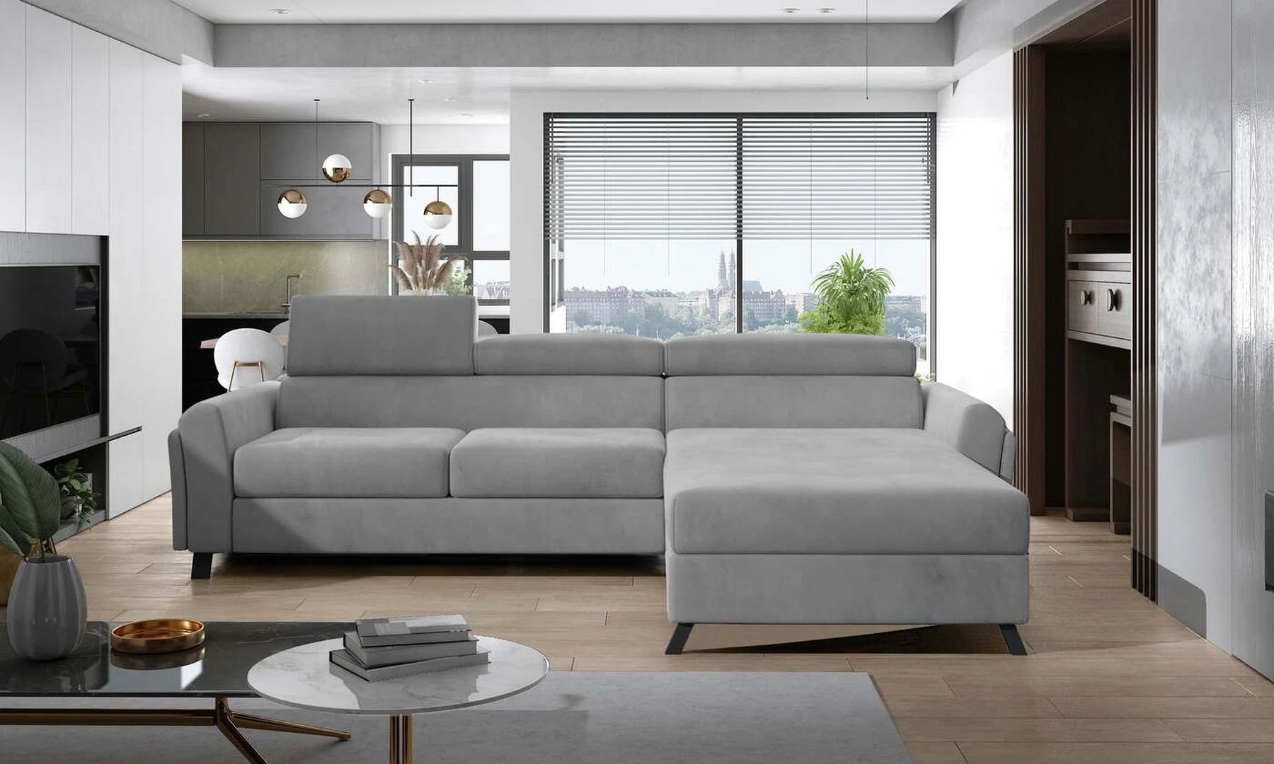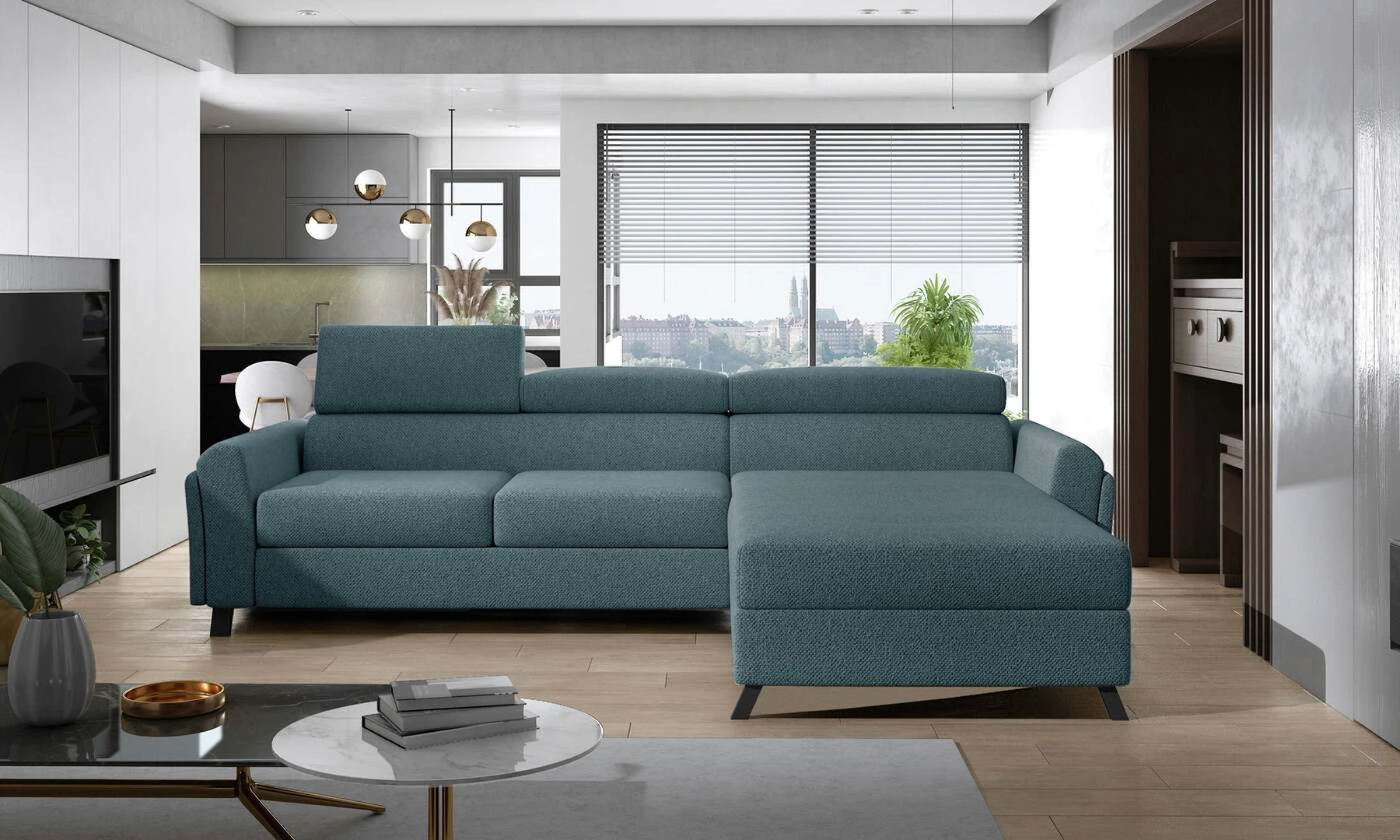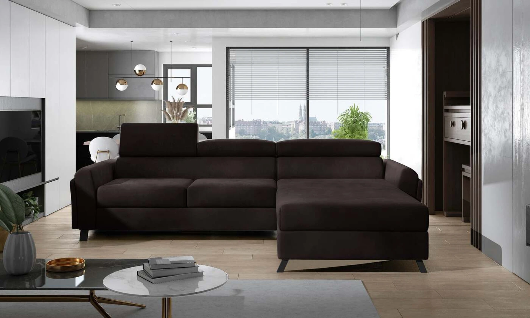EL7306 yra klasikinė, tačiau patogi ir prašmatni L formos kampinė sofa, kurios išmatavimai 300 x 190 x 98 cm. Jo išskirtiniai bruožai: reguliuojamos galvos atramos, apmušta sofos nugara, elegantiškos metalinės kojos su medine apdaila ir gili, minkšta sėdynė, pagaminta iš naujoviškų T30 ir HR putų, kurios yra atsparios deformacijai ir pažeidimams. Be to, jie garantuoja maksimalų komfortą tiek ilsintis dieną, tiek miegant. Dėl savo miegojimo funkcijos EL7306 yra daugiafunkcis baldas. Išskleidę sofą naudojant intuityvų ir nesudėtingą delfinų mechanizmą, gauname erdvią 110 x 240 cm lovą, taip pat talpų, gilų patalynės skyrių, esantį pufoje. Jei ieškote funkcionalaus, tačiau klasikinio ir elegantiško baldo – pasirinkimas gali būti tik vienas – ramia sąžine rekomenduojame kampinę sofą EL7306, kuri yra atsakymas į visus klausimus.