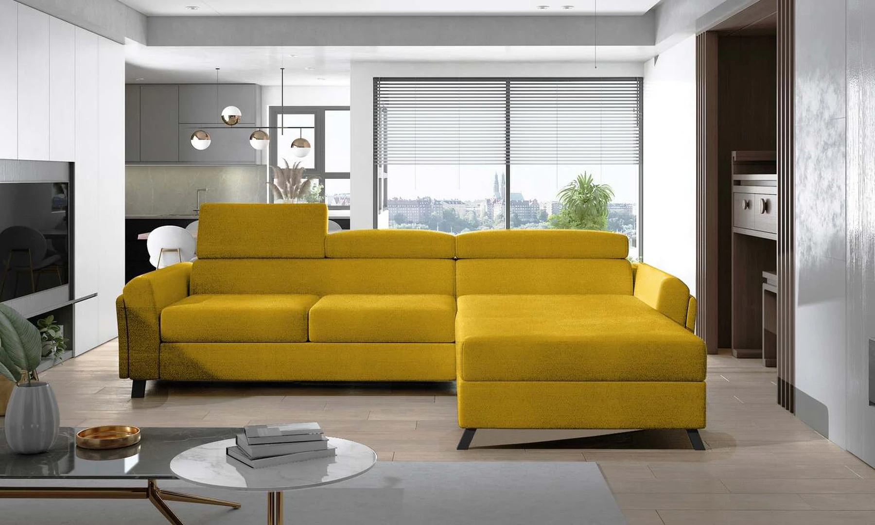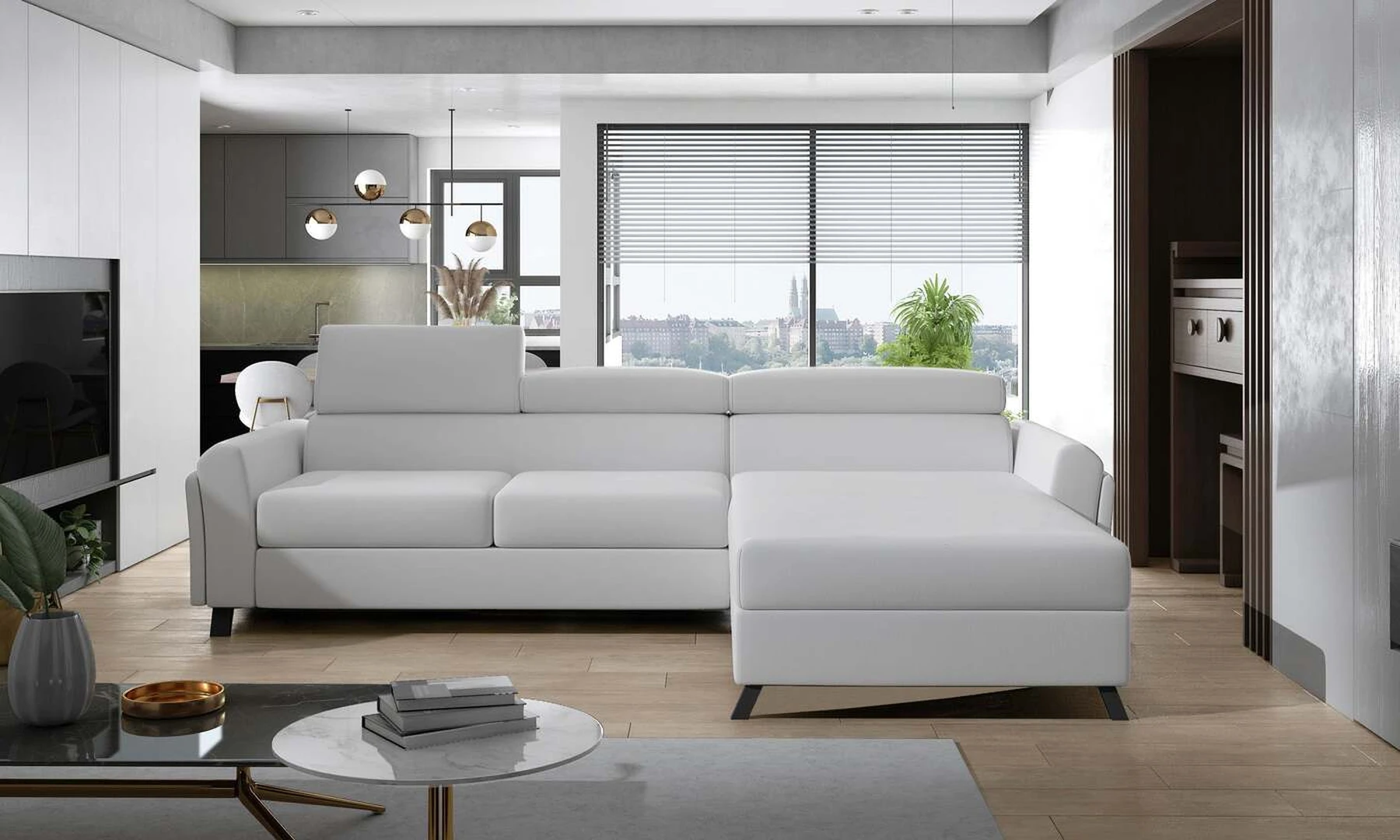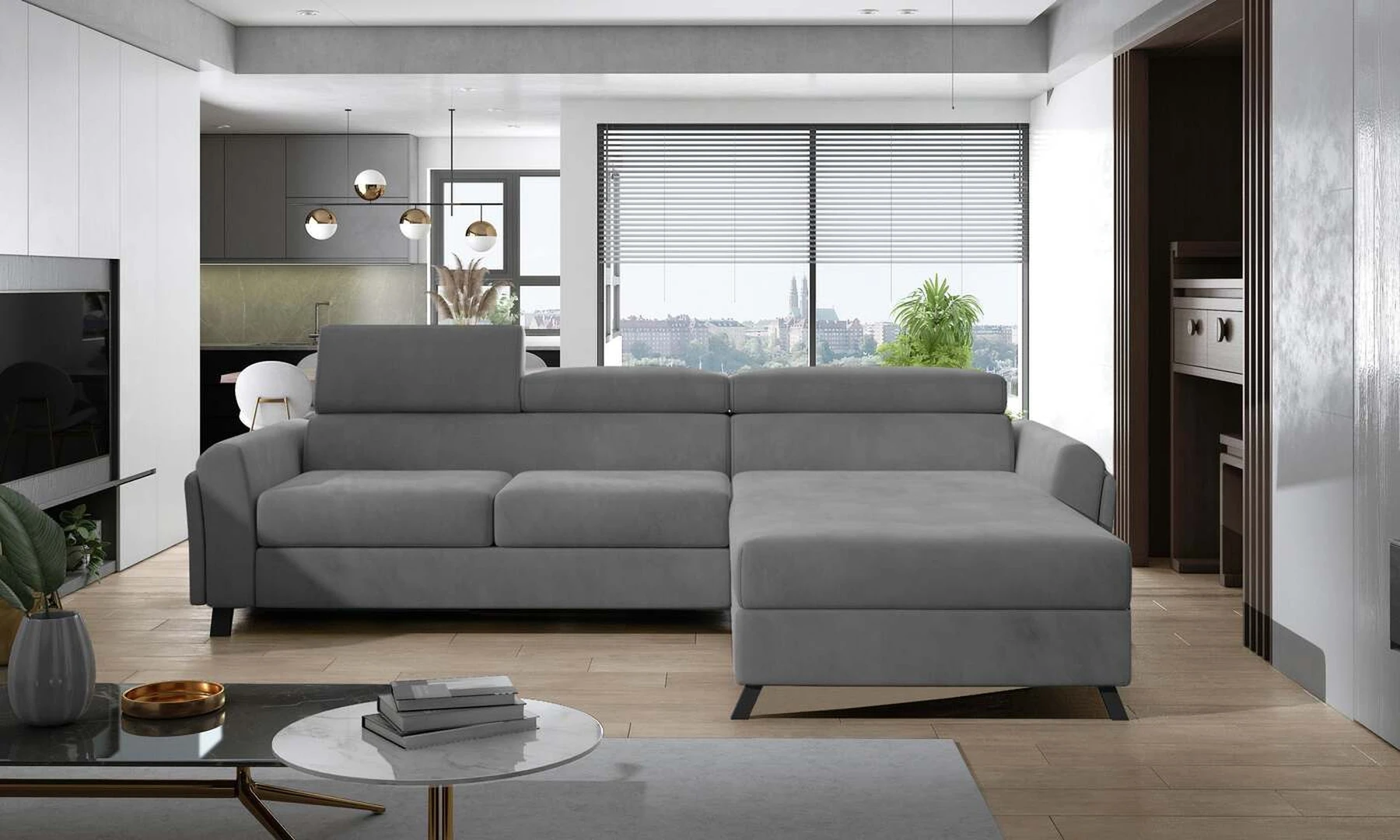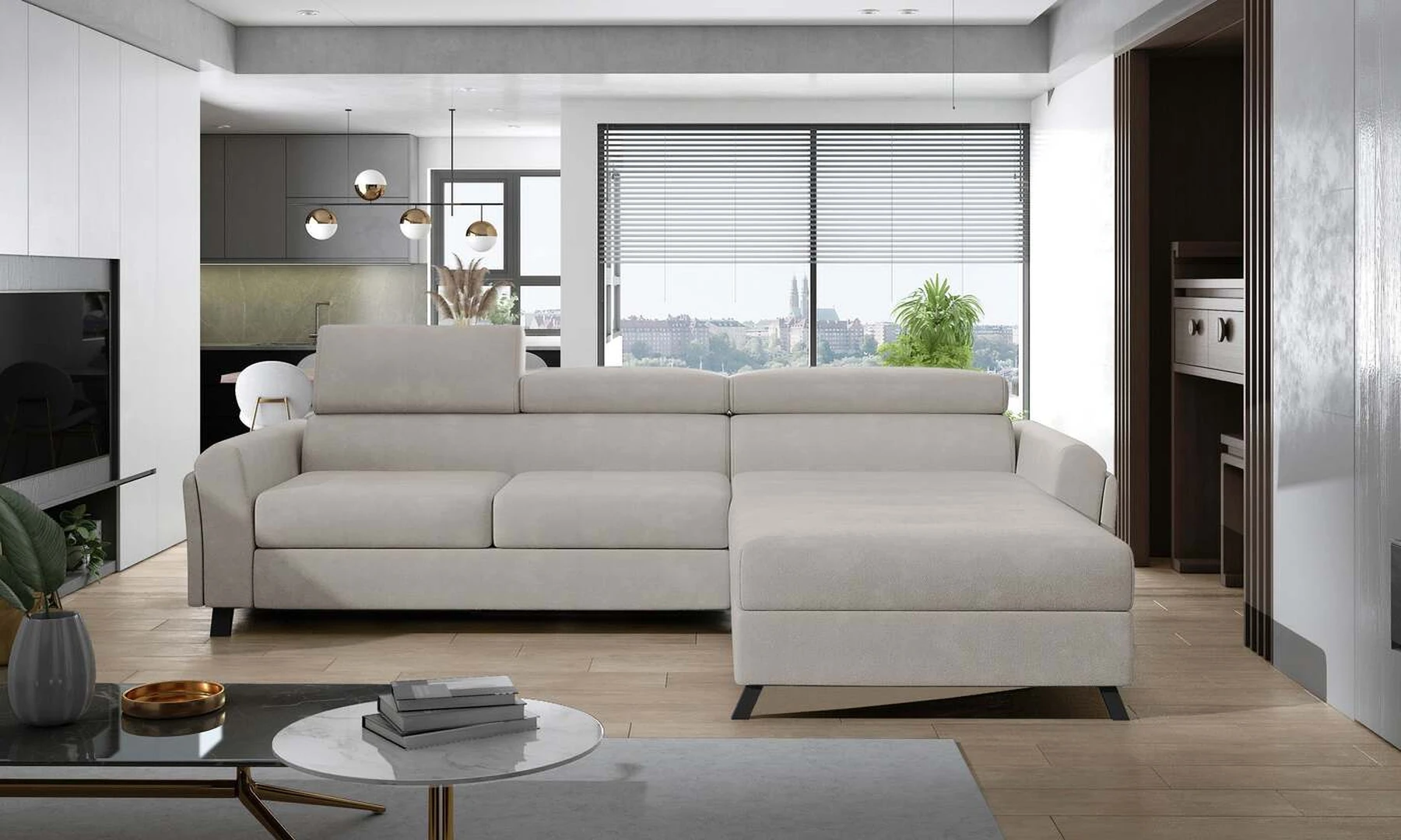EL7306 yra klasikinė, tačiau patogi ir prašmatni L formos kampinė sofa, kurios išmatavimai 300 x 190 x 98 cm. Jo išskirtiniai bruožai: reguliuojamos galvos atramos, apmušta sofos nugara, elegantiškos metalinės kojos su medine apdaila ir gili, minkšta sėdynė, pagaminta iš naujoviškų T30 ir HR putų, kurios yra atsparios deformacijai ir pažeidimams. Be to, jie garantuoja maksimalų komfortą tiek ilsintis dieną, tiek miegant. Dėl savo miegojimo funkcijos EL7306 yra daugiafunkcis baldas. Išskleidę sofą naudojant intuityvų ir nesudėtingą delfinų mechanizmą, gauname erdvią 110 x 240 cm lovą, taip pat talpų, gilų patalynės skyrių, esantį pufoje. Jei ieškote funkcionalaus, tačiau klasikinio ir elegantiško baldo – pasirinkimas gali būti tik vienas – ramia sąžine rekomenduojame kampinę sofą EL7306, kuri yra atsakymas į visus klausimus.