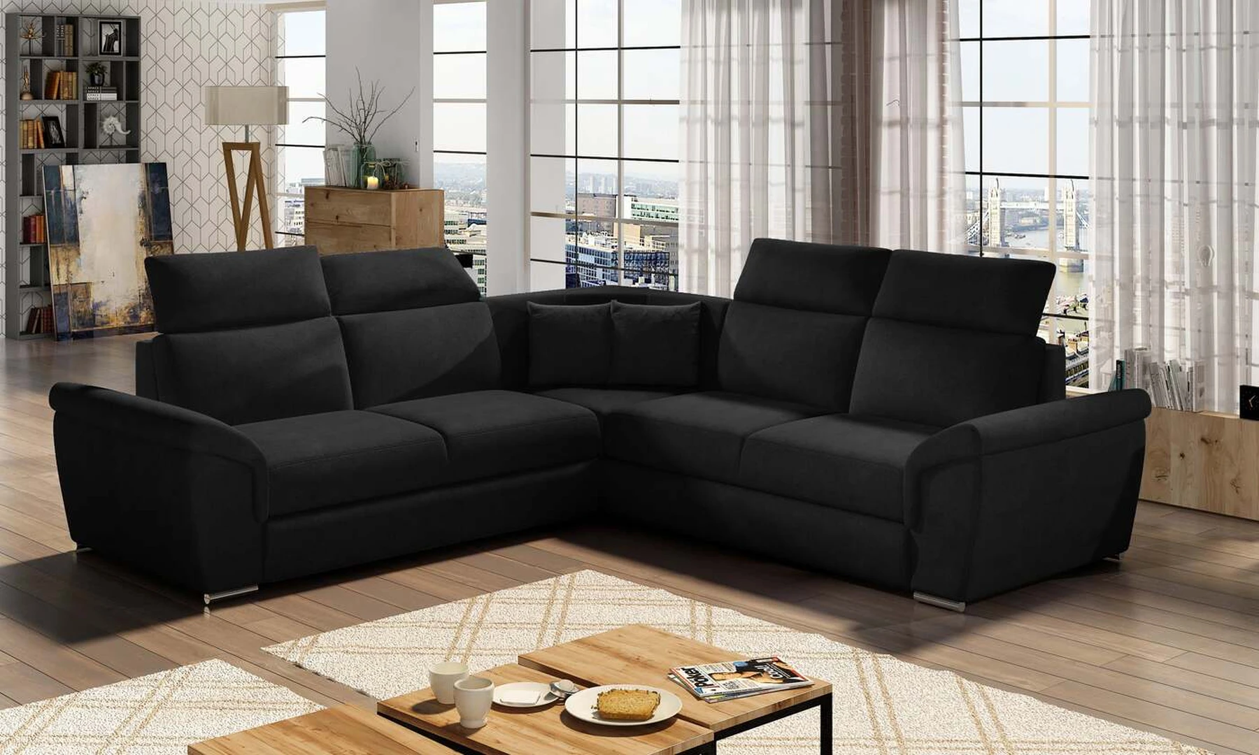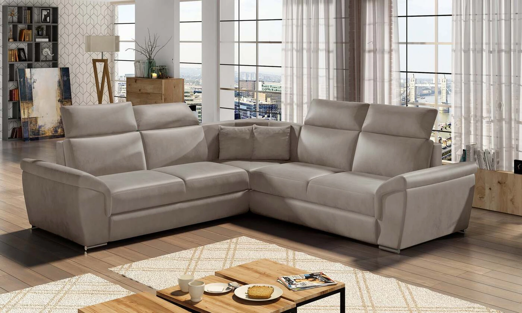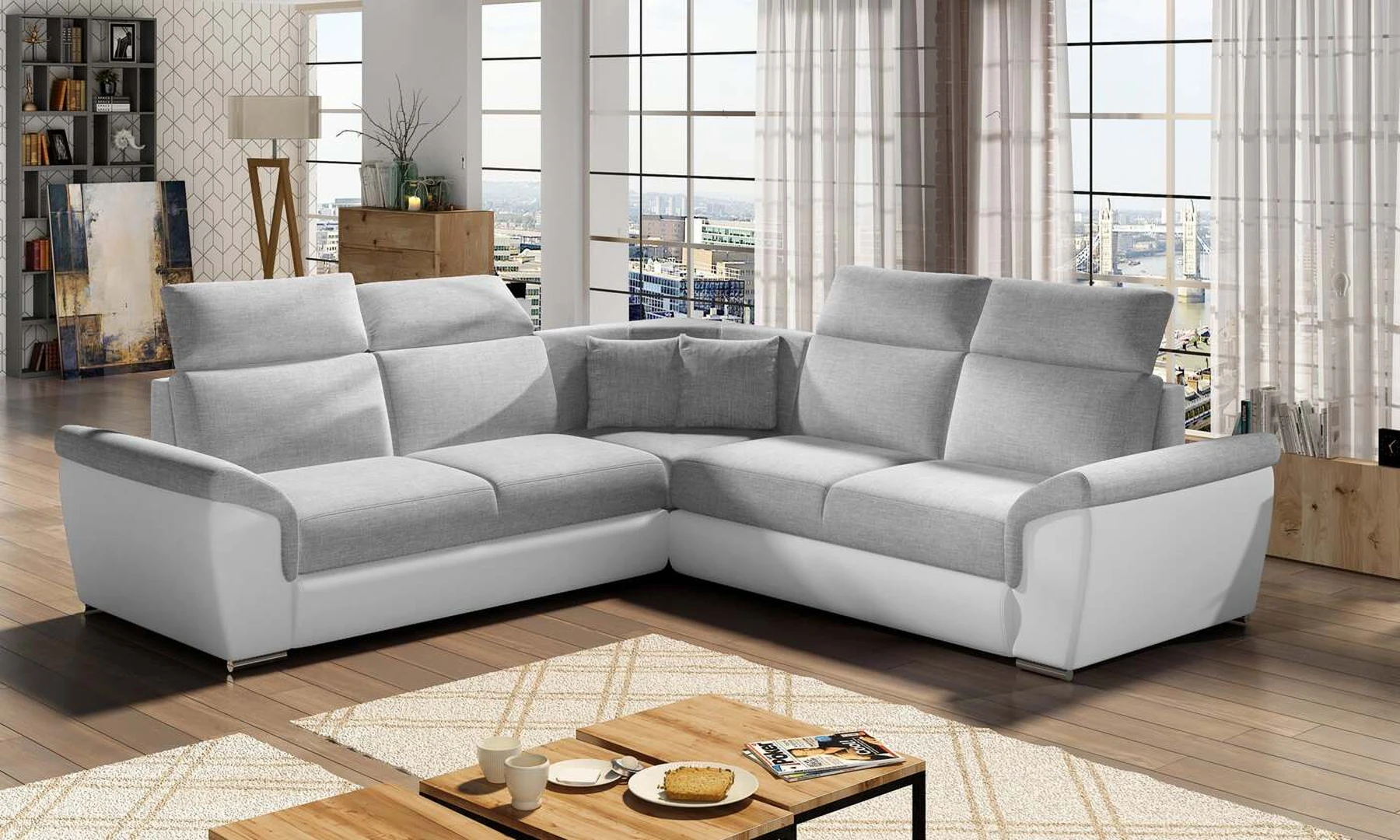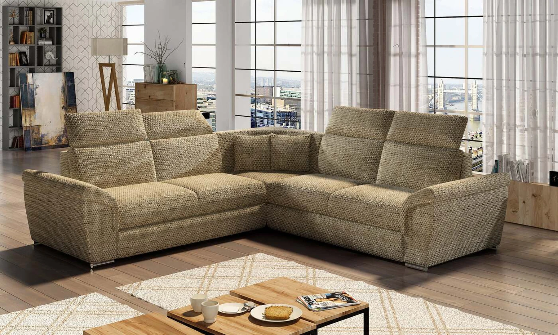 EL8253 yra klasikinis simetriškas, tačiau išskirtinis ir funkcionalus svetainės papuošalas. Paprastą formą laužo modernūs elementai: platūs, nuožulni porankiai, aukšti atlošai su keturiomis reguliuojamomis galvos atramomis ir dekoratyvinės pagalvės. Kampinės sofos matmenys 268 x 268 x 102 cm suteikia pakankamai erdvės atsipalaiduoti bet kuriuo dienos ar nakties metu. Šiame balde yra 120 x 200 cm miegojimo funkcija, taip pat erdvi ir gili patalynės saugykla, esanti pufas. Dėl delfininio tipo išskleidimo funkcijos baldo pritaikymas prie esamų poreikių yra intuityvus ir patogus.Baldo sėdynė pagaminta iš gofruoto spyruoklės ir T30 putplasčio – toks derinys suteikia minkštumo, lankstumo ir pakankamą atramą kūnui poilsio metu . Kampinė sofa EL8253 yra tinkamas pasirinkimas bet kurioje svetainėje, kur svarbi tvarka, universalumas ir tuo pačiu elegantiška atskirų elementų apdaila. Garantuojame, kad EL8253 atitiks visus jūsų reikalavimus.