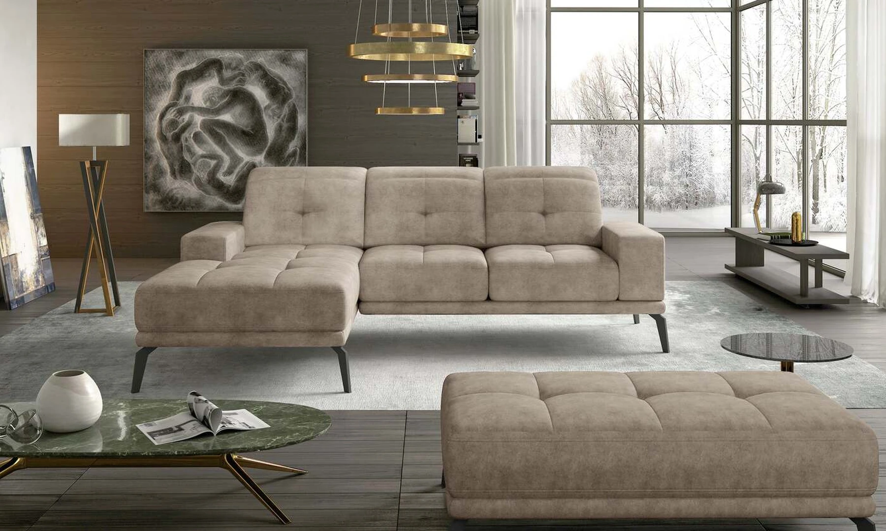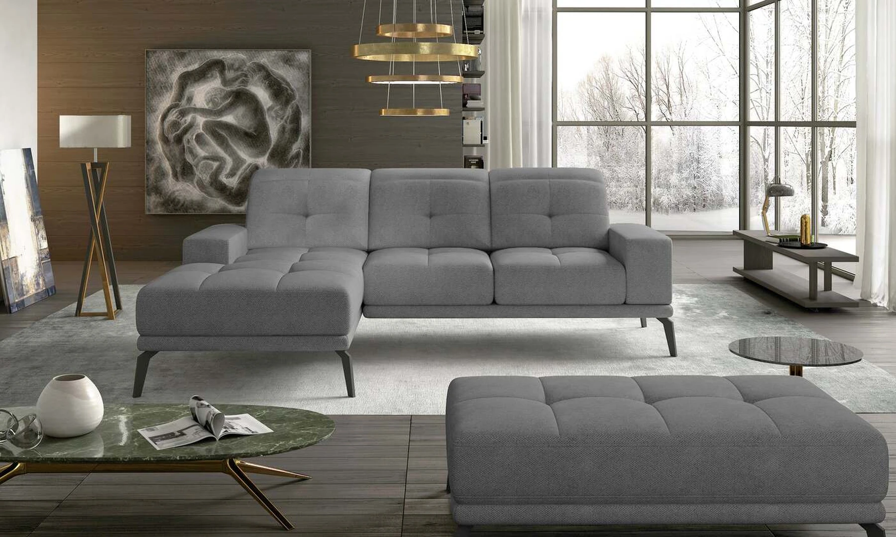 EL8471 yra stilinga ir moderni kampinė sofa, kurios matmenys 265 x 175 x 98 cm, kuri garantuoja erdvumą ir patogumą naudoti dieną bei maksimalų komfortą ant 215 x 140 cm paviršiaus – naktį. Baldo sėdynė pagaminta iš naujoviškų HR putų, kurios apsaugo nuo negražių įdubimų, o taip pat suteikia maksimalų komfortą. Prie išskirtinių šio modelio bruožų tikrai galime priskirti kruopščią ir šiuolaikišką apdailą, platų pasirinkimą iš mūsų spalvų paletės, reguliuojamas galvos atramas, slankiojančią atlošą priekyje - nugaros linijoje, taip pat subtilų skiautinį tiek ant sėdynės, tiek ant atlošo. EL8471 sukurtas taip, kad kiekvienas vartotojas galėtų puikiai pailsėti. Jei ieškote būtent to – EL8471 bus hitas!