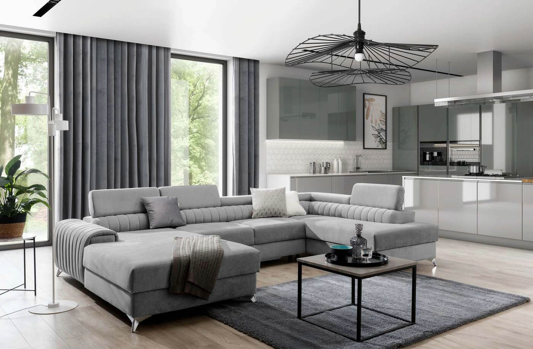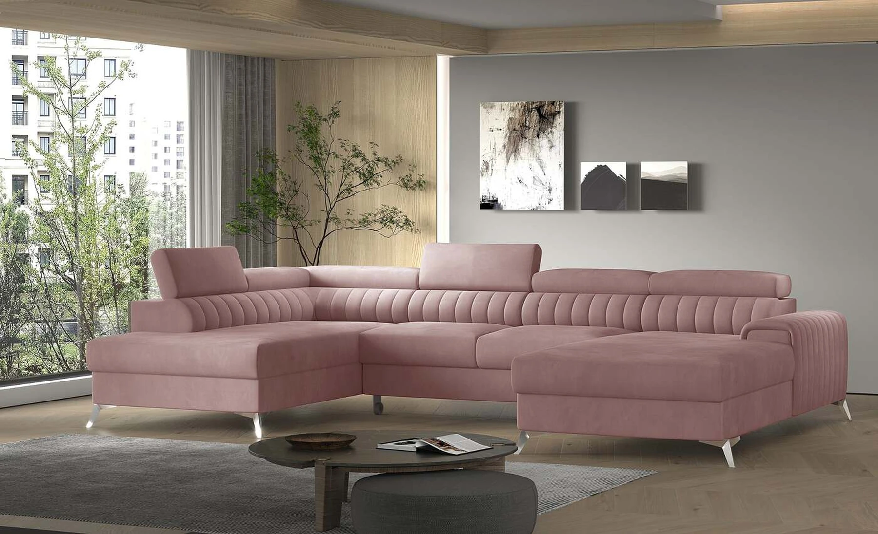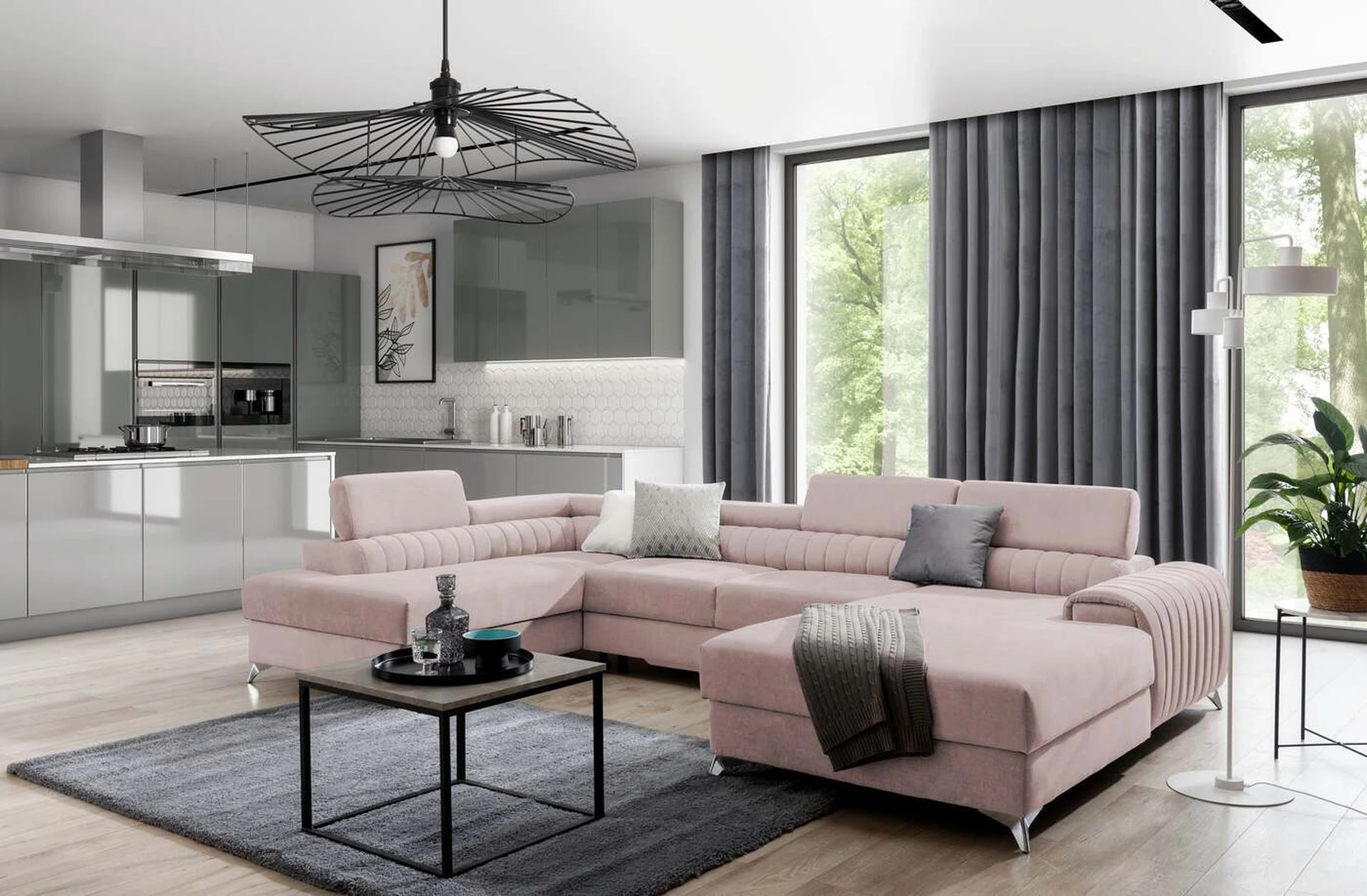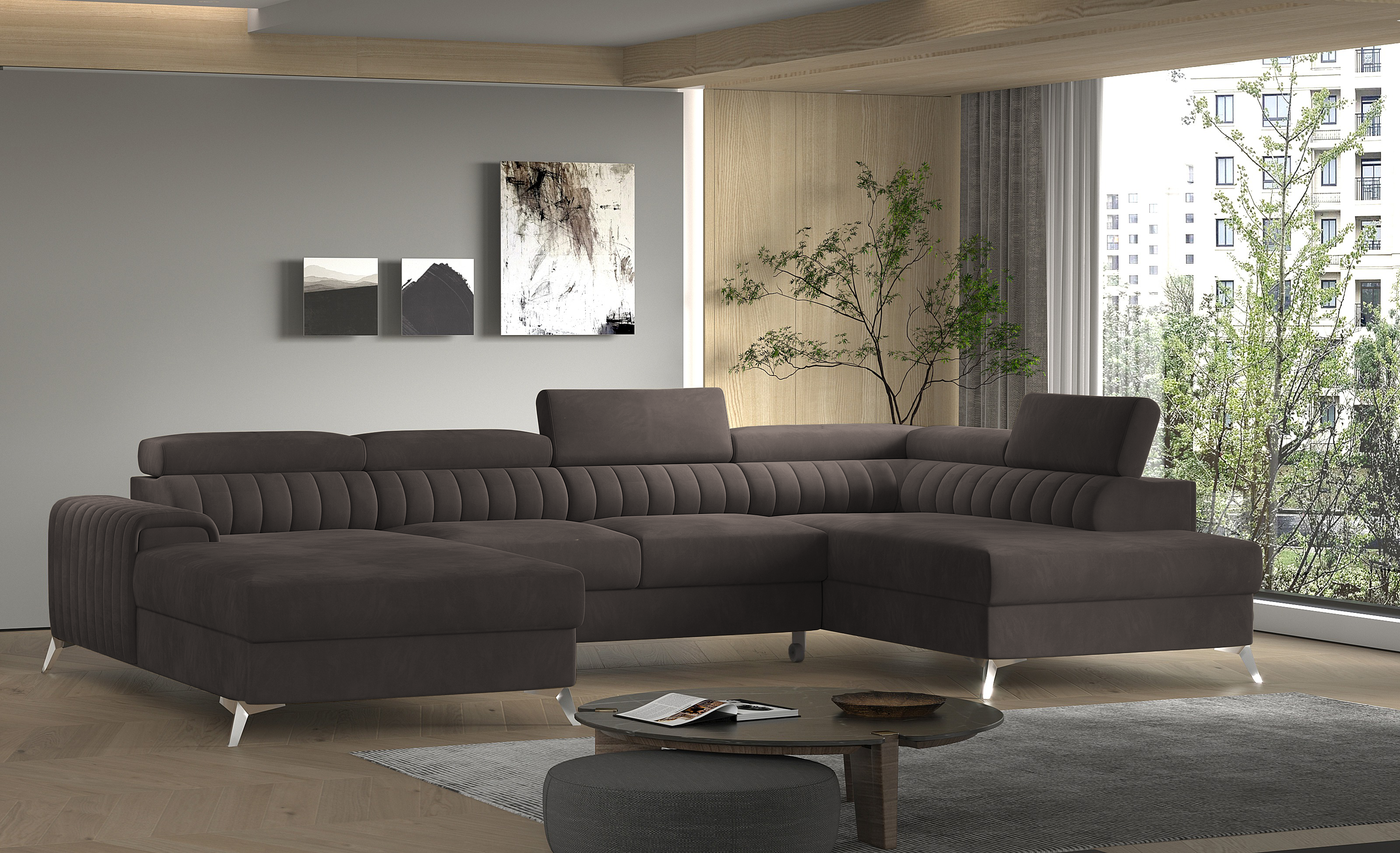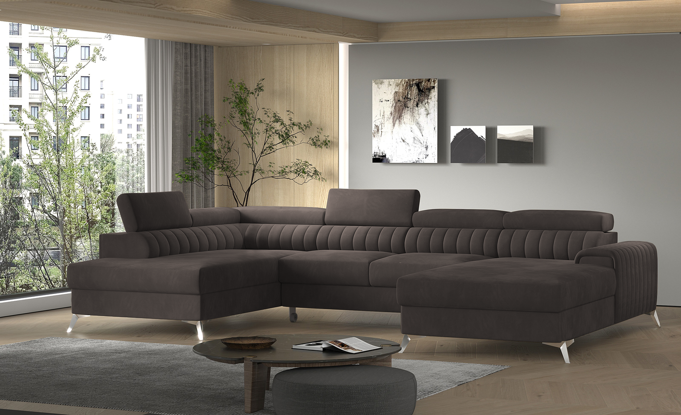 Kampinė sofa EL8964 kviečia atsipalaiduoti ir akimirką pailsėti, o tuo pačiu puikiai atrodo. Be to, jis pakelia modernią gyvenamąją erdvę savo įdomiu korpusu, taip pat dizainerių sukurtomis plieninėmis chromuotomis kojomis, kurių aukštis siekia 9 centimetrus. EL8964 taip pat galima rinktis iš jaukių apmušalų, o kaip minkštų baldų gamintojas naudojame tik aukščiausios kokybės audinius. Baldo sėdynė užpildyta HR ir T30 putų deriniu, kuris suteikia tikrą komfortą. Kampinėje sofoje EL8964 taip pat yra patalynės konteineris, kurio matmenys: 195 x 93 cm. Kampinės sofos privalumas yra ir miegamoji funkcija, kurios plotas 265 x 123 cm. Baldai gali išsiskleisti dėl įmontuoto delfino mechanizmo. Ši sistema pasižymi sklandumu ir naudojimo paprastumu, todėl nereikia daug jėgų, norint susidoroti su kampo pavertimu lova. Kampinės sofos sėdynė, pagaminta iš gofruoto spyruoklės ir itin elastingo HR porolono bei T30 putplasčio derinio, tikrai paskatins patogų poilsį. Nepamirškime ir modernių reguliuojamų galvos atramų. Jų dėka galėsite patogiai atsigulti ir ramiai pasikalbėti, paskaityti knygą ar žiūrėti televizorių. Kampinė sofa EL8964 puikiai tiks tradiciniuose, bet ir moderniuose namuose.